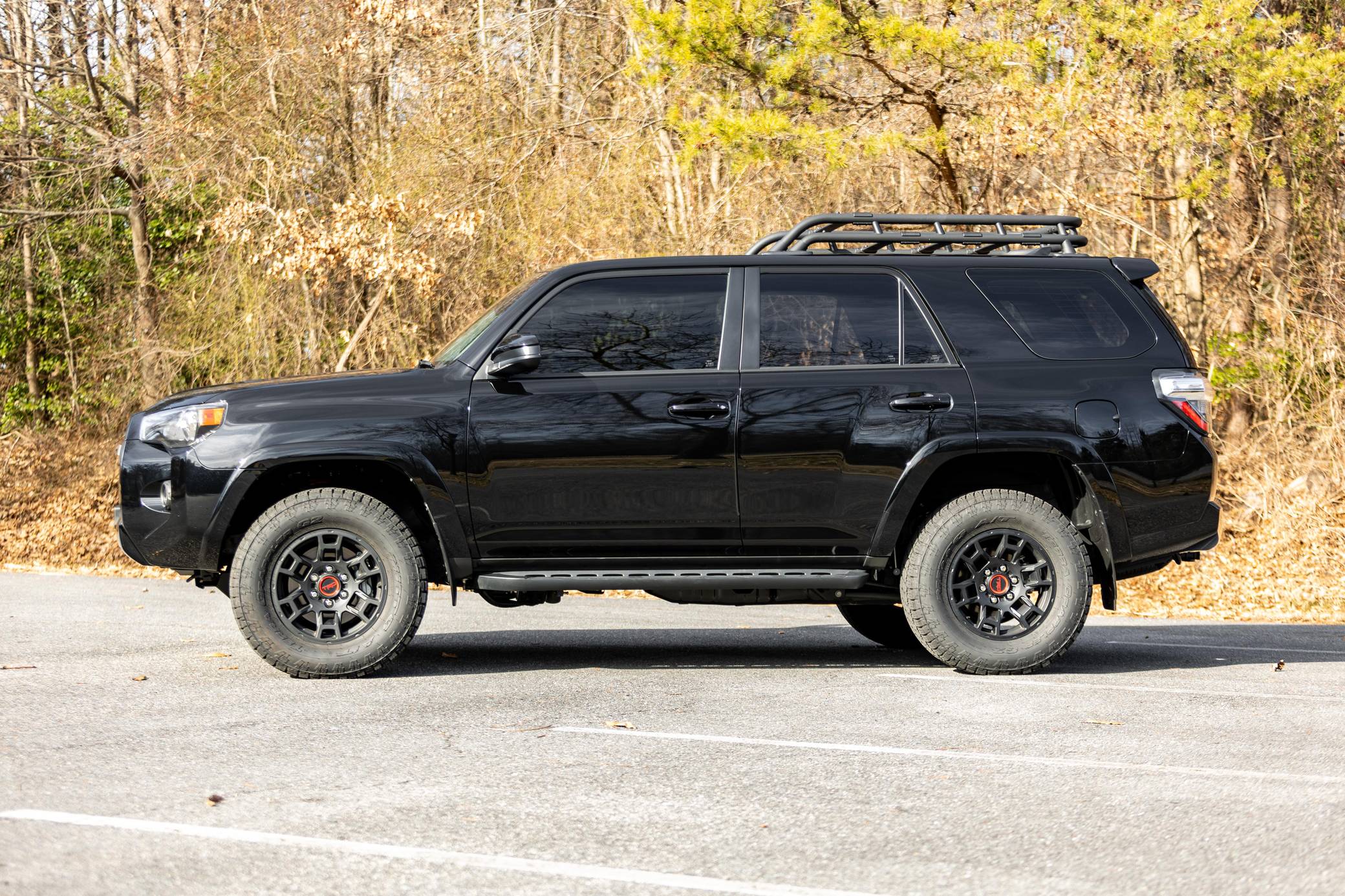 THIS. . . is a 2023 Toyota 4Runner SR5 4x4, finished in Midnight Black Metallic with a black interior. Modifications reported by the seller include a TRD Pro performance exhaust, a TRD Pro FOX suspension, a TRD Pro roof rack, tinted windows, and front and rear dash cameras. Toyota introduced the fifth and current generation of the 4Runner for 2010. While many of its rivals moved to a unibody architecture, the 4Runner kept its tried-and-true body-on-frame layout and continued to offer exceptional off-road capabilities. It has been updated several times since its introduction, 2014 notably brought a round of visual updates, and it's still available new today. Power comes from a 4. 0-liter V6, rated at 270 horsepower and 278 lb-ft of torque. Output is sent to the rear or all four wheels via a 5-speed automatic transmission.