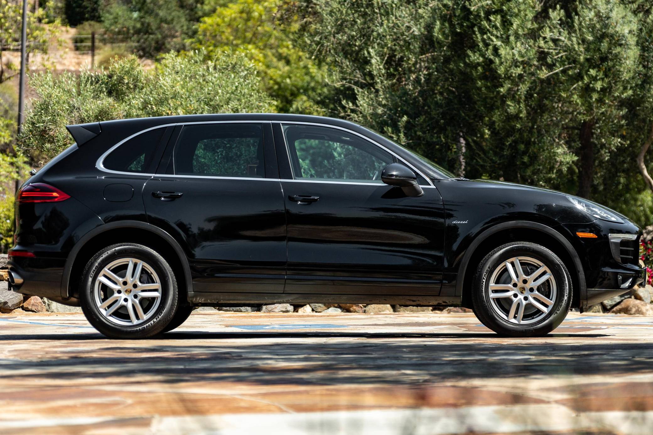 2015 Porsche Cayenne Diesel, finished in Black with a Black and Luxor Beige interior. Modifications reported by the seller are limited to an aftermarket brake controller. Released for the 2011 model year, the second-generation Cayenne (called "958" internally) was slightly bigger and significantly lighter than its predecessor. It offered a smoother ride thanks to additional technology and luxury features, it was just as capable off-road, and critics agreed it was noticeably sportier than the first-generation model. Production ended in 2017. Power comes from a 3. 0-liter turbodiesel V6, rated at 240 horsepower and 406 lb-ft of torque. Output is sent to all four wheels via an 8-speed automatic transmission.