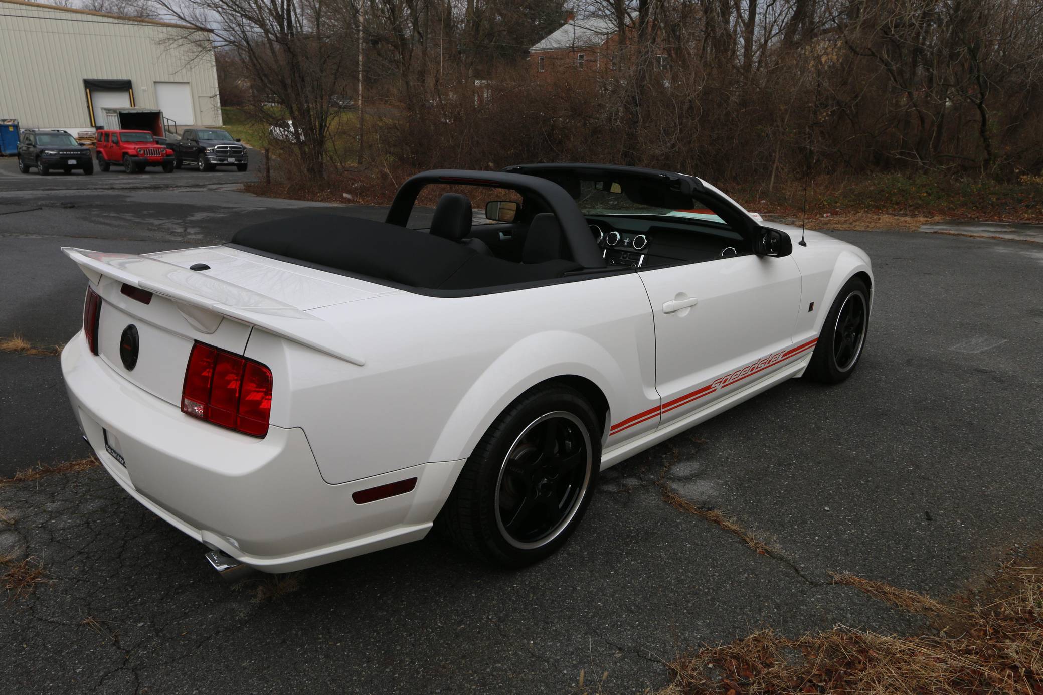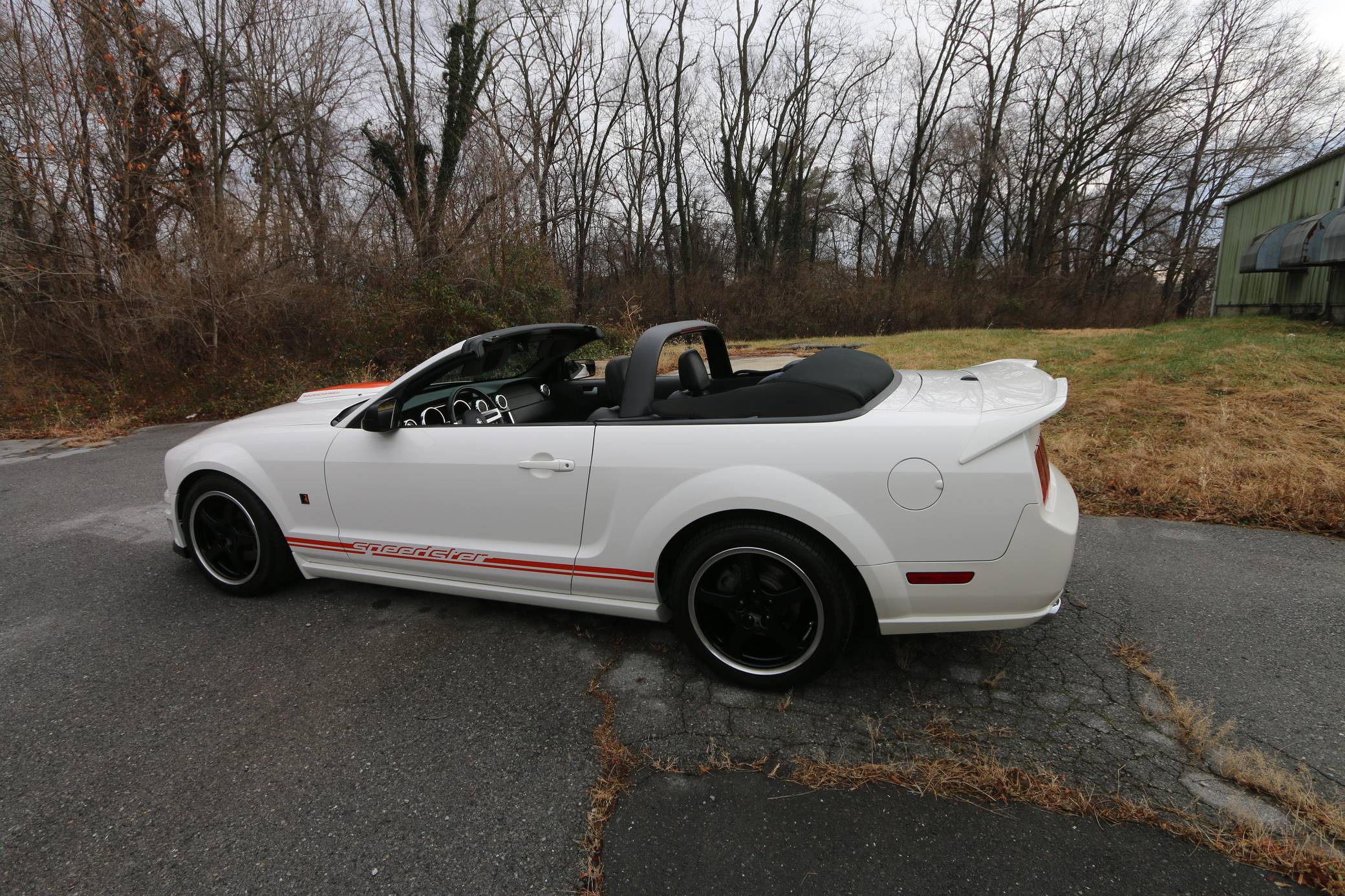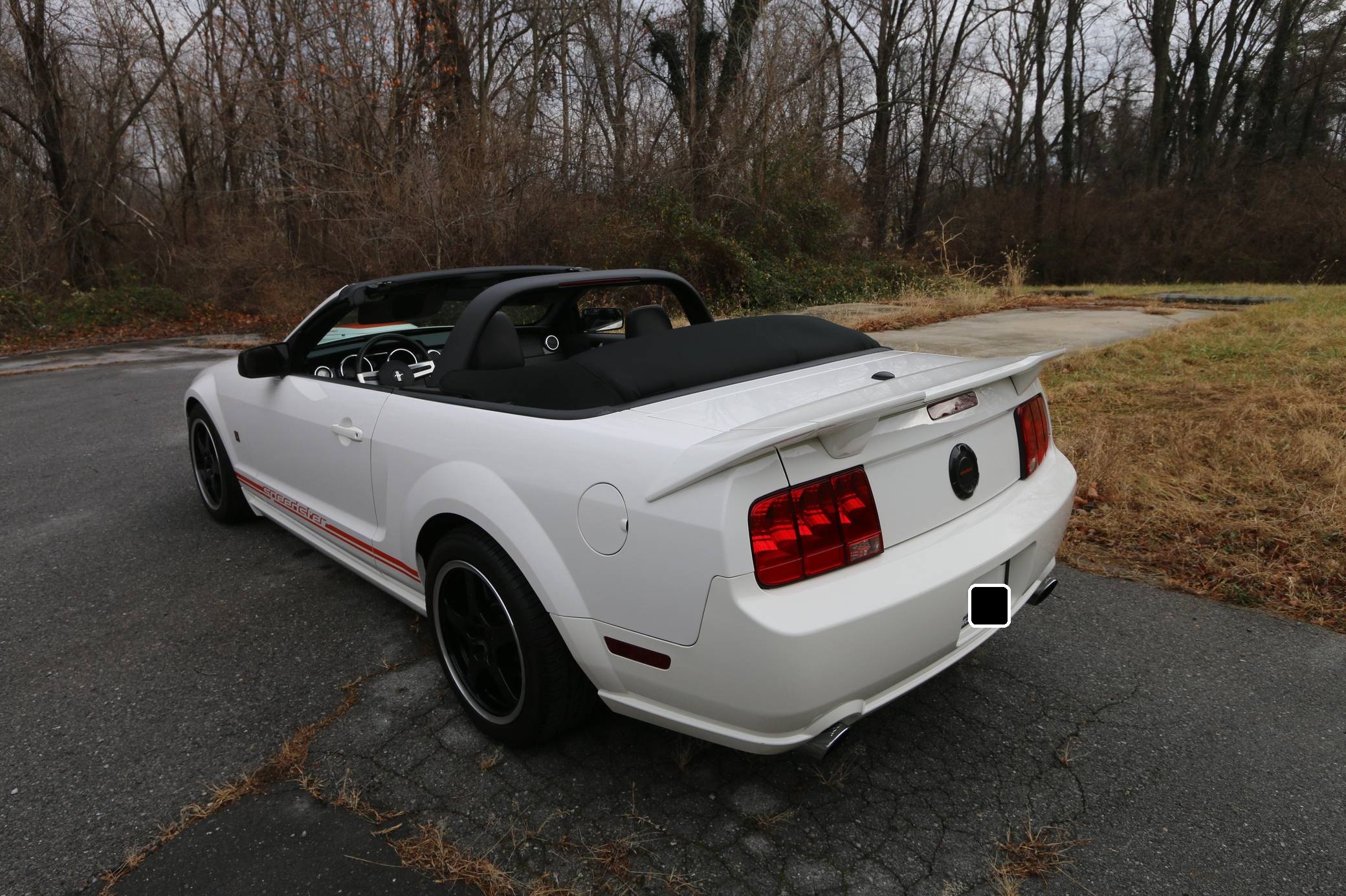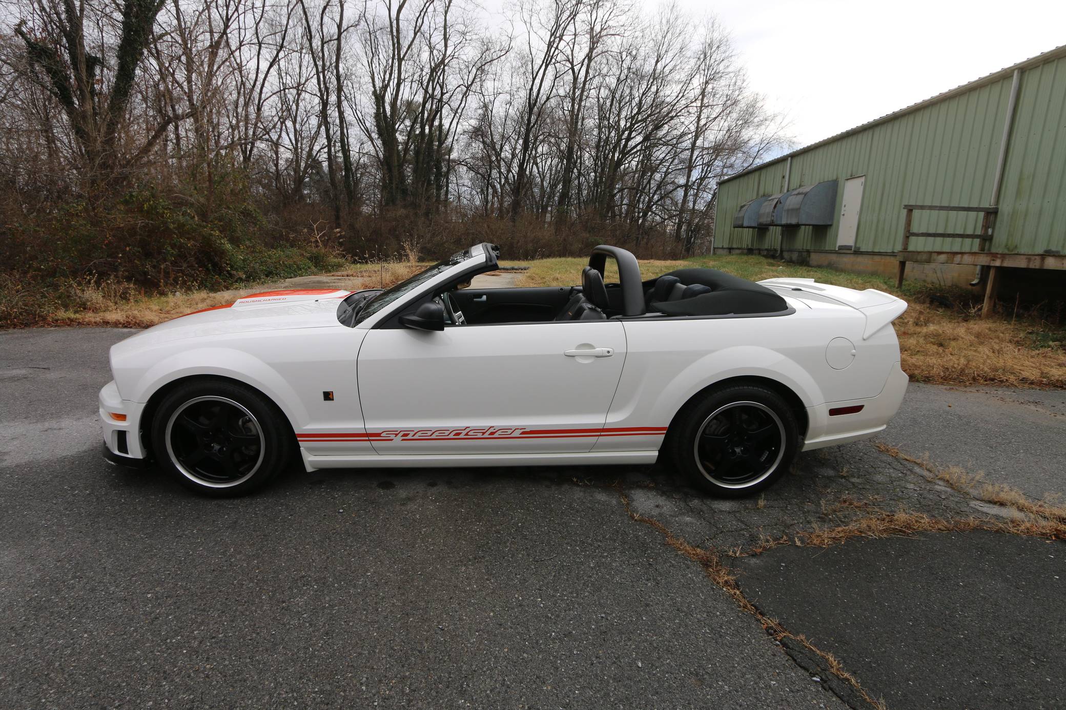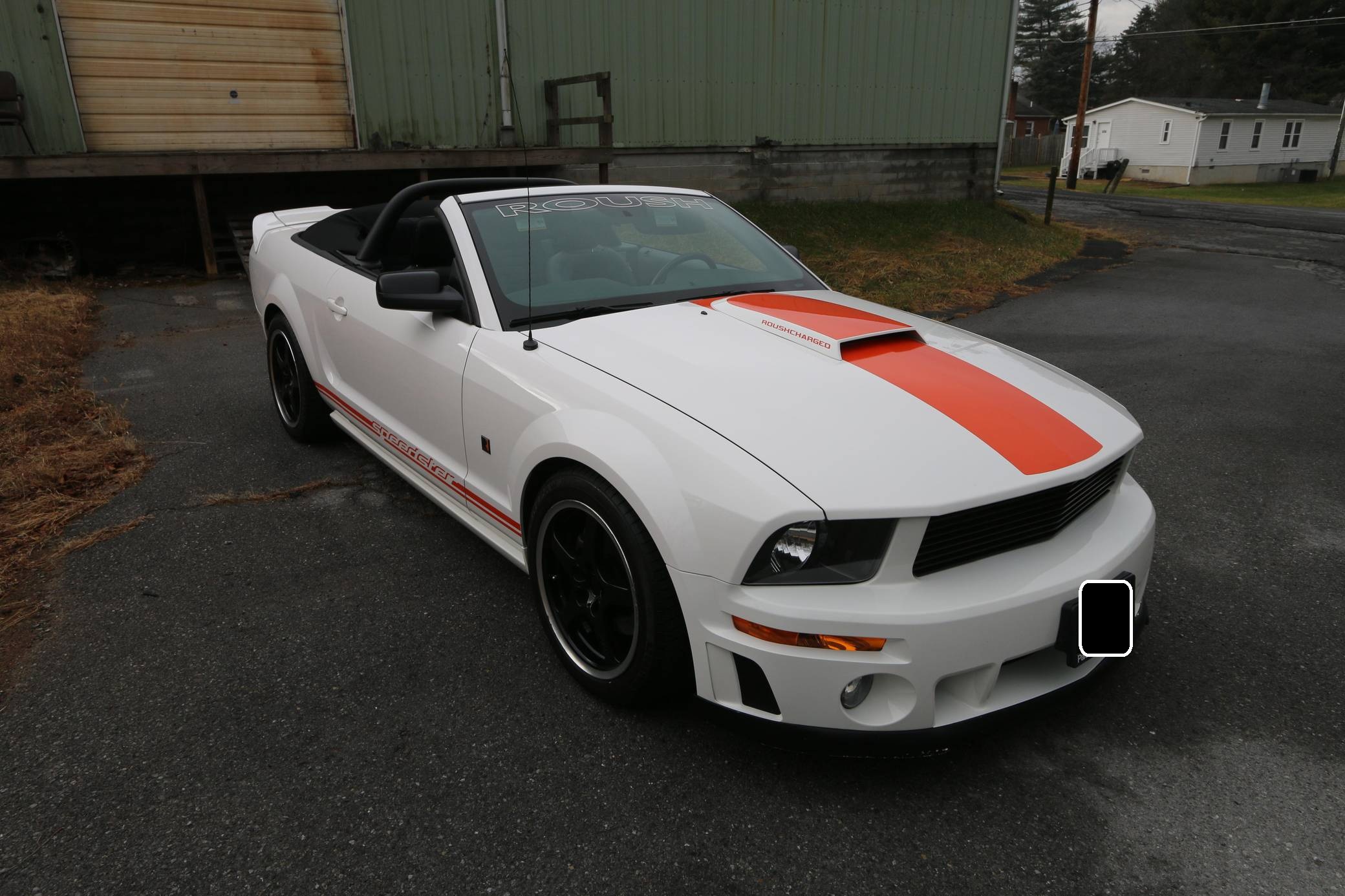 2008 Ford Mustang GT Roush Speedster, finished in Performance White with a Dark Charcoal interior. The Speedster gained several performance and visual modifications detailed below, and this car is number 67 out of 100, according to a plaque in the engine bay. Equipment on this Mustang includes the Roush Speedster Package, Roush lowering springs, a Roushcharger, a Roush exhaust system, leather upholstery, and more as detailed below. The seller reports that the only other modification to this Speedster is a Plasti Dipped front lip. Called "S197" internally, the fifth-generation Mustang launched for 2005 with a heritage-laced design, a new platform, and an available 24-valve V8 engine. Extending the wheelbase gave the Mustang a much more compliant ride than its predecessor. Production ended in 2014, and the "S197" passed the Pony Car torch to the current-generation Mustang. Power comes from a supercharged 4. 6-liter V8, rated at 430 horsepower and 400 lb-ft of torque. It spins the rear wheels via a 6-speed automatic transmission.