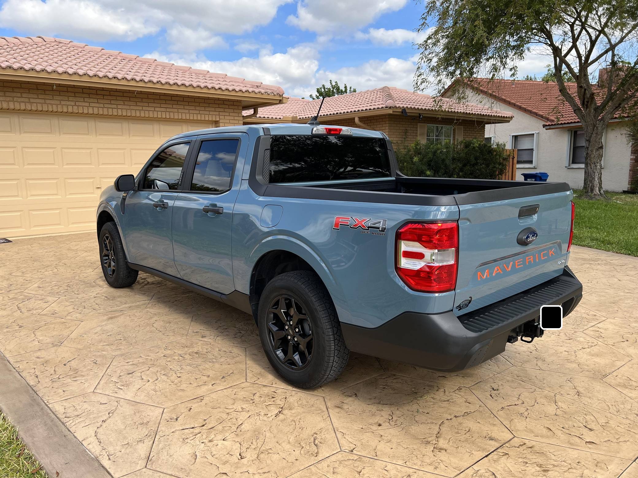 THIS. . . is a 2022 Ford Maverick XLT AWD, finished in Area 51 with a Navy Pier and Medium Slate interior. Modifications reported by the seller include LED turn signals, tinted windows, and a drop-in bedliner. The Maverick is Ford's newest compact pickup, which shares a platform with the Escape and Bronco Sport crossovers. The Maverick is offered in three trim levels called XL, XLT, and Lariat, respectively, and is available with front- or all-wheel-drive. It made its debut for 2022 and remains available today. Power comes from a 2. 0-liter turbocharged "Ecoboost" 4-cylinder engine, rated at 250 horsepower and 277 lb-ft of torque. Power is sent to all four wheels via an 8-speed automatic transmission.