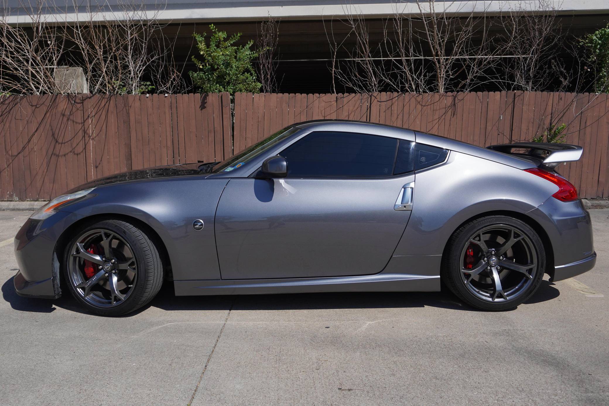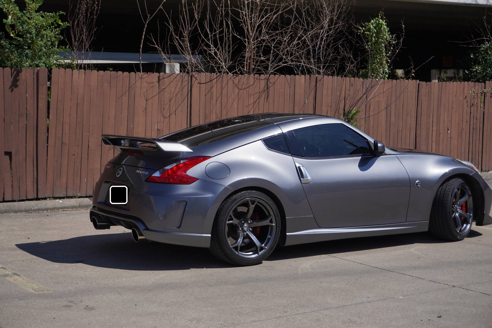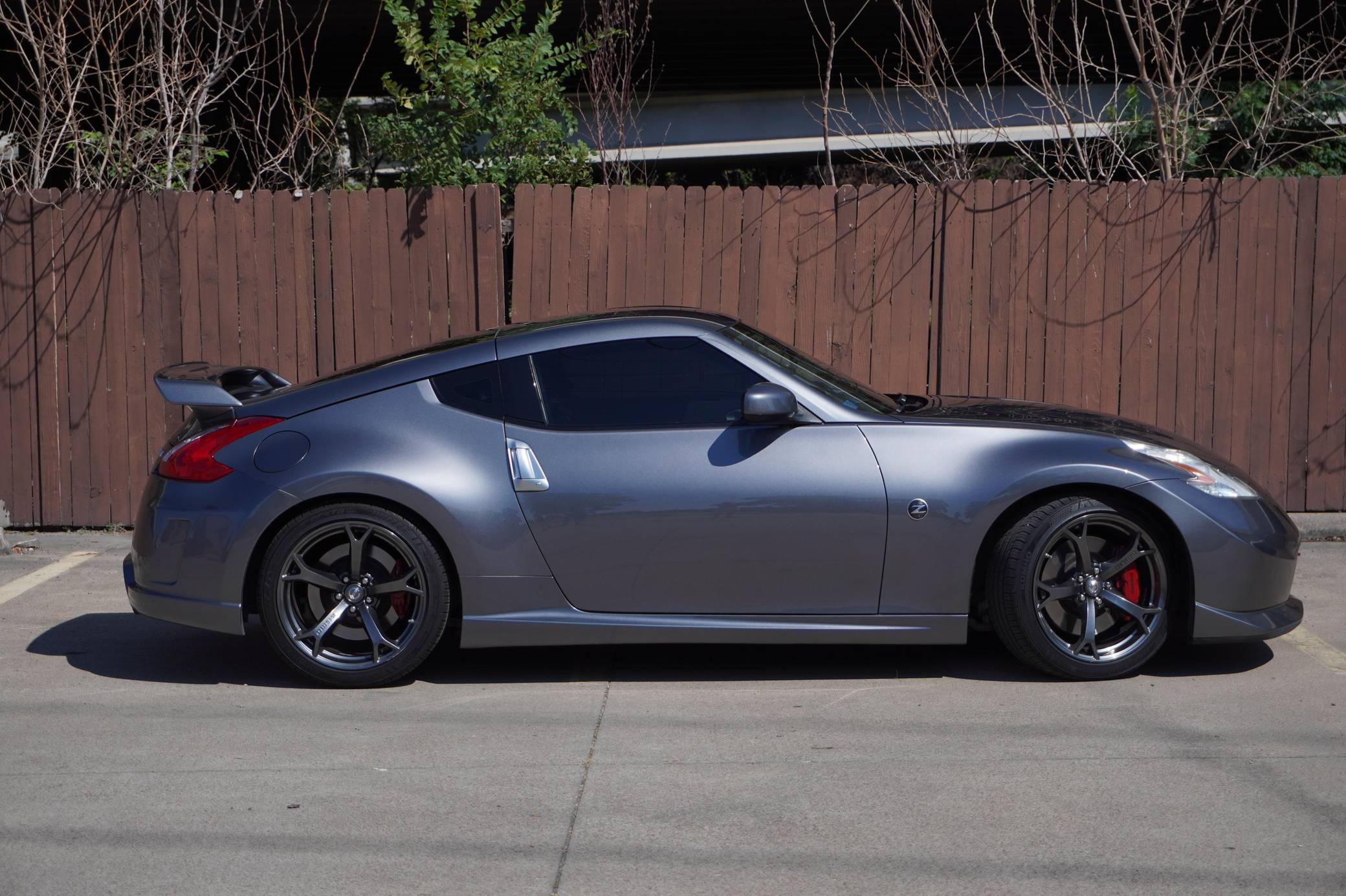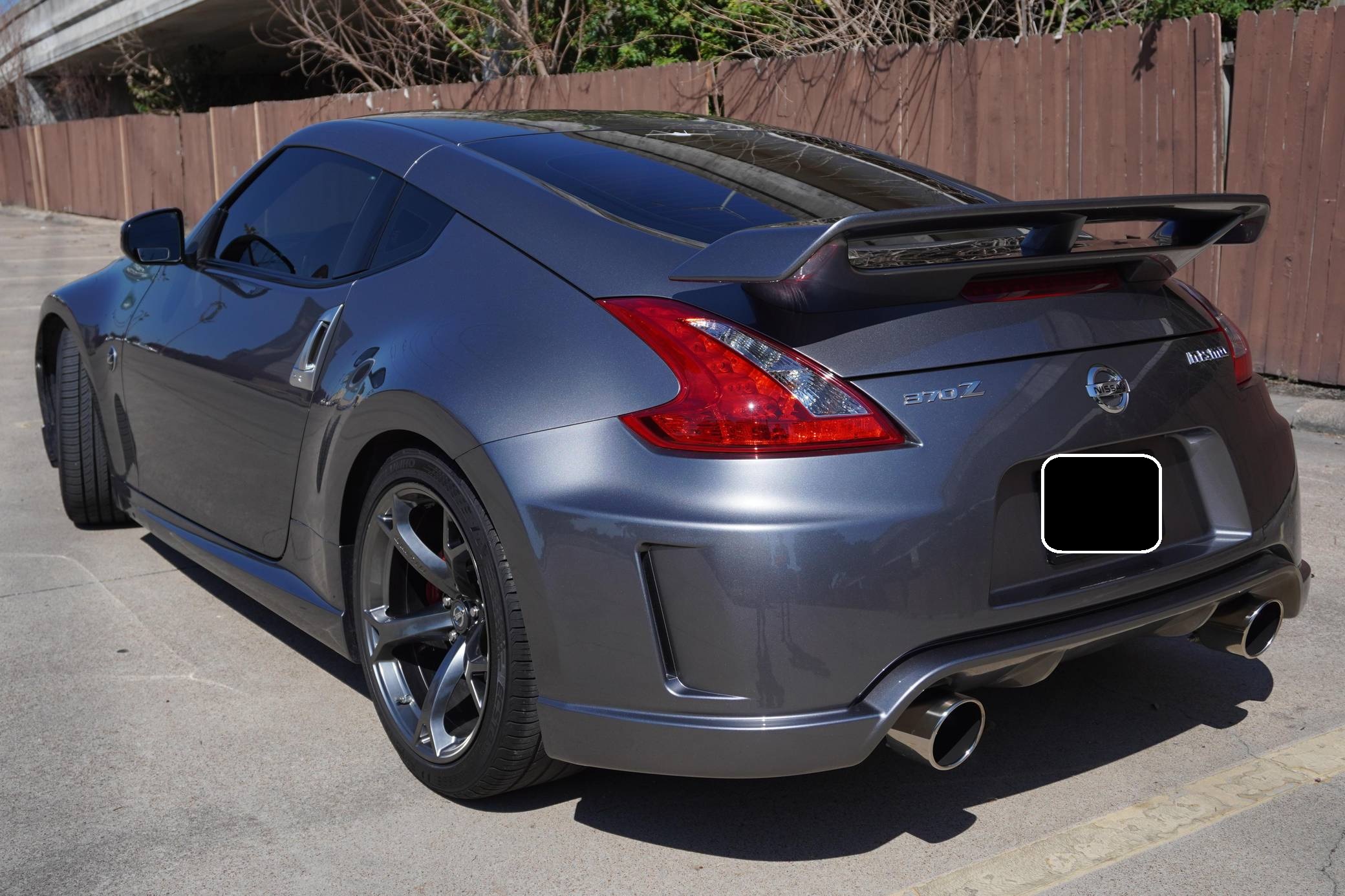 2013 Nissan 370Z Nismo Coupe, finished in Gun Metallic with a black interior. Modifications reported by the seller are extensive and include an AAM Competition exhaust system, ISR Performance resonated test pipes, Nismo R-Tune intakes, an AdminTuning ECU tune, Braum Racing seats, and an Alpine ILX-W650 head unit. The Nissan 370Z advanced the Z car with more futuristic styling and a more powerful V6 engine than the 350Z it replaced. The high-performance Nismo model improved the engine, suspension, and exhaust while adding a body kit that was more aerodynamic than the base model's. Power comes from a 3. 7-liter V6 engine, rated at 350 horsepower and 276 lb-ft of torque in stock form. According to the dyno sheet provided in the gallery, this 370Z makes 305 horsepower and 253 lb-ft of torque at the wheels. Output is sent to the rear wheels via a 6-speed manual transmission.