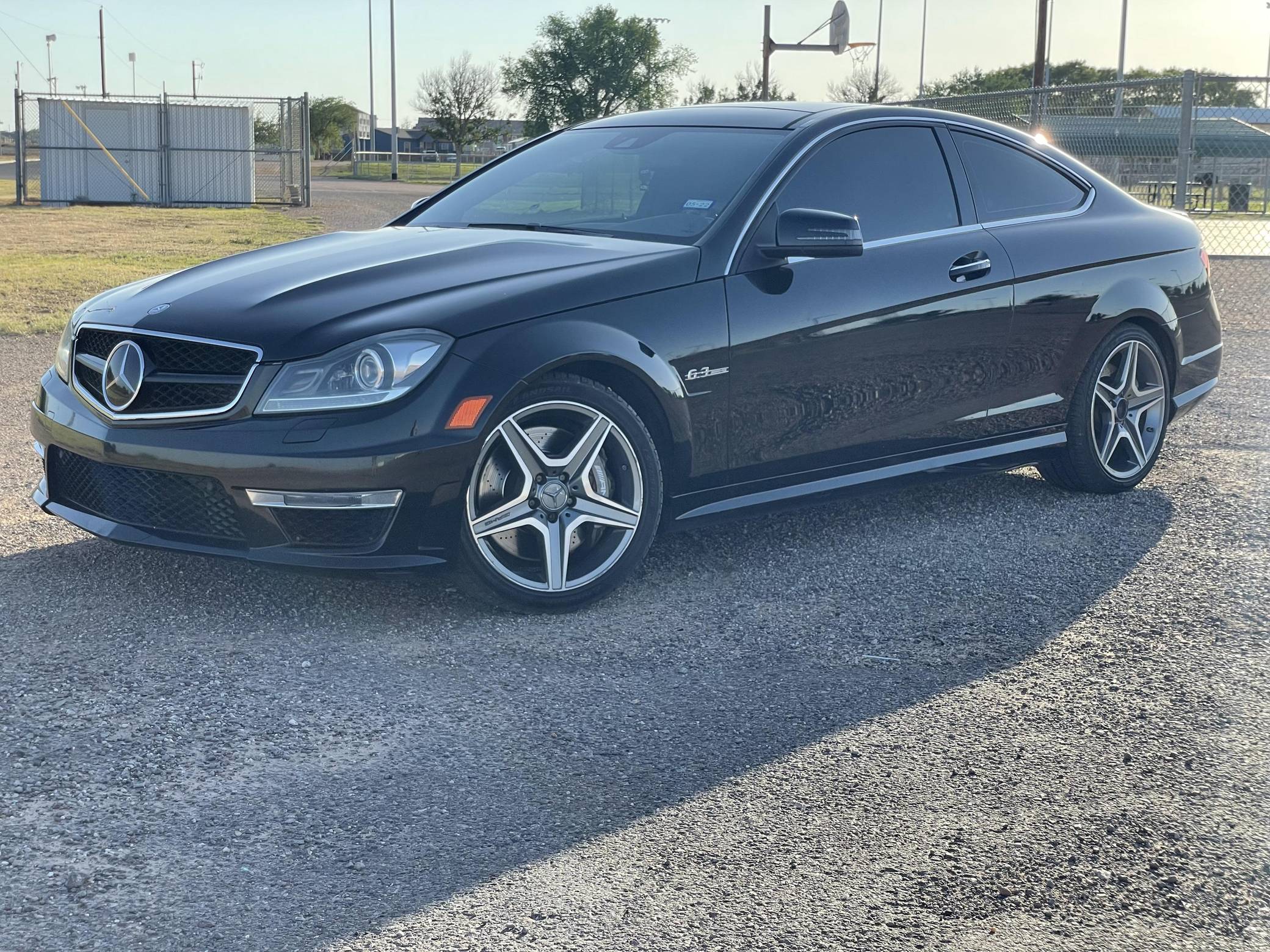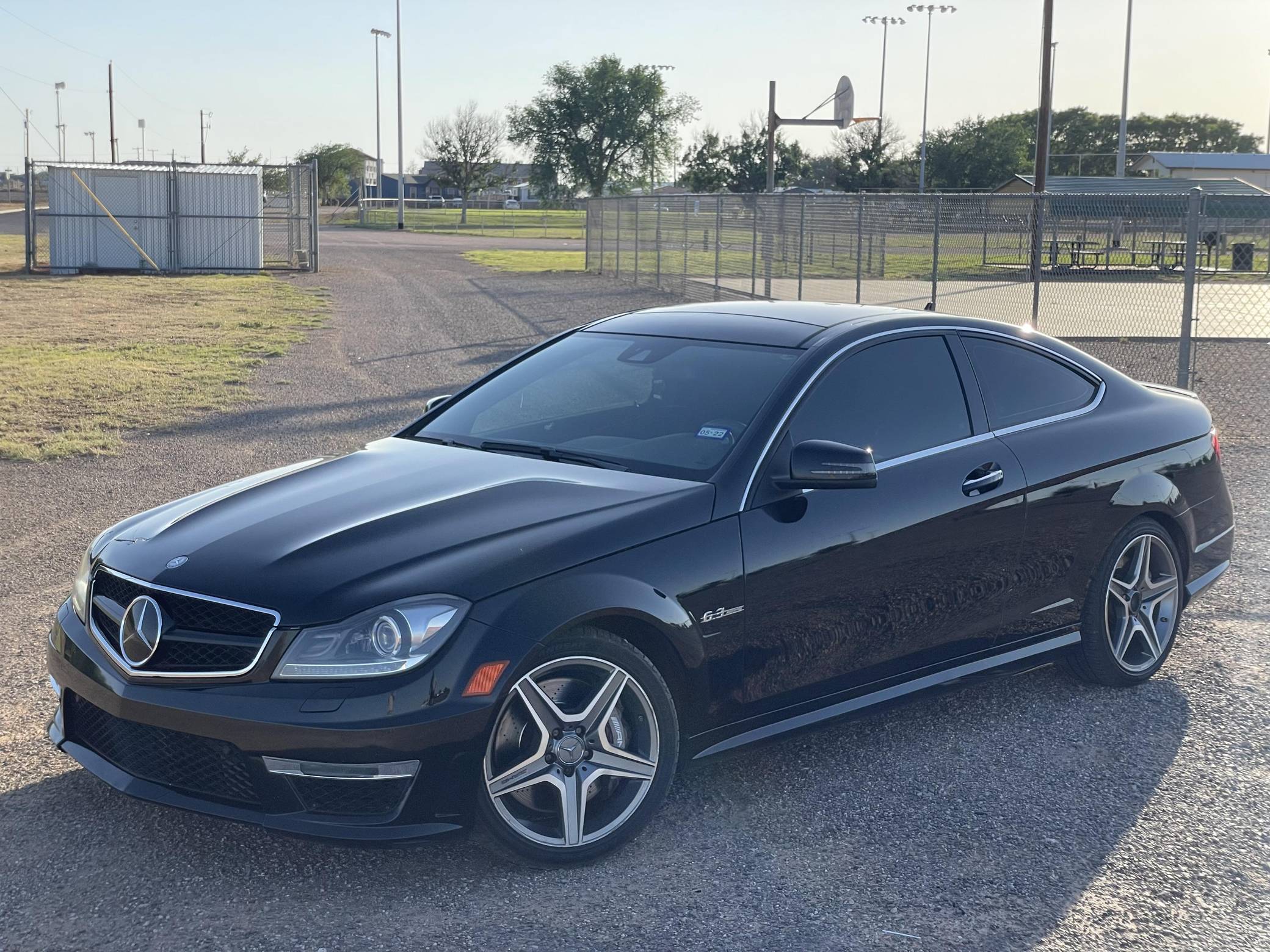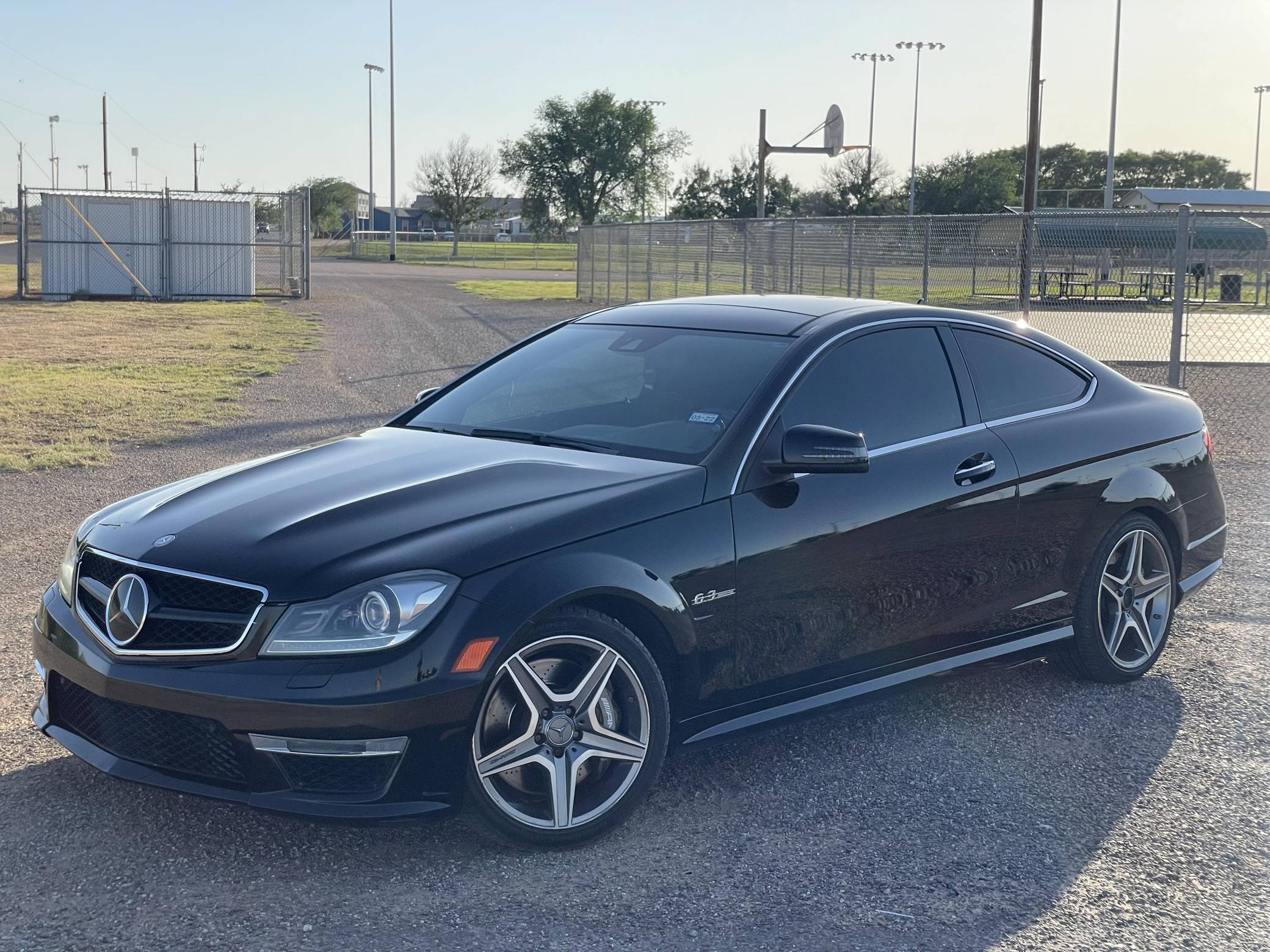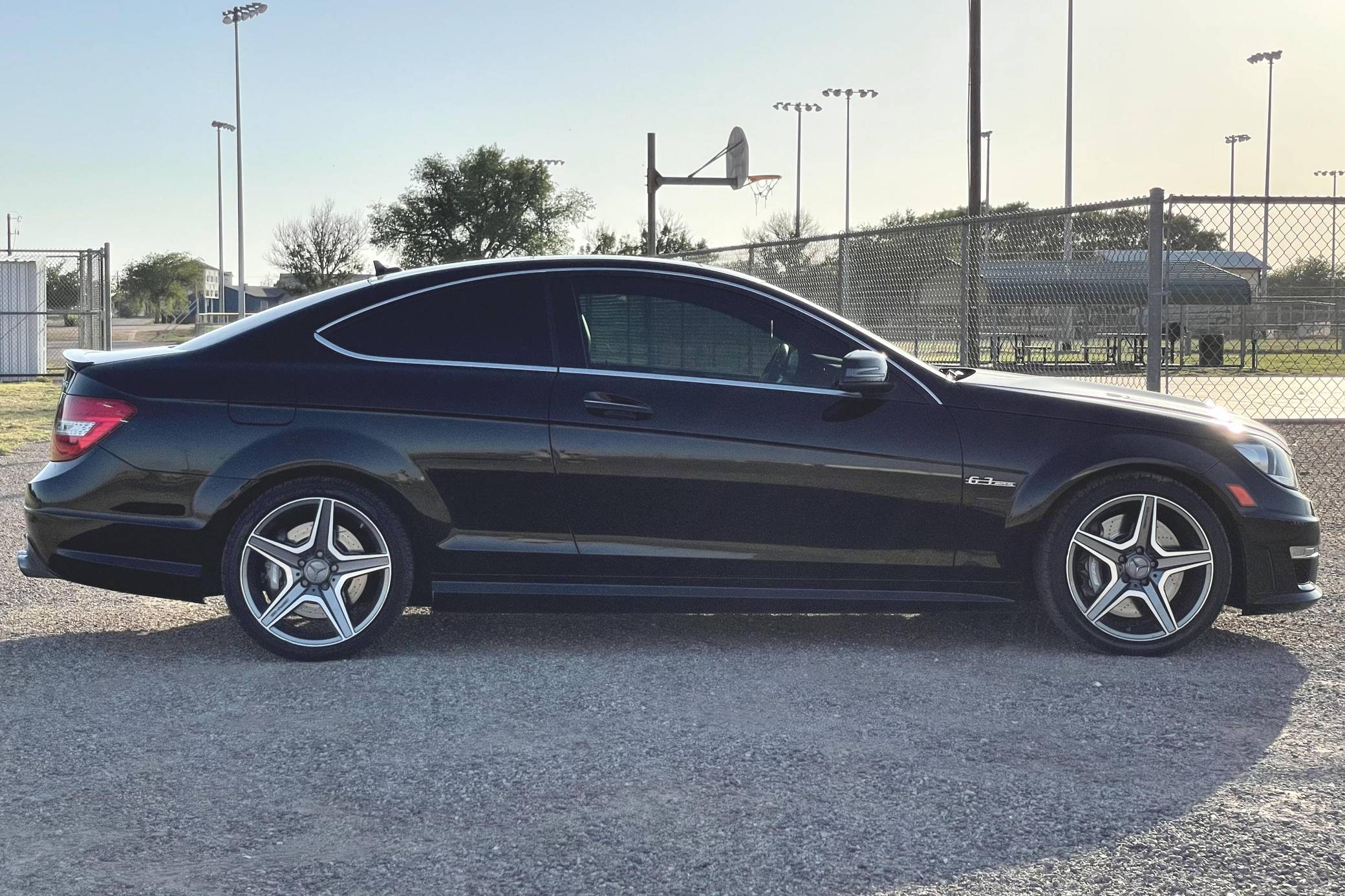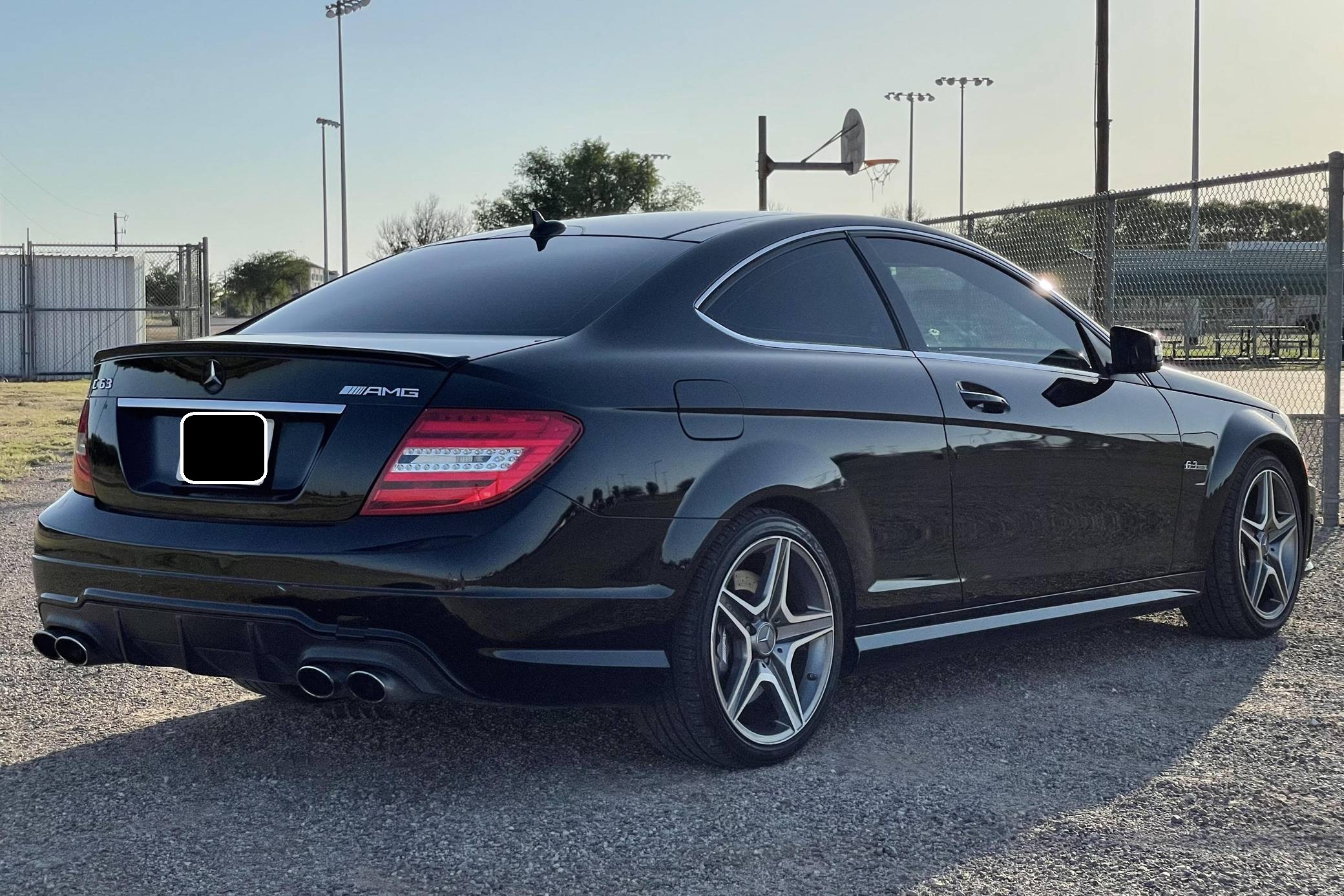 2014 Mercedes-Benz C63 AMG Coupe, finished in black with a black interior. Factory equipment includes the Driver Assistance Package, the AMG Styling Package, 18-inch AMG wheels, bi-xenon headlights, a limited-slip differential, a sunroof, leather and Alcantara upholstery, heated front seats, carbon fiber interior trim, and a Harman/Kardon sound system. Modifications are limited to tinted windows. While previous generations of AMG C-class models had a reputation for bolted-on performance, the "W204" was designed with an AMG version from day one. In addition to the "M156" power plant, the C63 shared suspension components with the CLK63 Black Series. Power comes from a hand-built 6. 2-liter V8 engine, rated at 451 horsepower and 443 lb-ft of torque. Output is sent to the rear wheels via a 7-speed automatic transmission.