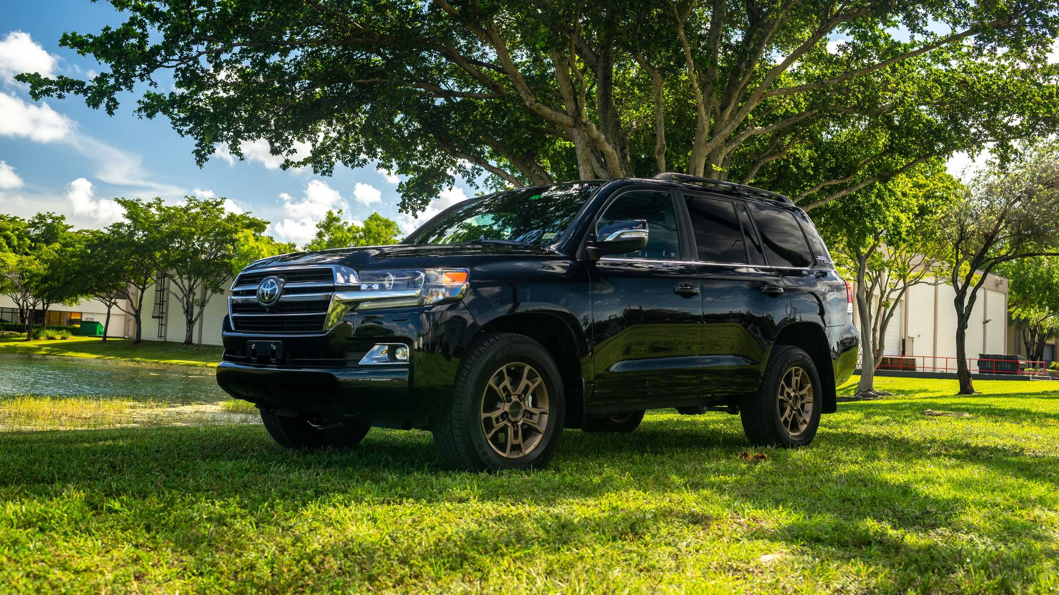 2021 Toyota Land Cruiser Heritage Edition, finished in Midnight Black Metallic with a black interior. Factory equipment includes 18-inch BBS wheels, "Toyota Land Cruiser" Heritage badging, Multi-Terrain Select, a Torsen locking limited-slip center differential, Kinetic Dynamic suspension system, perforated leather upholstery, heated and ventilated front seats, heated (outer) rear seats, a heated steering wheel, and a 14-speaker JBL audio system, among others listed below. The seller reports no modifications. Introduced for the 2008 model year, the 200-Series Land Cruiser is notable for maintaining its reputation for off-road prowess while further increasing the luxury aspects of the truck. In 2016 the 200-Series was refreshed with an updated interior and exterior, new 18-inch alloy wheels, larger front disc brakes, and a new 8-speed electronically-controlled automatic transmission, among other modern convenience updates. Power comes from a "3UR-FE" 5. 7-liter V8, rated at 381 horsepower and 401 lb-ft of torque. Output is sent to all four wheels via an 8-speed automatic transmission.