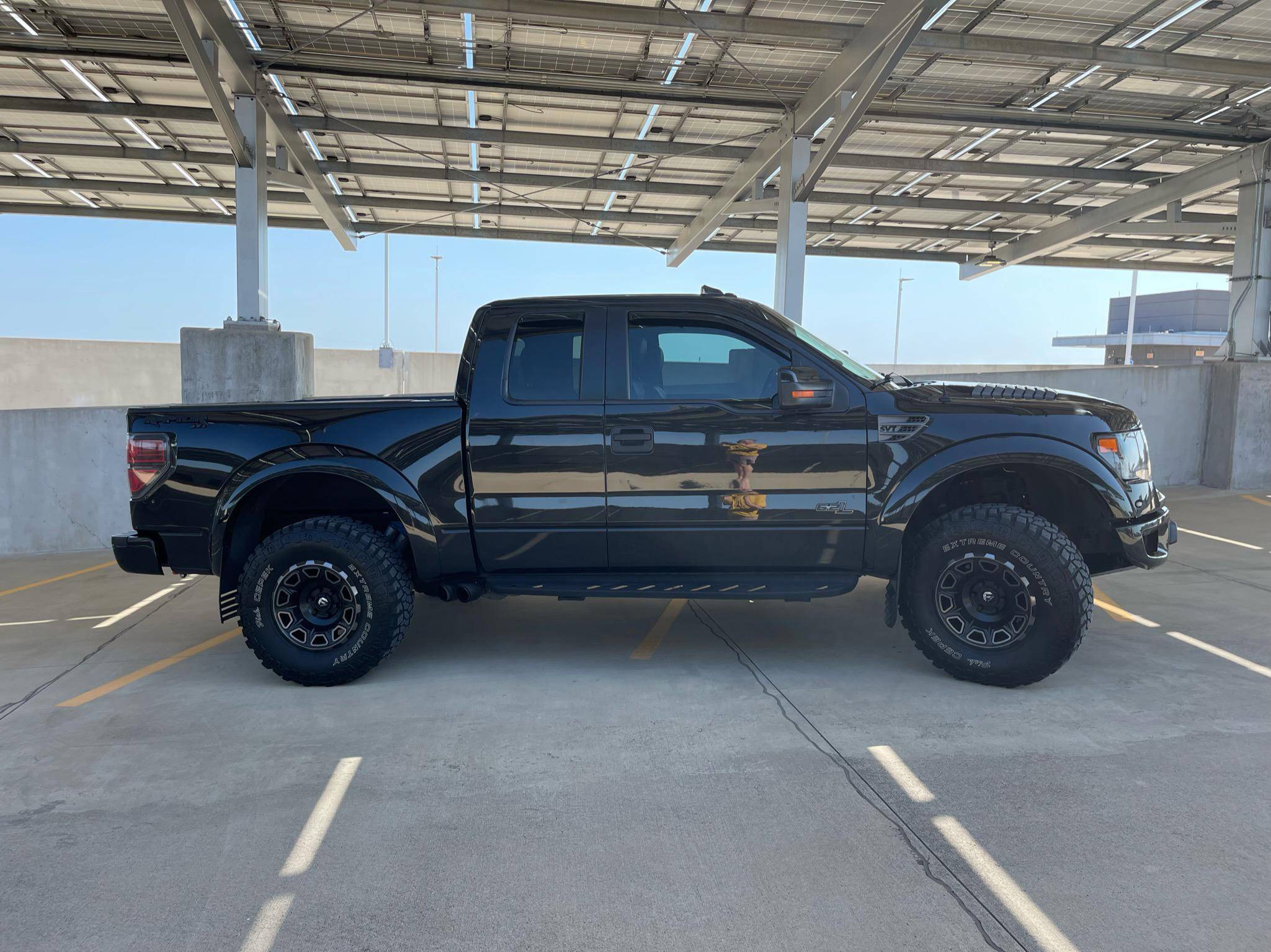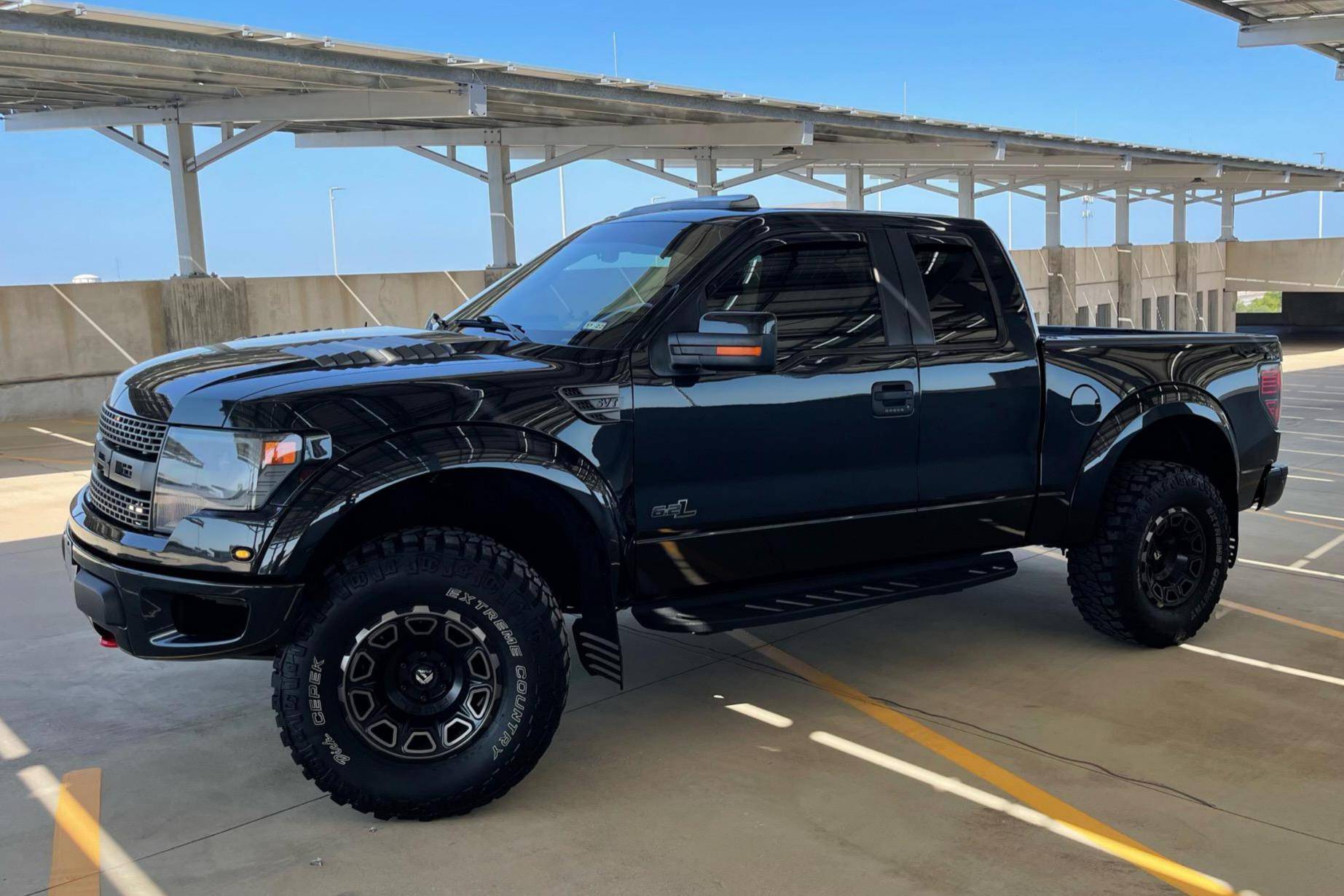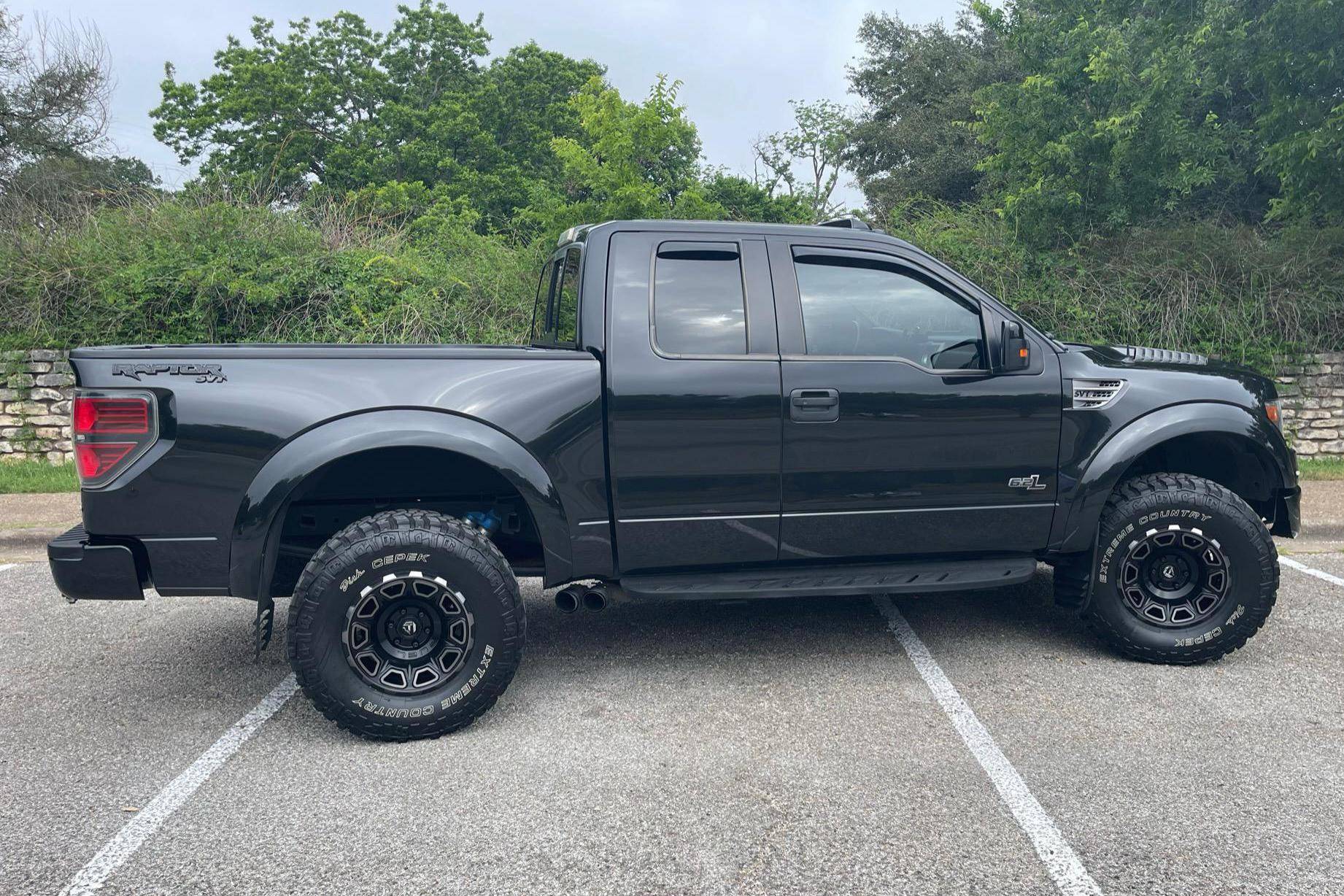 2014 Ford F-150 SVT Raptor, finished in Tuxedo Black Metallic with a black interior. Factory equipment includes Fox shocks, an electronic transfer case, running boards, a tow hitch receiver, heated and cooled front seats, a Sony sound system, navigation system, remote engine start, and more listed below. Modifications reported by the seller include 17-inch FUEL Vengeance wheels, an aFe Power Rebel side-exit exhaust system, a BBK Performance cold air intake, a Sprint Booster USA sprint booster, and more listed below. Ford redefined off-road performance when it introduced the first-generation F-150 Raptor for the 2010 model year. It was extremely capable off the beaten path, a claim many trucks can credibly make, but it could also drive flat-out on uneven surfaces, which is a much rarer trait in the pickup world. Pegging the Raptor at the intersection of drag racing and overlanding made it an instant hit. Power comes from a 6. 2-liter V8, rated at 411 horsepower and 434 lb-ft of torque. Output is sent to the rear or all four wheels via a 6-speed automatic transmission and 2-speed transfer case.