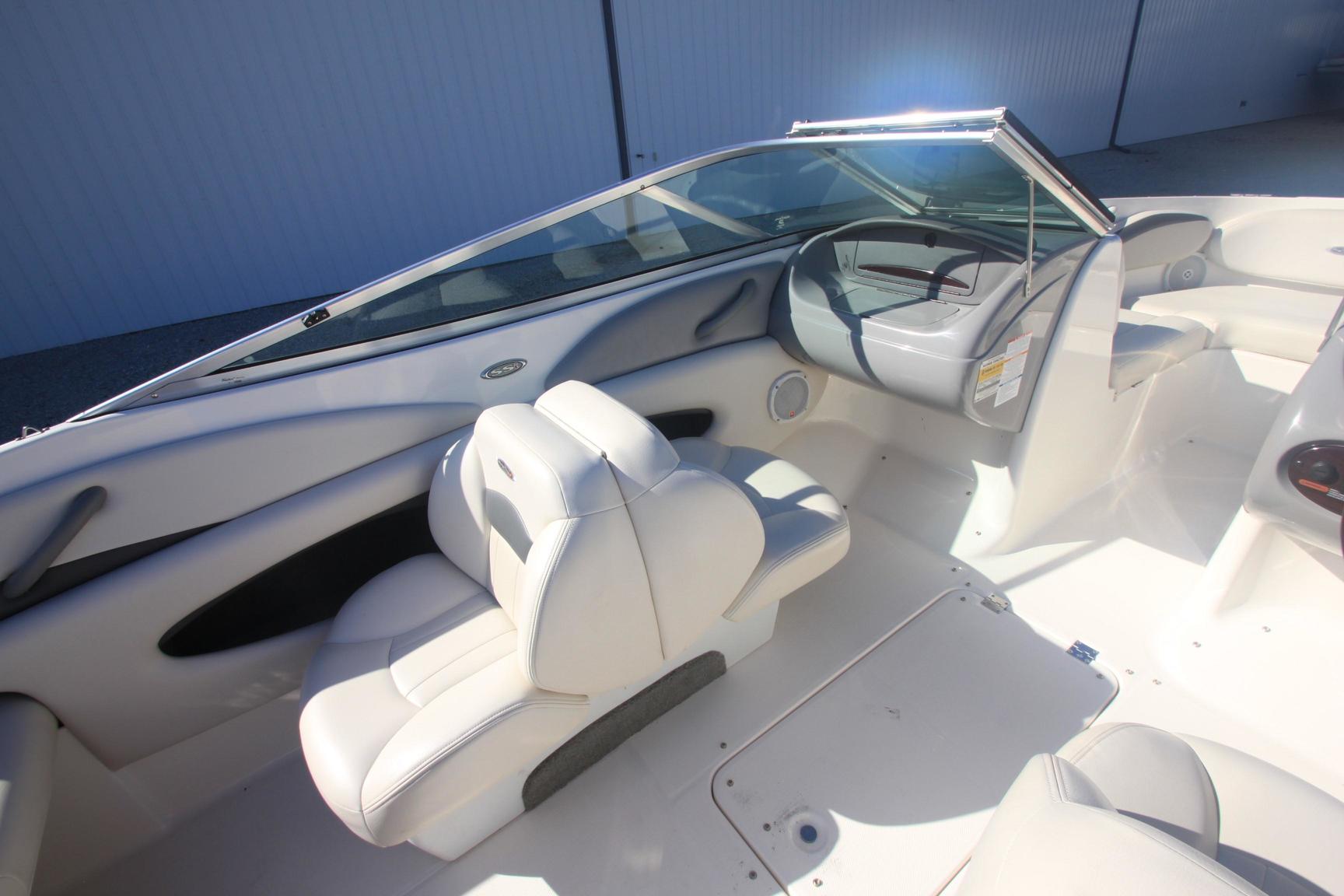 Stainless Steel Prop! An impressive family runabout that feels bigger than its centerline indicates, the 190 is a Chaparral bow to stern. Priced right and built to last, standard and sport seating options open up the possibilities. Inside, three-tone expanded vinyl, a wood grain dash, hinged bow cushions, and a built-in anchor locker with a protective cradle are a notch above most in this size bracket. Below the fiberglass cockpit inner liner, we use closed-cell injected foam for flotation and a quieter ride, Perma Panel marine coring, and durable stainless steel hardware. Custom Trailer made for Chaparral boats with a spare tire.