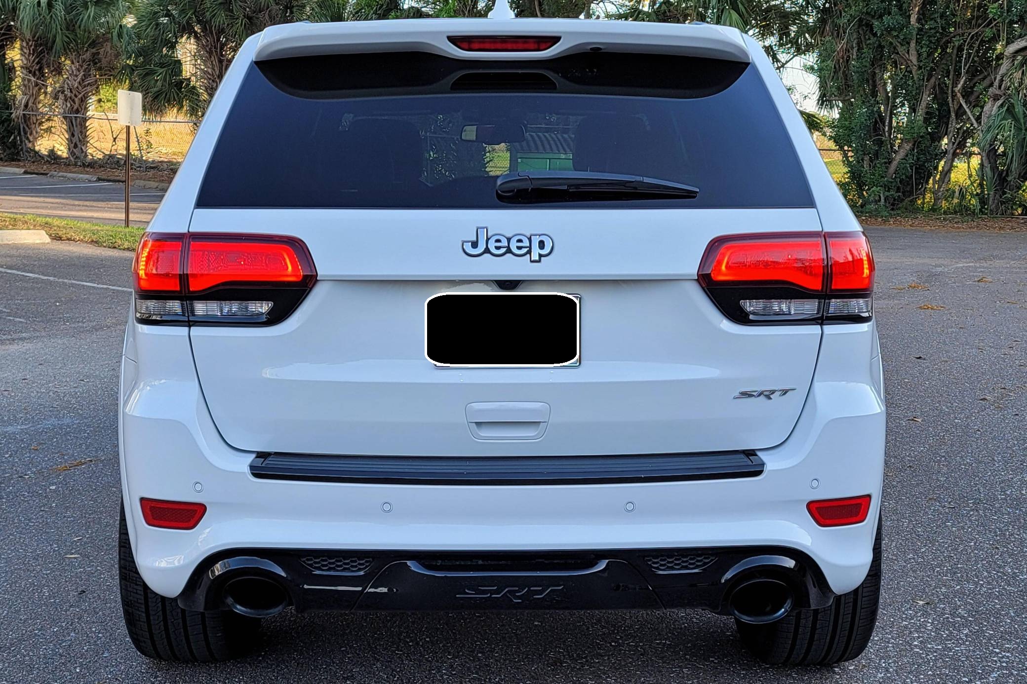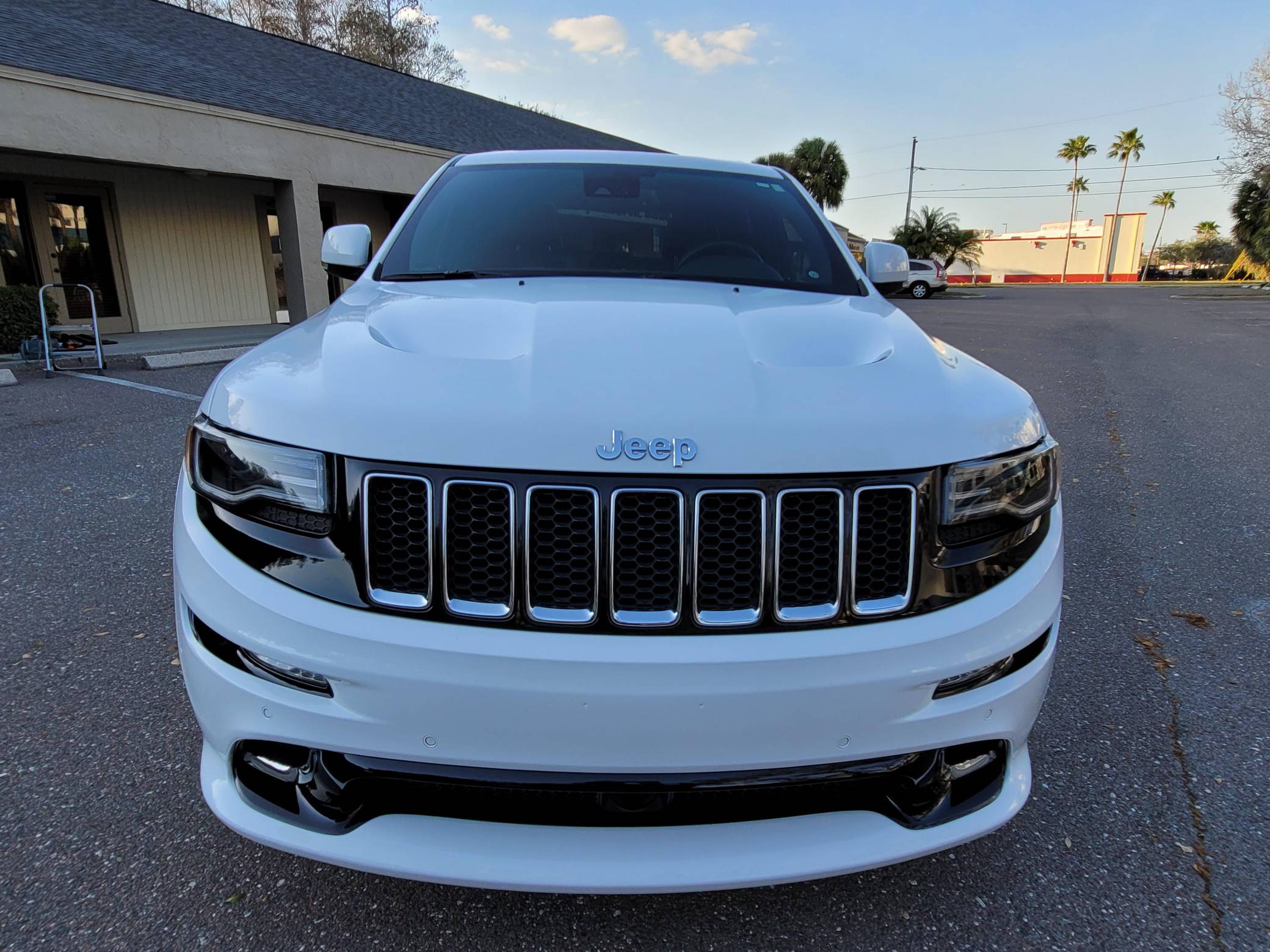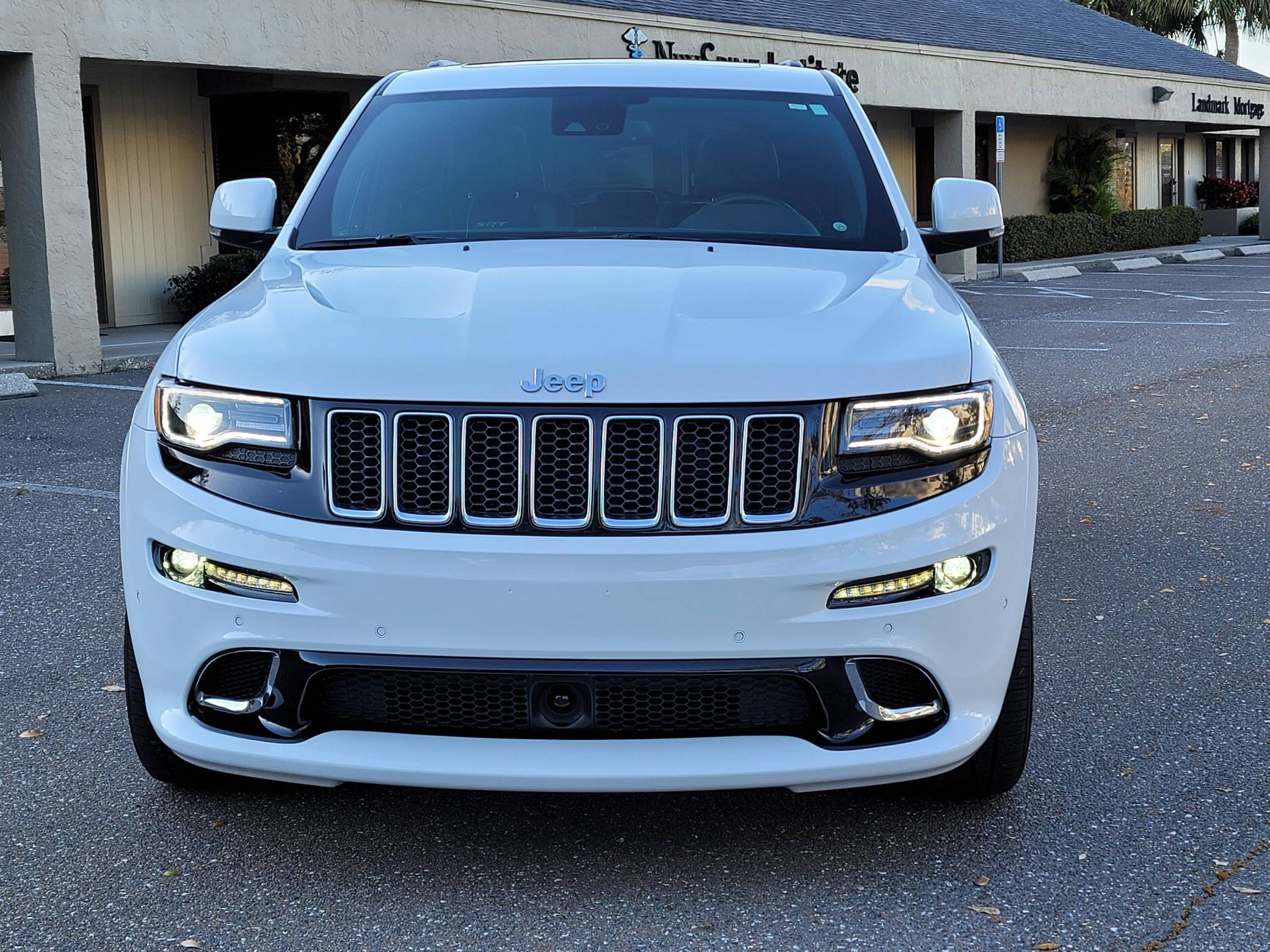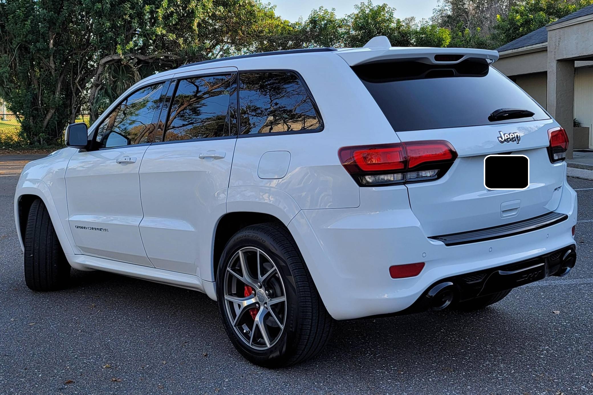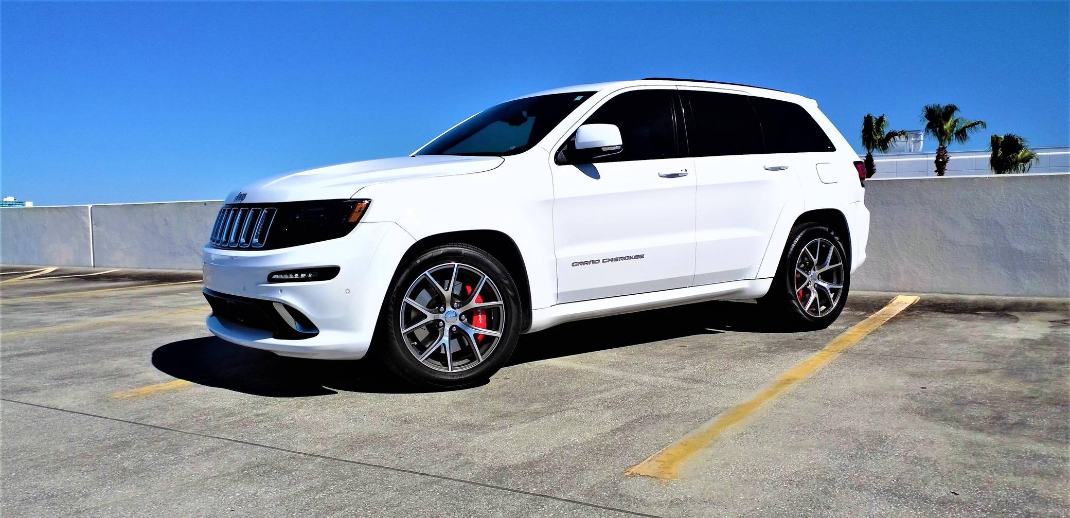 2016 Jeep Grand Cherokee SRT, finished in Bright White with a black interior. This SUV's odometer displays about 28,300 miles. Factory equipment includes 20-inch forged wheels, an electronic rear limited-slip differential, a trailer hitch, heated, ventilated, and power-adjustable front seats, heated rear seats, a 19-speaker Harman Kardon sound system with a subwoofer, and adaptive cruise control. The seller reports no modifications. Jeep demonstrated a completely different side of the "WK2"-generation Grand Cherokee when it released the SRT8 model for 2012. This version of the big SUV wasn't built to explore the wilderness: it was developed for on-pavement performance thanks to a Hemi V8 engine, an adaptive suspension system, and massive brakes. Jeep dropped the "8" from the name in 2014, and production ended in 2021. Power comes from a 6. 4-liter Hemi V8, rated at 475 horsepower and 470 lb-ft of torque. It spins the four wheels via an 8-speed automatic transmission.