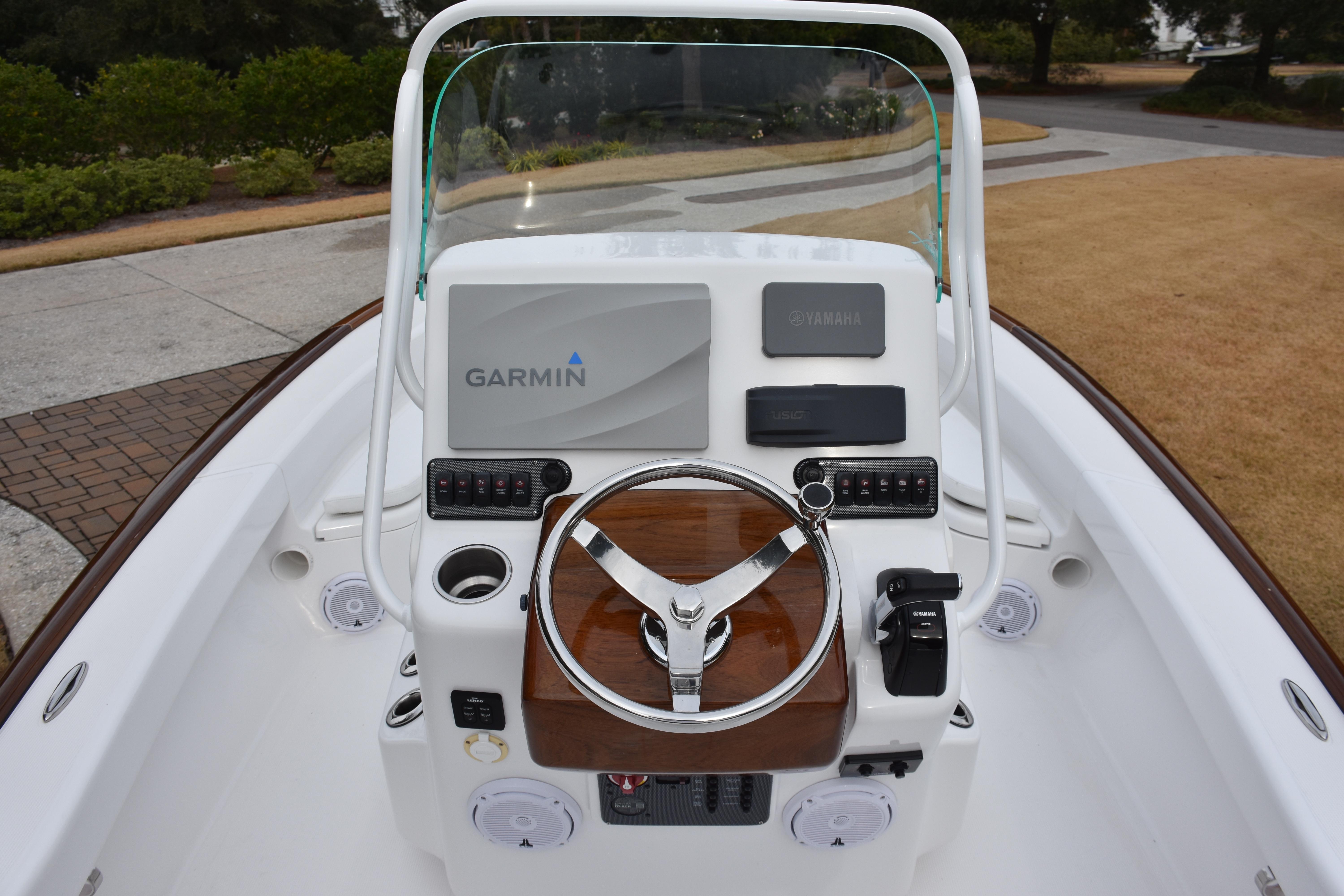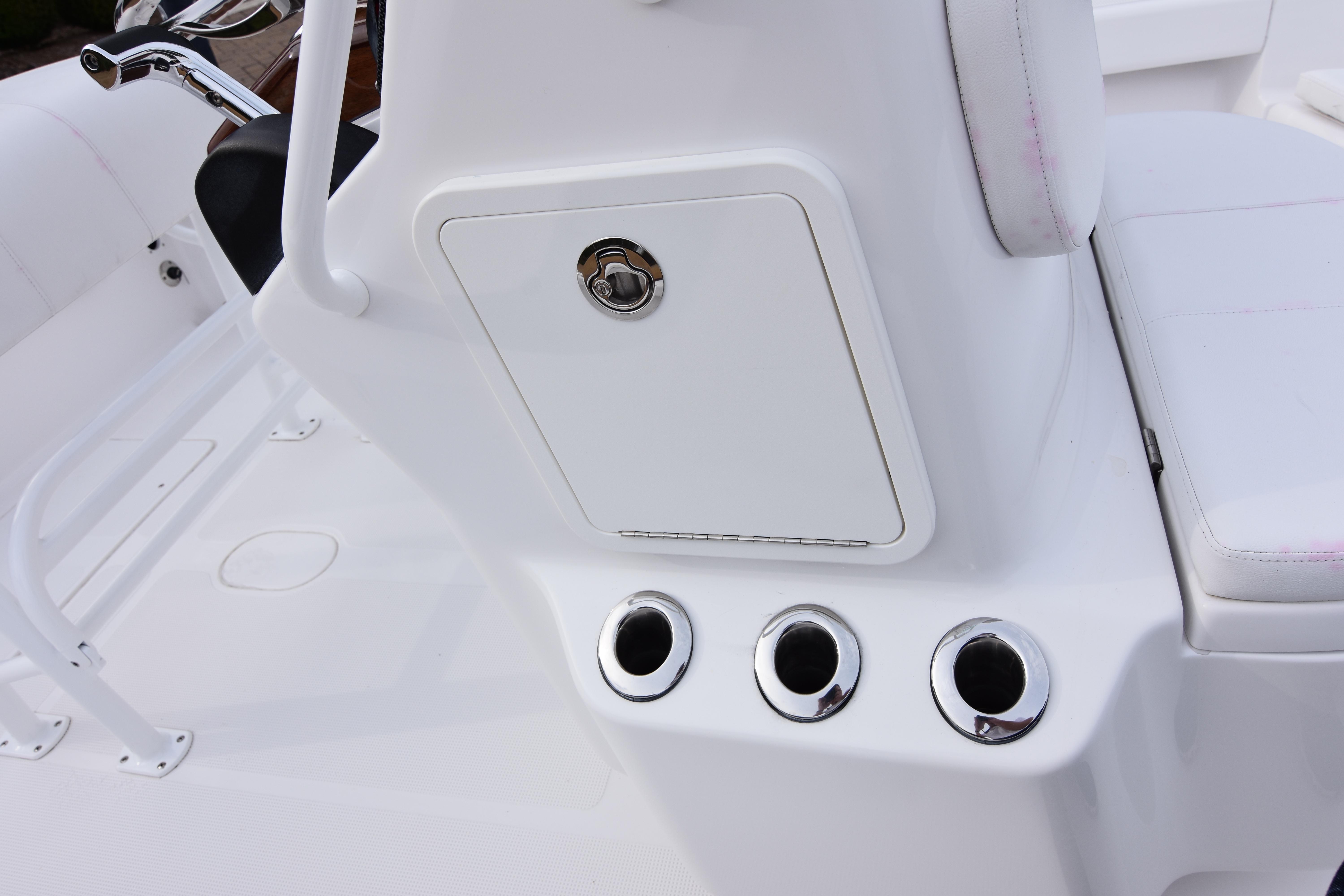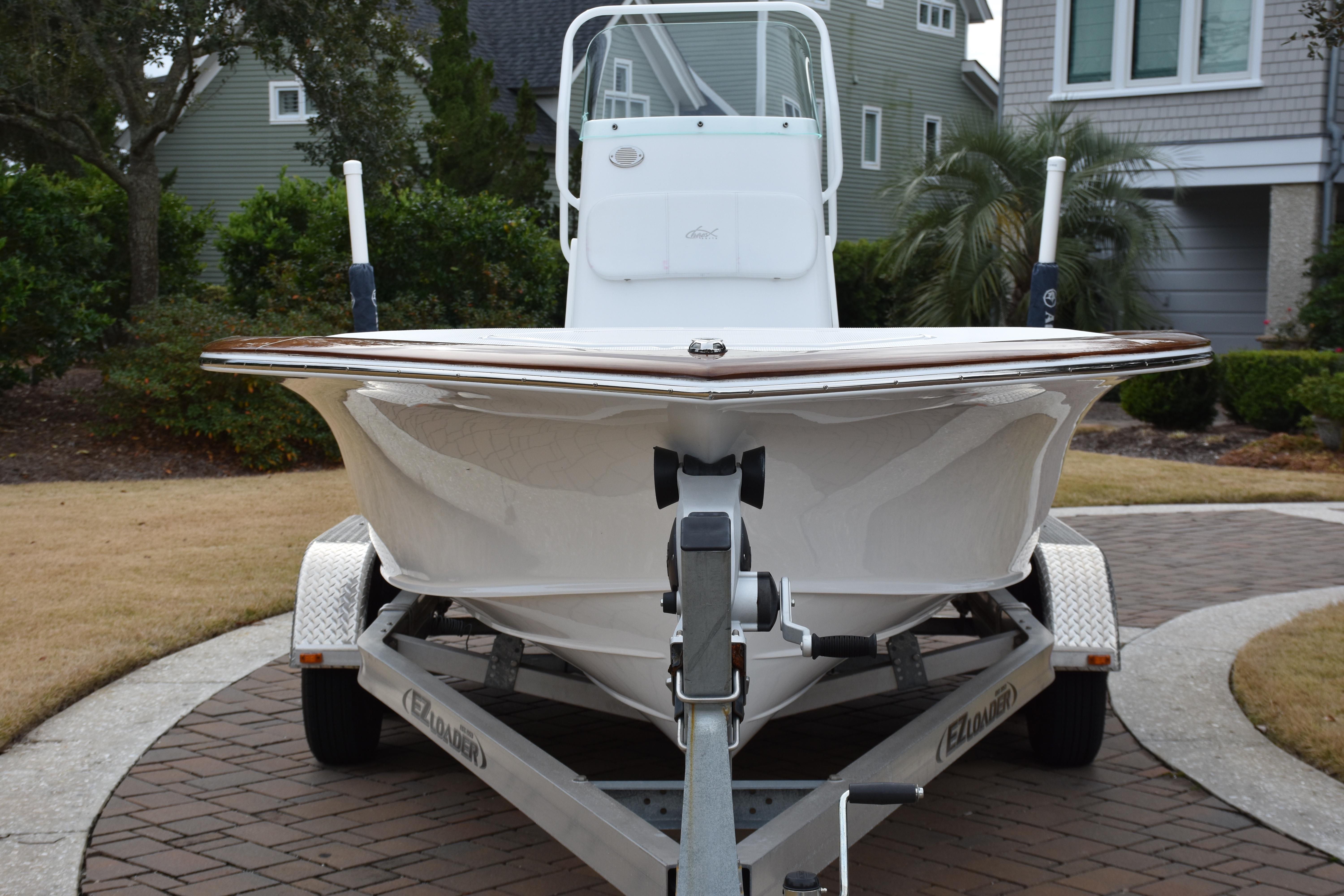 Fusion UD755 Bluetooth Marine Stereo, (4) JL Audio Speakers and Subwoofer, JL Audio M600/6 6-Channel Marine Amplifier 75 Watts, Garmin 1242XS GPS/Sounder, Teak Toe Rail and Helm Pod, Factory Leaning Post w/ Footrest and Backrest, Lumatech SeaBlaze 3 Underwater Lights, Custom Console Cover, Leaning Post Cover, Toe Rail Cover, Power Pole Anchor Blade w/ Wireless Remote, SS Pop-Up Cleats, and Hardware, Raw Water Livewell, Lenco Trim Tabs. 2017 EZ-Loader Tandem Axle Trailer.