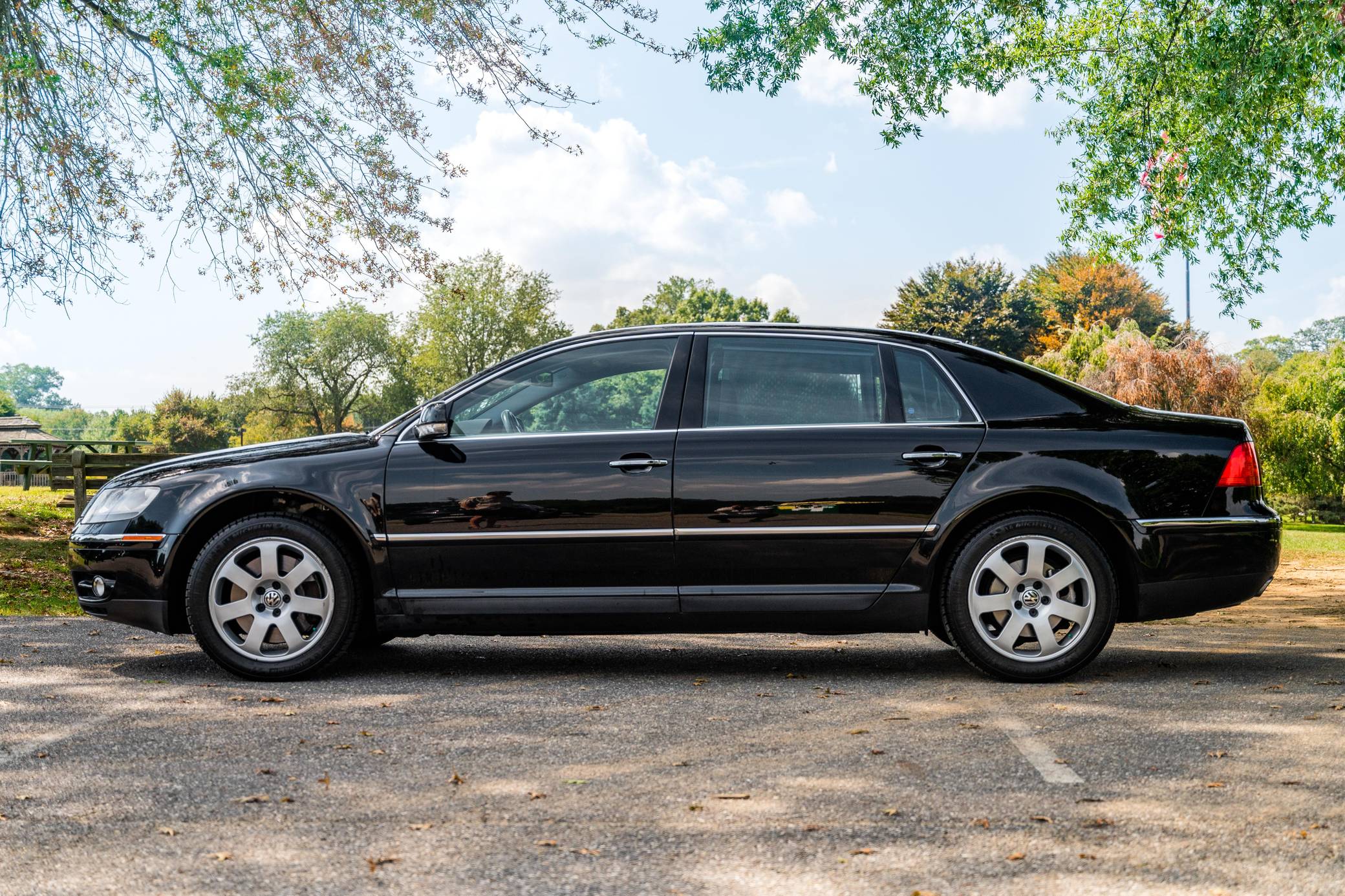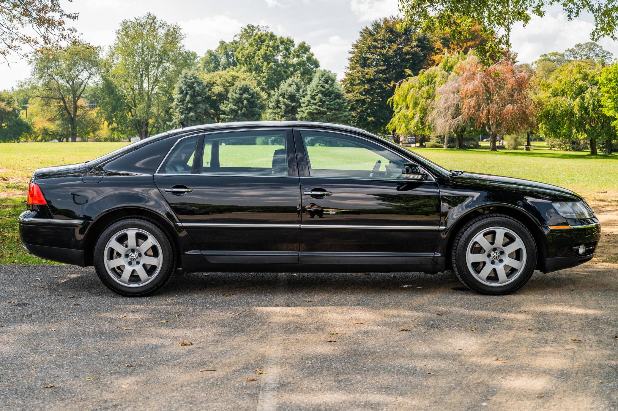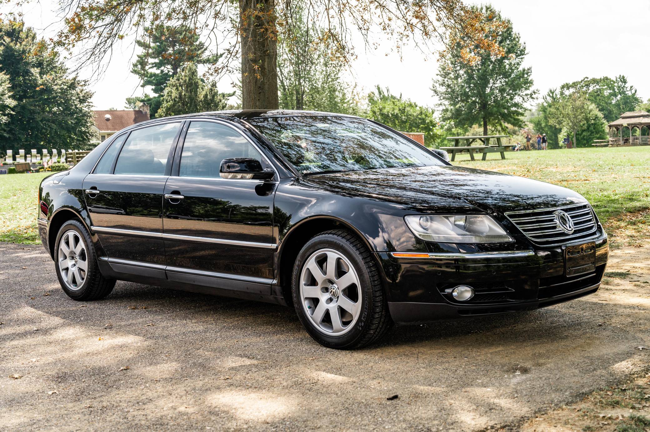THIS… is a 2004 Volkswagen Phaeton, finished in black with a Charcoal interior. The odometer on this Phaeton is currently set to read in Imperial units and displays approximately 50,000 miles. A build sheet is provided in the photo gallery, and a partial list of notable equipment includes the Technology Package, 18-inch alloy wheels, an air suspension system, leather upholstery and Eucalyptus wood trim, power-adjustable, heated, ventilated, and massaging front and rear seats, four-person seating, and more as detailed below. Modifications reported by the seller include a Volkswagen Phaeton push-button start system, an AudioVox MediaBridge multimedia integration kit with microphone, a back-up camera, a GruvenParts oil filter housing, aluminum oil cooler tube, and manifold levers and linkage arms, and more as detailed below. Launched in America as a 2004 model, the Phaeton embodied the upmarket shift masterminded by former Volkswagen Group chairman Ferdinand Piëch. It was built on the same basic platform as the Bentley Continental Flying Spur, and it was unabashedly positioned as the flagship of the Volkswagen brand. Although it was an excellent sedan by most period accounts, it failed to excite consumers in the United States and sales ended after the 2006 model year. Power comes from a 4. 2-liter V8, rated at 335 horsepower and 317 lb-ft of torque. Output is sent to all four wheels via a 6-speed automatic transmission and Volkswagen's 4Motion permanent all-wheel-drive system.