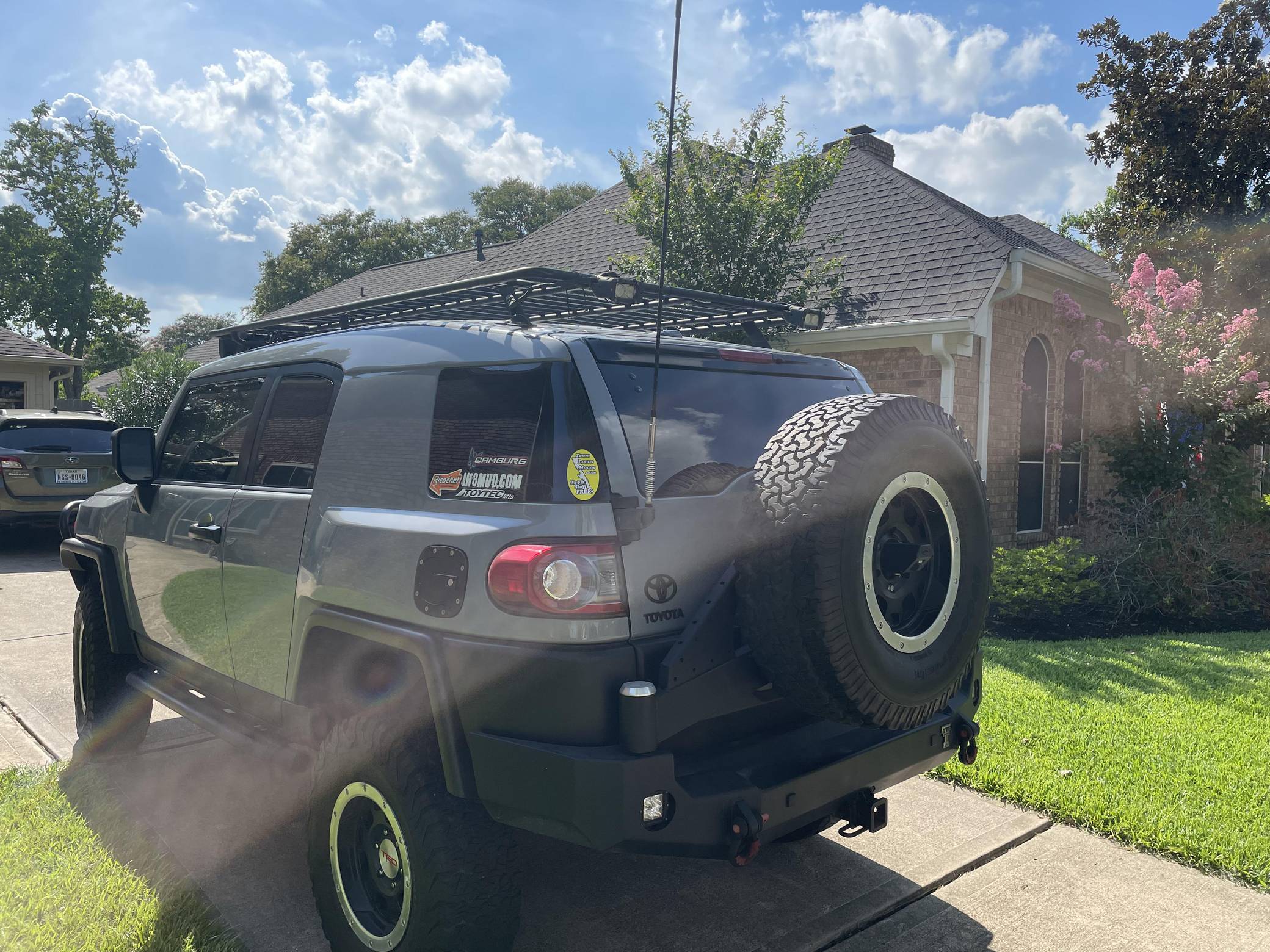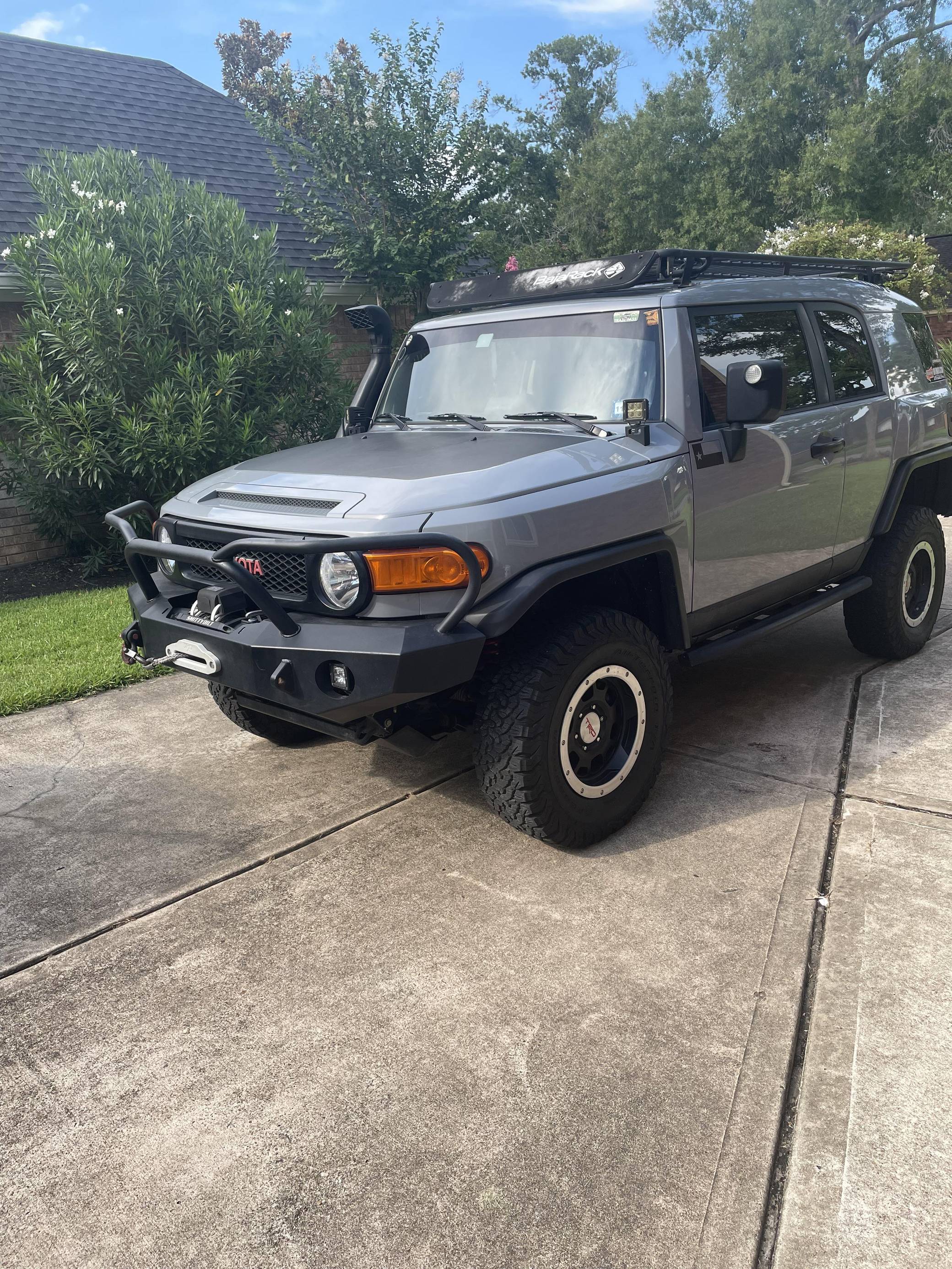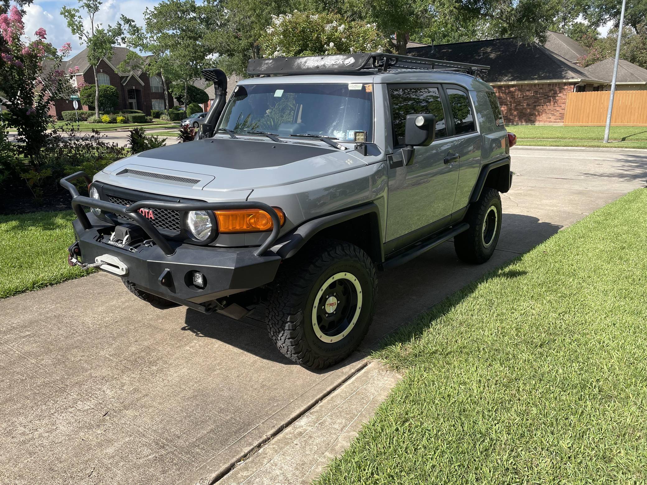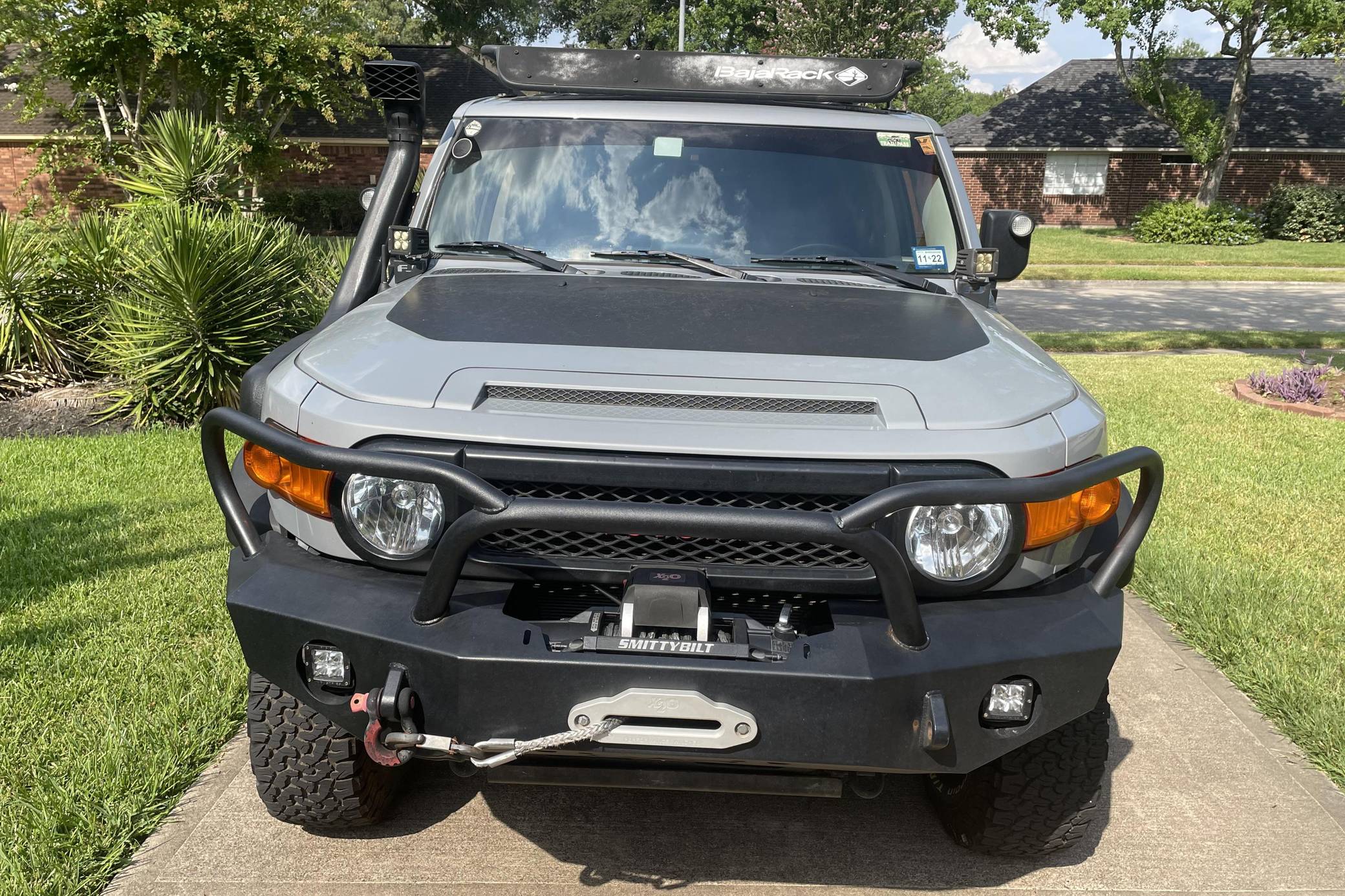 2013 Toyota FJ Cruiser Trail Teams, finished in Cement Gray with a black and gray interior. This SUV's odometer displays about 54,900 miles. Modifications reported by the seller include a ToyTec Lifts suspension lift kit, Camburg Engineering upper control arms, a snorkel-style air intake system, an Expedition One windshield washer fluid reservoir kit, Expedition One steel front and rear bumpers, a Smittybilt X2O winch, a BajaRack roof rack with a SPY light system, 4x4 sPOD switches on the center stack, and a Uniden America Corporation CB radio. More details about the aftermarket parts installed on this FJ Cruiser are provided below. Factory equipment includes the Trail Teams Special Edition Package, water-resistant cloth upholstery, heavy-duty all-weather flooring, air conditioning, and a CD player. Toyota gave the Jeep Wrangler its first direct rival in many years when it launched the FJ Cruiser for the 2007 model year. The heritage-laced exterior design hid proven suspension and mechanical components shared with the 4Runner, among other Toyota off-roaders, and the FJ stood out with quirks like rear half doors and three windshield wipers. It left the American market after the 2014 model year, though production carried on overseas, and it wasn't directly replaced. Power comes from a 4. 0-liter V6, rated at 260 horsepower and 271 lb-ft of torque. It spins the rear or the four wheels via a 5-speed automatic transmission and a 2-speed transfer case.