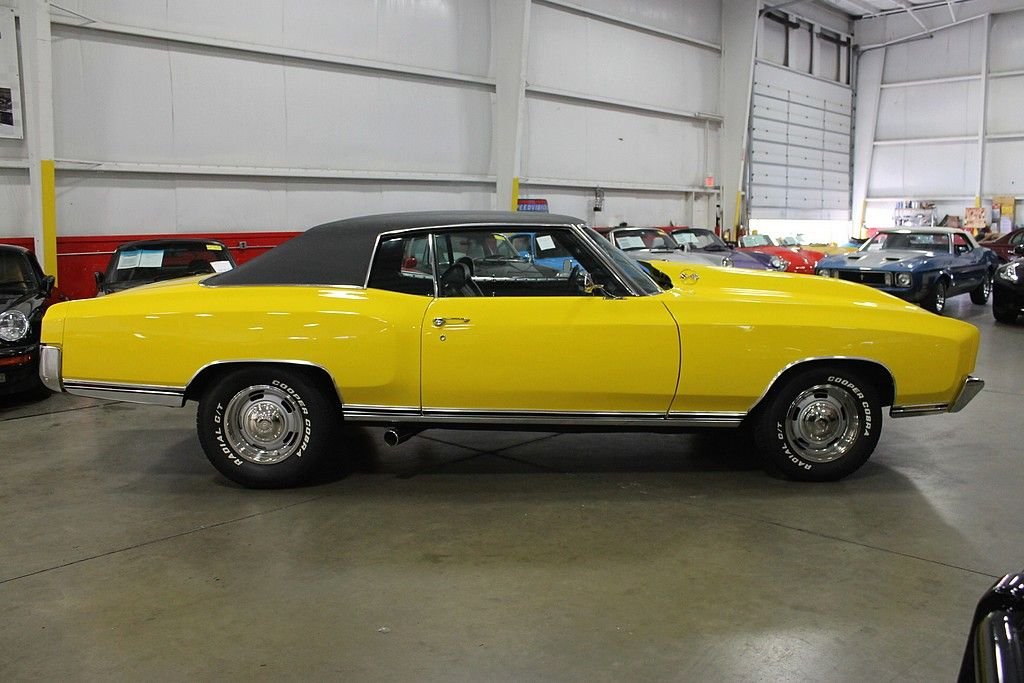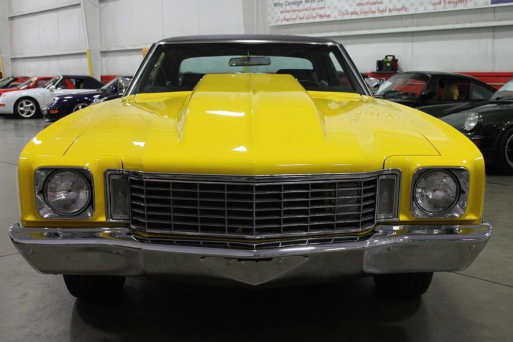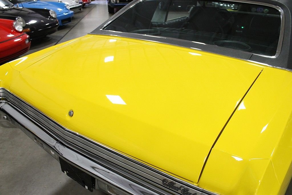 We are pleased to present this fortified 1972 Chevrolet Monte Carlo for your consideration. This car has been the recipient of a frame off, nut and bolt restoration and is finished off in brilliant Canary Yellow Paint over black Interior with black vinyl roof. The car is powered by a Supercharged 406 CID V8 with aluminum heads. Power is transferred via a 4-speed Muncie M-20 Transmission and applied by a 12 bolt posi rear end. Other appointments include power steering, power brakes, MSD ignition, Aluminum Radiator, Aluminum pully's with custom aluminum brackets, rally wheels, custom cowl hood, heads up style rally gauges, large oil pan, headers, dual Flomaster exhaust, new fuel tank, rear sway bars, rear air suspension, new fuel and brake lines, and a host of other modifications. Needless to say, this car is wicked fast but at the same time very well behaved in all situations. No expense was spared in the restoration and modification of this Monte Carlo and this is your chance to be the star of the show. Offered at a fraction of the cost to assemble.