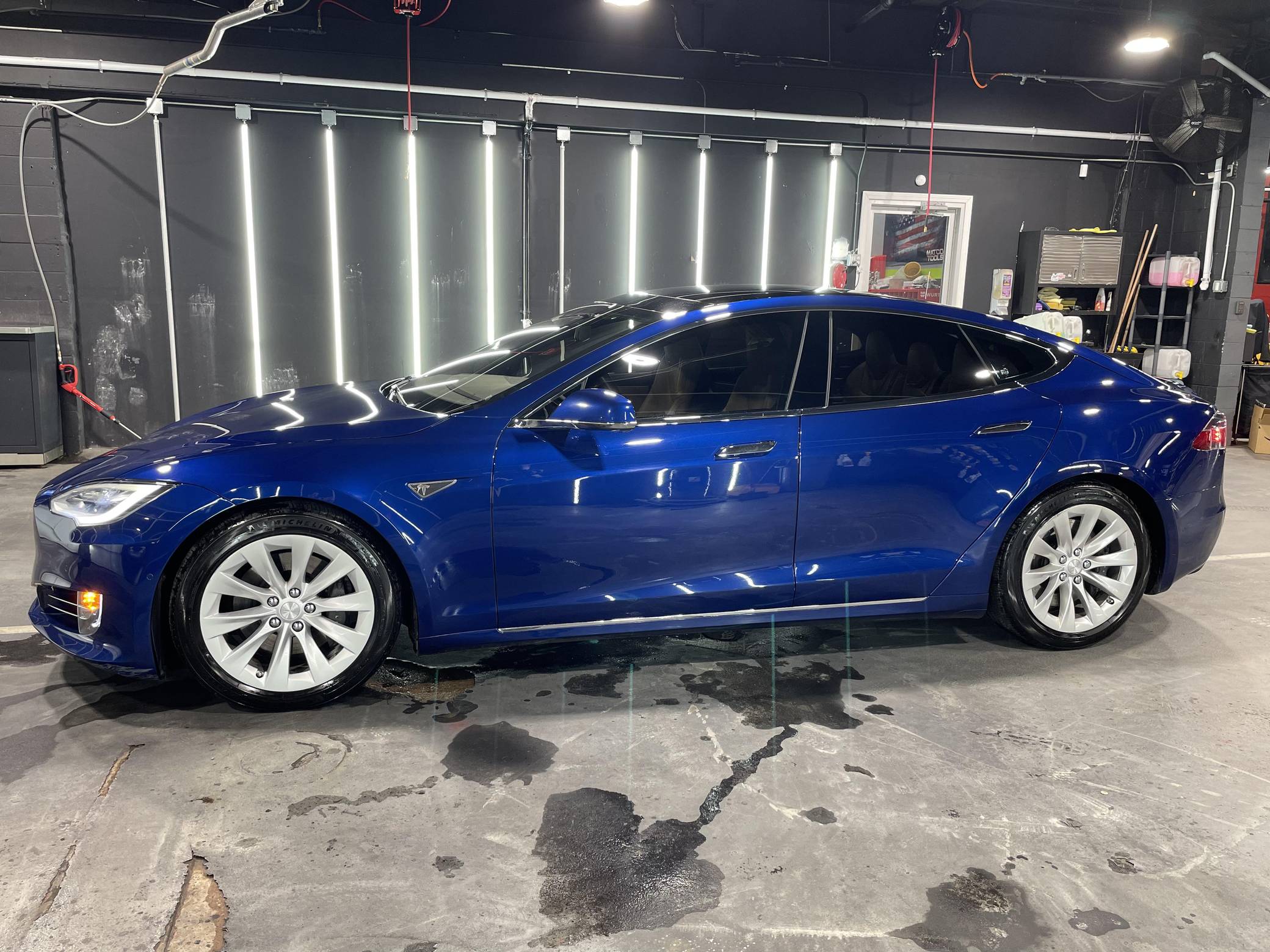 THIS… is a Tesla Model S 90D, finished in Deep Blue Metallic with a tan interior. Modifications reported by the seller are limited to tinted windows. The Tesla Model S is the car that vaulted the EV into the modern age. Tesla's policy of rolling out improvements as they're ready, sometimes via over-the-air software updates, means that this 2016 Model S benefits from multiple running changes. A 2016 refresh for the Model S saw the front end design changed to resemble the Model X, with the front radar sensor being hidden behind the Tesla logo. Additional updates include an upgraded air filtration system, improved charger with higher amps, LED headlights and fog lights, body-colored side sill plates, a black-colored rear diffuser, and a revised front trunk area. Power comes from a pair of electric motors (one per axle), which draw electricity from a 90-kilowatt-hour lithium-ion battery pack to zap the four wheels with 417 horsepower and 485 lb-ft of torque, according to third-party estimates. It has an EPA-estimated range of 294 miles.