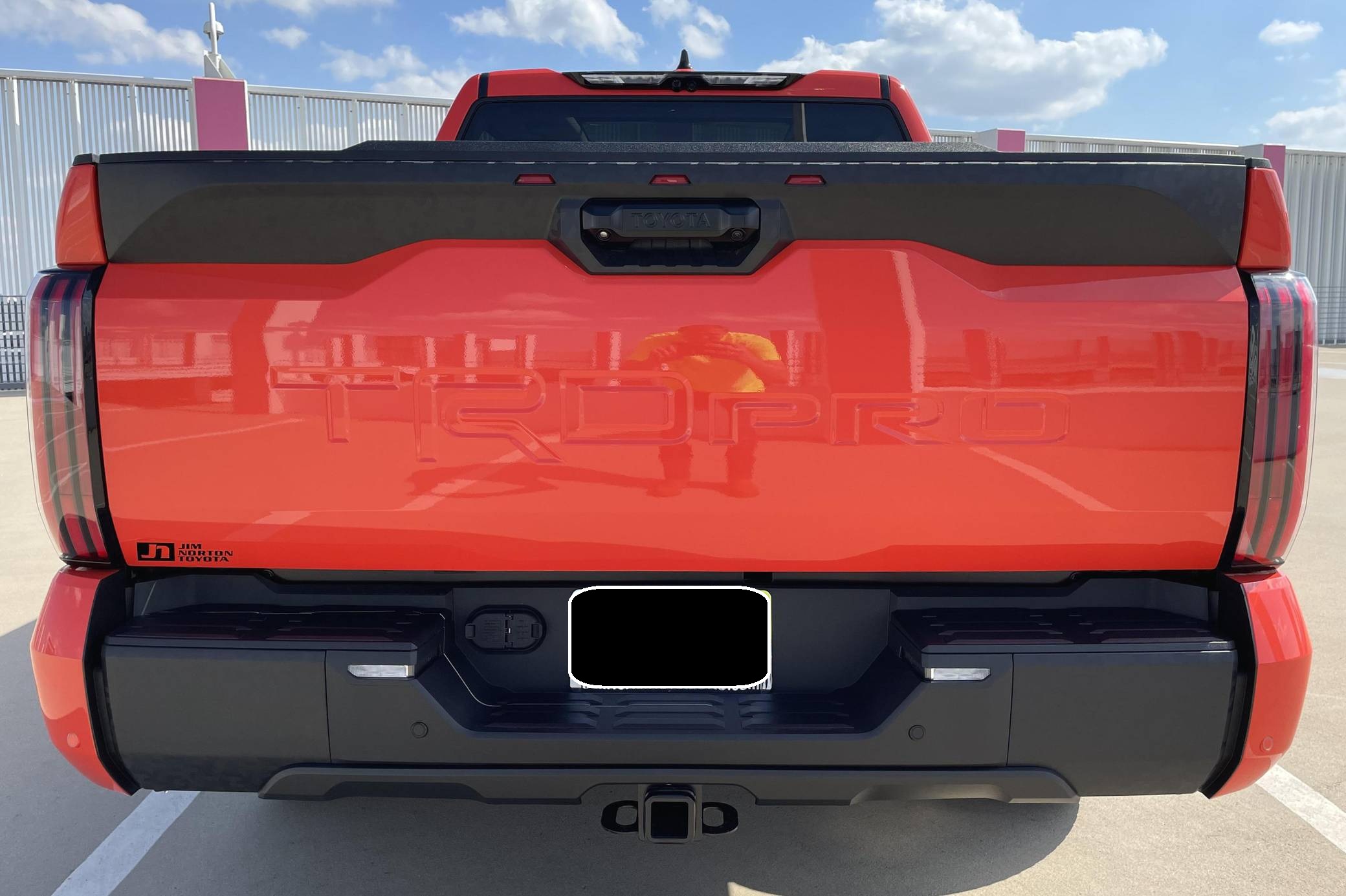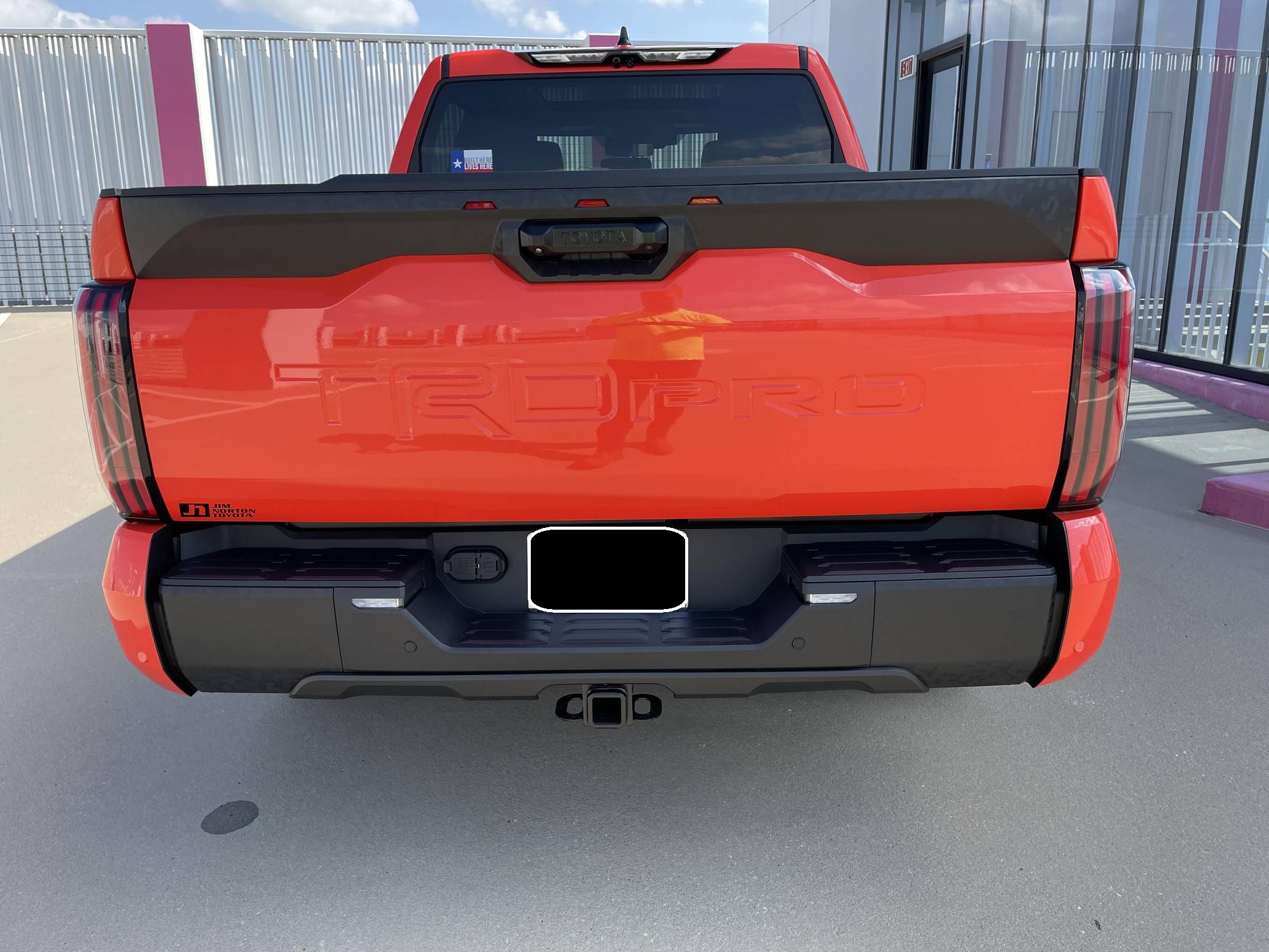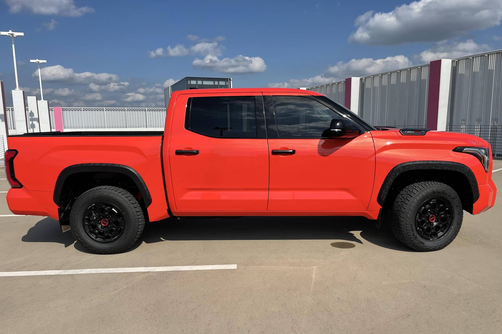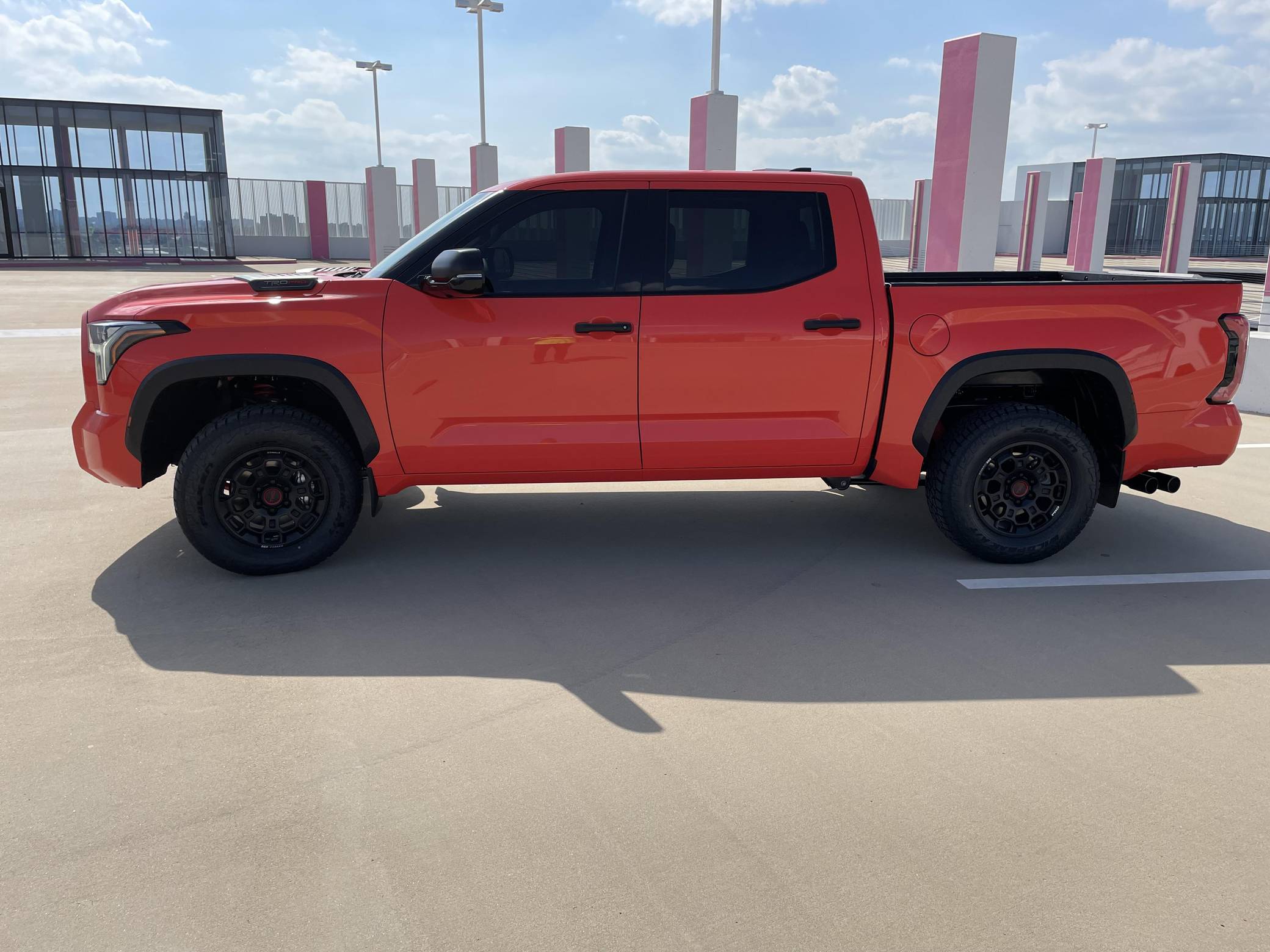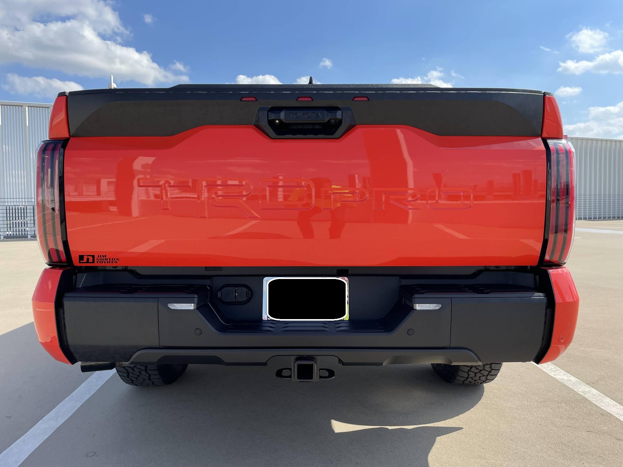 2022 Toyota Tundra TRD Pro, finished in Solar Octane with a black interior. The odometer on this Tundra currently displays 21 miles. 5 driver-assist suite, 18-inch BBS forged aluminum wheels, an electronically controlled locking rear differential, TRD Pro off-road suspension with FOX shocks, an LED light bar mounted in the grille, a TRD aluminum skid plate, an aluminum-reinforced composite bed with bed extender, a power tilt/slide panoramic sunroof, power-adjustable TRD Pro front seats, an integrated dashcam, a 12. 3-inch driver information screen, a 14-inch center touchscreen infotainment system, a 12-speaker JBL Premium audio system with subwoofer and amplifier, a rearview mirror camera, and more as detailed below. The seller reports no modifications. Called the "XK70" internally, the 3rd-generation Toyota Tundra debuted for the 2022 model year as the long-awaited follow-up to the 2nd-generation Tundra that cemented Toyota as a serious player in the full-size pickup segment. Gone is the V8, replaced by a turbocharged and (in some cases) electrified 6-cylinder options that not only helped increase fuel economy, but towing capacity and max payload as well. As before, an off-road-focused TRD Pro trim level is offered that combines muscular styling cues with genuine go-anywhere capabilities. Power comes from an "I-FORCE MAX" gasoline-electric hybrid powertrain, which consists of a 3. 5-liter twin-turbocharged V6 engine and an electric motor/generator. The system is rated at a combined 437 horsepower and 583 lb-ft of torque. Output is sent to the rear or all four wheels via a 10-speed automatic transmission and a 4WDemand part-time 4-wheel drive system with an electronically-controlled transfer case.