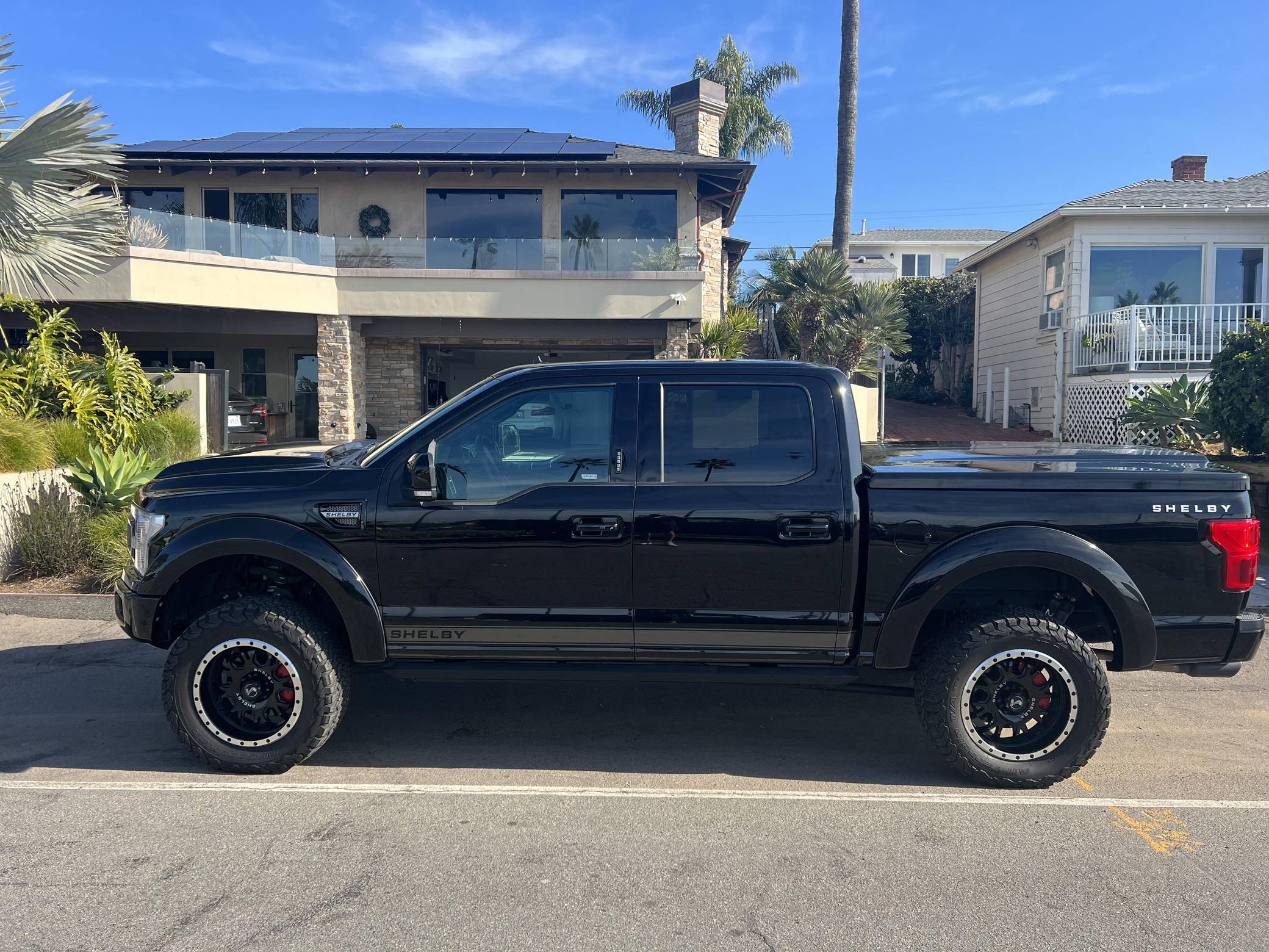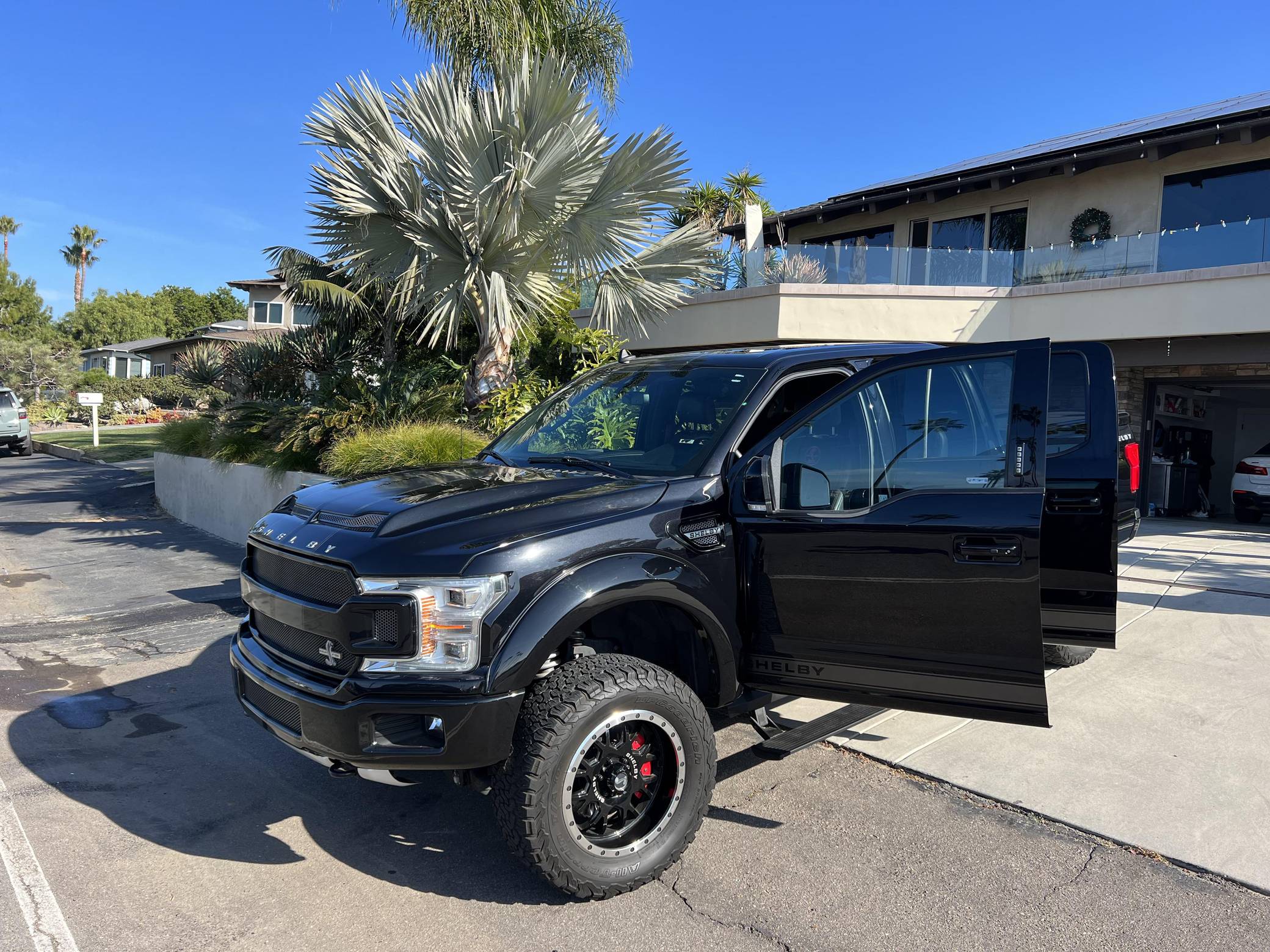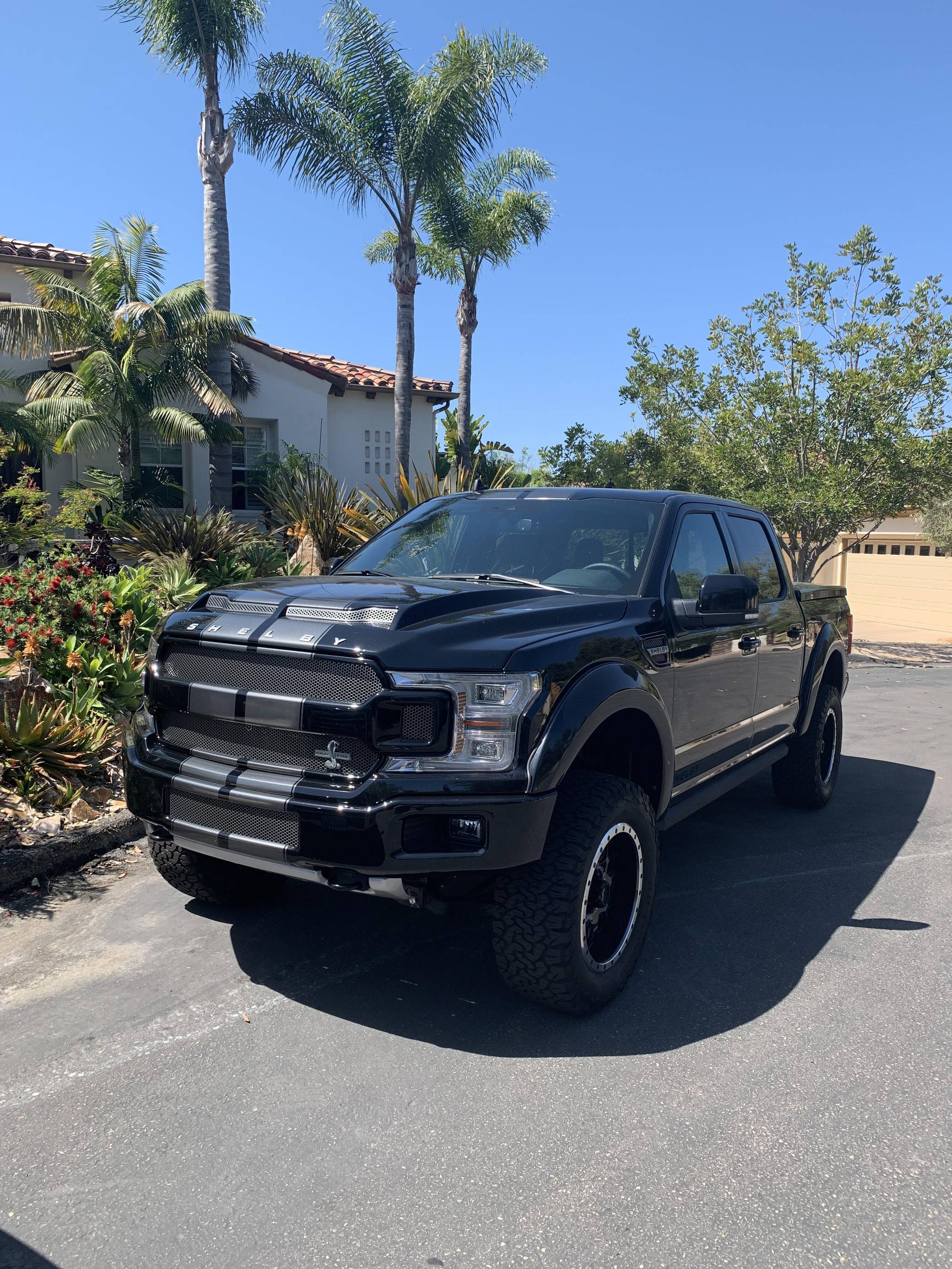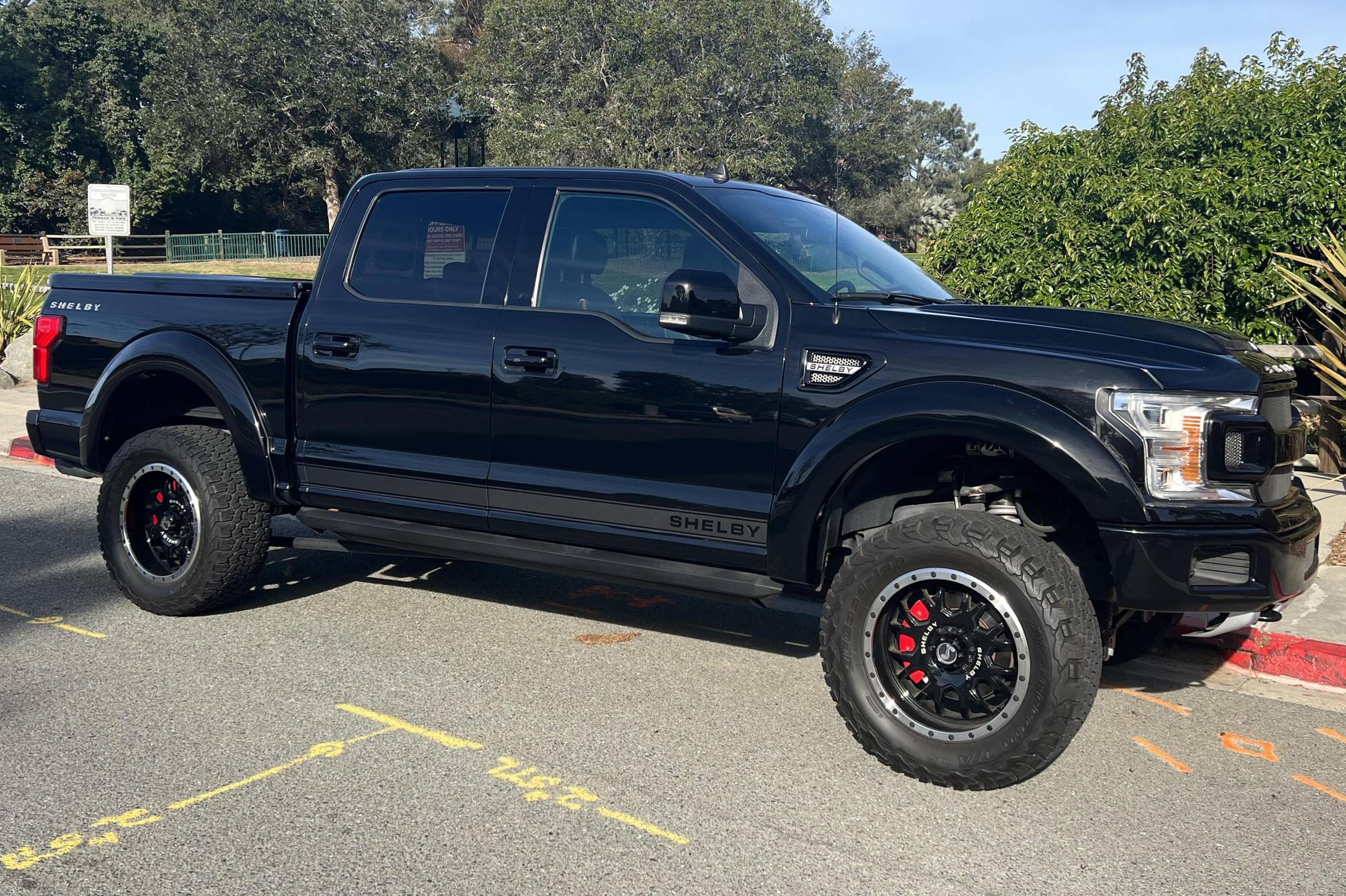THIS. . . is a 2019 Ford Shelby F-150 4x4, finished in Agate Black with a black interior. This truck's odometer displays about 9,800 miles. Factory equipment includes the Equipment Group 502A, a 36-gallon extended-range fuel tank, a trailer hitch, a twin-panel moonroof, heated, ventilated, and power-adjustable front seats, power-adjustable pedals, a power-sliding rear window, a 360-degree camera, and adaptive cruise control. Modifications reported by the seller include 20-inch Shelby wheels, a suspension system lift kit, a Shelby-specific body kit, a tonneau cover, carbon fiber interior trim, and bright pedals. Ford gave the perennially popular F-150 a major overhaul for 2015. Again available in a mind-bogglingly vast selection of configurations, the truck relied on aluminum to shed up to 700 pounds over its predecessor, and it was offered with a longer list of tech and comfort features. Production ended in 2020. Power comes from a 5. 0-liter "Coyote" V8, rated at 395 horsepower and 400 lb-ft of torque. It spins the rear or the four wheels via a 10-speed automatic transmission and a 2-speed transfer case.