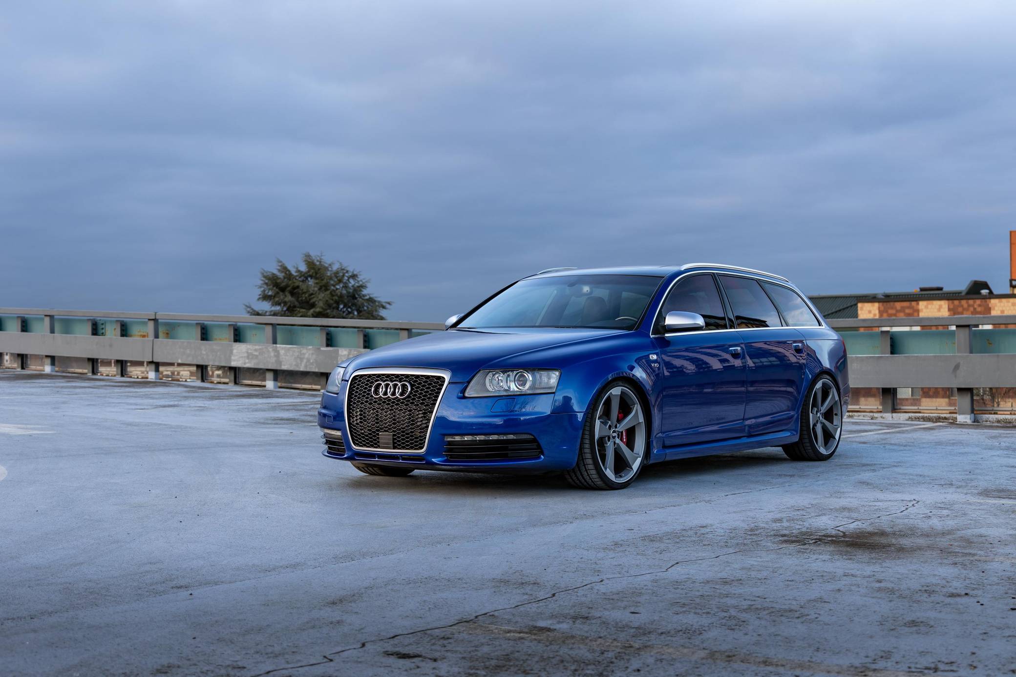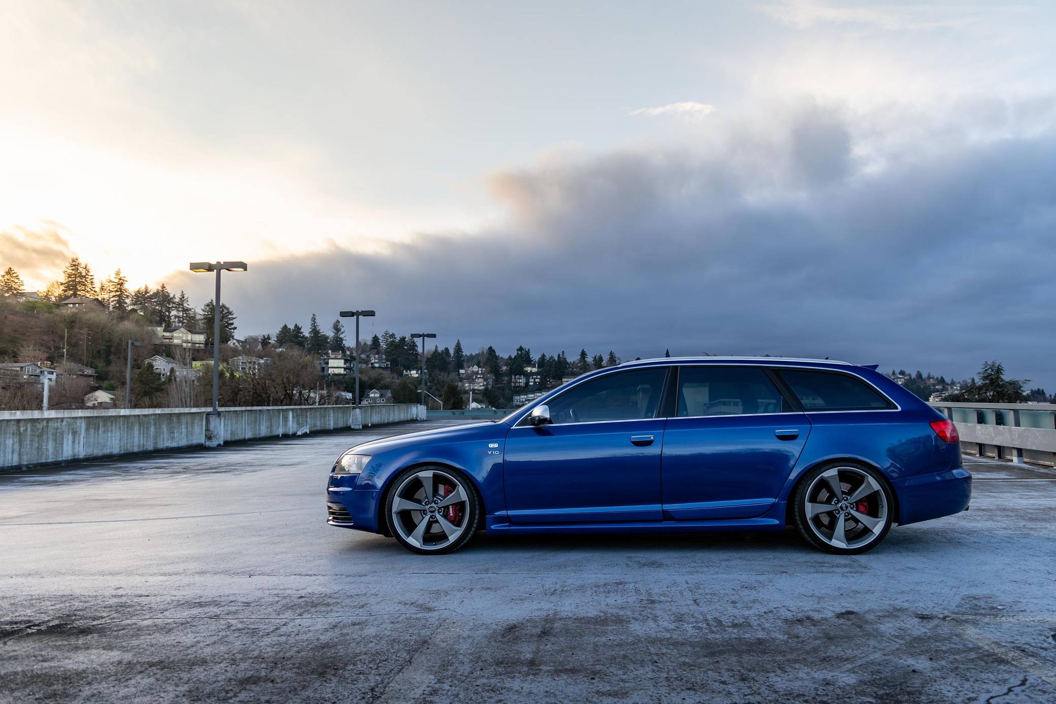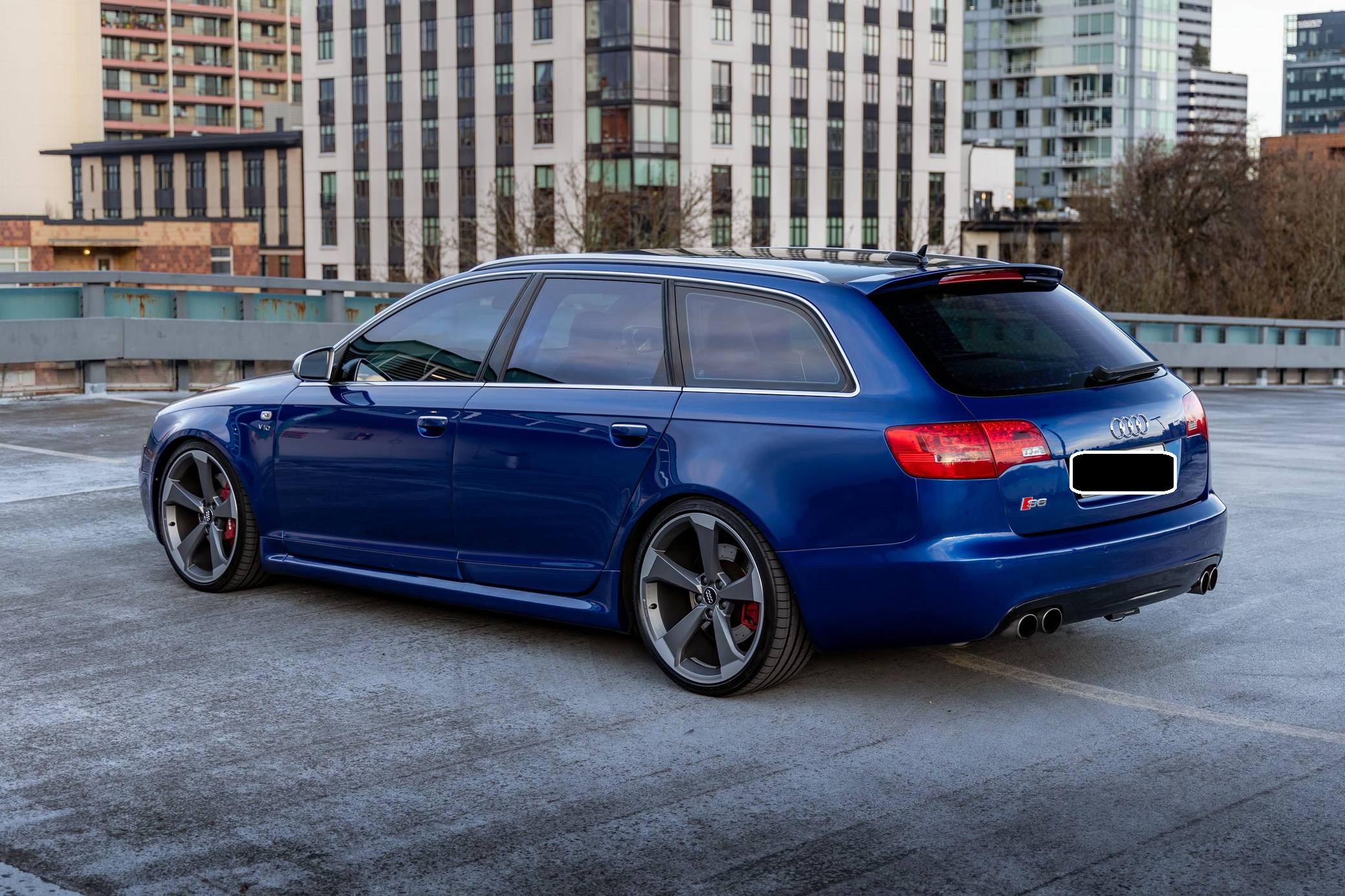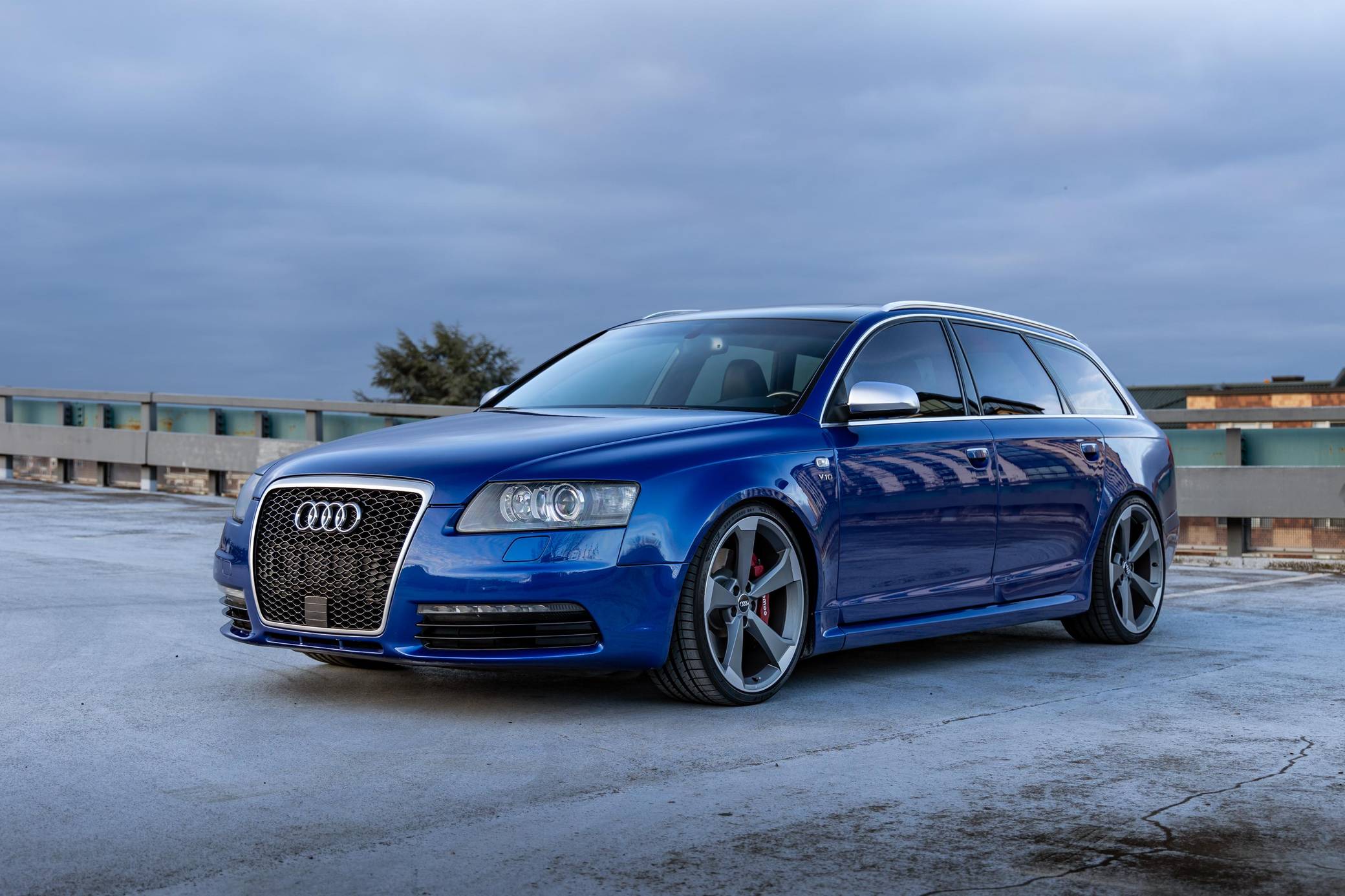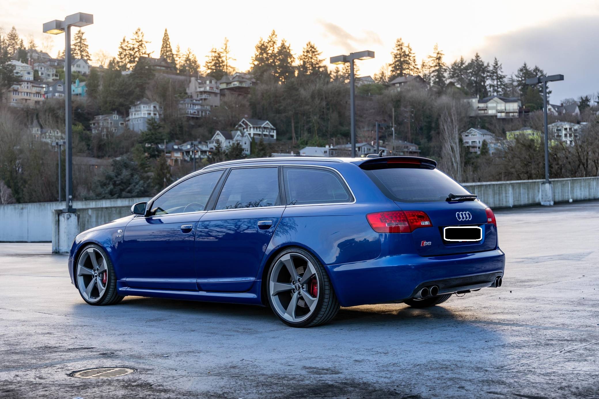 2006 Audi A6 Avant Quattro, finished in Sepang Blue with a black interior. Substantially modified, this A6 Avant is powered by a 5. 2-liter V10 paired with a 6-speed automatic transmission sourced from a 2008 C6-generation Audi S6. Other modifications include C6 RS6 rocker panels, S6 Recaro sport front and rear seats, an aftermarket exhaust system, 20-inch B9 S5 wheels, and much more detailed below. Factory equipment includes a Quattro permanent all-wheel-drive system, a sunroof, Bose sound system, and dual-zone automatic climate control. This "C6" generation A6 Avant benefits from the platform's consistent upgrades since introduction for the 2004 model year. Additions include LED lighting, and an updated Quattro all-wheel drive system with 40-60 front-rear split. Sales of the A6 Avant were discontinued in North America after the 2011 model year. The V10-powered S6 was launched for the 2007 model year, though the S6 Avant wagon never made it to the United States. Power for this S6 comes from a 5. 2-liter V10, rated at 435 horsepower and 389 lb-ft of torque. Due to the modifications performed, it may produce more power, but a dyno sheet was not provided to confirm. It spins all four wheels via a 6-speed automatic transmission and Audi's Quattro permanent all-wheel-drive system.