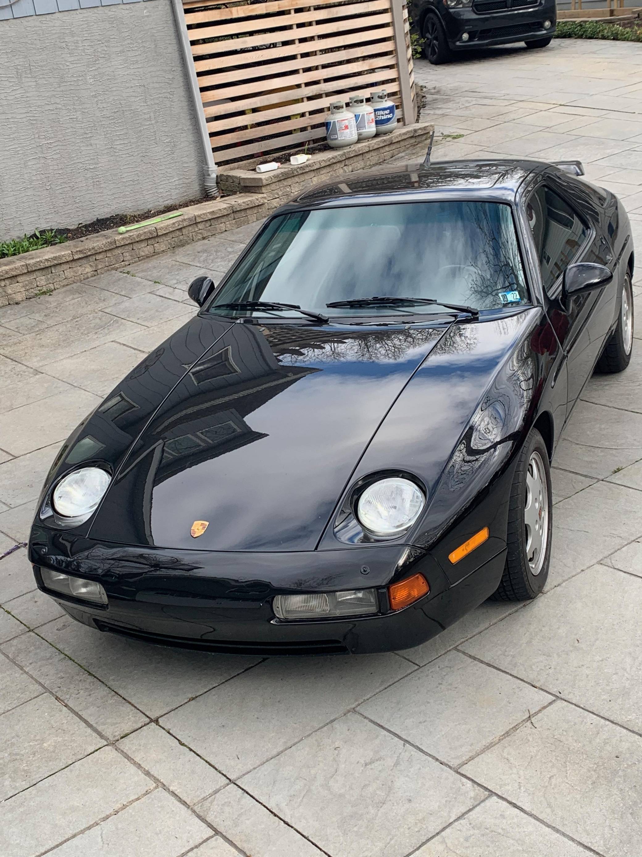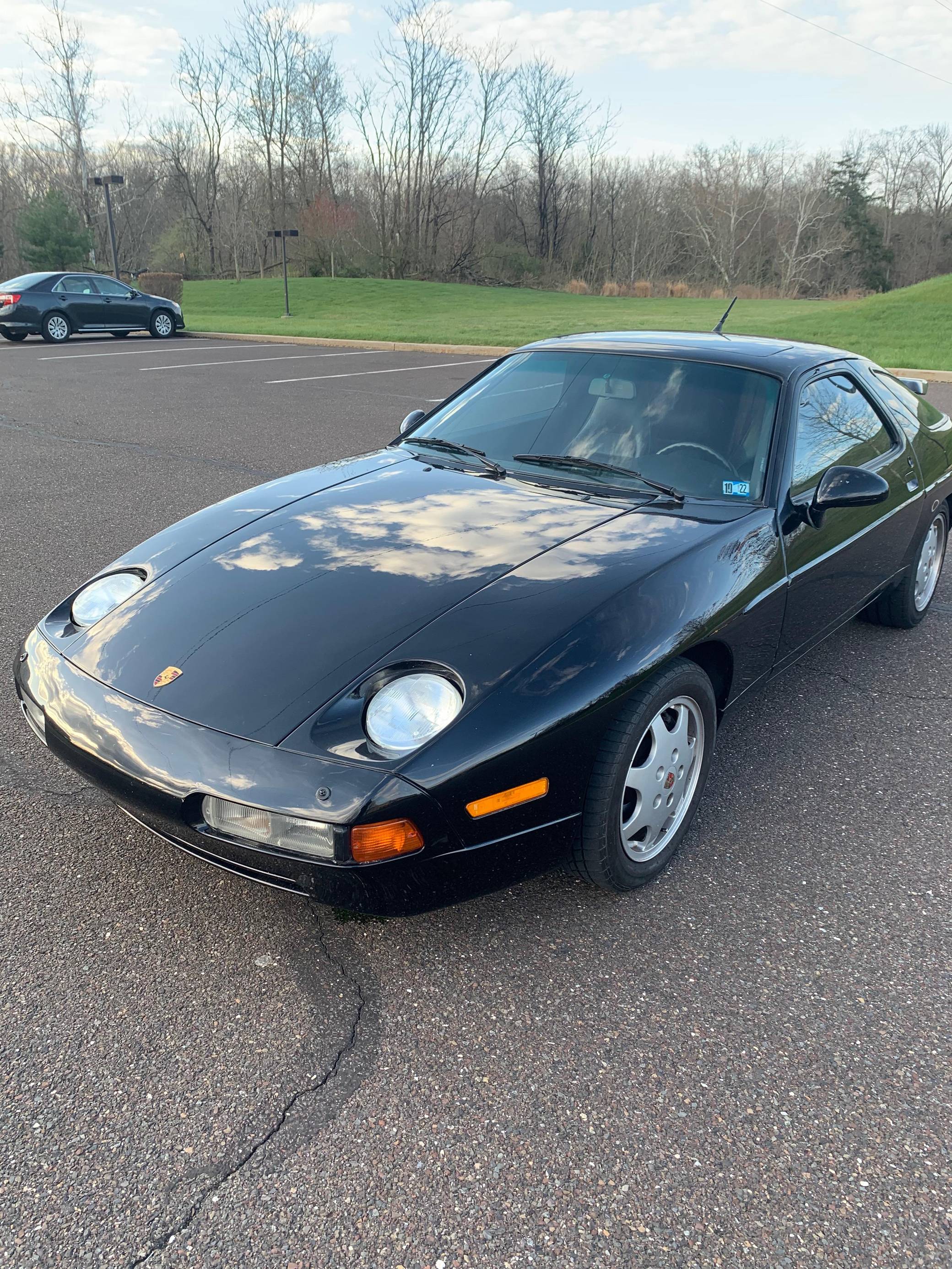 1990 Porsche 928 GT, finished in black with a black interior. This coupe's odometer displays about 85,700 miles. Factory equipment includes 16-inch wheels, a rear spoiler, a sunroof, leather upholstery, power-adjustable front seats, and rear sunvisors. Modifications reported by the seller are limited to tinted windows, a Split Second air/fuel ratio meter, and a Blaupunkt head unit. Originally developed to replace the 911, the 928 made its American debut for 1978. It looked nothing like its intended predecessor, it adopted a completely different engine layout, and Porsche relied on aluminum components to keep weight in check. Horsepower increased on a regular basis, and the 928 remained positioned at the top of Porsche's line-up of regular-production cars until it finally retired after the 1995 model year. The manual-only GT sold briefly was positioned as a sportier alternative to the S4. Power comes from a 5. 0-liter V8, rated at 330 horsepower and 317 lb-ft of torque. It spins the rear wheels via a 5-speed manual transaxle.