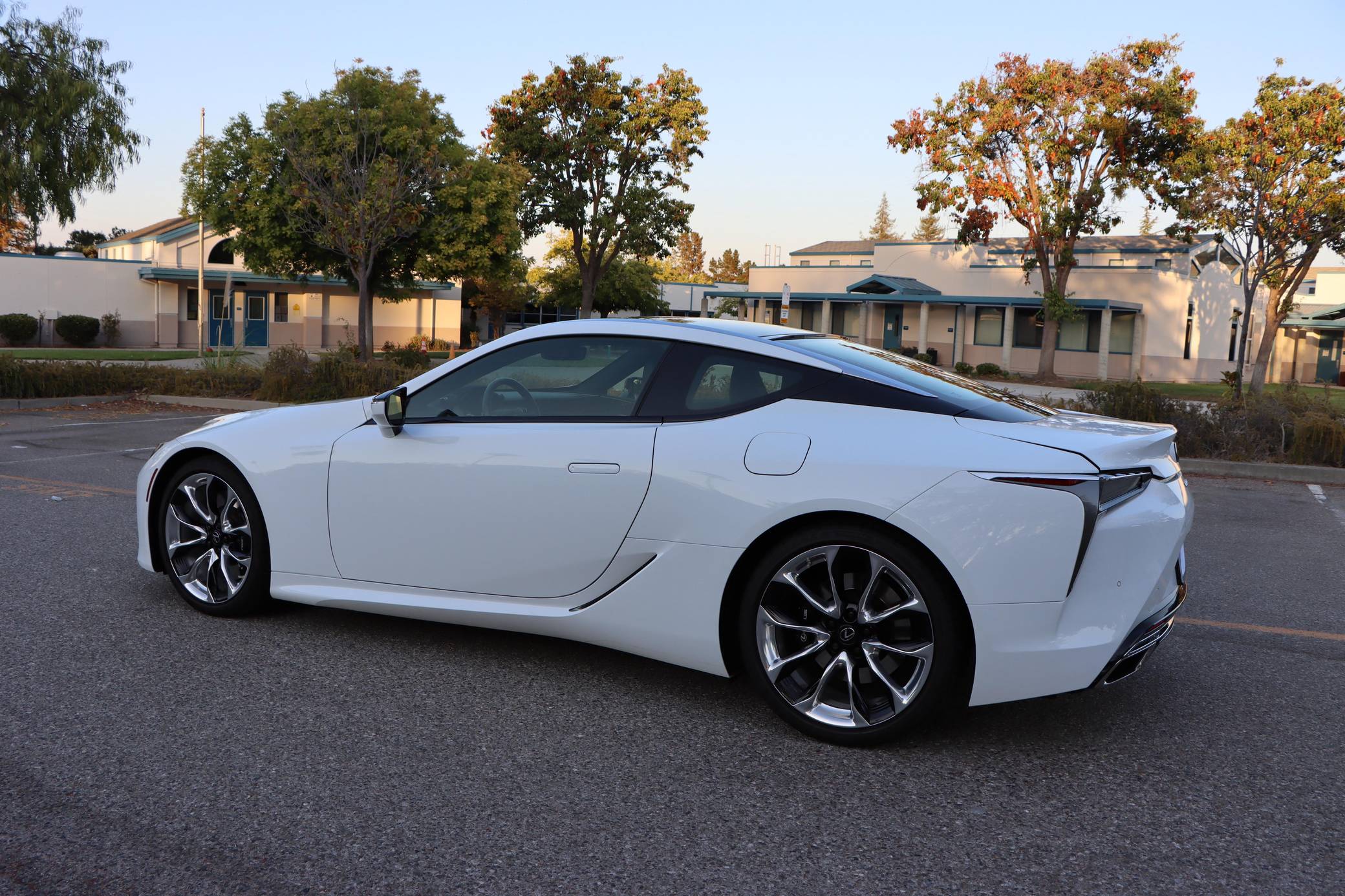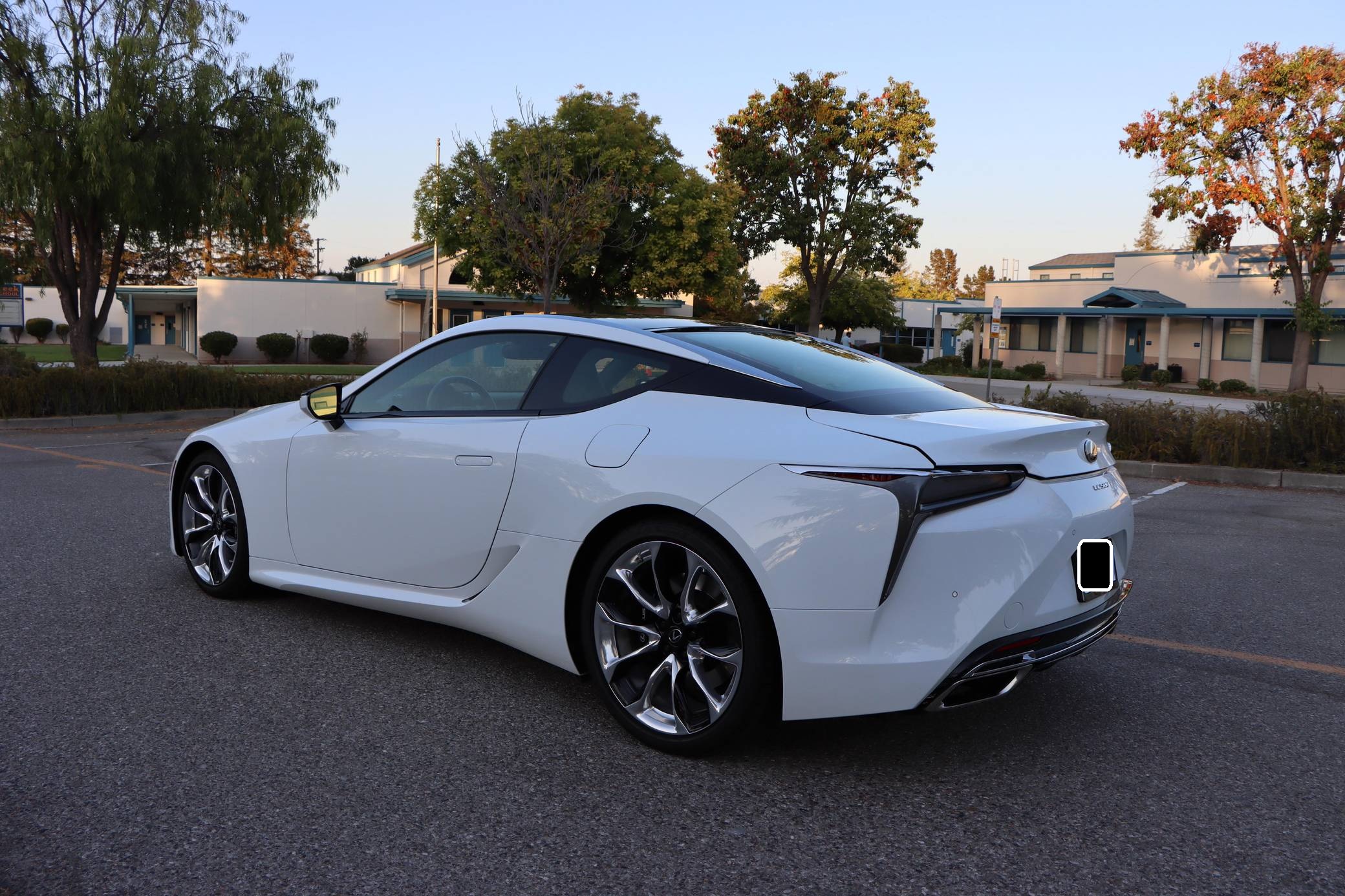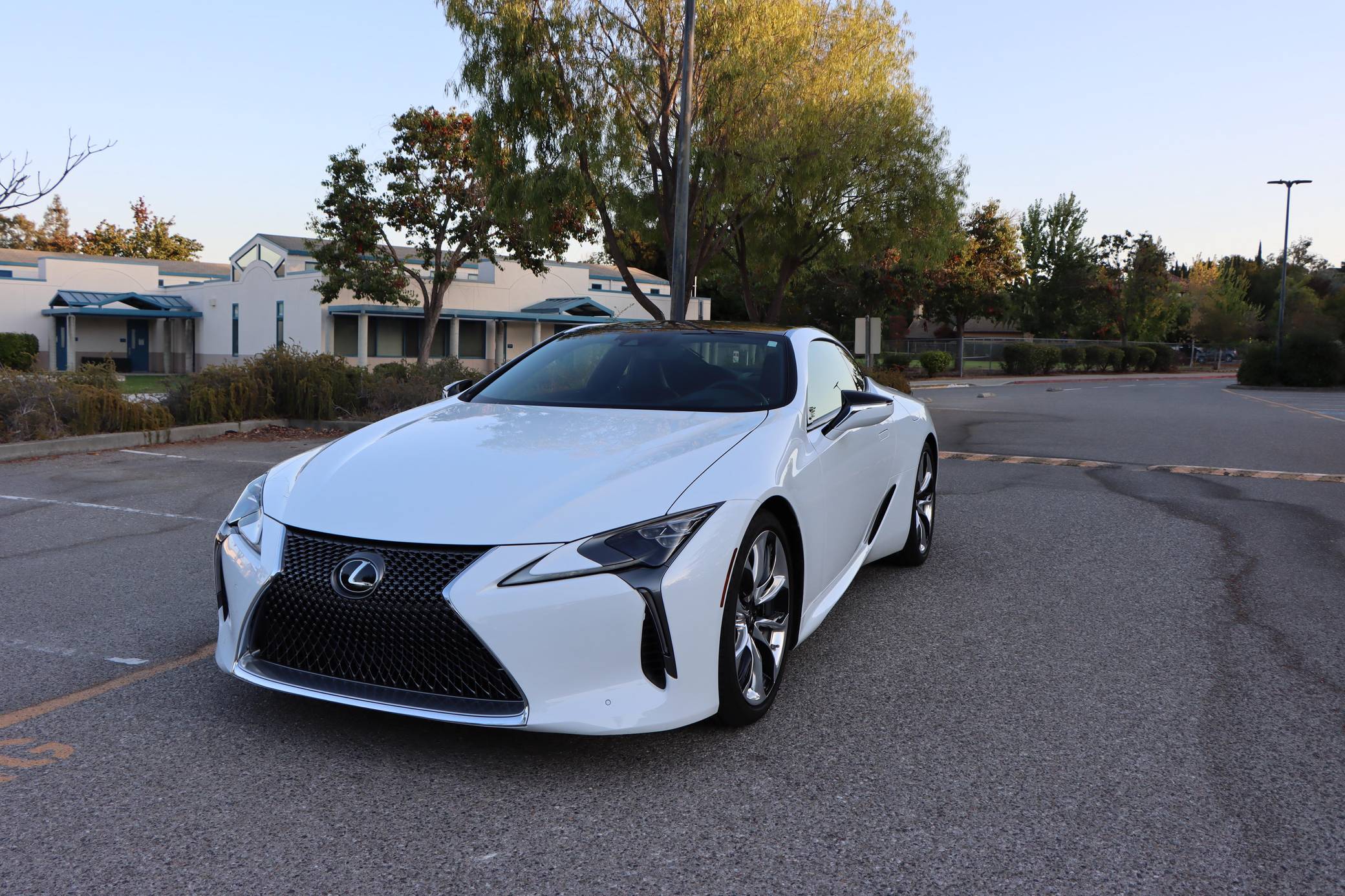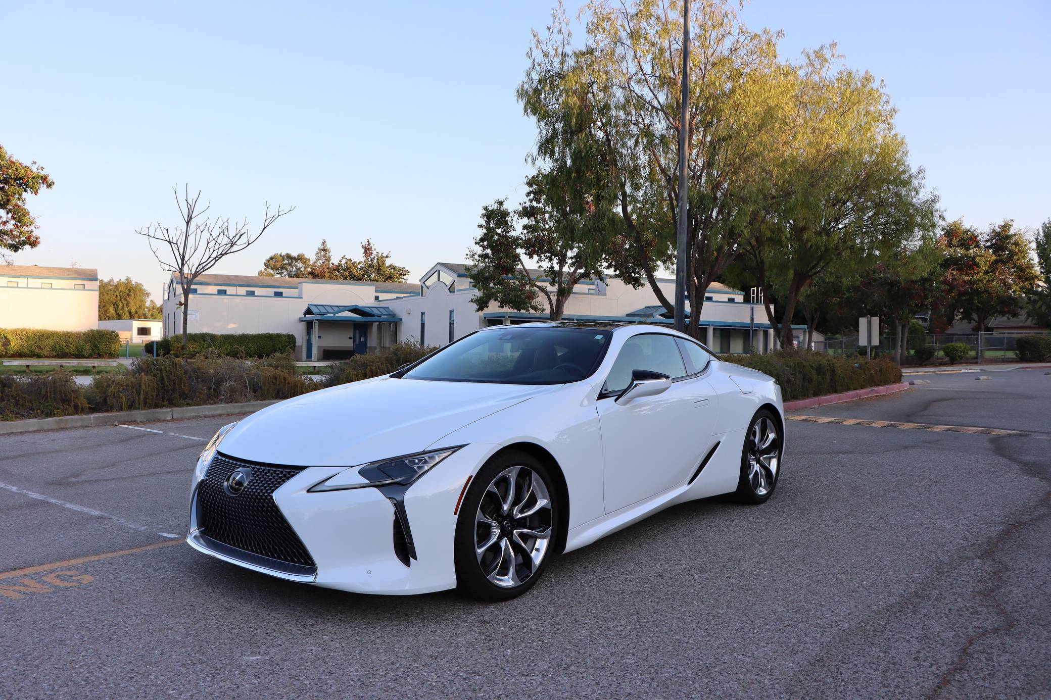 2018 Lexus LC 500, finished in Ultra White with a black interior. This LC's odometer displays approximately 9,700 miles. It's equipped with the Sport, Convenience, and All Weather packages, carbon fiber roof, 21-inch wheels, a 13-speaker Mark Levinson surround sound system, an adaptive variable suspension system, and a heads-up display, among other features. The seller reports no modifications. Lexus released the LC for 2018 as its range-topping model. Inspired by the 2012 LF-LC concept, the big coupe was developed to make a statement in terms of design and technology; it illustrated what the Lexus brand stood for. V8-powered and hybrid models were offered at launch, and a convertible was added to the range for 2021. Both remain available in 2022. Power comes from a 5. 0-liter V8, rated at 471 horsepower and 398 lb-ft of torque. It spins the rear wheels via a 10-speed automatic transmission and a Torsen limited-slip differential.