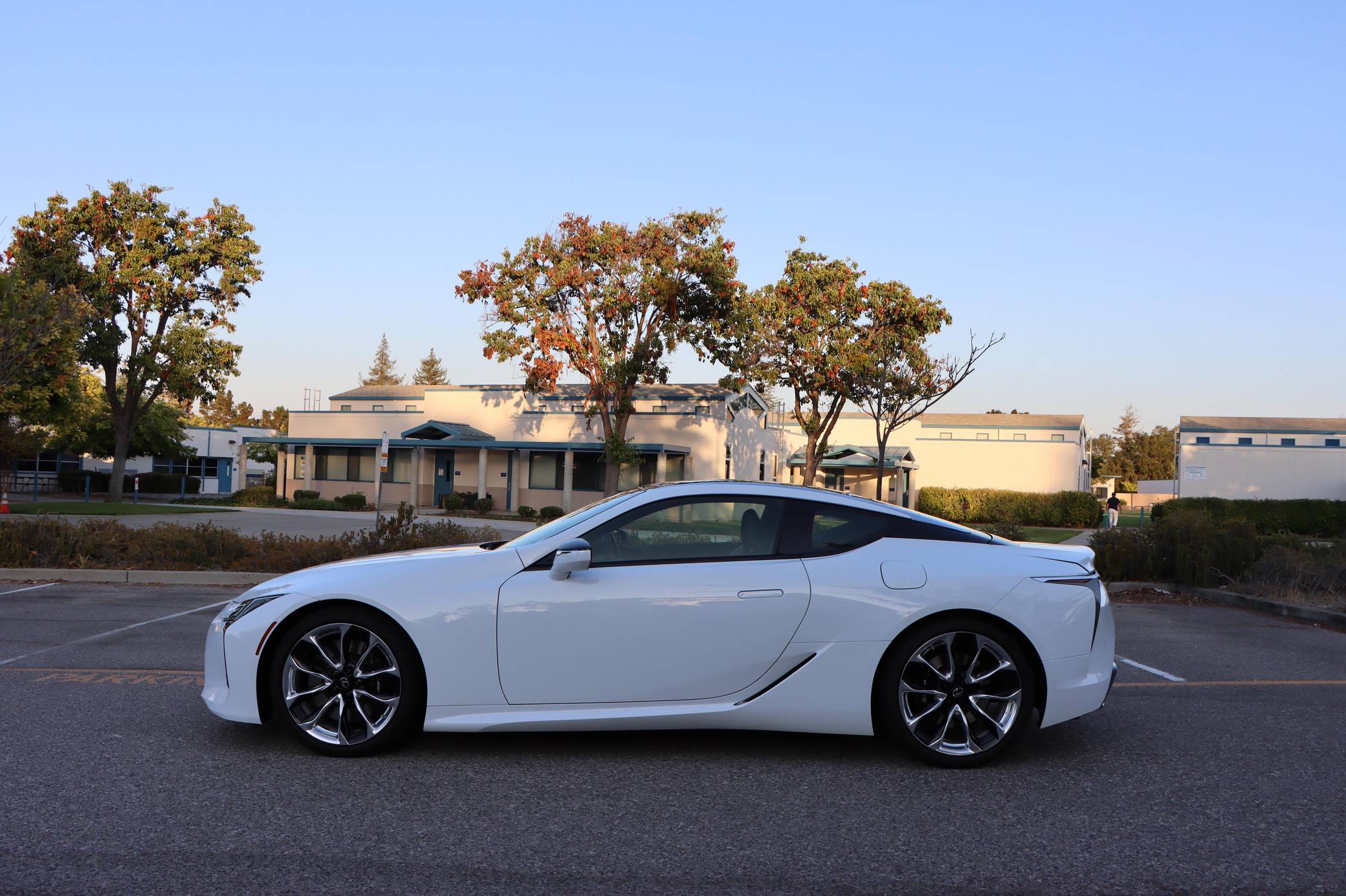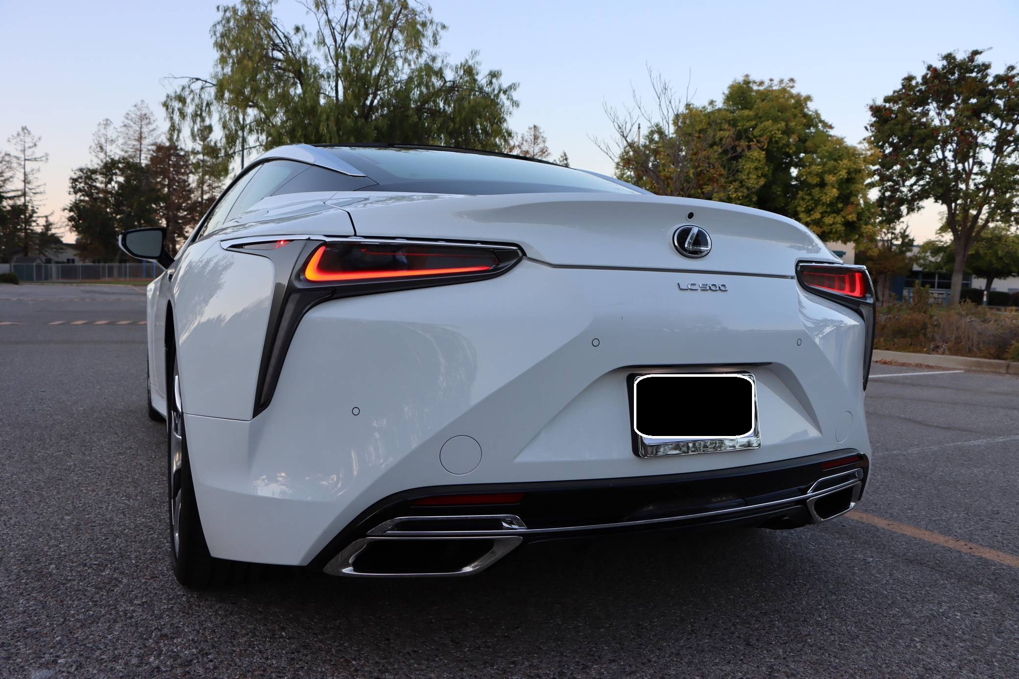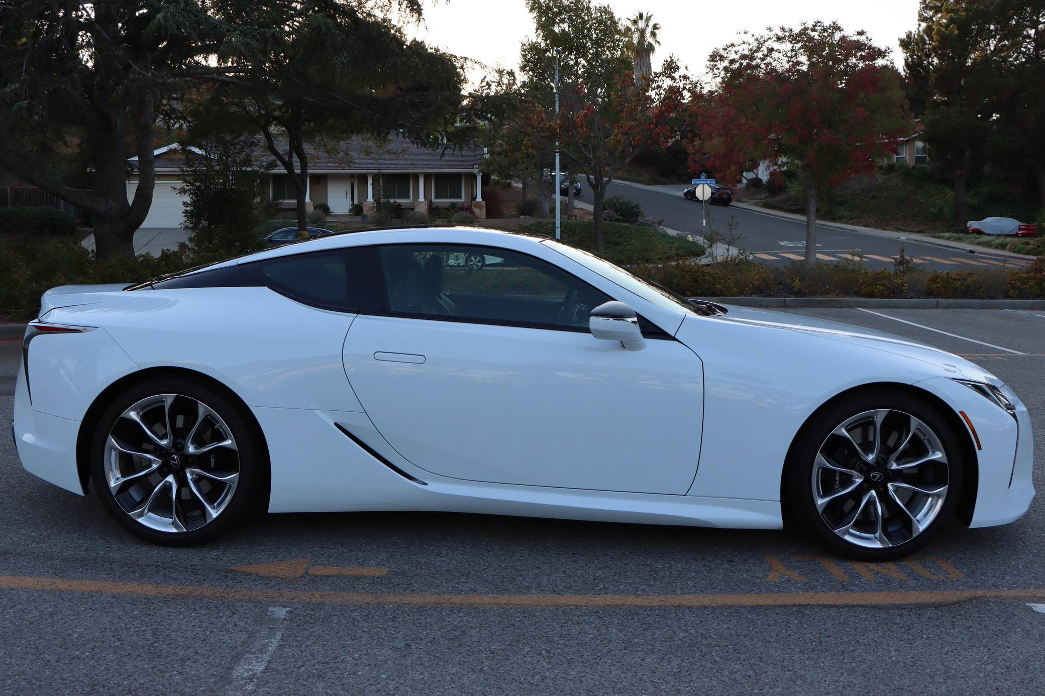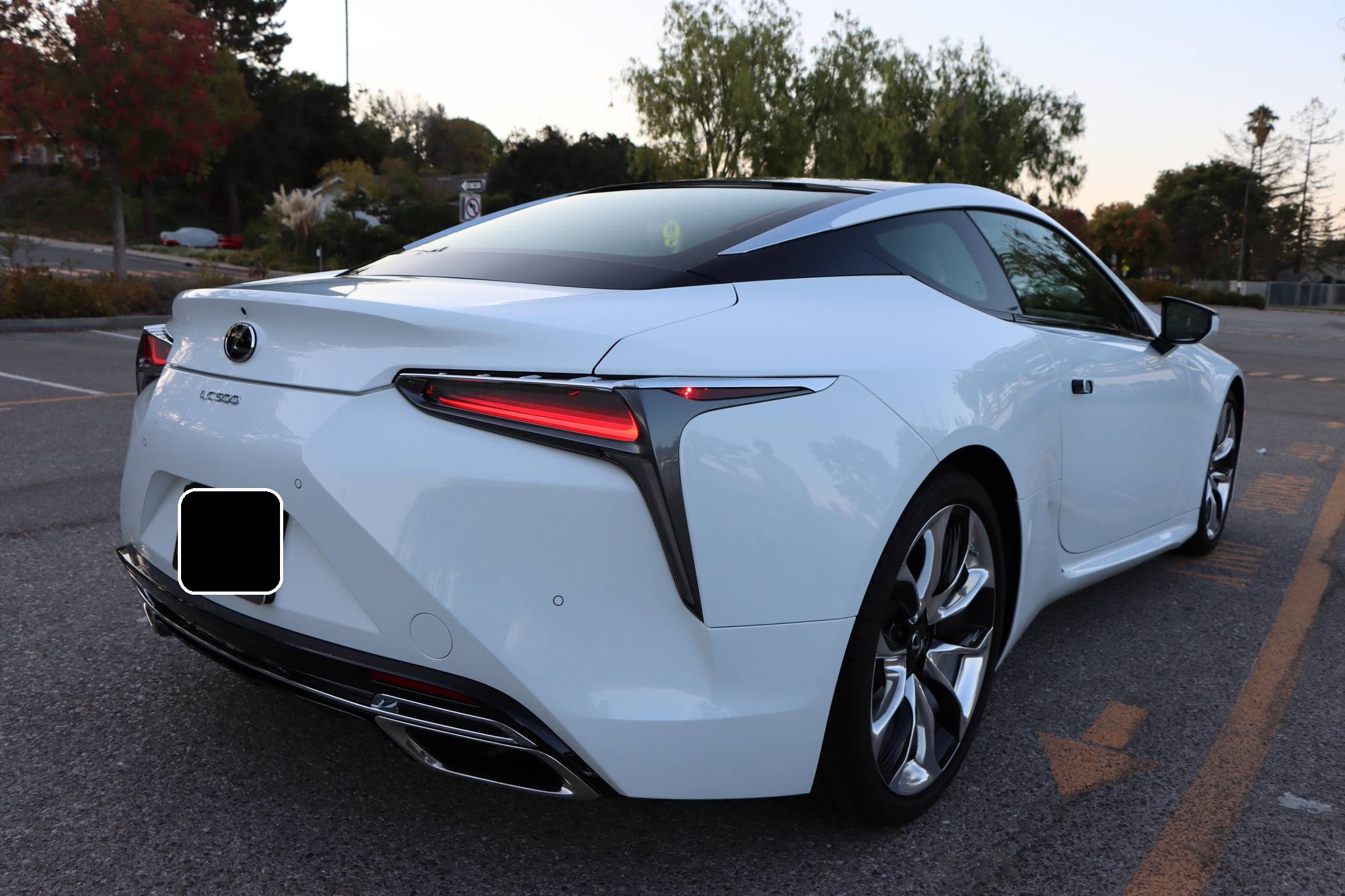 2018 Lexus LC 500, finished in Ultra White with a black interior. This LC's odometer displays approximately 9,700 miles. It's equipped with the Sport, Convenience, and All Weather packages, carbon fiber roof, 21-inch wheels, a 13-speaker Mark Levinson surround sound system, an adaptive variable suspension system, and a heads-up display, among other features. The seller reports no modifications. Lexus released the LC for 2018 as its range-topping model. Inspired by the 2012 LF-LC concept, the big coupe was developed to make a statement in terms of design and technology; it illustrated what the Lexus brand stood for. V8-powered and hybrid models were offered at launch, and a convertible was added to the range for 2021. Both remain available in 2022. Power comes from a 5. 0-liter V8, rated at 471 horsepower and 398 lb-ft of torque. It spins the rear wheels via a 10-speed automatic transmission and a Torsen limited-slip differential.