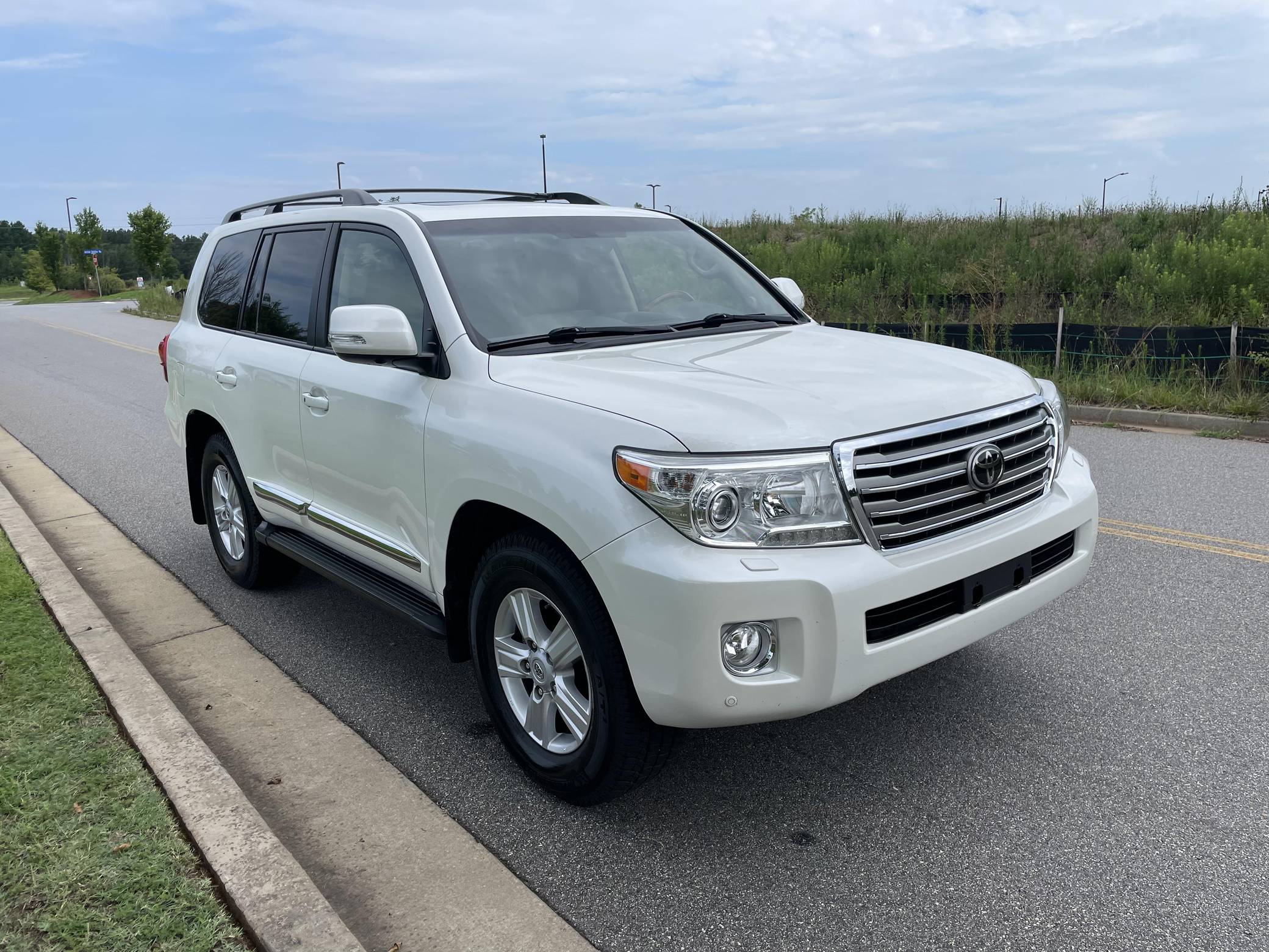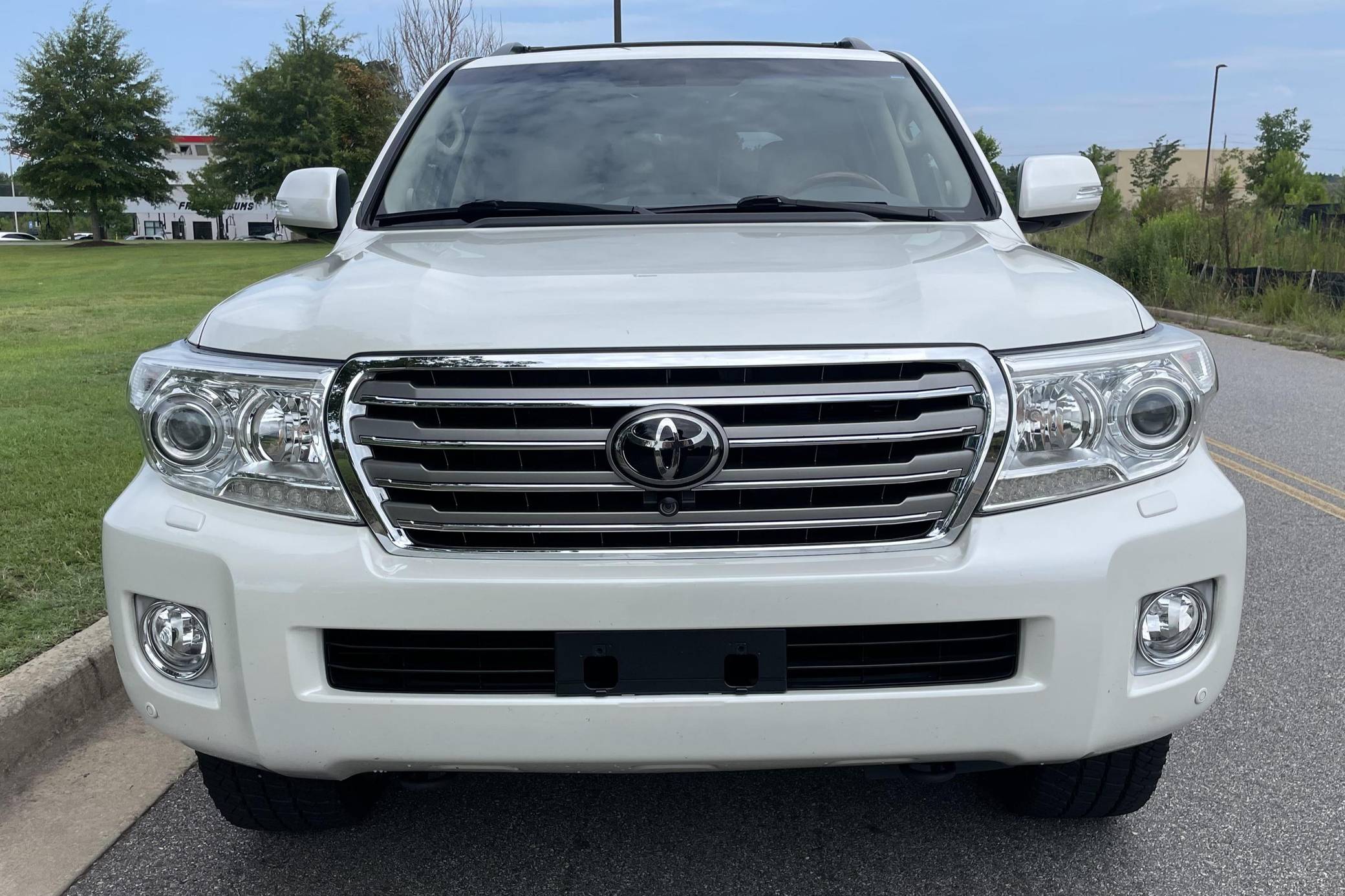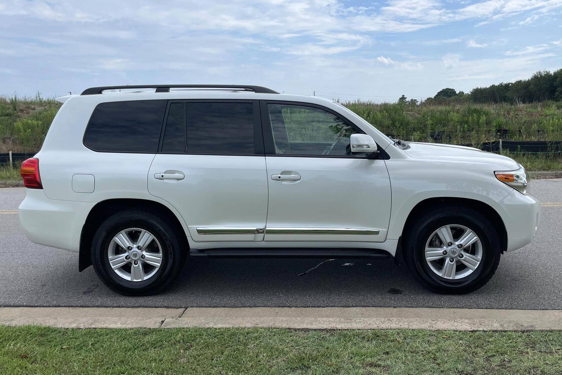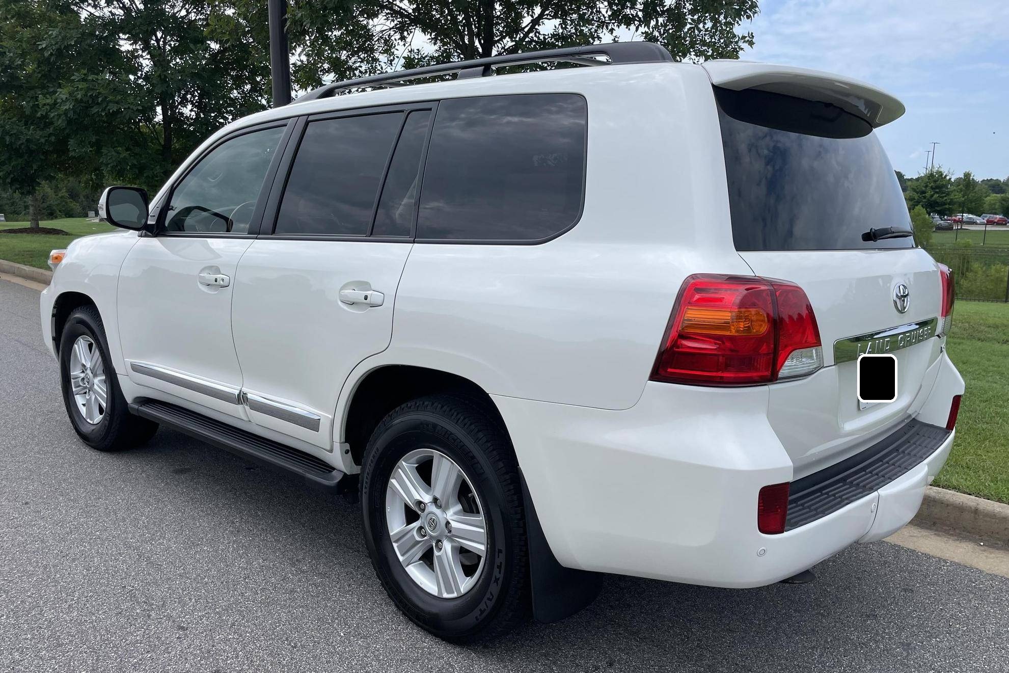 2013 Toyota Land Cruiser, finished in Blizzard Pearl with a Sandstone interior. The odometer currently indicates approximately 98,900 miles. According to the build sheet provided in the gallery, factory equipment includes 18-inch wheels, the Kinetic Dynamic Suspension System (KDSS), a sunroof, leather upholstery, heated, ventilated, and power-adjustable front seats, a heated steering wheel, a 14-speaker JBL sound system, a rear seat entertainment system, front and rear parking sensors, and a rear-view camera, among other features. The seller reports no modifications. Toyota's 200-Series Land Cruiser arrived for 2008 with a more powerful V8 shared with the Tundra, a longer list of technology added to increase on-road comfort and off-road prowess, and a quieter interior. It retained rugged body-on-frame construction but it put an even greater emphasis on luxury than its predecessor. Toyota made several updates to the 200-Series before production ended in 2021. Power comes from a 5. 7-liter V8, rated at 381 horsepower and 401 lb-ft of torque. It spins the four wheels via a 6-speed automatic transmission and a 2-speed transfer case.