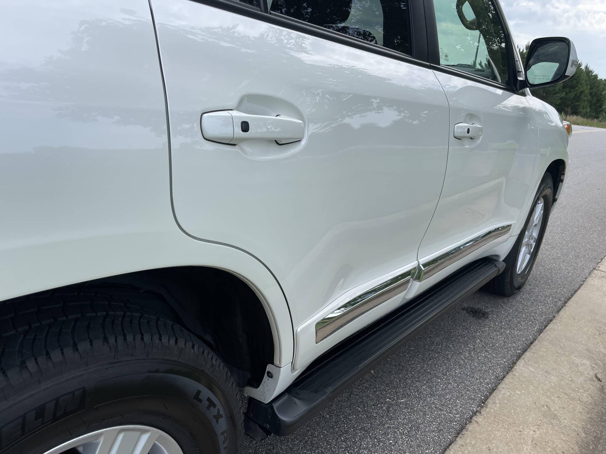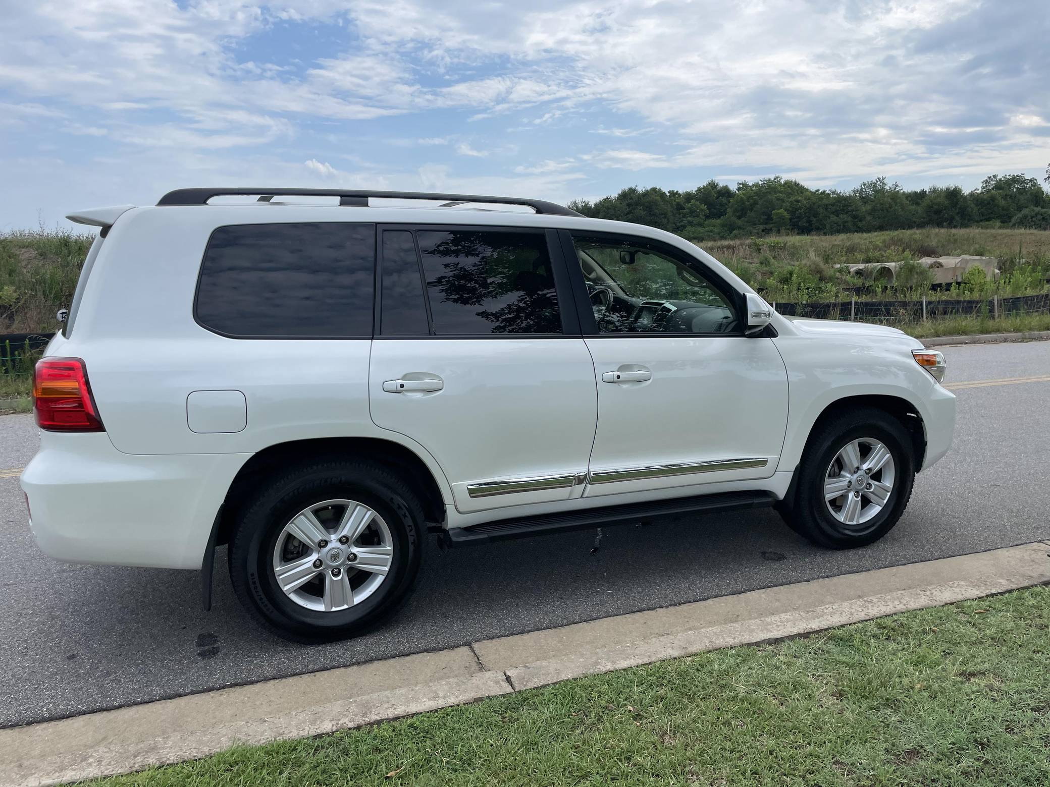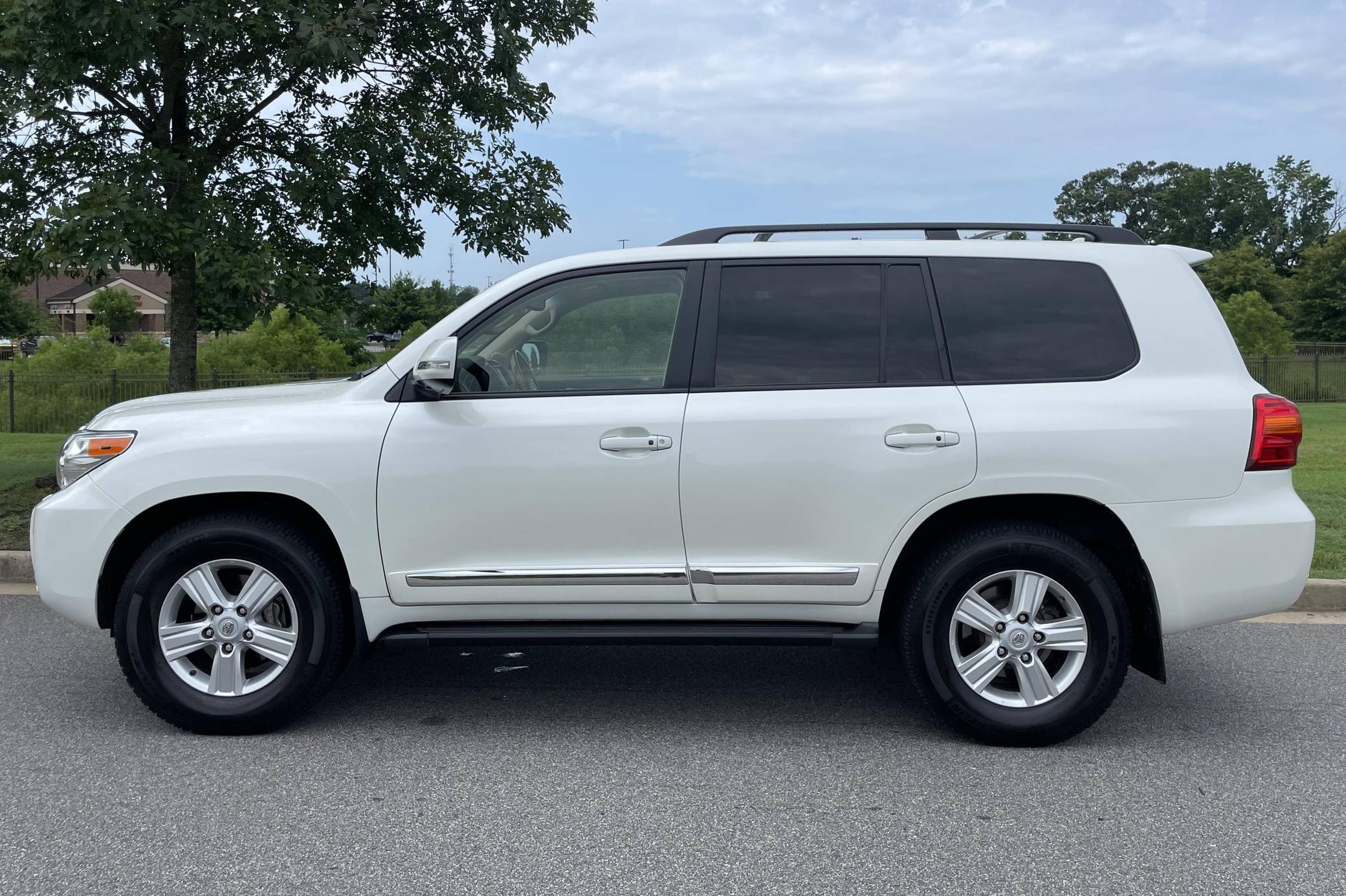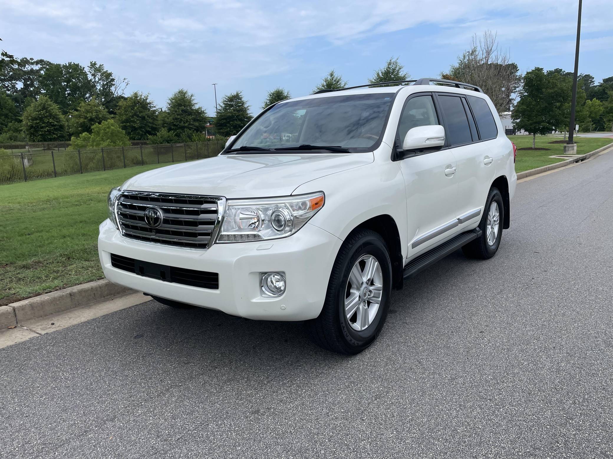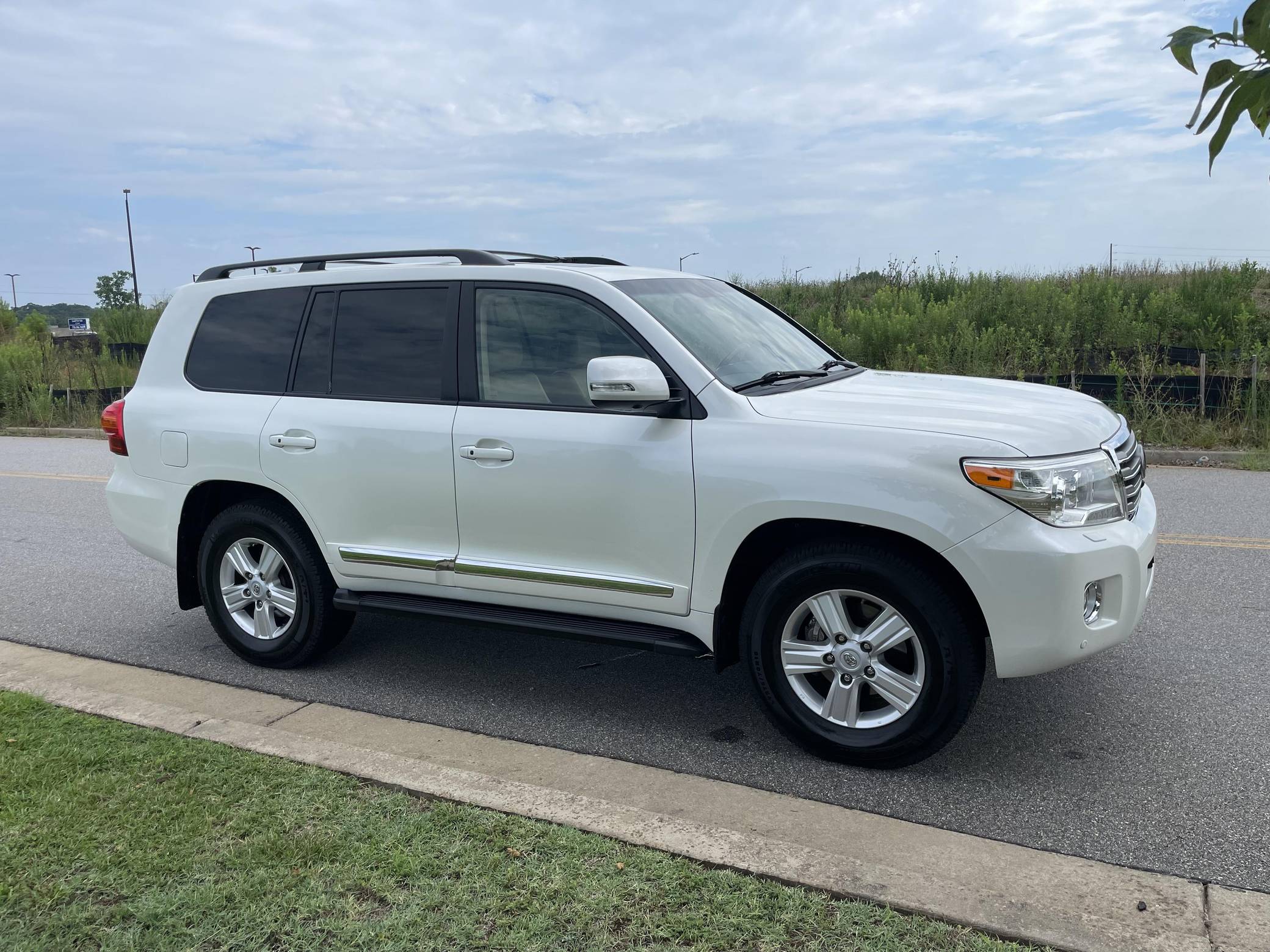 2013 Toyota Land Cruiser, finished in Blizzard Pearl with a Sandstone interior. The odometer currently indicates approximately 98,900 miles. According to the build sheet provided in the gallery, factory equipment includes 18-inch wheels, the Kinetic Dynamic Suspension System (KDSS), a sunroof, leather upholstery, heated, ventilated, and power-adjustable front seats, a heated steering wheel, a 14-speaker JBL sound system, a rear seat entertainment system, front and rear parking sensors, and a rear-view camera, among other features. The seller reports no modifications. Toyota's 200-Series Land Cruiser arrived for 2008 with a more powerful V8 shared with the Tundra, a longer list of technology added to increase on-road comfort and off-road prowess, and a quieter interior. It retained rugged body-on-frame construction but it put an even greater emphasis on luxury than its predecessor. Toyota made several updates to the 200-Series before production ended in 2021. Power comes from a 5. 7-liter V8, rated at 381 horsepower and 401 lb-ft of torque. It spins the four wheels via a 6-speed automatic transmission and a 2-speed transfer case.
