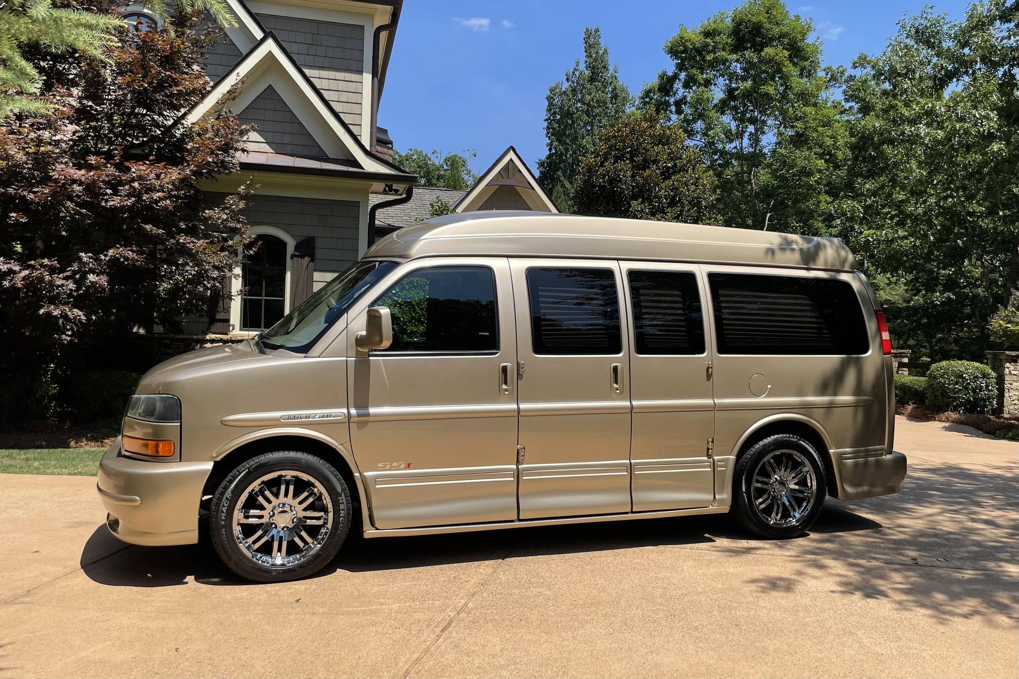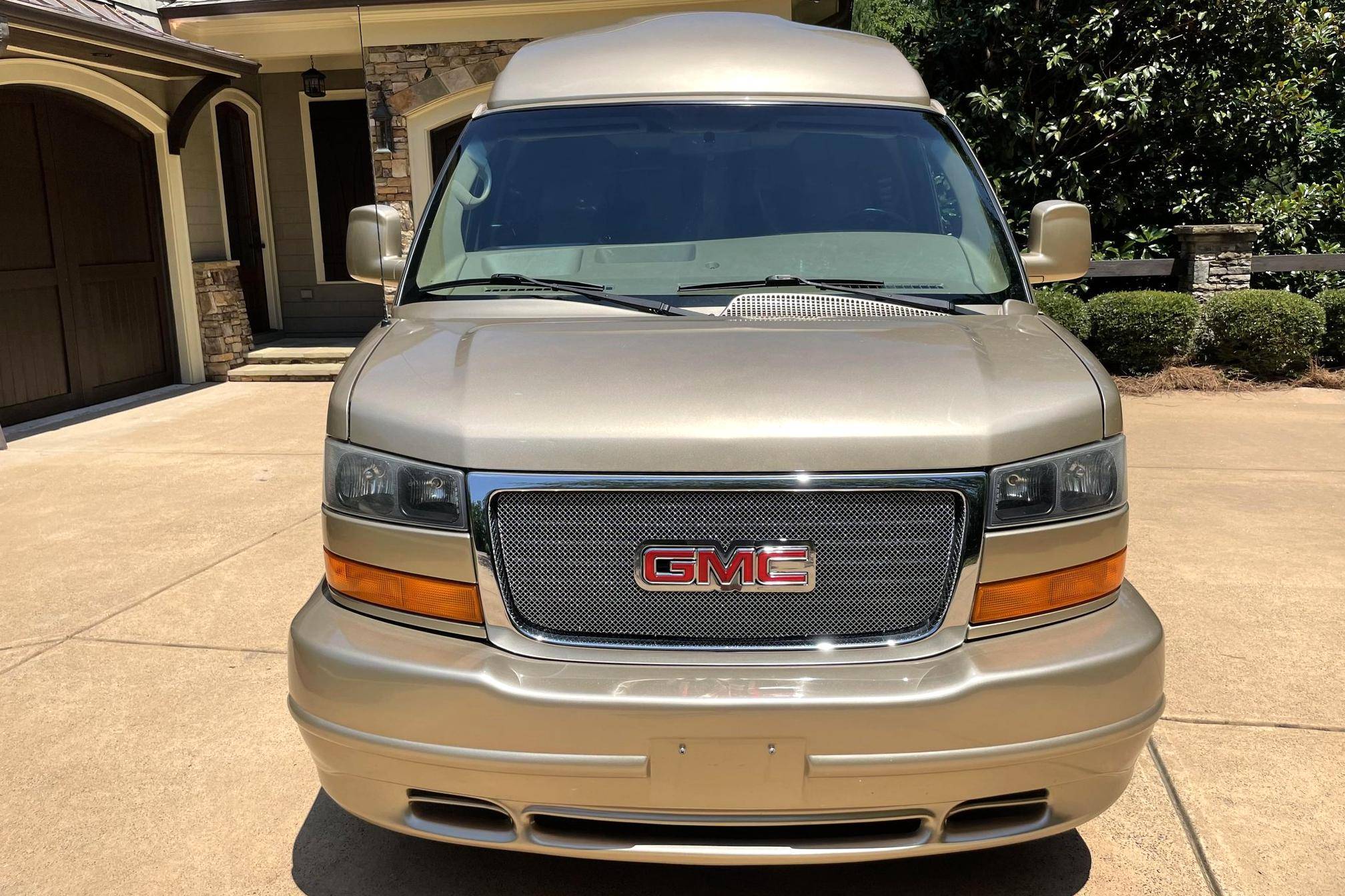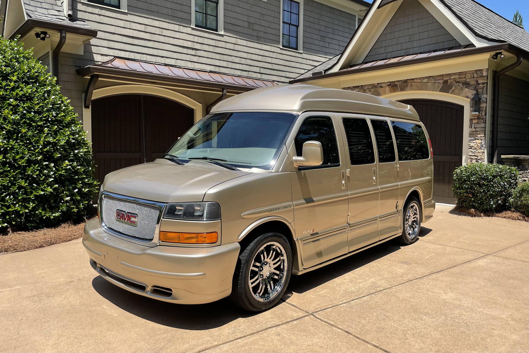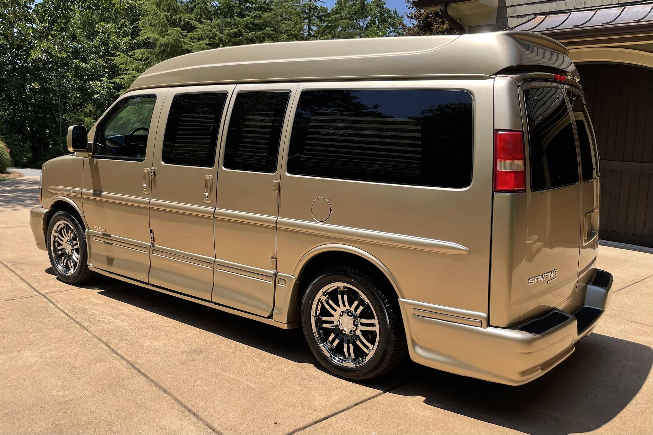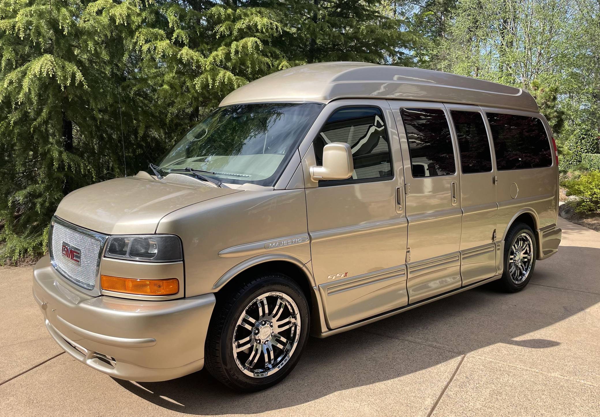 2013 GMC Savanna Majestic SSX Conversion Van, finished in Sand Beige Metallic with a tan and brown interior. The odometer currently indicates approximately 46,300 miles. Factory equipment includes driver and passenger-side dual opening side doors, anti-lock brakes, a tow package with receiver, power windows and locks, air conditioning, a rear defogger, and more as detailed below. A partial list of modifications performed by the outfitter include 20-inch chromed wheels, a body kit, high roof with rear sunroof, custom leather upholstery with heated front seats, wood dash trim, middle-row captain's chairs, a rear folding bench seat, rear climate control system, a rear entertainment system, and an upgraded audio system. The GMC Savanna has been produced in its current form since 1996, and is still on sale in 2022. Popular with everyone from families to contractors to campers, these roomy vehicles have also provided a solid platform for a number of boutique outfitters to equip them with a myriad of luxury features. Power comes from a 5. 3-liter V8, rated at 310 horsepower and 334 lb-ft of torque. Output is sent to the rear wheels through a 4-speed automatic transmission.