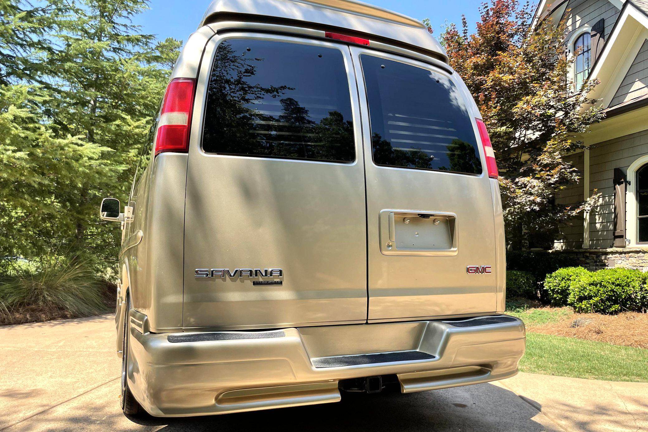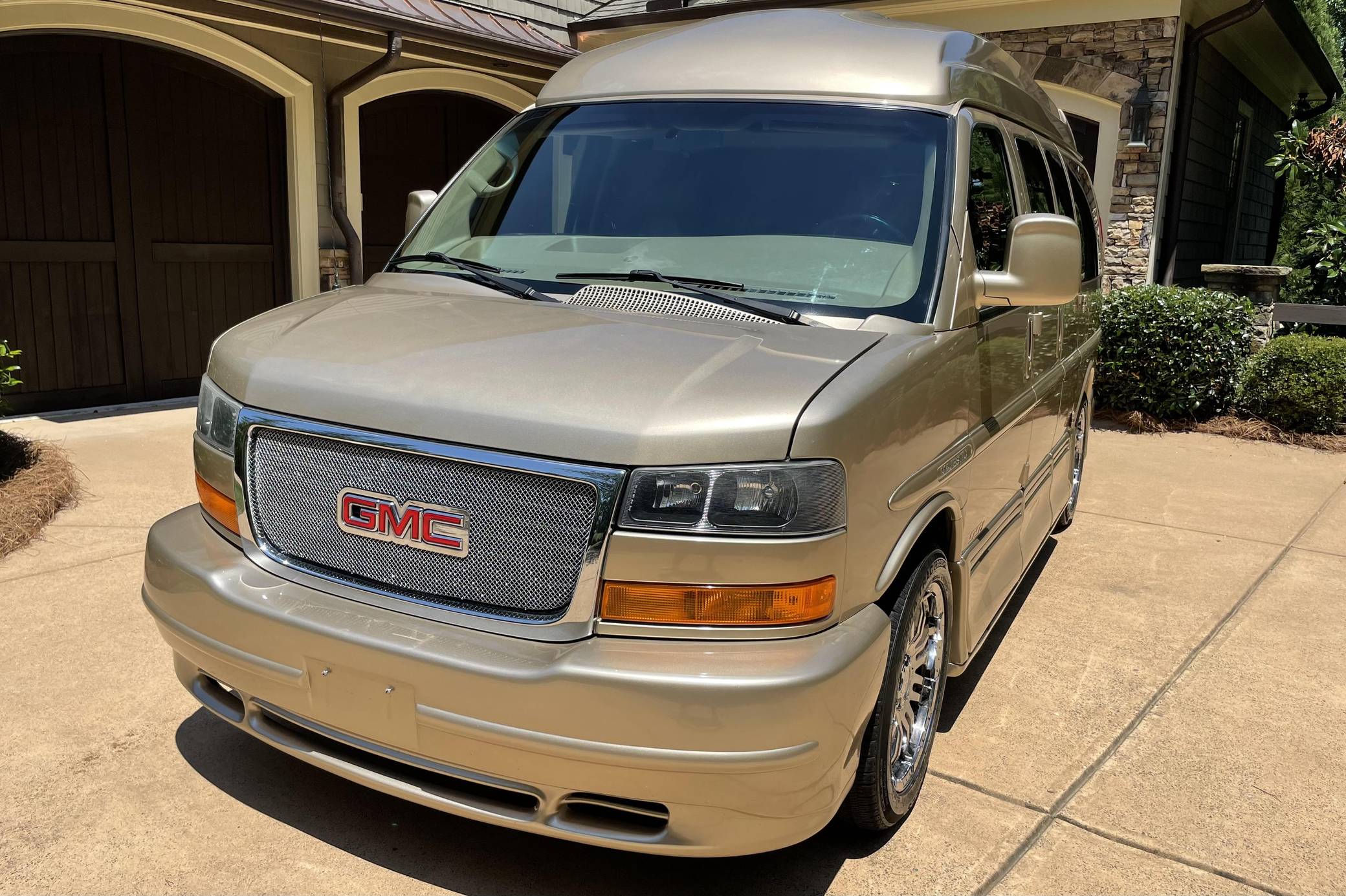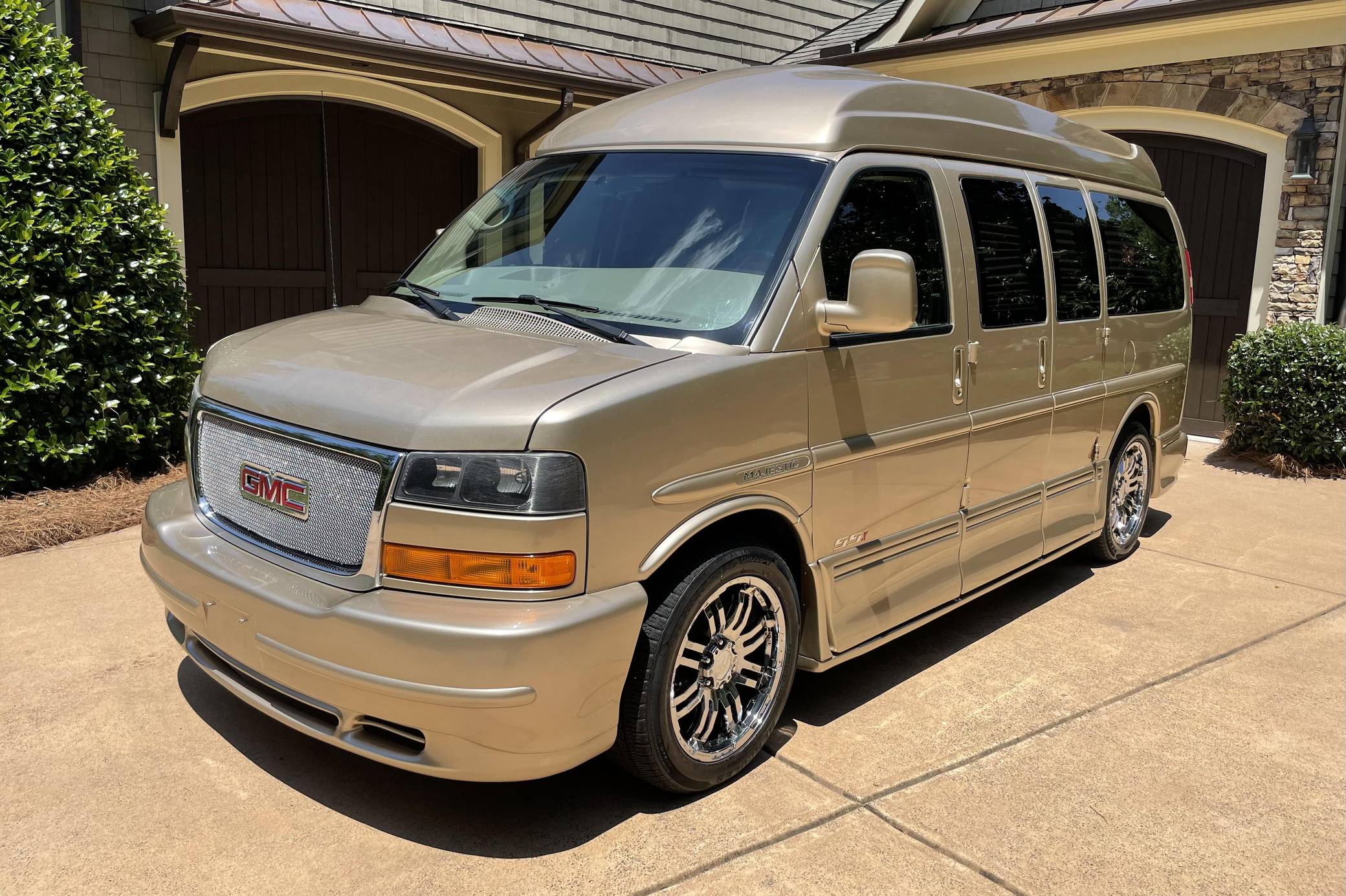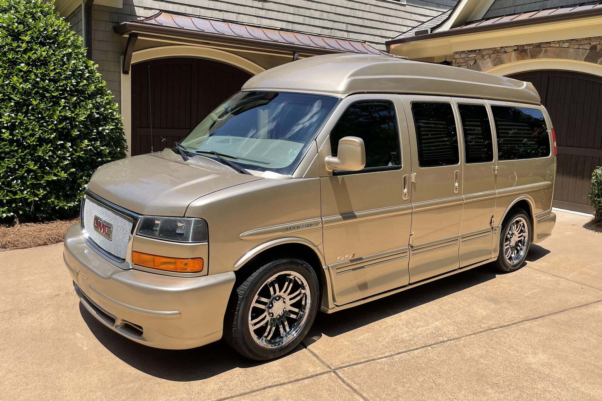 2013 GMC Savanna Majestic SSX Conversion Van, finished in Sand Beige Metallic with a tan and brown interior. The odometer currently indicates approximately 46,300 miles. Factory equipment includes driver and passenger-side dual opening side doors, anti-lock brakes, a tow package with receiver, power windows and locks, air conditioning, a rear defogger, and more as detailed below. A partial list of modifications performed by the outfitter include 20-inch chromed wheels, a body kit, high roof with rear sunroof, custom leather upholstery with heated front seats, wood dash trim, middle-row captain's chairs, a rear folding bench seat, rear climate control system, a rear entertainment system, and an upgraded audio system. The GMC Savanna has been produced in its current form since 1996, and is still on sale in 2022. Popular with everyone from families to contractors to campers, these roomy vehicles have also provided a solid platform for a number of boutique outfitters to equip them with a myriad of luxury features. Power comes from a 5. 3-liter V8, rated at 310 horsepower and 334 lb-ft of torque. Output is sent to the rear wheels through a 4-speed automatic transmission.