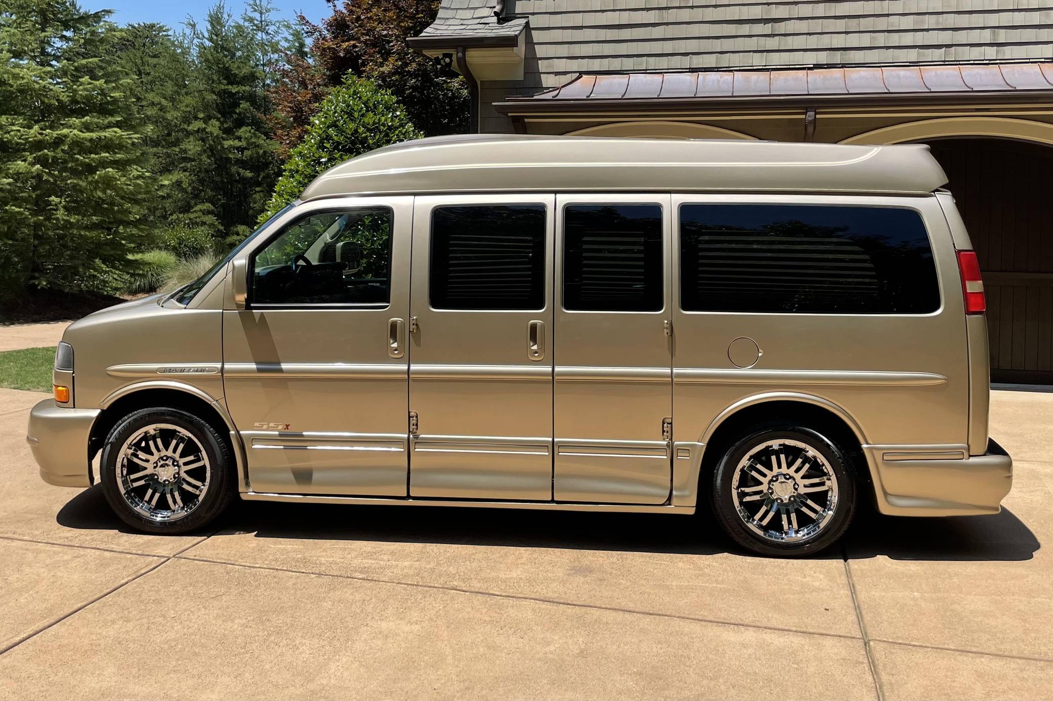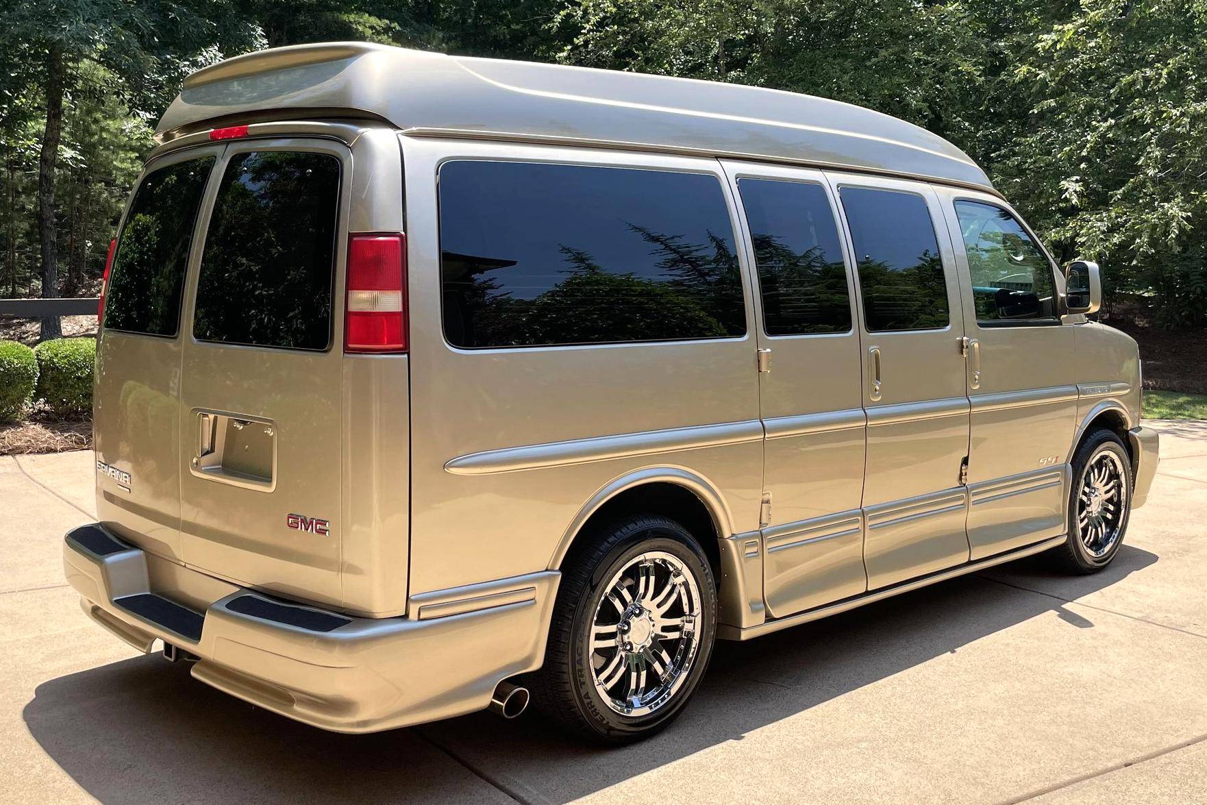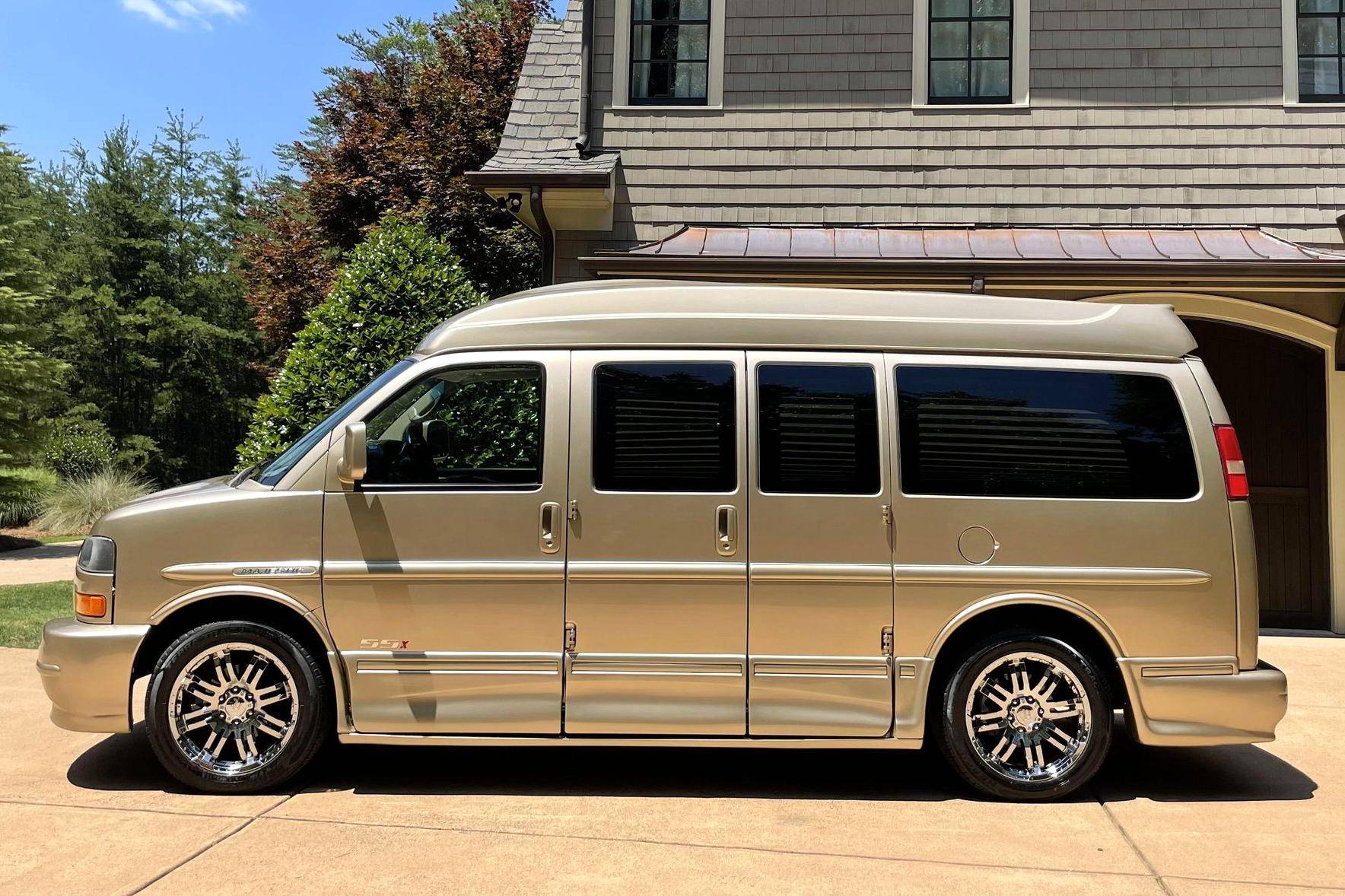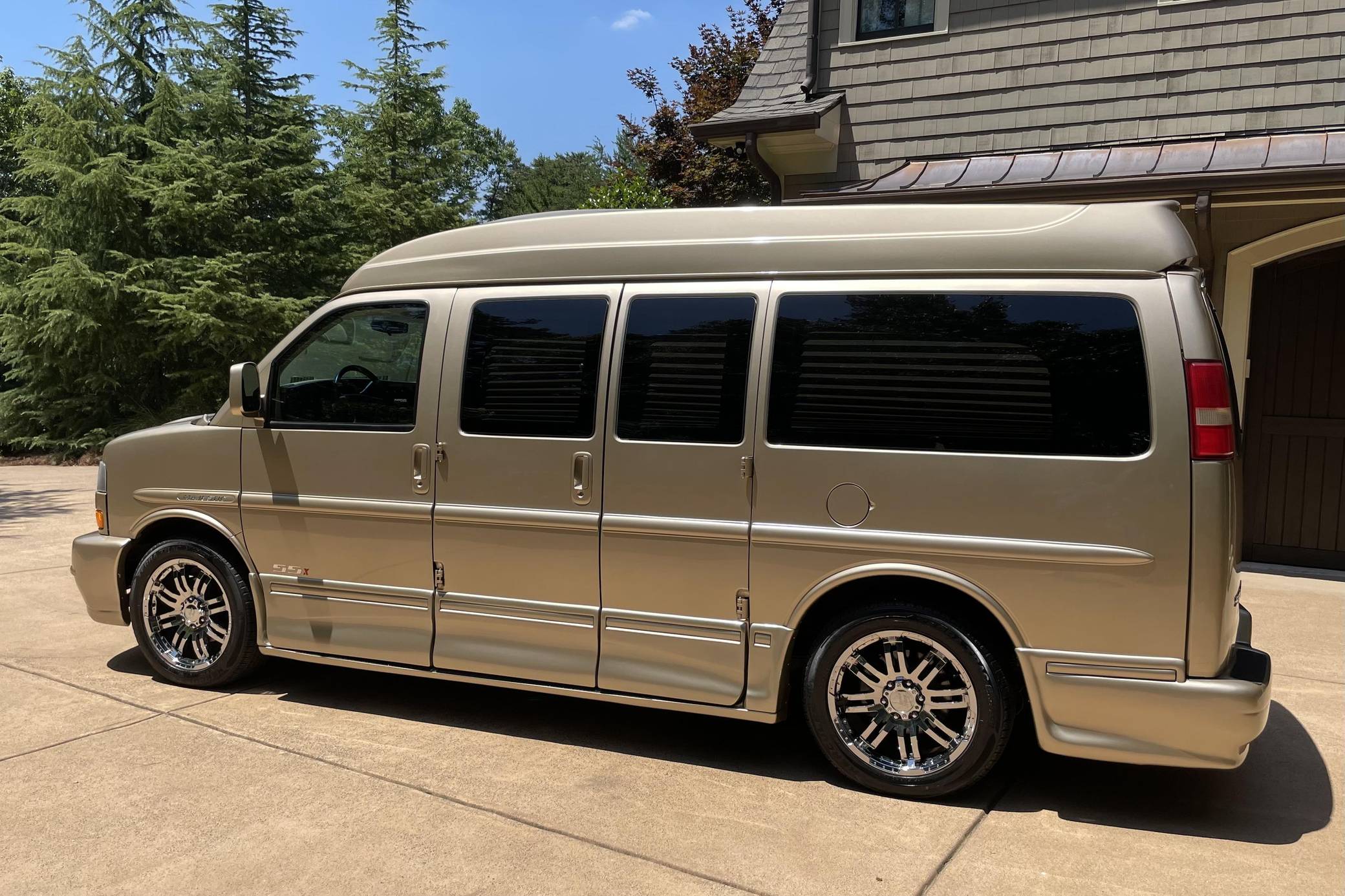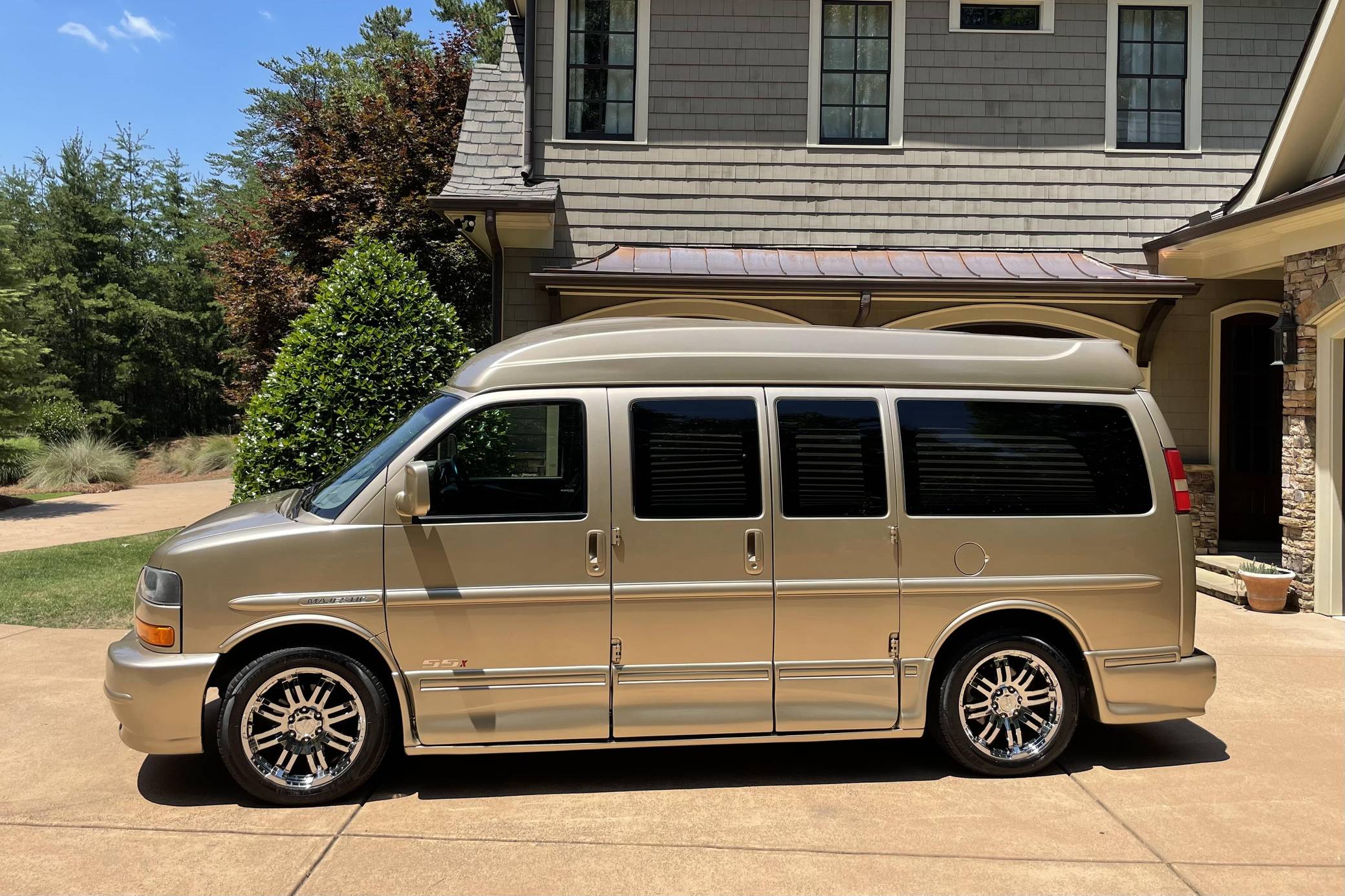 2013 GMC Savanna Majestic SSX Conversion Van, finished in Sand Beige Metallic with a tan and brown interior. The odometer currently indicates approximately 46,300 miles. Factory equipment includes driver and passenger-side dual opening side doors, anti-lock brakes, a tow package with receiver, power windows and locks, air conditioning, a rear defogger, and more as detailed below. A partial list of modifications performed by the outfitter include 20-inch chromed wheels, a body kit, high roof with rear sunroof, custom leather upholstery with heated front seats, wood dash trim, middle-row captain's chairs, a rear folding bench seat, rear climate control system, a rear entertainment system, and an upgraded audio system. The GMC Savanna has been produced in its current form since 1996, and is still on sale in 2022. Popular with everyone from families to contractors to campers, these roomy vehicles have also provided a solid platform for a number of boutique outfitters to equip them with a myriad of luxury features. Power comes from a 5. 3-liter V8, rated at 310 horsepower and 334 lb-ft of torque. Output is sent to the rear wheels through a 4-speed automatic transmission.