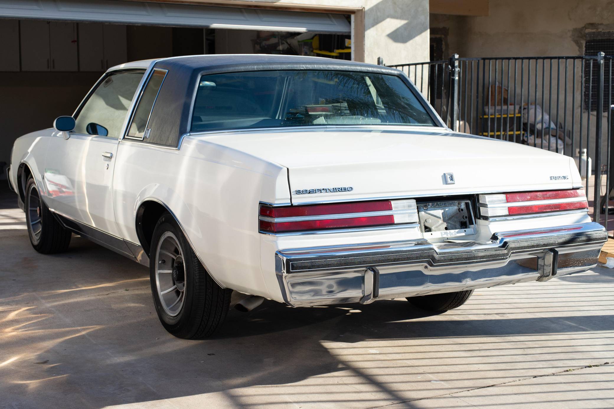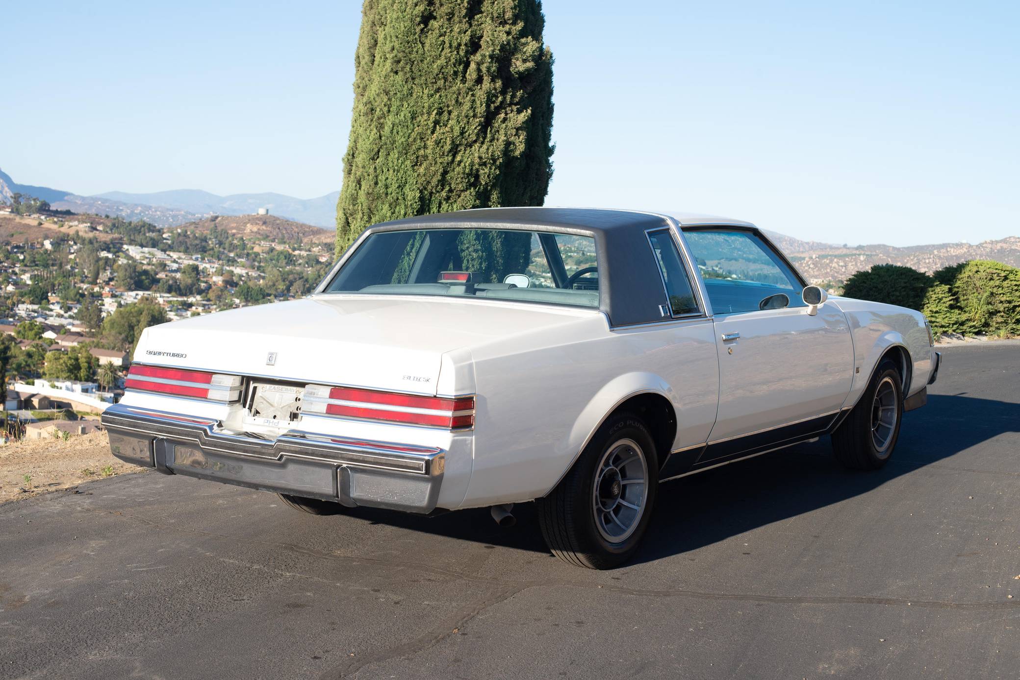 1987 Buick Regal Limited Turbo-T, finished in white with a gray interior. Factory equipment on this Regal includes 15-inch wheels, pillow-top leather seats, a landau top, air conditioning, and an AM/FM/cassette radio. The sole modification reported by the seller is the removal of chrome door moldings, which are included with the sale. The Regal Limited Turbo-T is one of the rarest variants of the turbocharged G-body Buick Regal models. With production limited to 1,035 units exclusively for the 1987 model year, it's rarer than the Regal T-Type and the Grand National. It has performance similar to the more recognizable Grand National, but with more luxury features like a touring suspension, a landau roof, and optional pillow-top seats, which this car has. Power comes from a 3. 8-liter turbocharged V6, rated at 245 horsepower and 355 lb-ft of torque. Output is sent to the rear wheels via a 4-speed automatic transmission.
