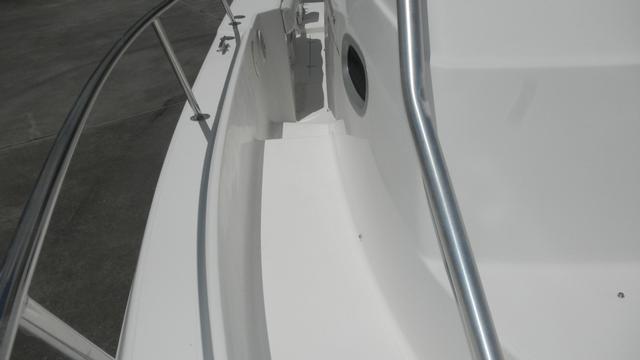 Head with Shower, Large Cockpit, Galley, Microwave, Refrigerator, Sink, Full T-Top, Stainless Steel Swim Ladder, Lots of Storage, In-Deck Storage Compartments, Center Console Storage, Dry Storage Compartments, Fish Box, Livewell, Swim Platforms on Engine Bracket, Rod Holders, Rod Storage, Freshwater Washdown, Saltwater Washdown, Courtesy Lights, Cockpit Lights, Search Light, Stainless Steel Hardware & Thru Hulls Fitting, Windshield, Reinforced Bow Eye, Heavy Duty Rubrail, Rocket Launchers, Trim Tabs, Dual Outboard Engines, Fuel Filters on Engines, Hydraulic Trim Tabs, Bilge Pump(s), Anchor w/Electric Windlass, Engine Monitoring System, Trailer, 12V Power Outlet, Dual Battery, Battery Switch(es), Shore Power, AM/FM/CD.
