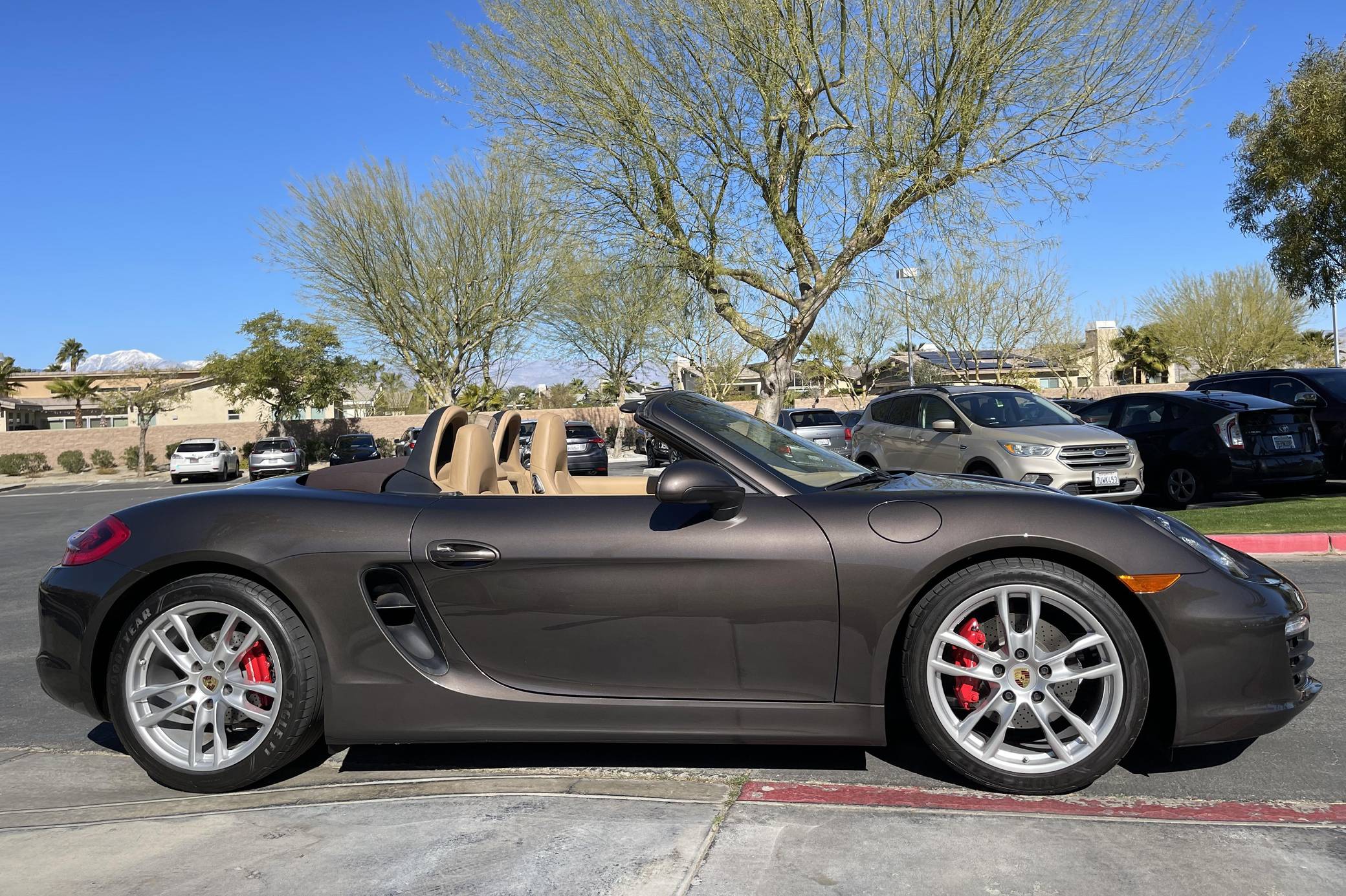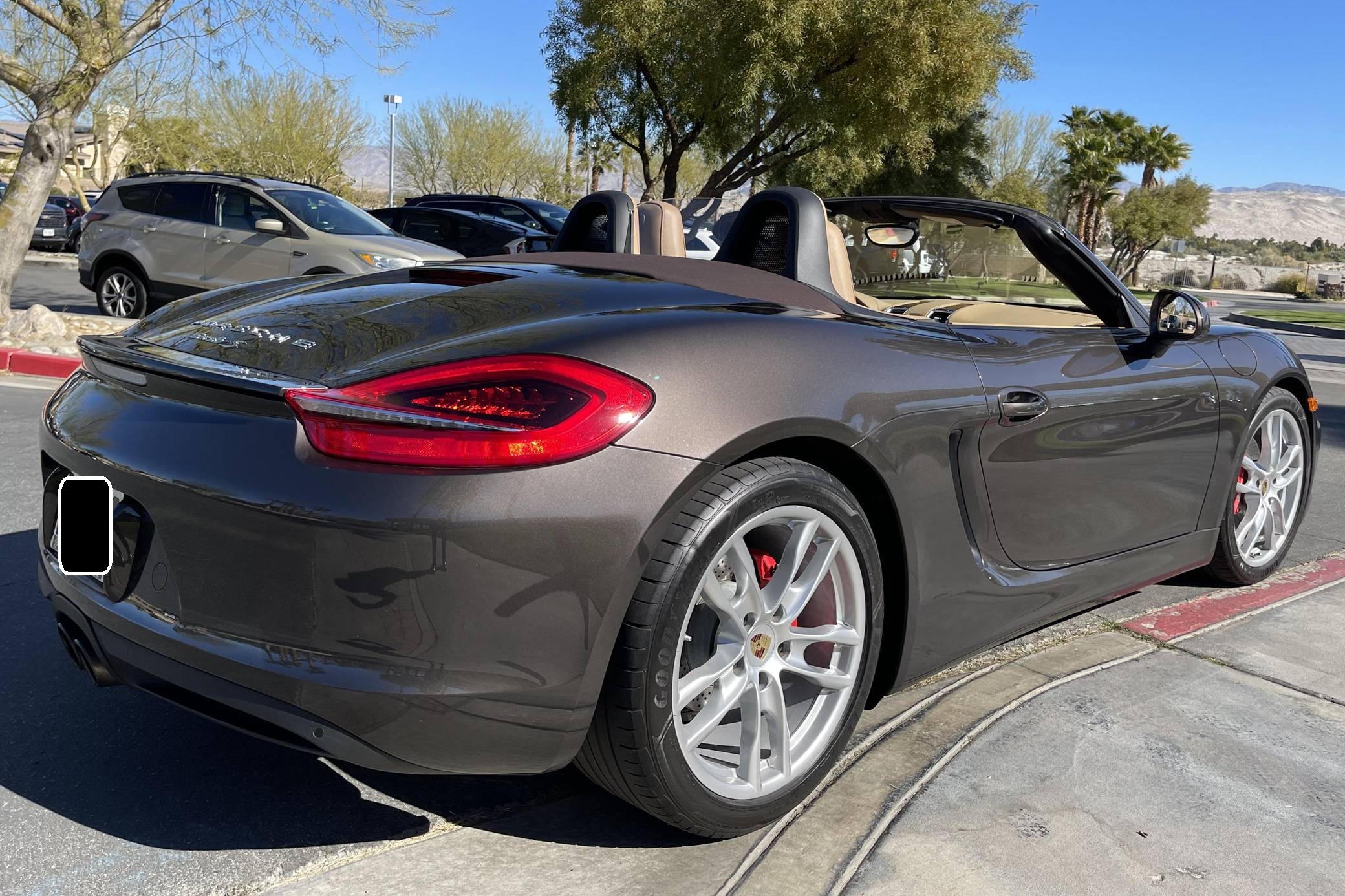 THIS… is a 2015 Porsche Boxster S, finished in Anthracite Brown Metallic with a brown soft top and a Luxor Beige interior. The odometer currently displays approximately 11,600 miles. It also confirms that this is a 2-owner car registered in California from new. According to the build sheet provided in the gallery, factory equipment includes 19-inch wheels, Porsche Active Suspension Management (PASM), a power-operated soft top, a speed-activated rear spoiler, leather upholstery, power-adjustable seats, and more as listed below. No modifications have been reported by the seller. The 981 Boxster was sold from 2013 through 2016 as Porsche's entry-level sports car, though this range-topping S model considerably shrinks the performance gap between itself and the base 911 Carrera. The S model sports a 77-pound weight reduction over the previous generation Boxster, and employs a slightly de-tuned (35 hp less) version of the same engine that powers its larger sibling. Power comes from a 3. 4-liter flat 6, rated at 315 horsepower and 266 lb-ft of torque. Output is sent to the rear wheels via a 7-speed PDK dual-clutch automatic transmission.