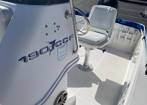 This 190CCF Wellcraft is in great working condition and is powered by a 115hp Mercury engine, with only 71 hours on it! Features on this center console include fuel gauge, Livewell, bilge pump, navigation lights, rod holders, rod storage, tinted windscreen, helm and co-pilot seats, compass, Bimini top, cleats, and boarding ladder.