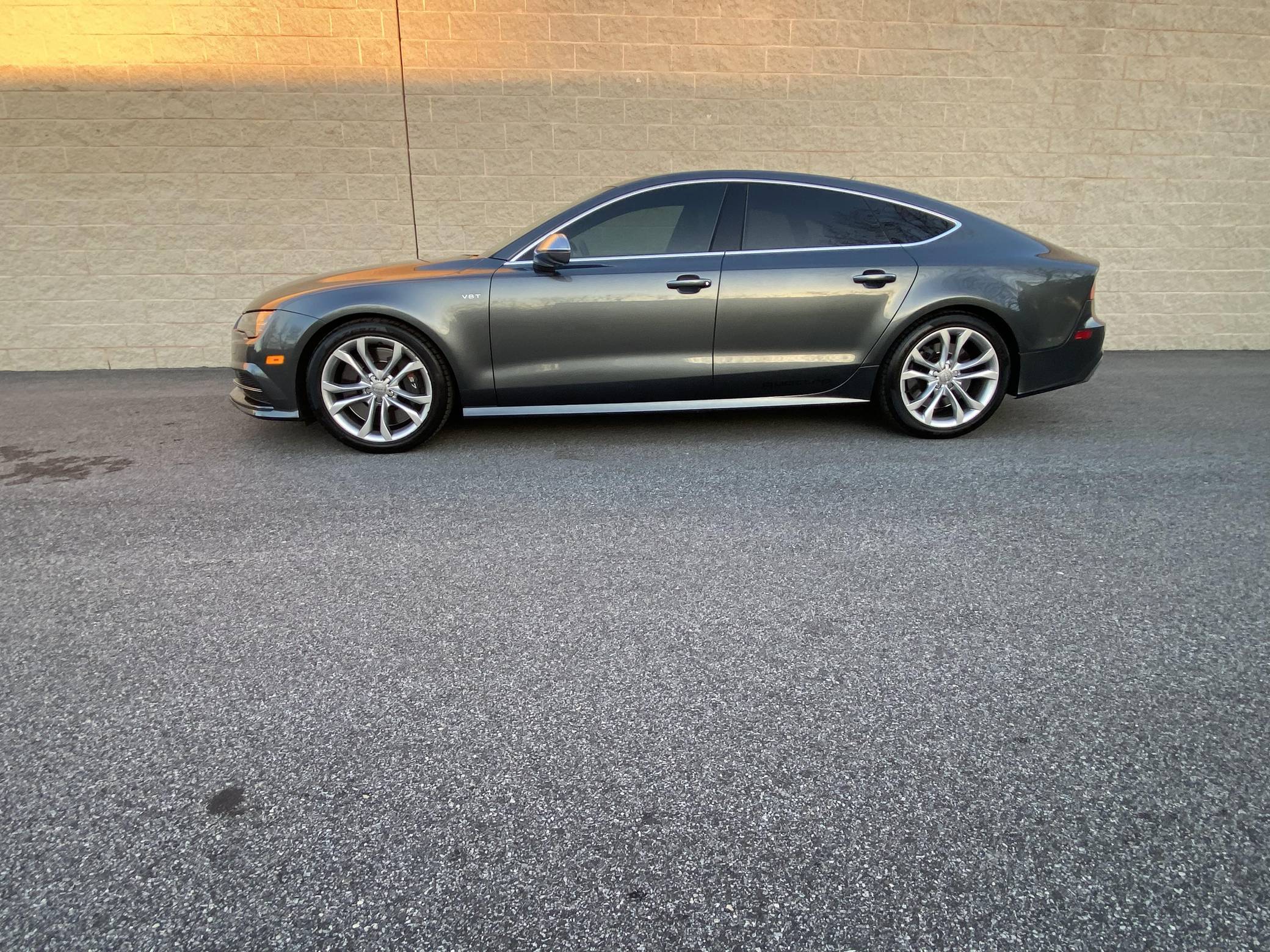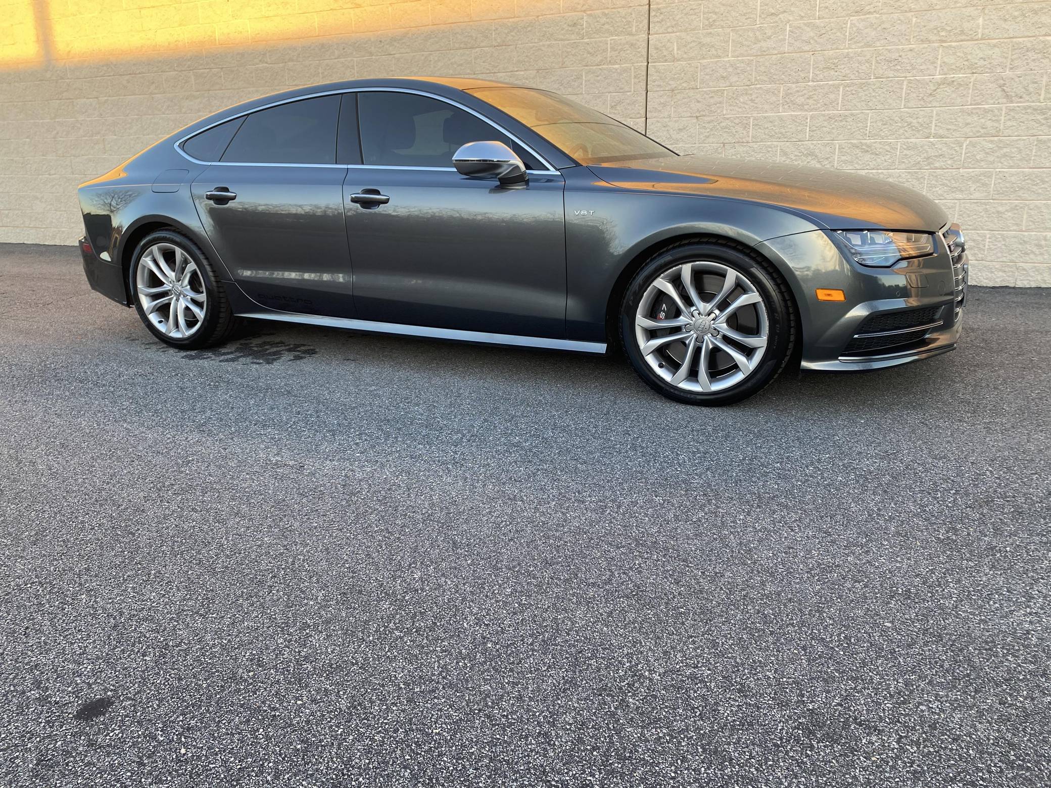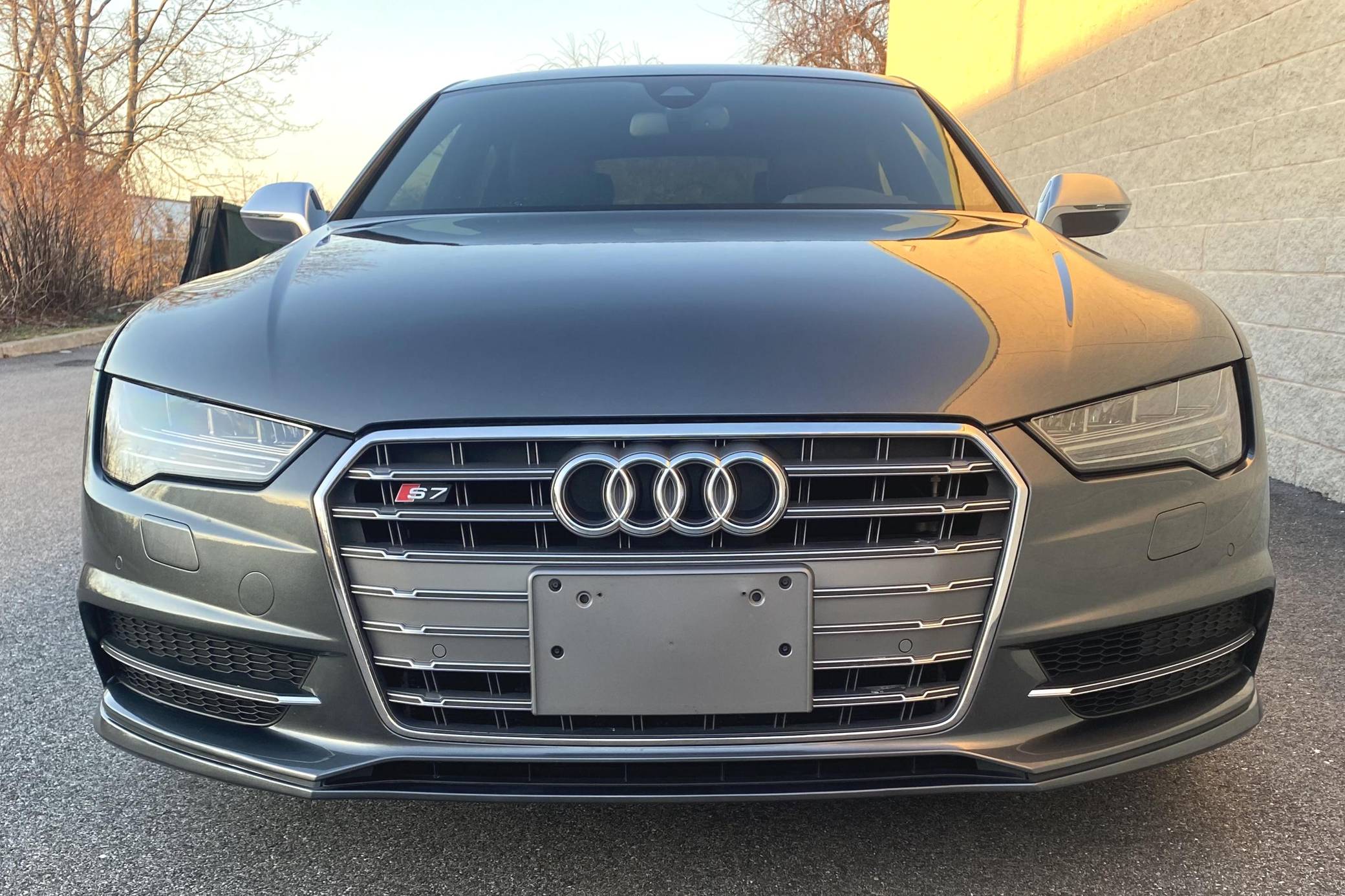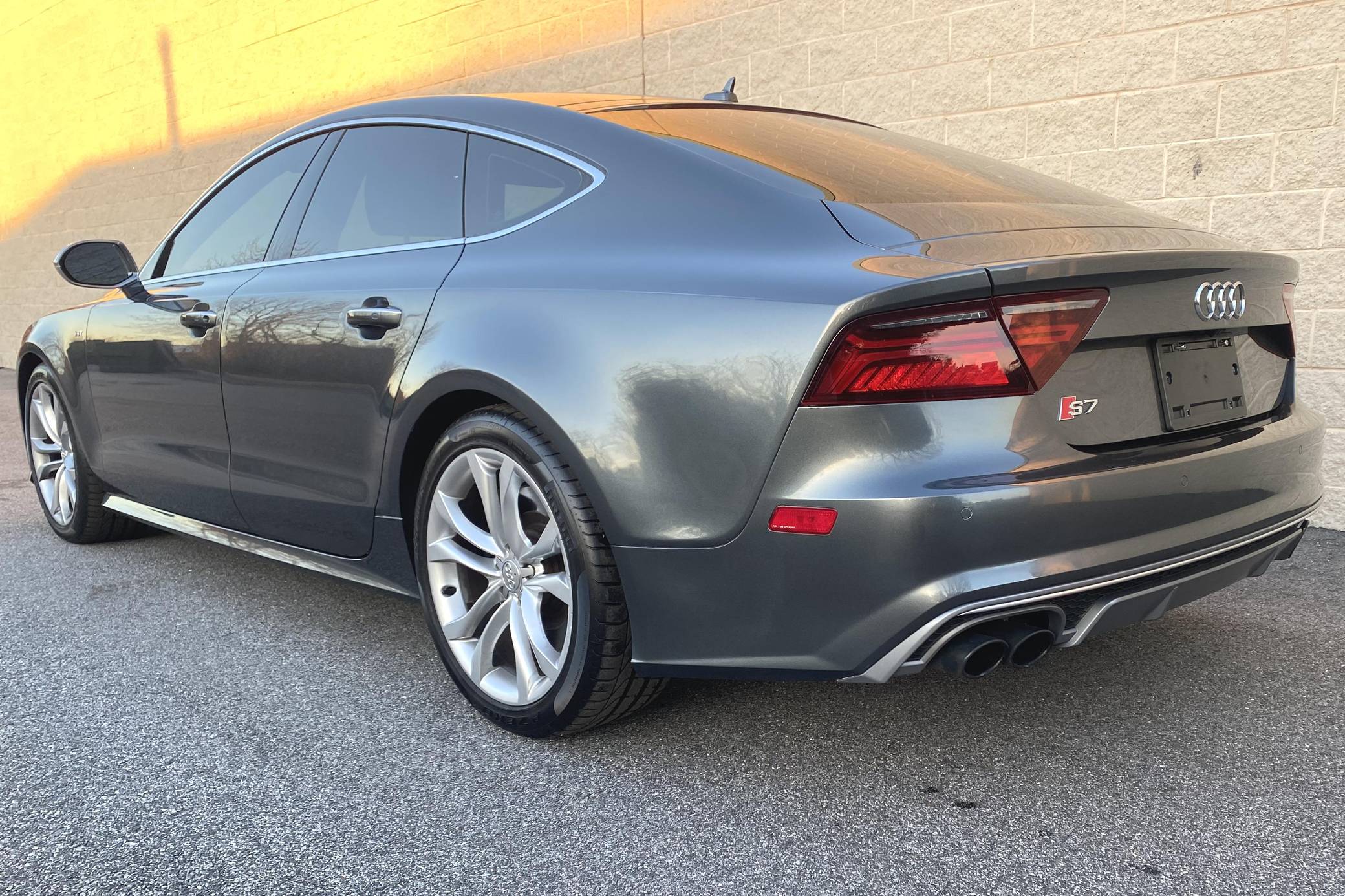 THIS… is a 2016 Audi S7, finished in Daytona Gray Pearl Effect with a black interior. Modifications reported by the seller are limited to tinted windows. Audi launched the first-generation A7 for the 2012 model year as its style icon, and it expanded the range with the V8-powered S7 for 2013. Both were related to the A6 under the sheet metal, but they stood out with a gorgeous design and surprising practicality thanks to a large hatch. An update for the 2016 model year brought revised sheet metal and a significant bump in power, making the S7 quicker and more luxurious than before. Power comes from a 4. 0-liter turbocharged V8 engine, rated at 450 horsepower and 406 lb-ft of torque. Output is sent to all four wheels via a 7-speed automatic transmission and Audi's Quattro permanent all-wheel drive system.