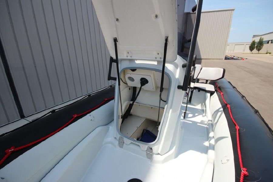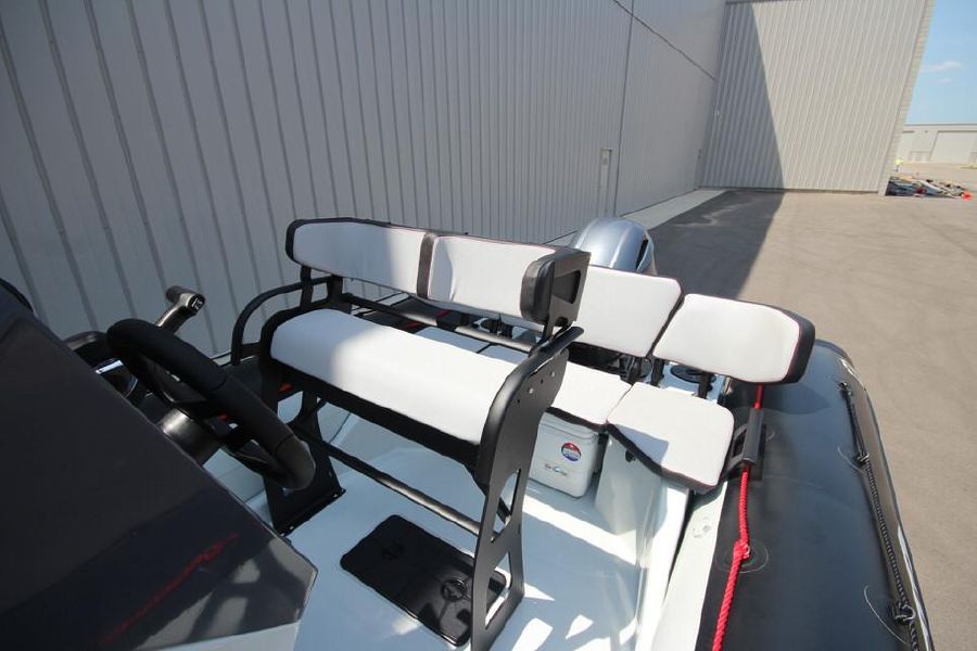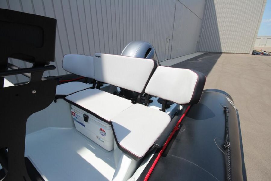 An adventurer style with sleek lines, a perfectly ergonomic cockpit, an exceptional reinforced deep-V hull offering control and stability through hazardous and rough seas, OPEN 5.5 is the SUV of the seas. Integrated fuel tank (26 Gallon / 100 L) + water/fuel separator, Battery switch, Navigation lights, Tilt forward console with front hatch, large dashboard surface, 2 empty-pockets, 12V/USB socket and cupholders, Protective windscreen, Mechanical steering system, Pilot/co-pilot leaning post, storage, Stern seats with removable backrests, 14 Gallon (54L) cooler, Bathing ladder, 2 paddles, foot pump & pressure gauge, repair kit and owner’s manual, Hull polyester, Anchor locker, 2 high volume bailers, Bollard, 2 rear handles for passengers, 1 bow mooring bollard and 2 stern cleats, 1 bow ring and 2 towing rings, Bilge pump, Buoyancy tube, Removable tube, Strongman or Neoprene fabric, Fiberglass bow step including anchor roller, Bumper Cone, Semi-recessed valves, Double grab line, Large profile rub strake, Bumper cones.
