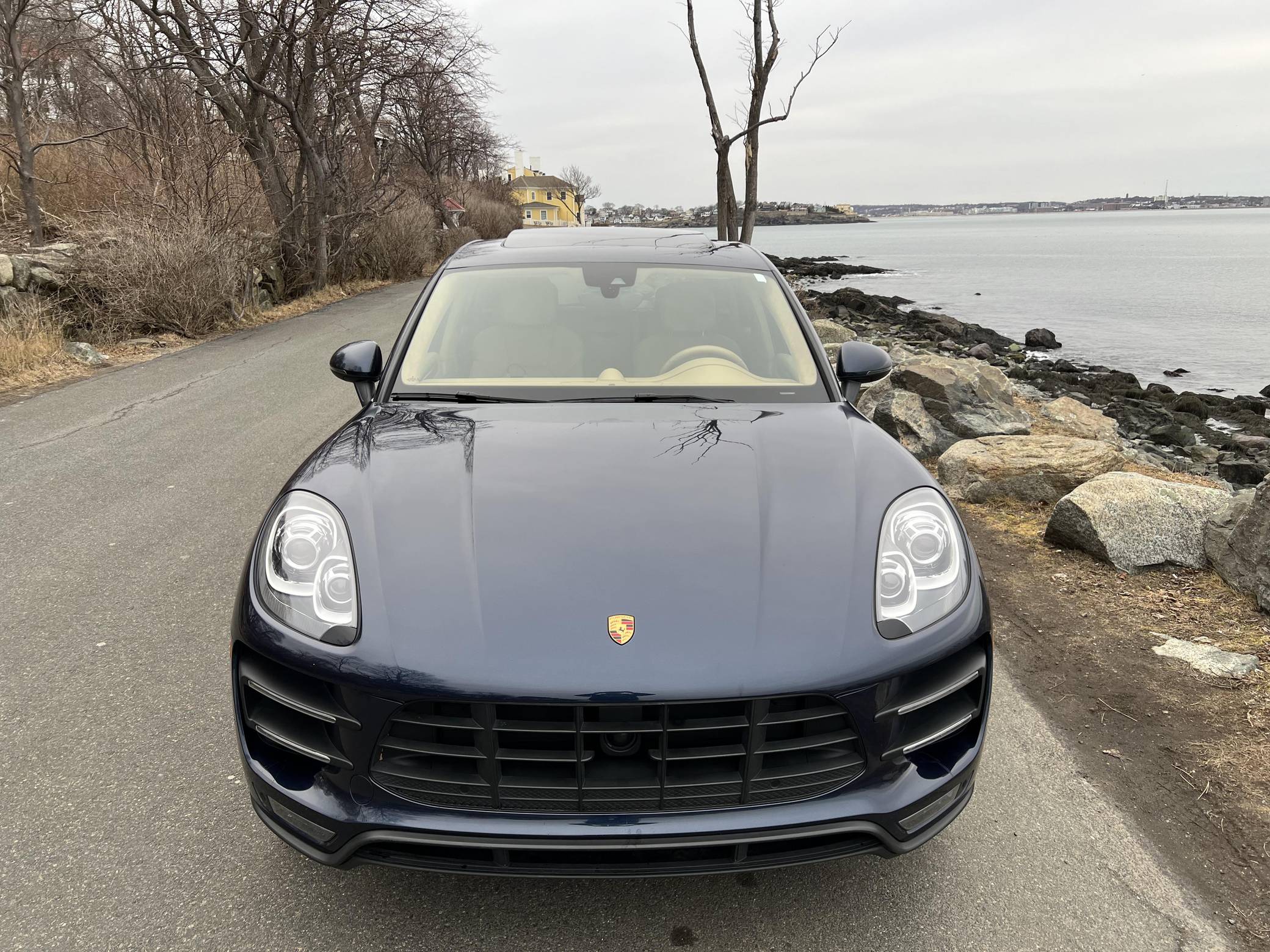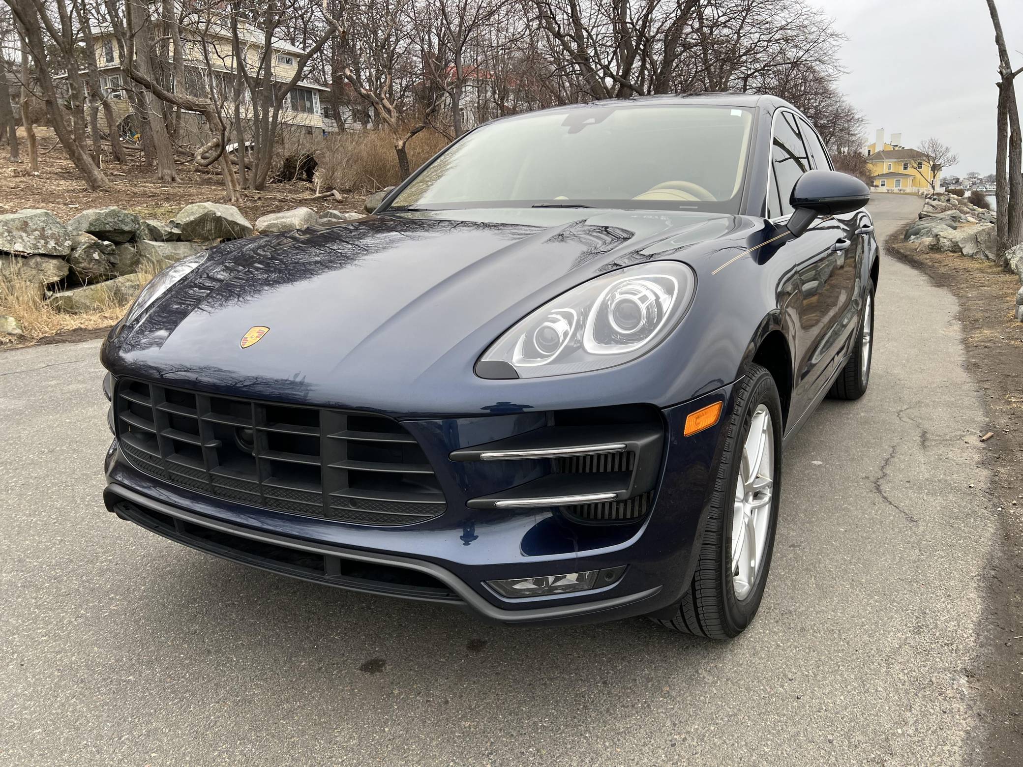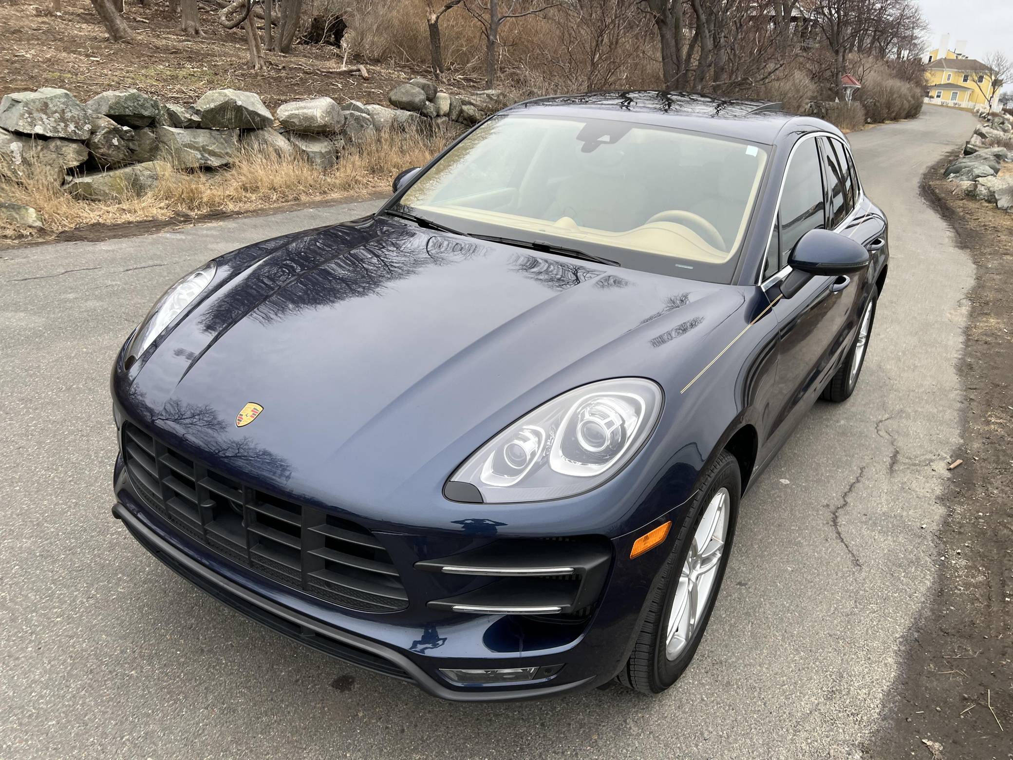2015 Porsche Macan Turbo, finished in Dark Blue Metallic with a Luxor Beige interior. A build sheet is provided in the photo gallery, and a partial list of notable equipment includes the Premium Package Plus, the Sport Chrono, Comfort Lighting, and Carbon Fiber Interior packages, 19-inch Macan Turbo wheels, leather upholstery, power-adjustable, heated, and ventilated front seats, a navigation system, a Bose surround sound system, and more as detailed below. Modifications reported by the seller are limited to side pinstripes, tinted windows, and an Escort Passport 9500ci radar detector. Encouraged by the Cayenne's success and eager to tap into one of the biggest segments of the market, Porsche introduced the Macan as its entry-level SUV for 2015. Some of the model's underpinnings came from Audi, but Porsche dialed in a level of performance and handling that's unusual to find in a compact SUV. The Turbo model was positioned at the top of the line-up through the 2021 model year. Power comes from a turbocharged 3. 6-liter V6, rated at 400 horsepower and 406 lb-ft of torque. It spins the four wheels via a 7-speed dual-clutch automatic transmission.