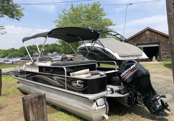2011 Misty Harbor 2085 FS Pontoon. 20 Foot Pontoon Boat in Beautiful shape. The boat is 2011, Engine new in 2015. Brand new cover and POWER BIMINI TOP was just installed last year.2015 Trailer included and like new (used once)! It has been stored in Indoors Rack Storage. Prepped and winterized - READY for a new owner. New power bimini top. Included depth finder, cover, trailer, Power Bimini Top, anchor, batteries, portable toilet.