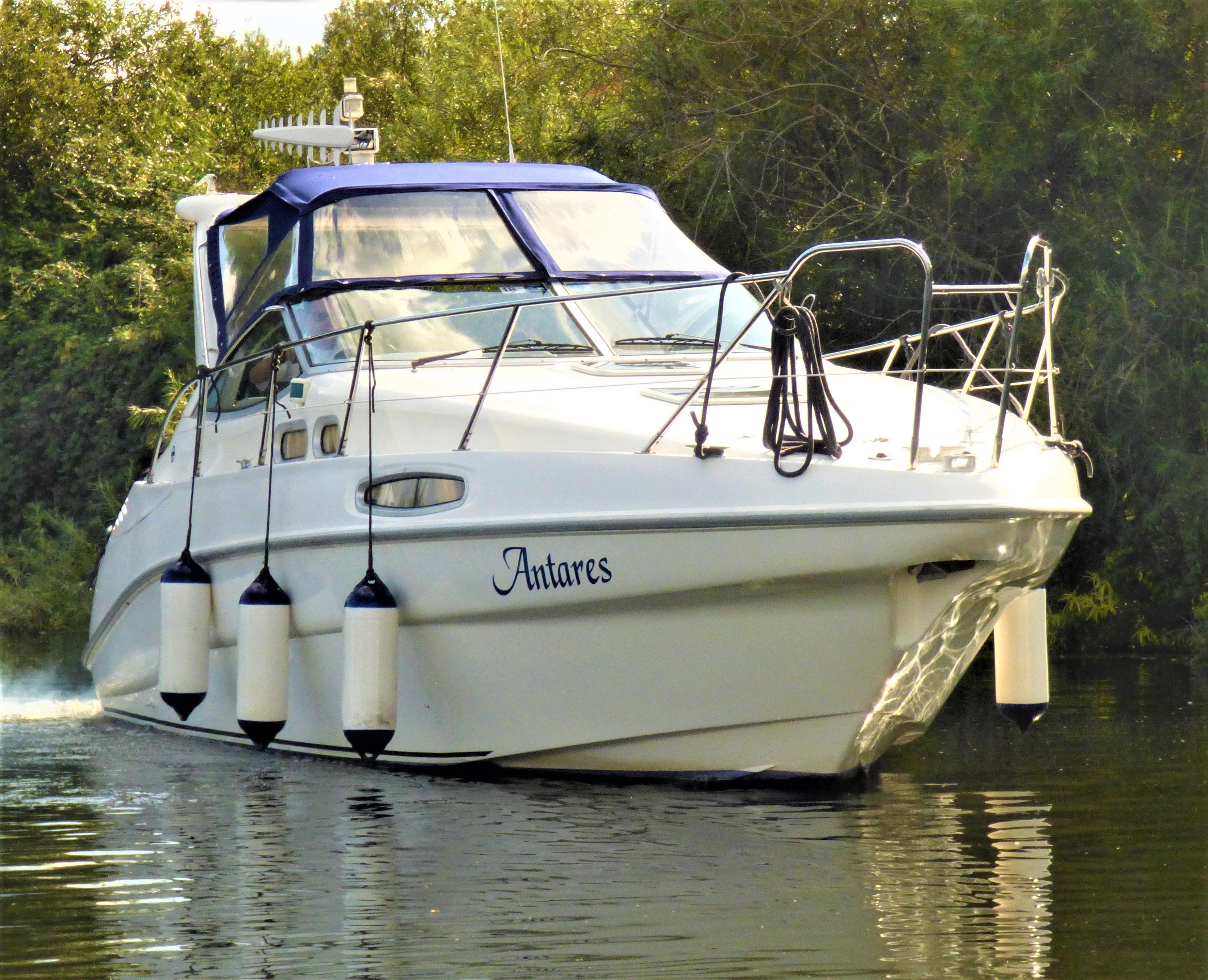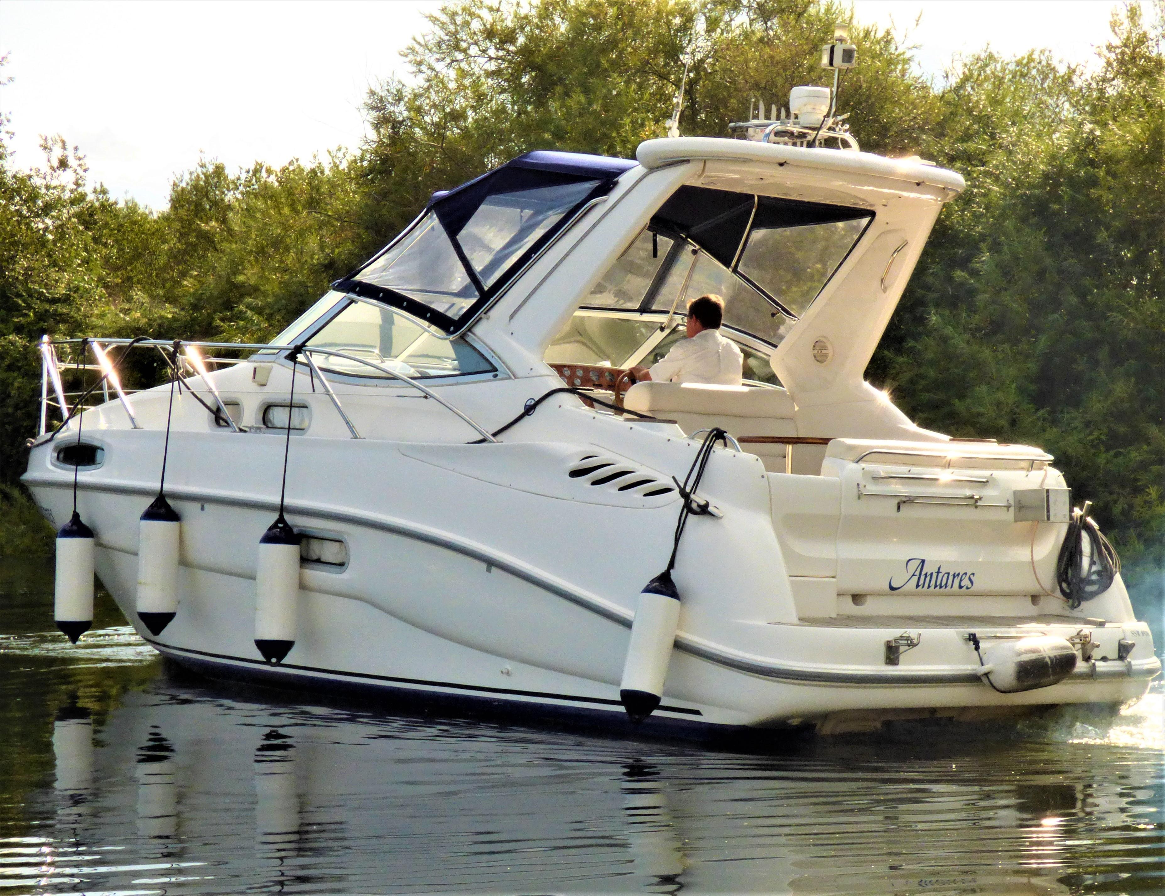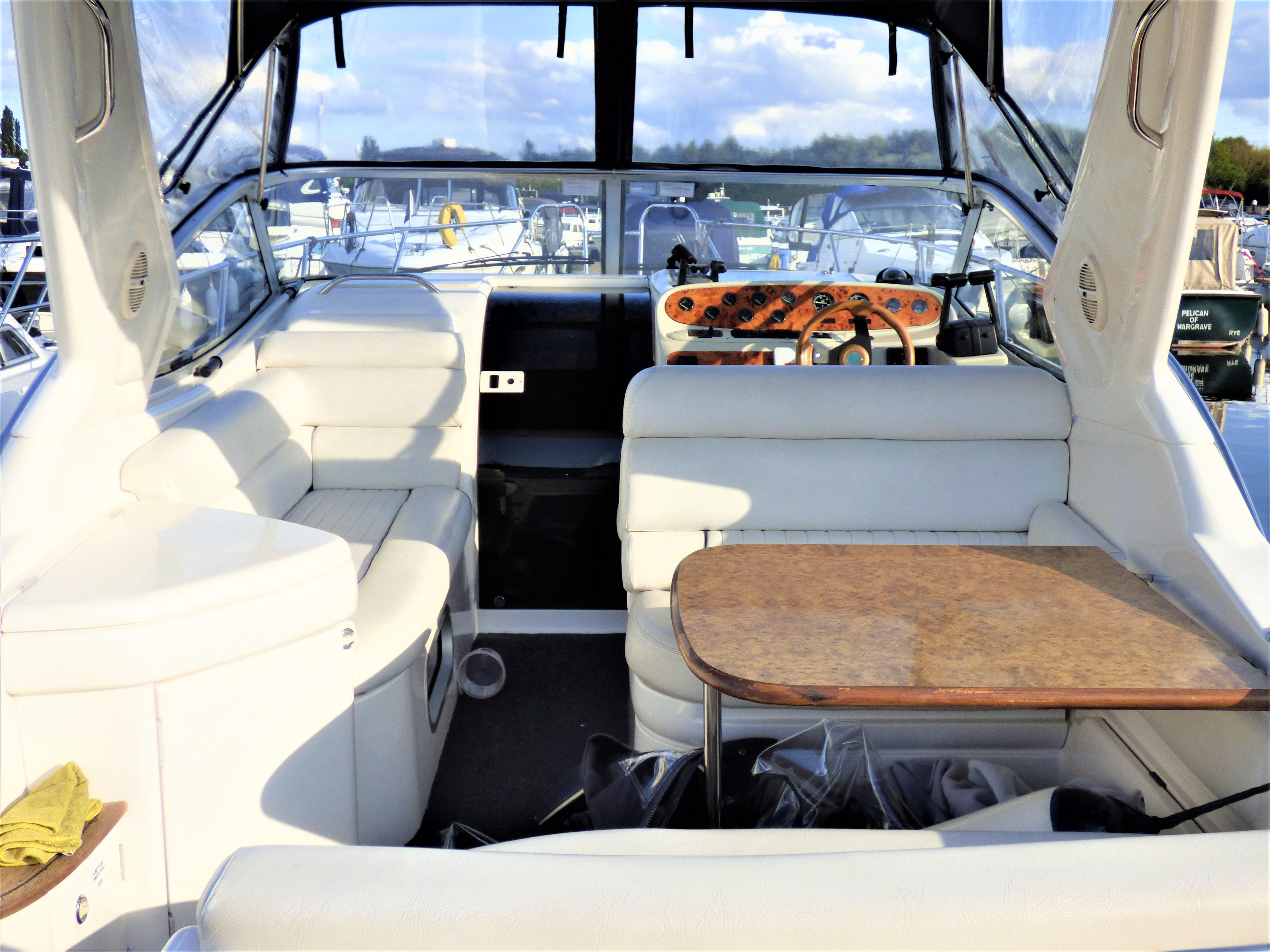This is a superbly presented 28 feet vessel. Factory fitted options include: VHF, Oven & Grill, Radio cassette & 4 speakers, Heating, Remote control spotlight, cockpit Fridge, Cockpit carpet, Teak Bathing Platform, Snap Davits, Recent Works / Upgrades include Annual Full Service to Drives & Engines, 2019 – New Engine Batteries, New canopy, Victron 1600w inverter, Victron Multiplus charger, New Propellers.
