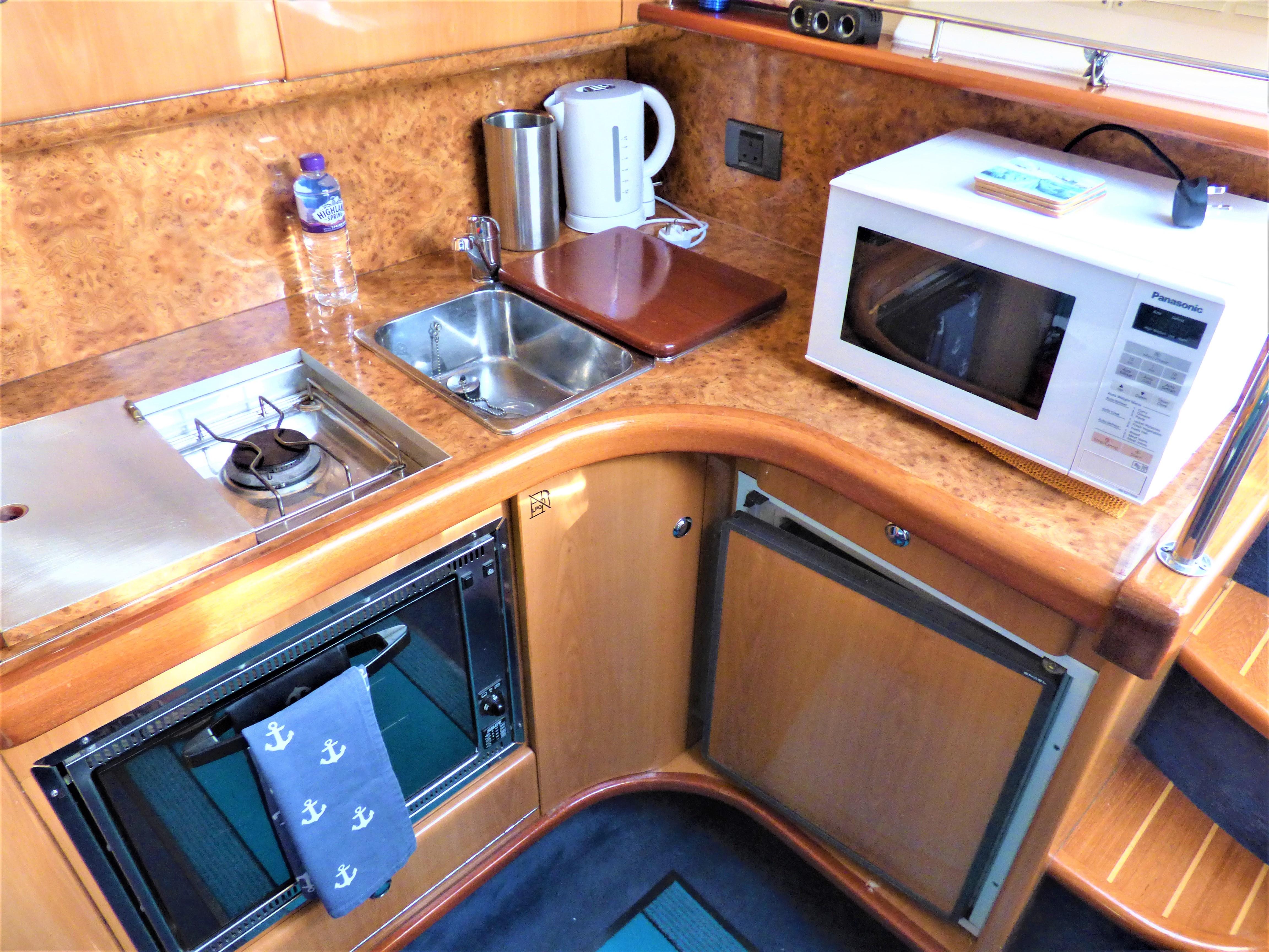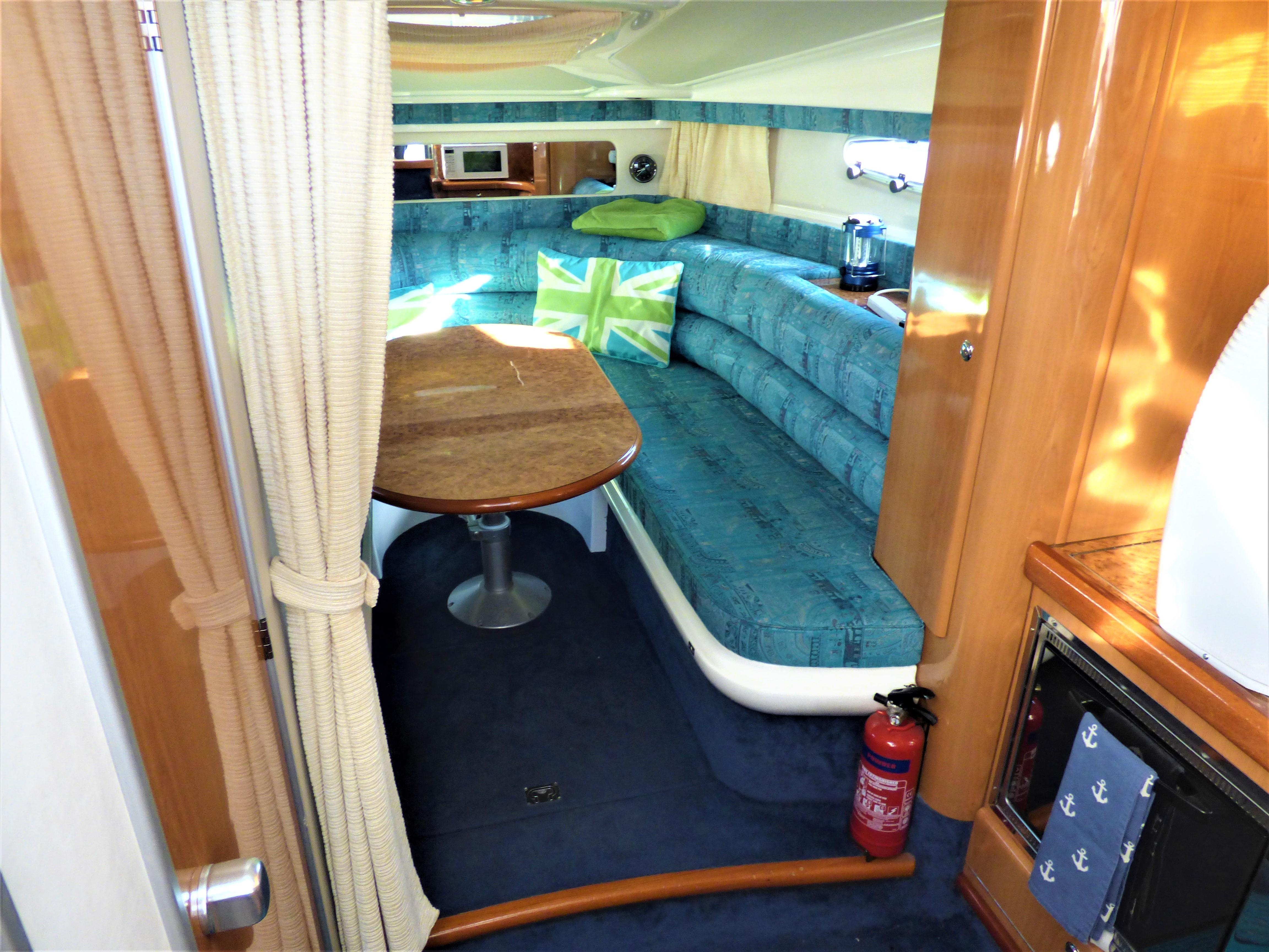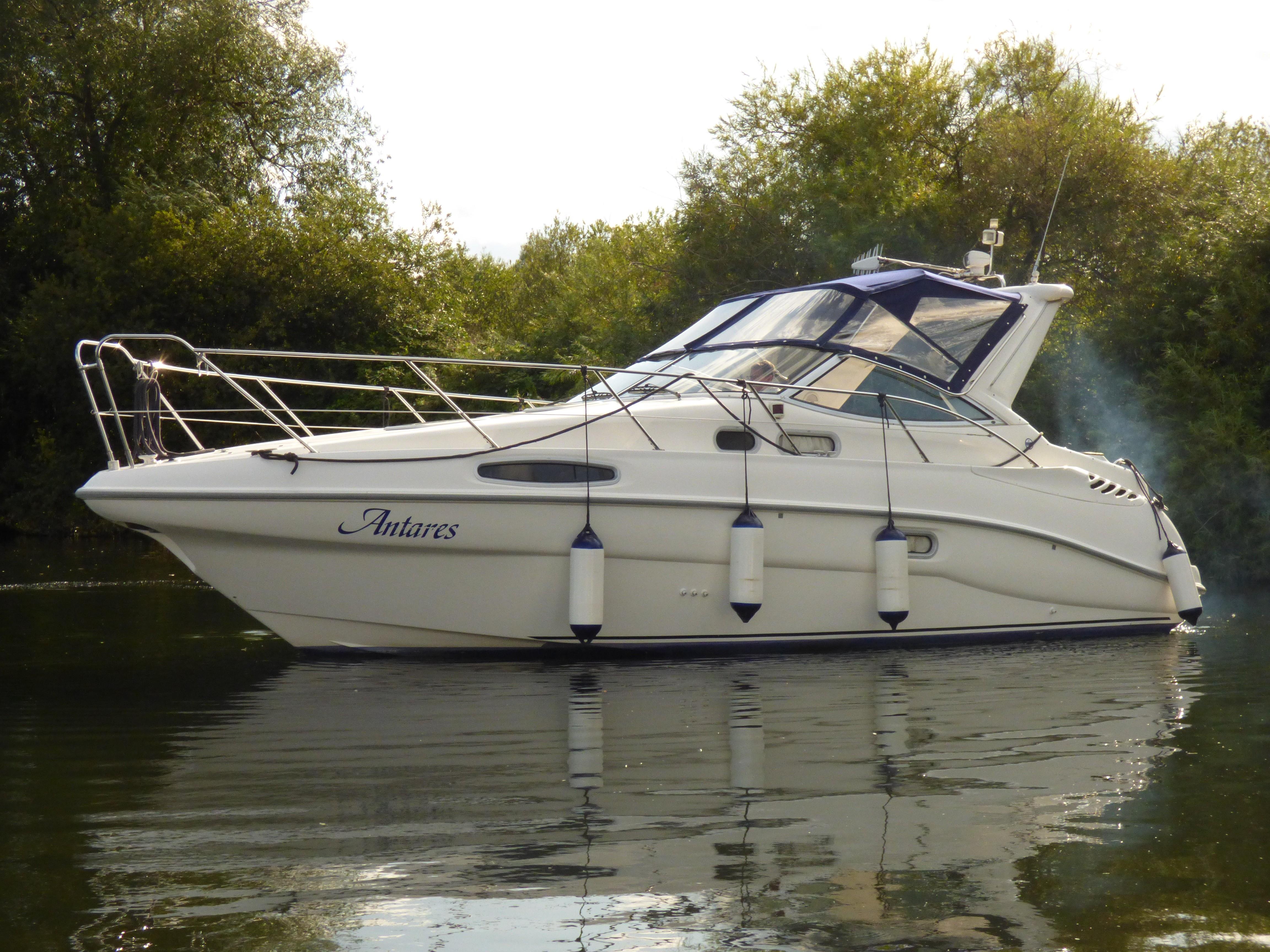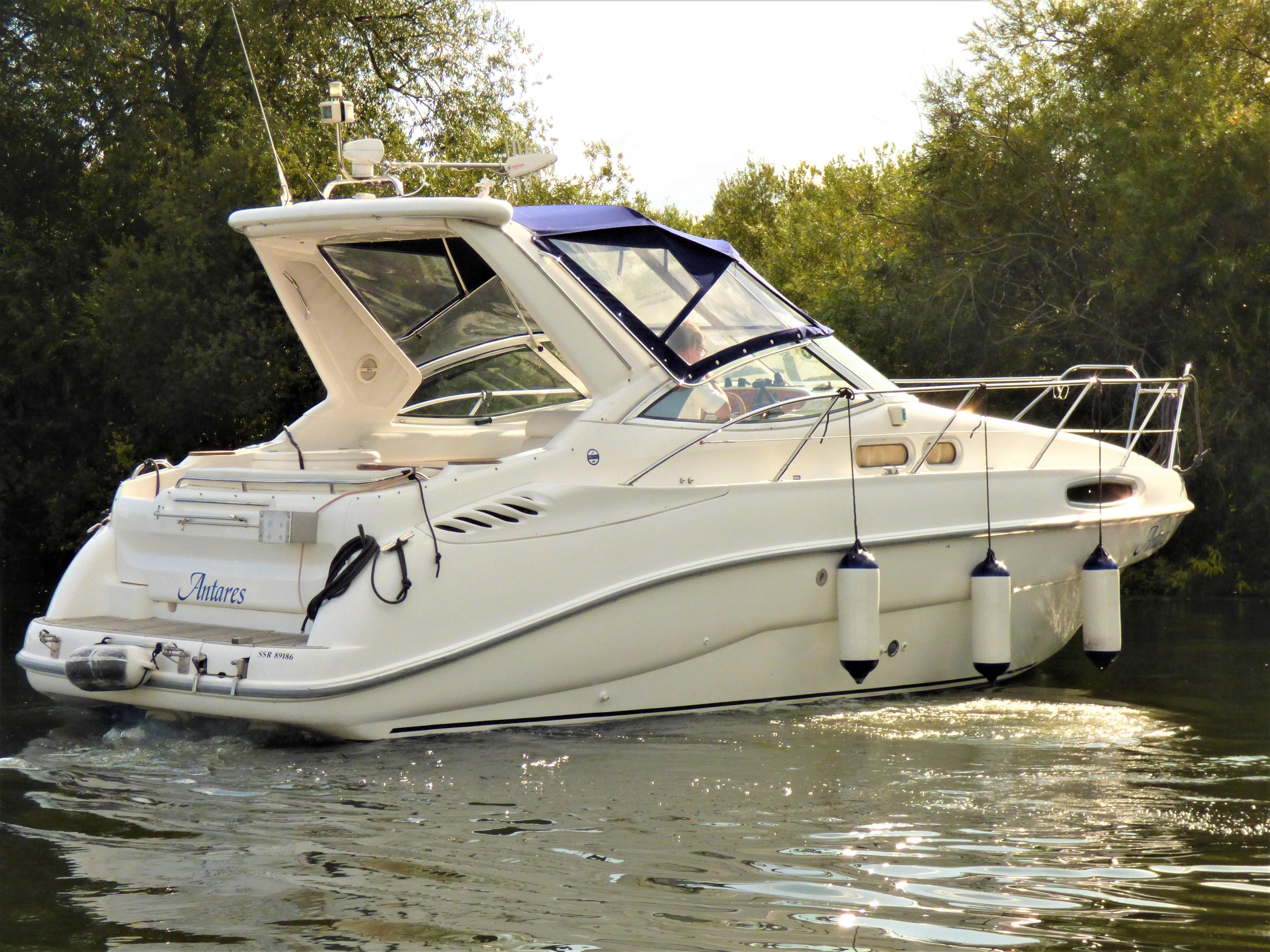 This is a superbly presented 28 feet vessel. Factory fitted options include: VHF, Oven & Grill, Radio cassette & 4 speakers, Heating, Remote control spotlight, cockpit Fridge, Cockpit carpet, Teak Bathing Platform, Snap Davits, Recent Works / Upgrades include Annual Full Service to Drives & Engines, 2019 – New Engine Batteries, New canopy, Victron 1600w inverter, Victron Multiplus charger, New Propellers.