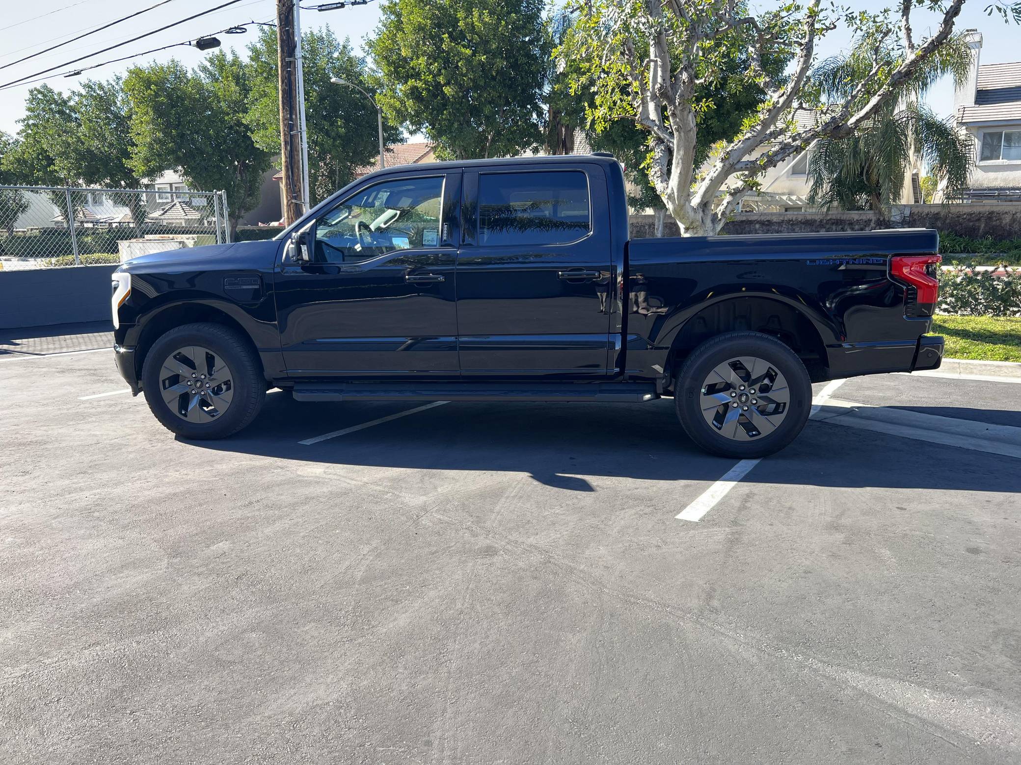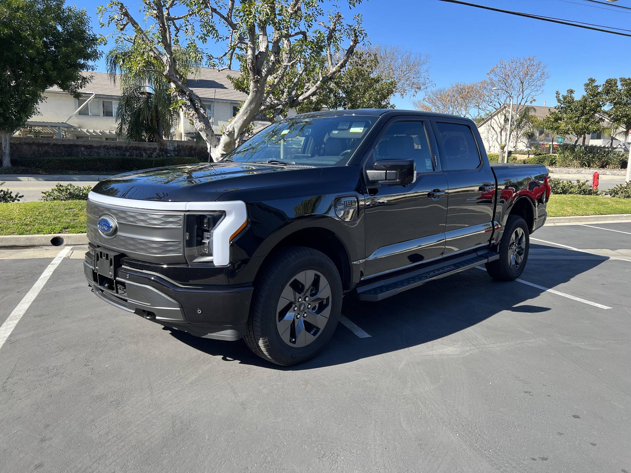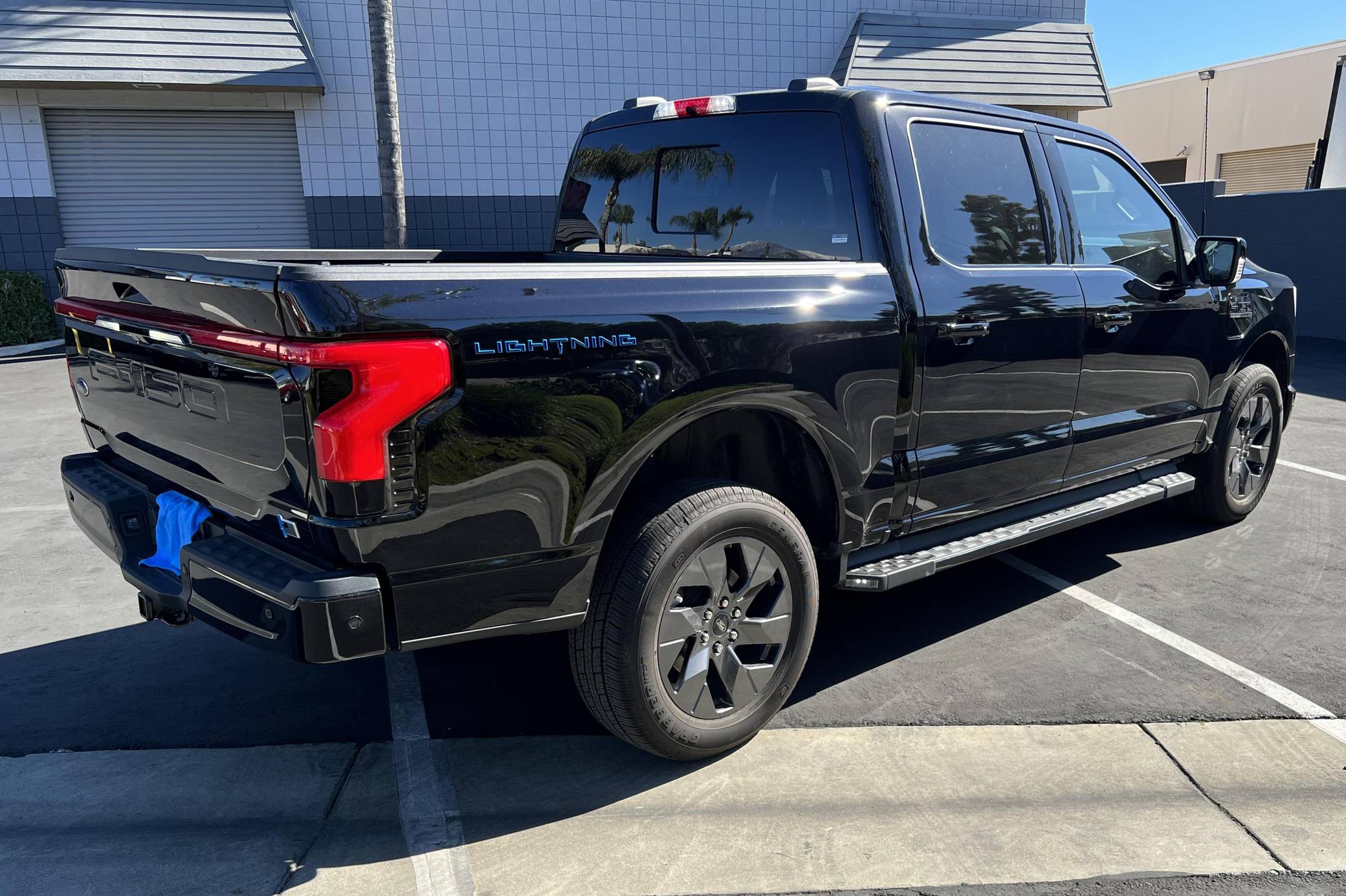 THIS. . . is a 2022 Ford F-150 Lightning Lariat, finished in Agate Black Metallic with a black interior. Factory equipment includes 20-inch wheels, LED lighting in the cargo box, a spray-in bedliner, a trailer hitch, leather upholstery, heated, ventilated, and power-adjustable front seats, a heated steering wheel, power-adjustable pedals, a 15. 5-inch touchscreen for the SYNC4 infotainment system, an 8-speaker B&O sound system, and Ford Co-Pilot360 Active 2. 0 technology. The seller reports no modifications. Formerly used on a high-performance variant of the F-150, the Lightning nameplate was revived for the 2022 model year for Ford's first series-produced electric truck. Every member of the line-up offers dual electric motors for through-the-road four-wheel drive, but buyers have two battery packs to choose from and driving range varies accordingly. The F-150 Lightning is still available today. Power comes from a pair of electric motors (one per axle), which draw electricity from a 98-kilowatt-hour lithium-ion battery pack to zap the four wheels with 452 horsepower and 775 lb-ft of torque. The Lightning earned a maximum driving range of 230 miles from the EPA with the standard-range battery.