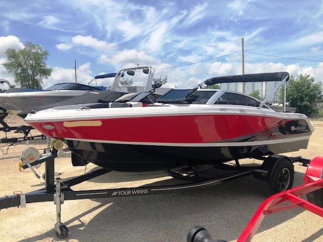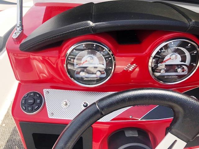 High demand late-model Four Winns Signature Series in excellent condition with babied hours. BIMINI TOP, BOW COVER, COCKPIT COVER, BILGE BLOWER, SKI TOW, BATTERY, WALK-THROUGH WINDSHIELD, AM/FM, DEPTH SOUNDER, BILGE PUMP, ENGINE ALARM, EXTRA PROPS, HYDRAULIC STEERING, MANUAL FIRE SYSTEM, POWER TRIM, SIDE CONTROLS, UNDERWATER EXHAUST.