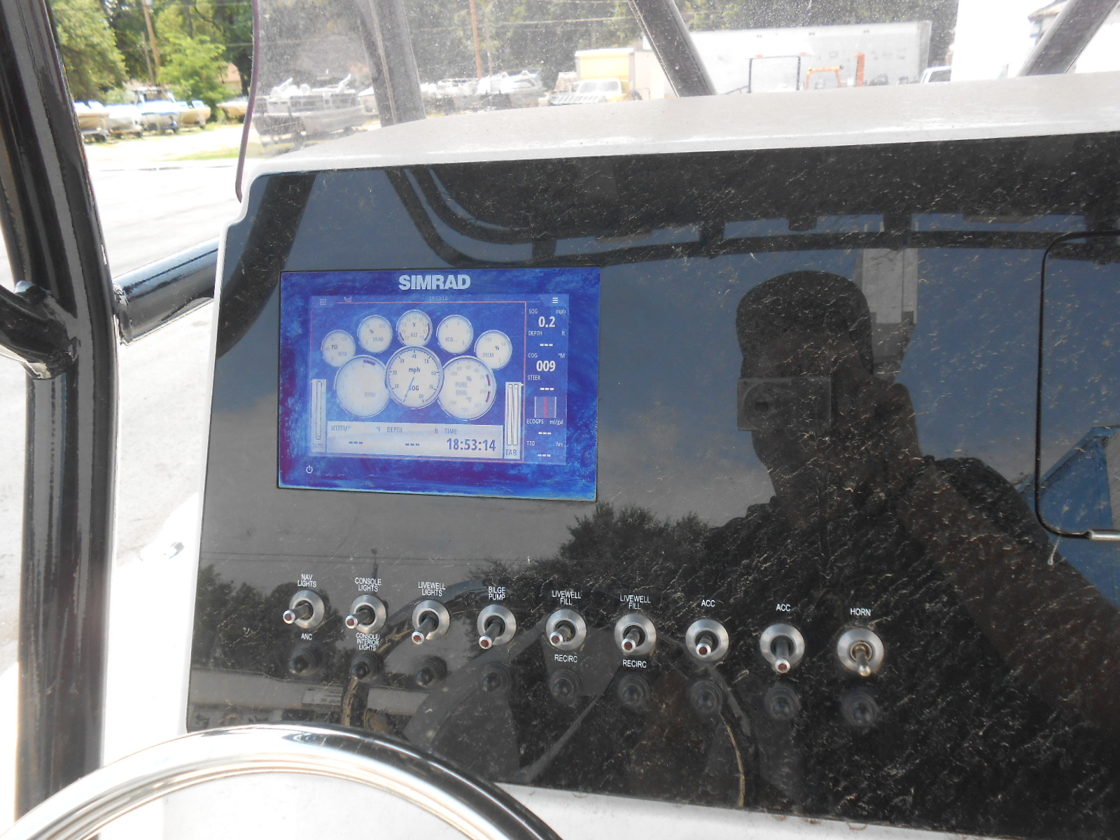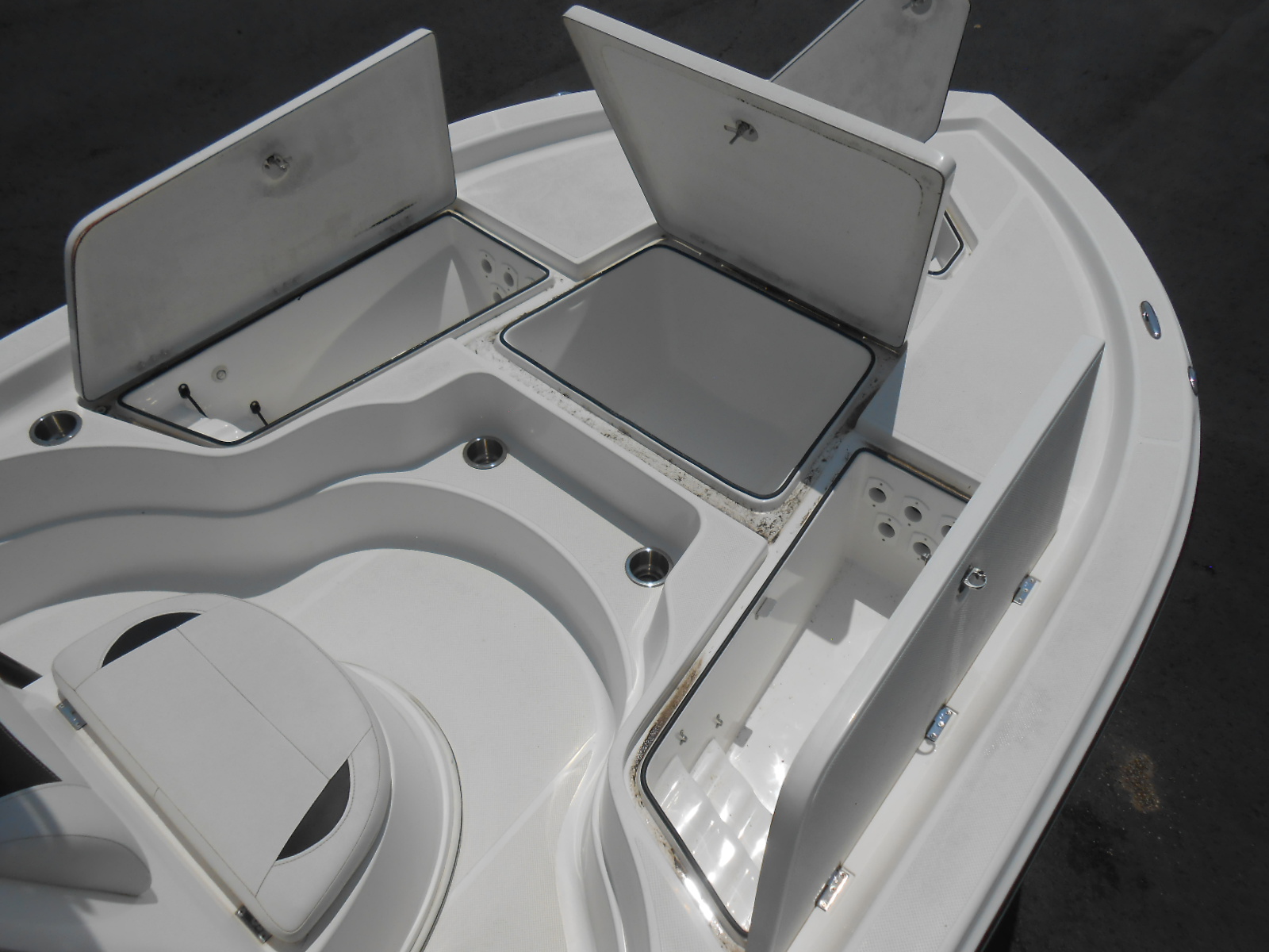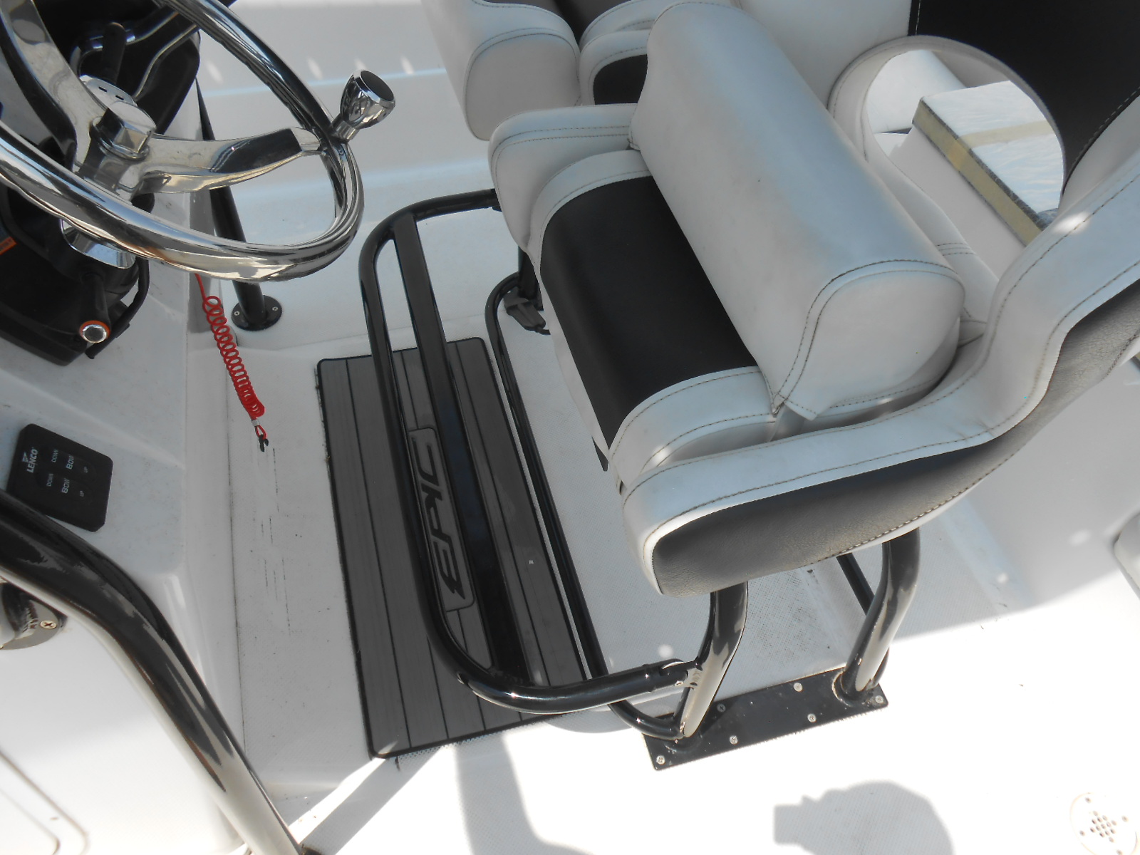 2019 Epic E2 Bay 24 center console equipped with Suzuki 225 hp 4 strokes outboard motor. Boat includes rear ladder, Livewell, hydraulic steering, rod storage, Lenco trim tabs, hydraulic jack plate, T-top tower with bimini, wind guides, bolster seats, depth finder, LED courtesy lights, retractable cleats, and tandem axle trailer with LED lights and brakes. 8 person capacity.