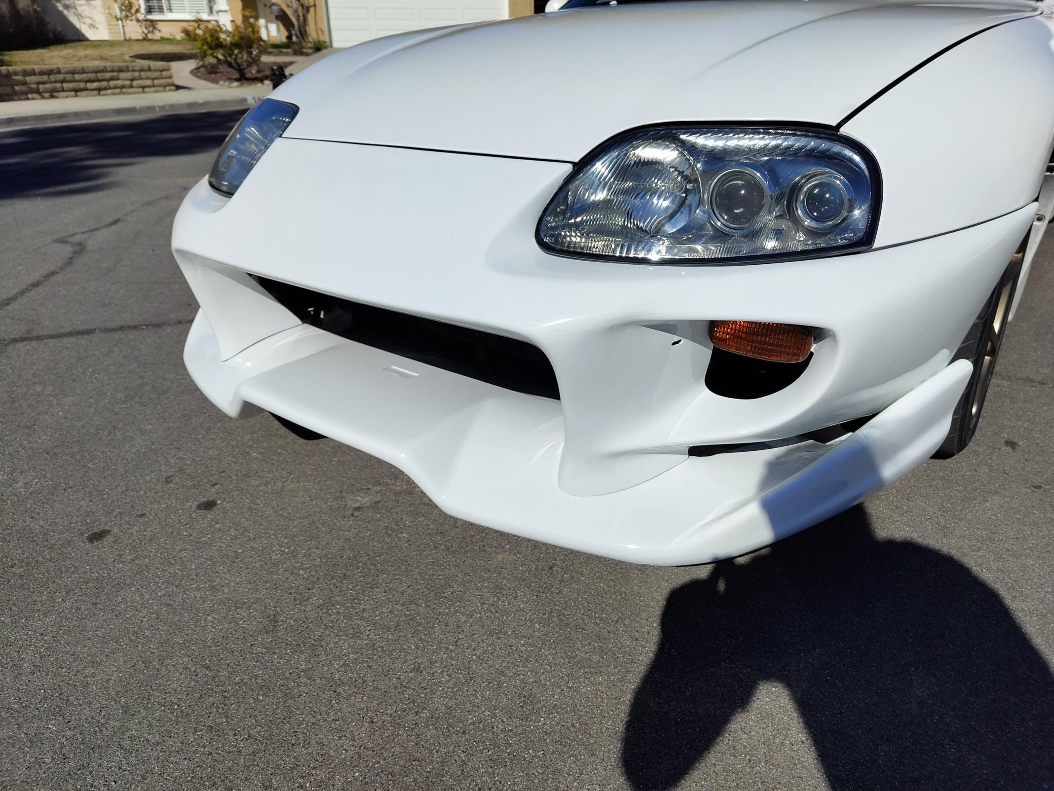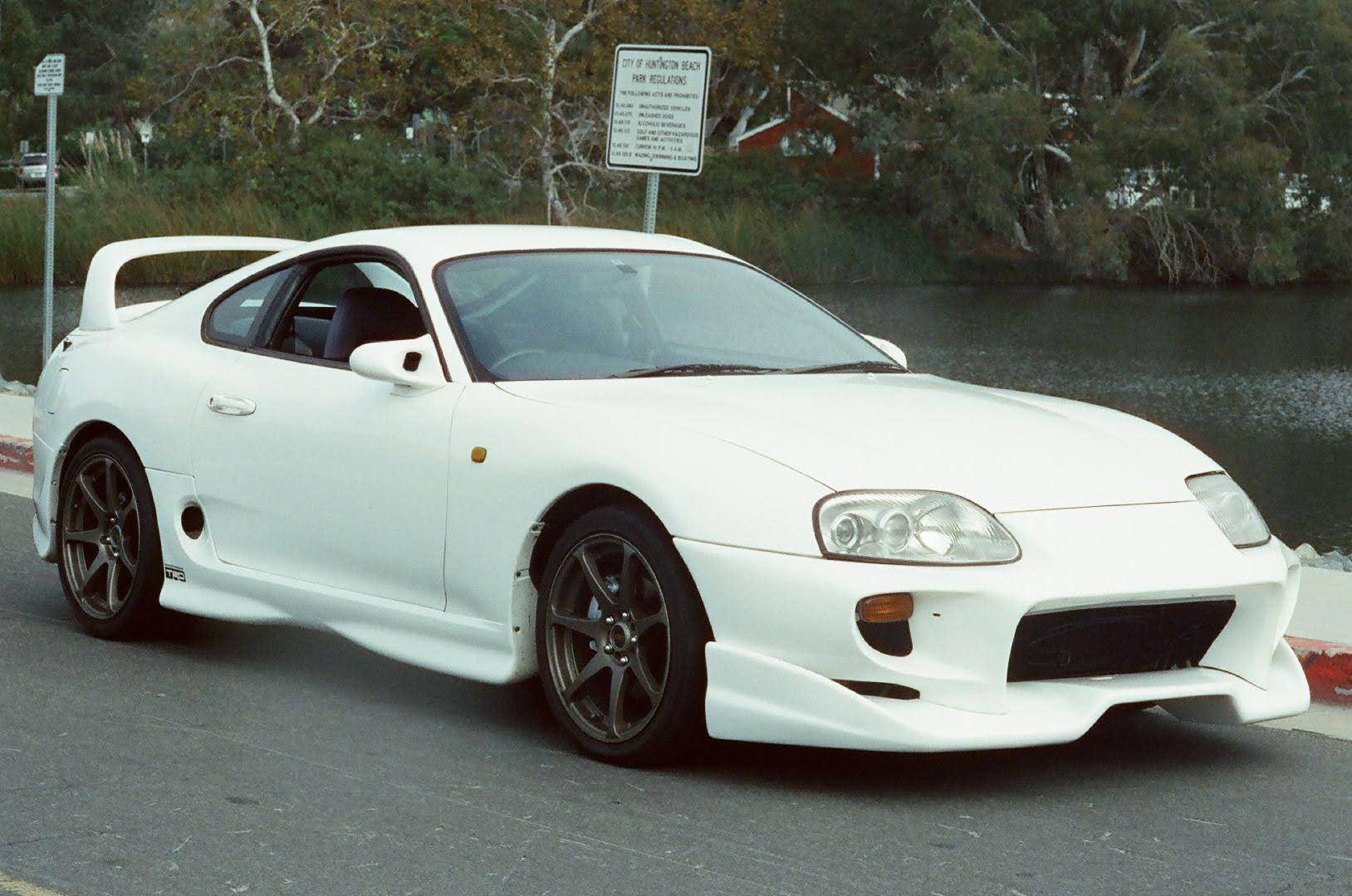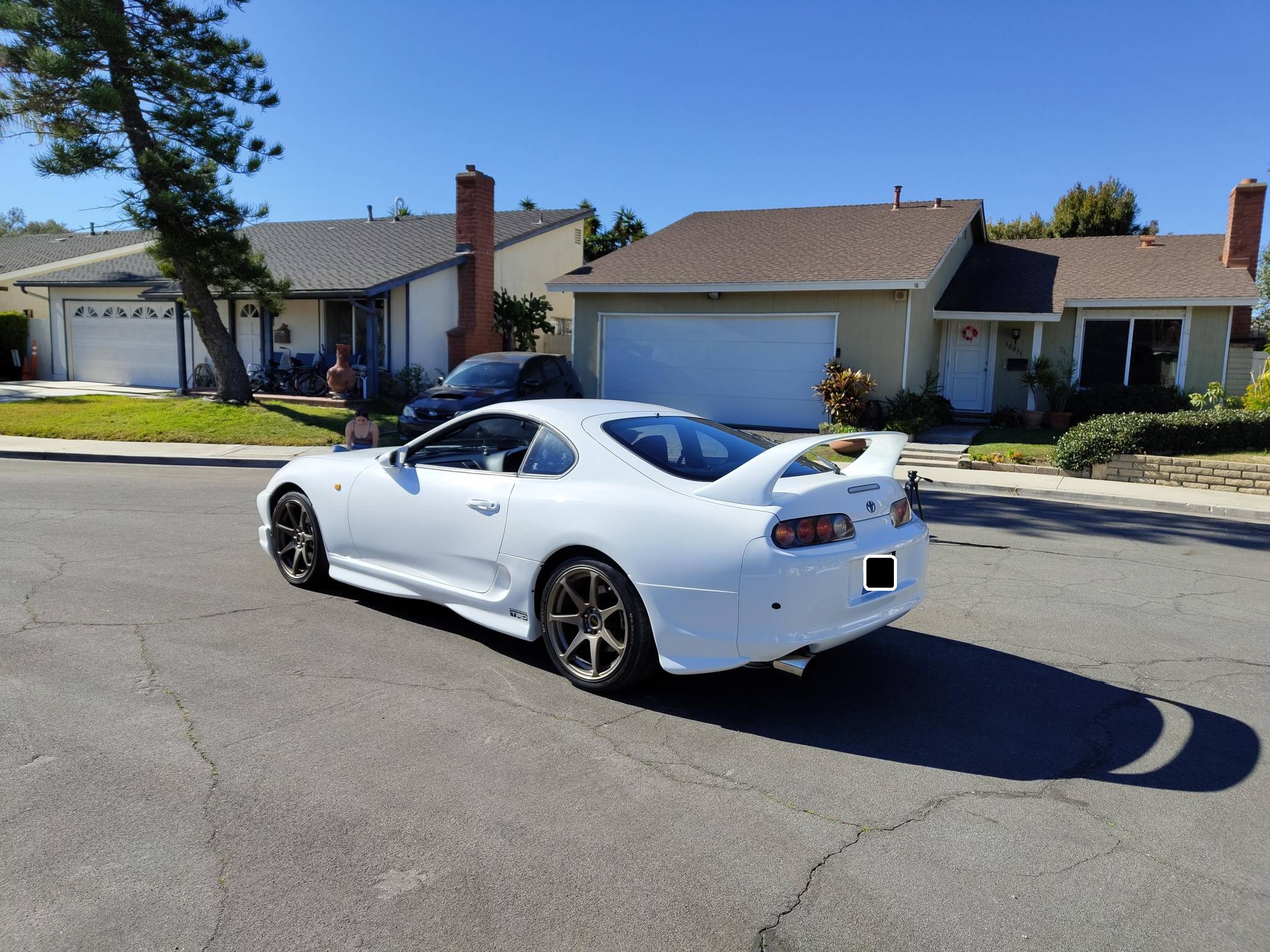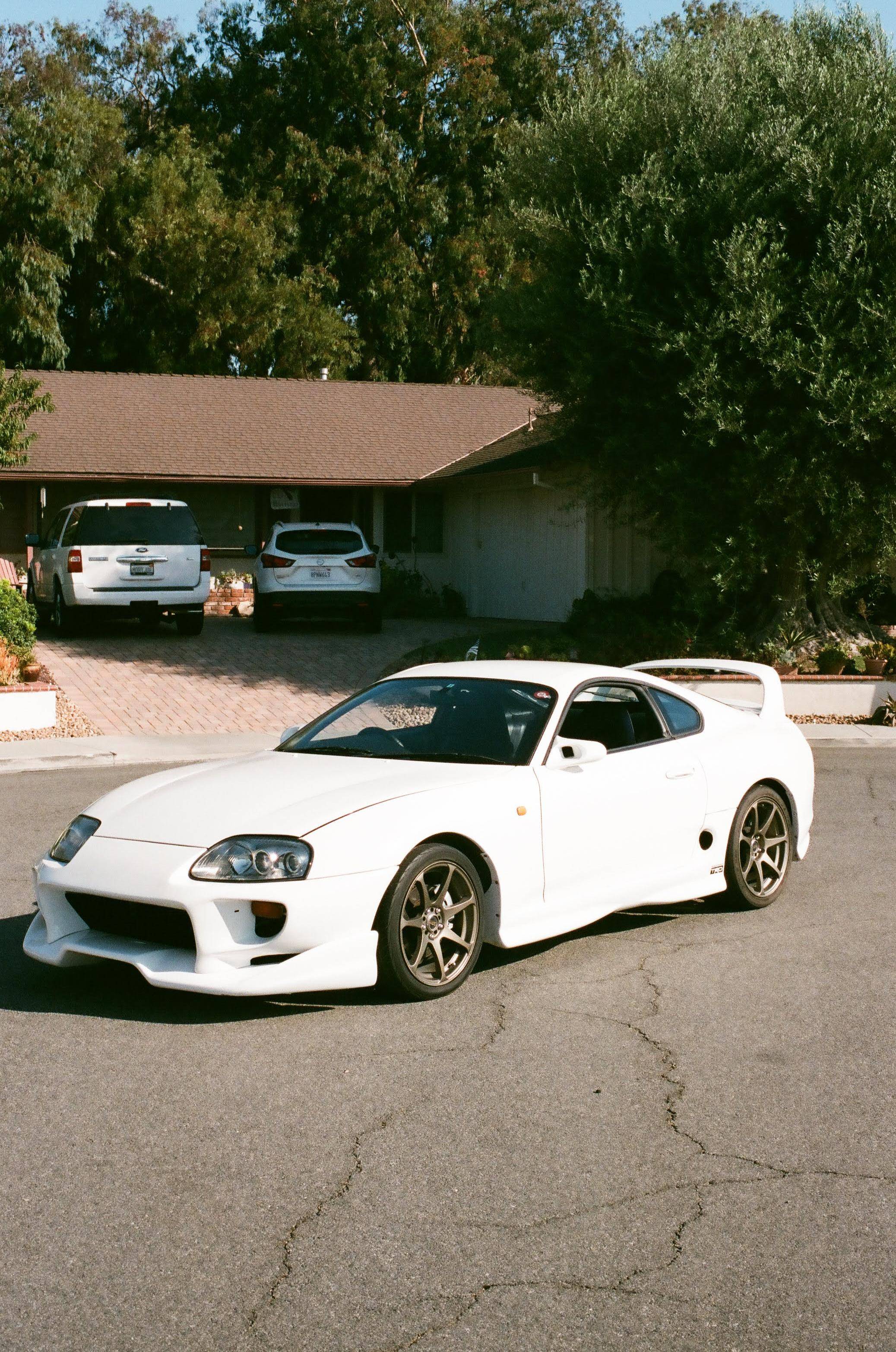 THIS. . . is a 1996 Toyota Supra, finished in white with a blue and black interior. Reportedly imported in 2022, it's equipped with a metric instrument cluster and its odometer displays about 107,700 kilometers, which represents approximately 67,000 miles. Modifications reported by the seller include a twin-disc clutch kit, 18-inch CST ZERO 1 wheels, a VeilSide C-II front bumper, TRD side skirts, a MOMO steering wheel, and a Carrozzeria head unit. Launched for 1994, the fourth-generation Supra (called "A80" internally) was celebrated as one of Toyota's best sports cars even before it earned a starring role in the Fast & Furious franchise. It offered performance that rivaled much more expensive cars and the reliability expected from a Toyota. Production ended in 2002, and the nameplate was consigned to the automotive attic until the BMW-based model arrived in 2019. Power comes from a 3. 0-liter straight-6, rated at about 220 horsepower and 210 lb-ft of torque. Called "2JZ-GE" internally, it spins the rear wheels via a 5-speed manual transmission.