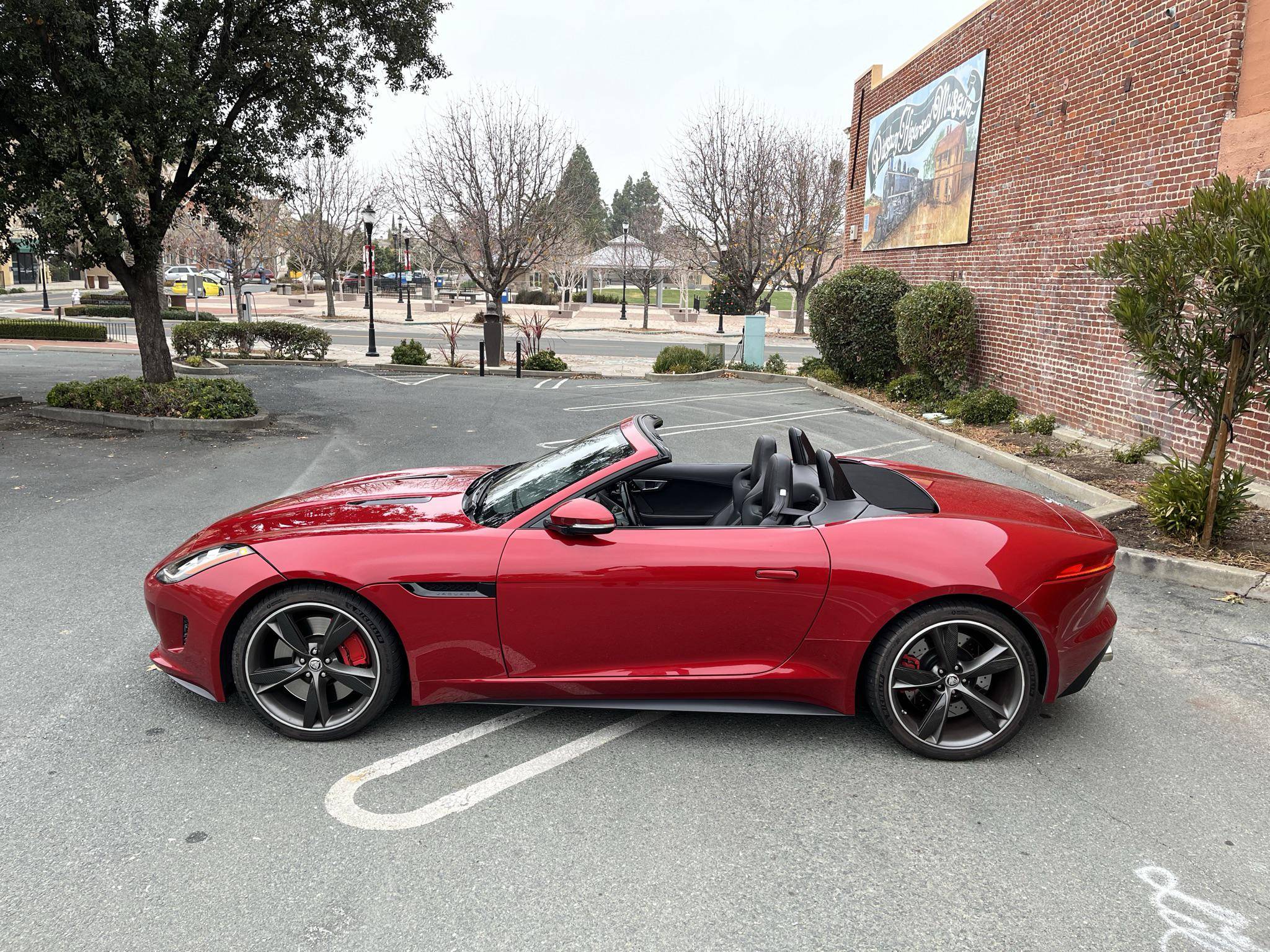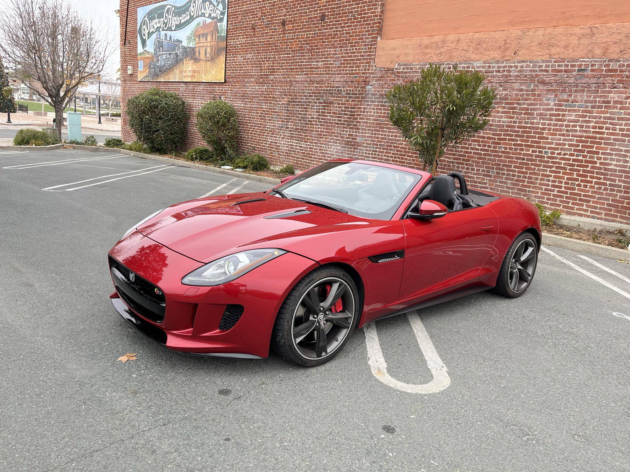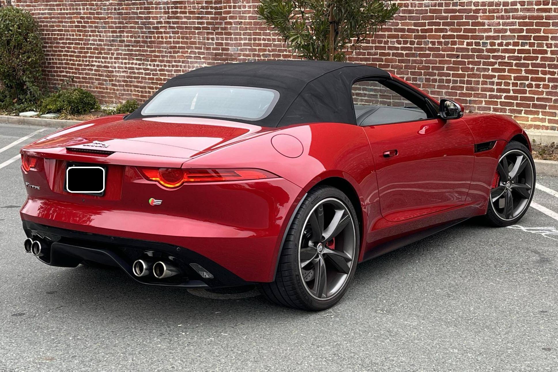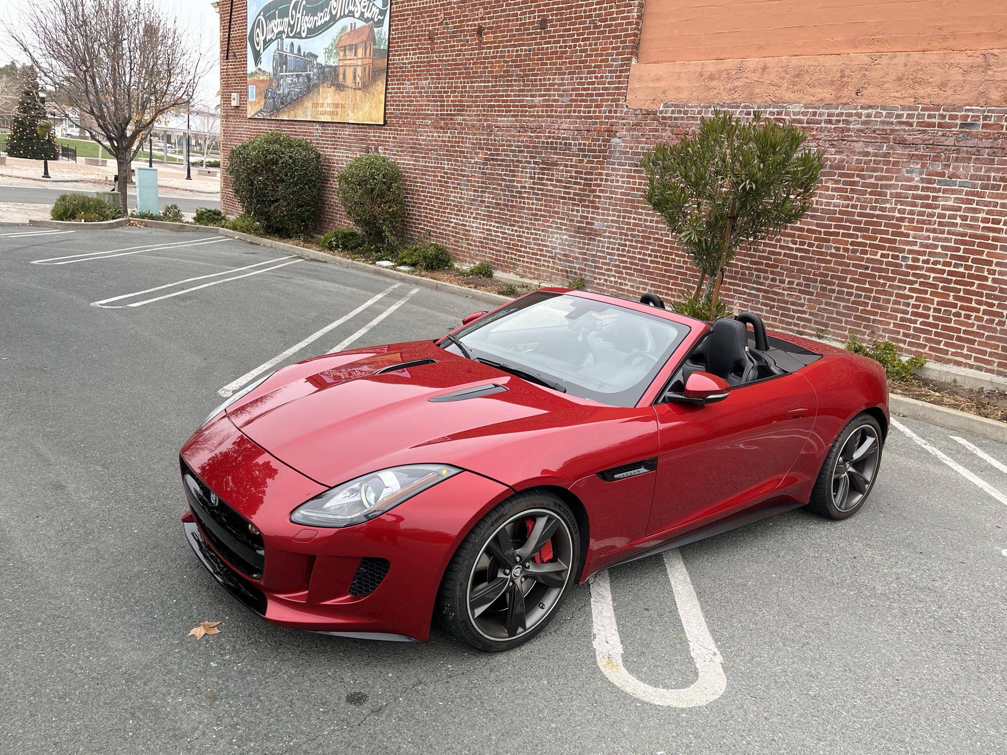 2014 Jaguar F-Type V8 S Convertible, finished in Italian Racing Red with a black soft top and a Jet interior. According to the Monroney Label pictured in the gallery, factory equipment includes the Performance, Premium, Climate, Vision, Extended Leather, and Black packs, 20-inch "Carbon Blade" wheels, adaptive dampers, an electronic active differential, a power-operated soft top, a Meridian premium sound system, and more as listed below. The only modification reported by the seller is a StopTech drilled and slotted rear axle pack. Jaguar unveiled the hotly-anticipated F-Type for the 2014 model year. Offered as a coupe and as a convertible, the F-Type was presented as the E-Type's spiritual successor, and as a British-flavored alternative to sports cars like the Porsche 911. Power comes from a 5. 0-liter supercharged V8, rated at 495 horsepower and 460 lb-ft of torque. Output is sent to the rear wheels via an 8-speed automatic transmission.