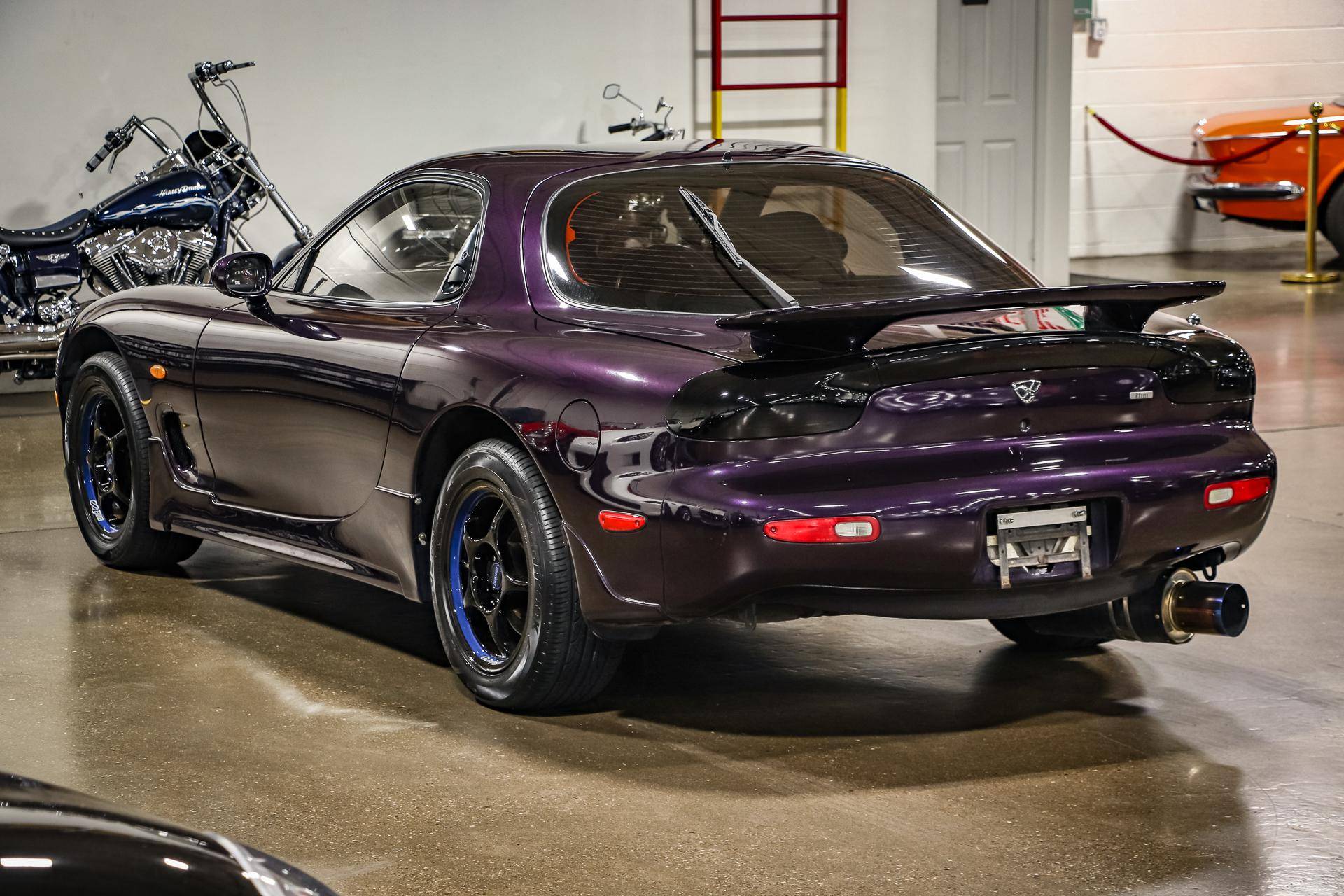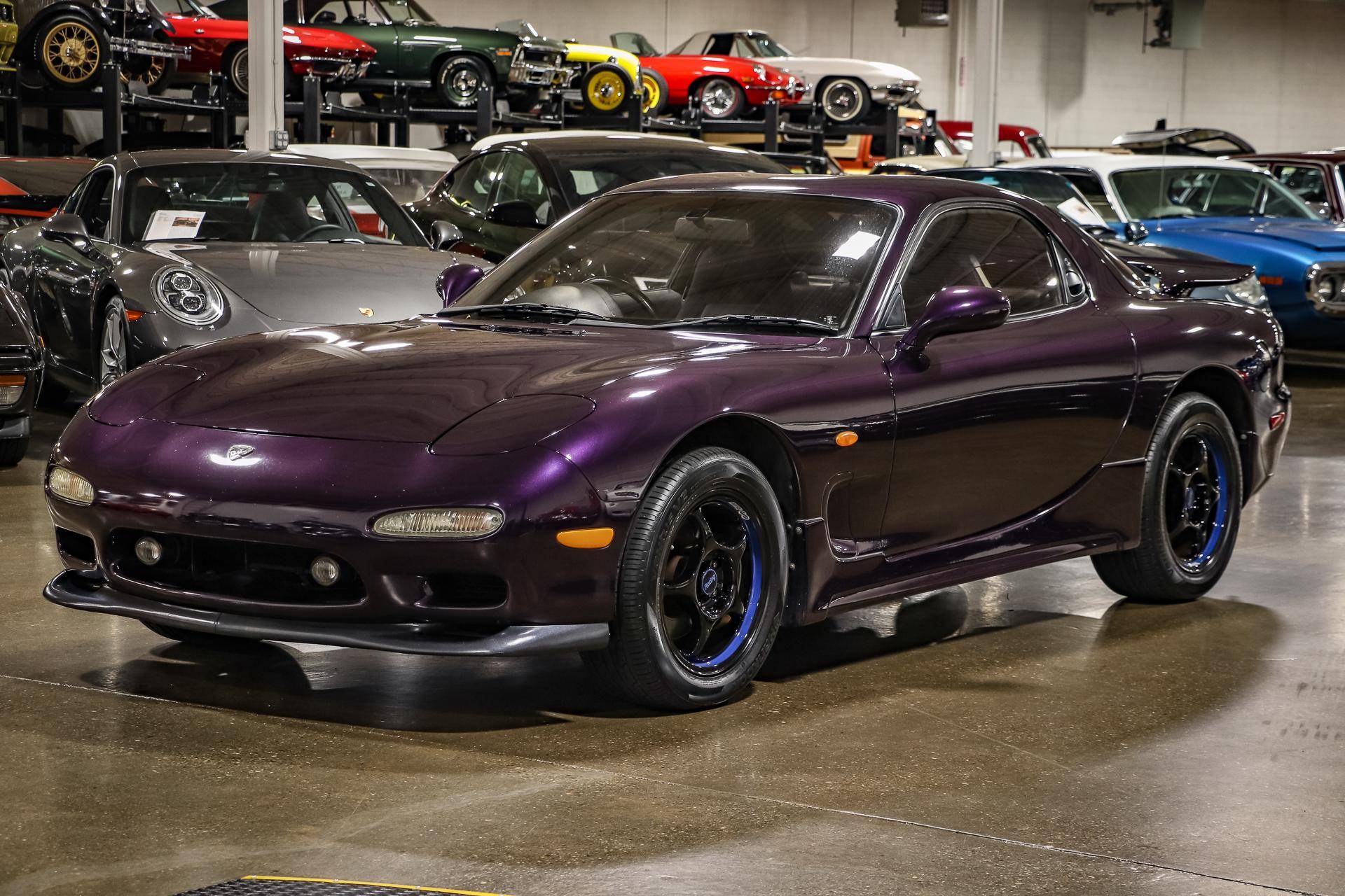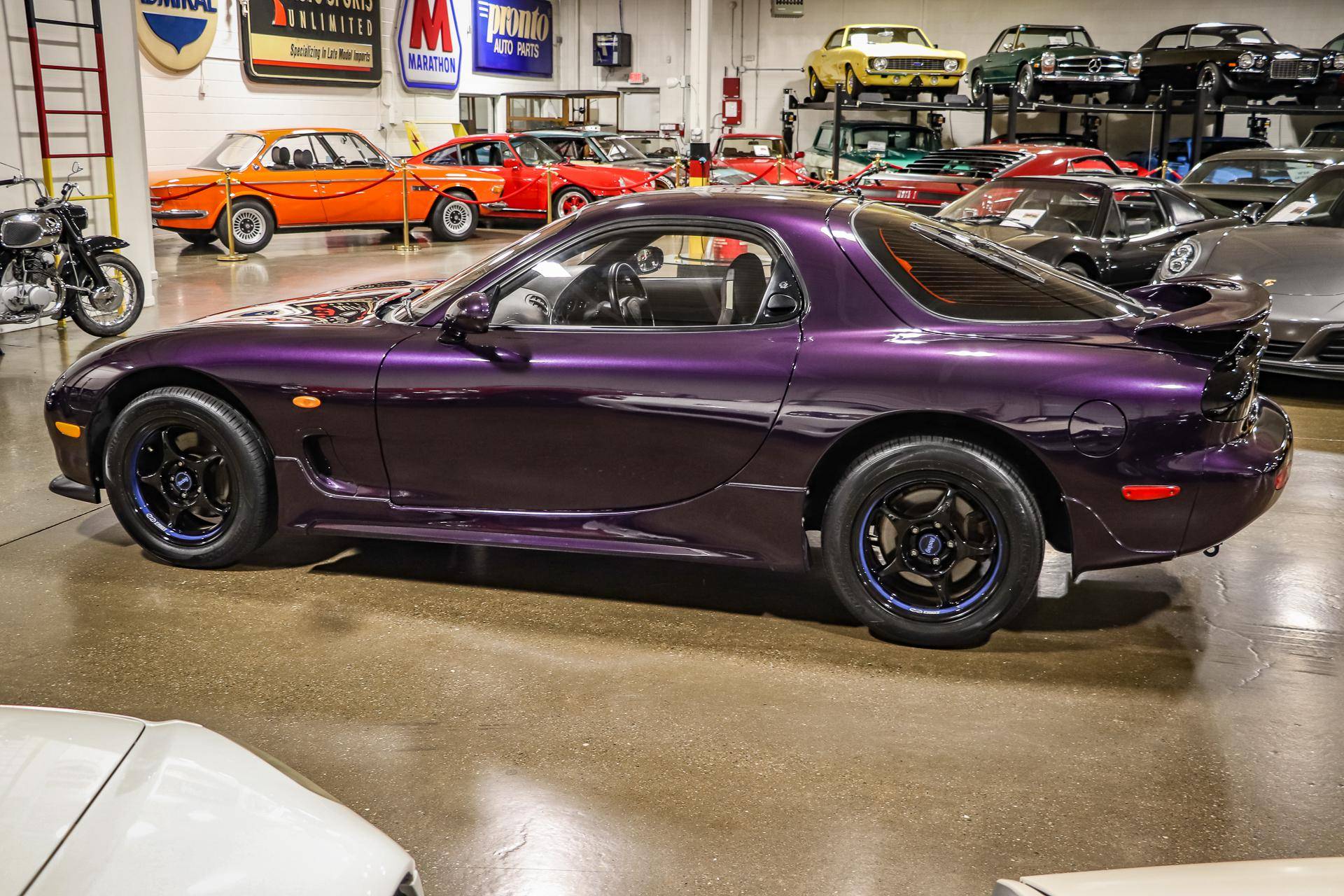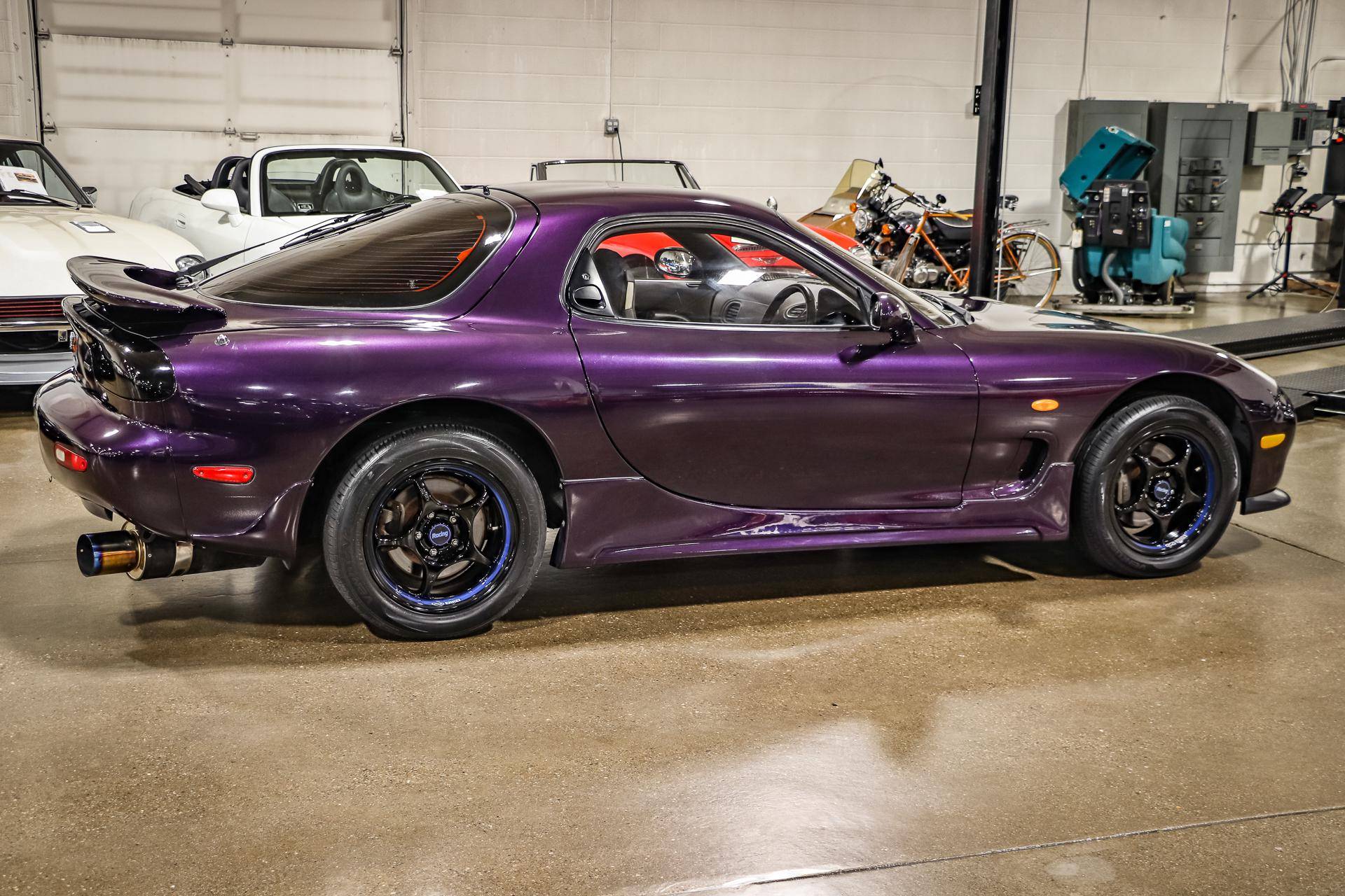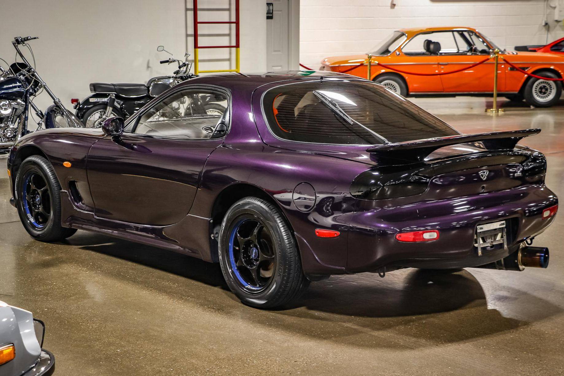 THIS. . . is a 1994 Mazda Efini RX-7 Type R, finished in Violet Pearl with a black interior. It's equipped with a metric instrument cluster, and its odometer displays approximately 26,400 kilometers, which represents about 16,400 miles. The Japanese Car VX vehicle history report provided in the gallery shows no accidents or mileage discrepancies in this car's past. Factory equipment includes a front strut tower brace, pop-up headlights, suede upholstery, power windows, mirrors, and locks, and air conditioning. Modifications reported by the seller include an aftermarket cat-back exhaust, TEIN coilovers, purple exterior paint, 16-inch Enkei wheels, and a Pioneer head unit. Mazda's third-generation RX-7 debuted in Japan for the 1992 model year, and it was praised by enthusiasts and by journalists as a significant improvement over its predecessor. Its more fluid lines aligned it with the design trends of the 1990s, and the twin-turbocharged Wankel engine gave it Porsche-like performance without the price tag. The ɛ̃fini brand represented Mazda's luxury division of vehicles that were offered only in Japan from 1991 to 1997. The RX-7 Type R was the lightweight and sportier version of the famed sports car model, and it was slotted in the middle of the Japanese market RX-7 range. Power comes from a twin-turbocharged 1. 3-liter twin-rotor Wankel engine, rated at 252 horsepower and 217 lb-ft of torque. Output is sent to the rear wheels via a 5-speed manual transmission.