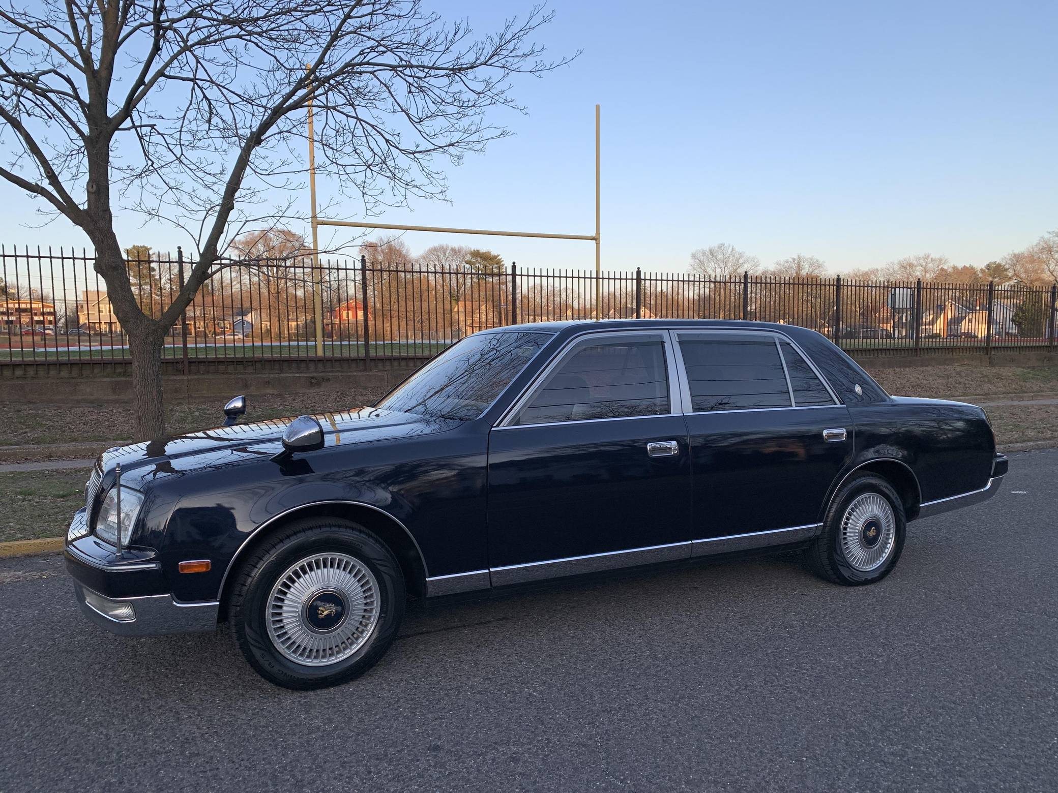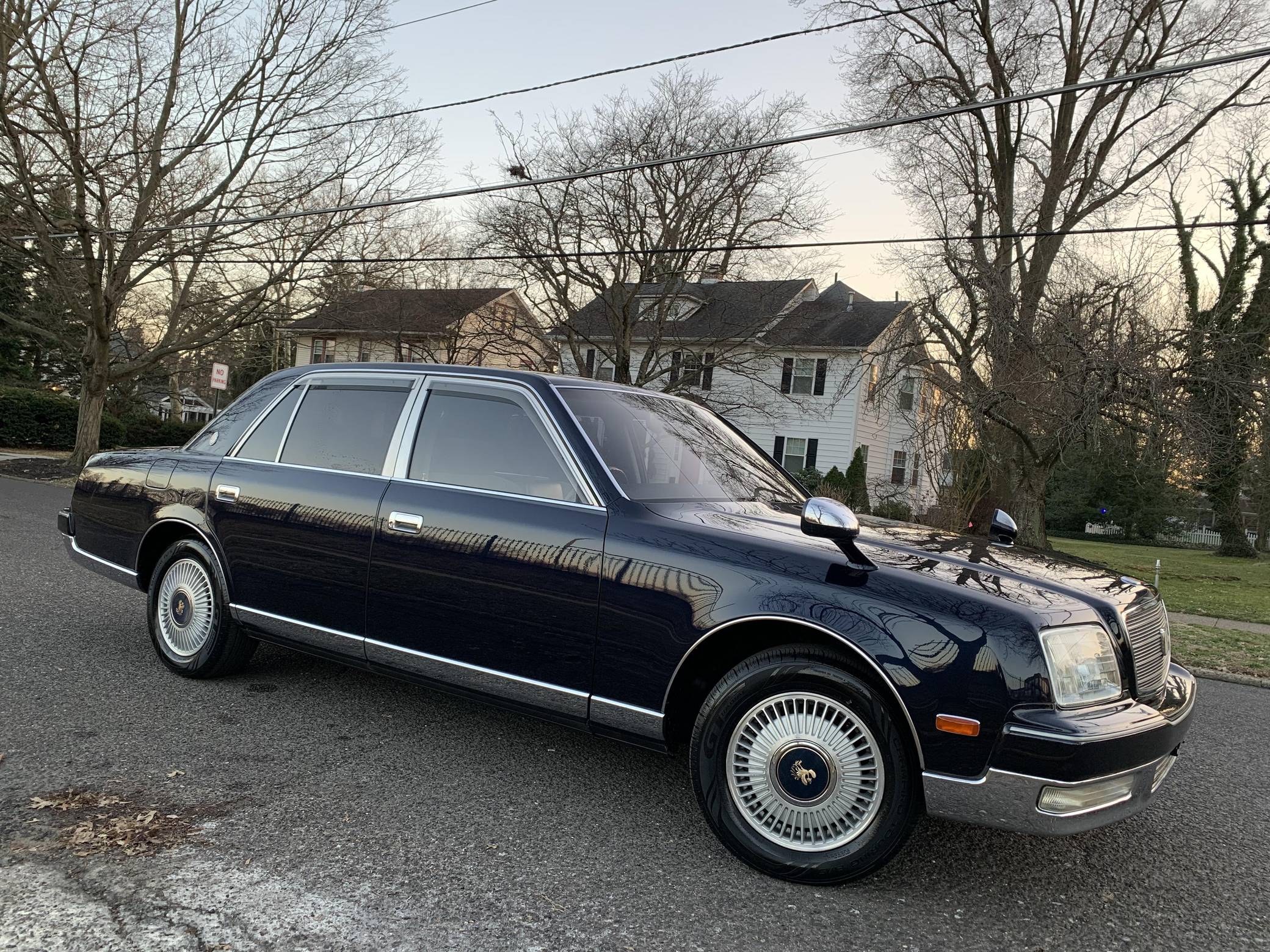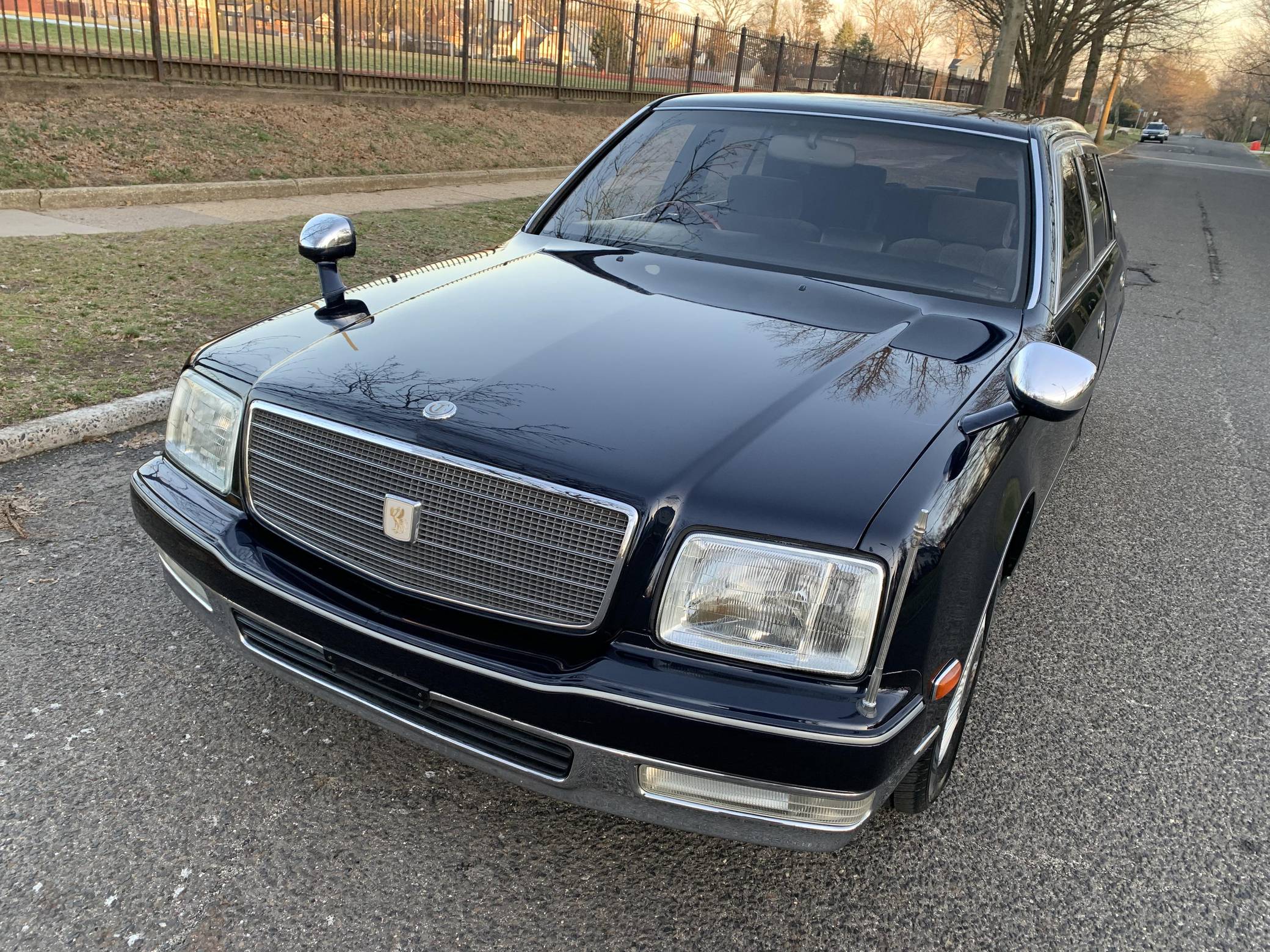 1997 Toyota Century, finished in Blue Mica with a gray interior. Said to be imported from Japan in September 2022, It's equipped with a metric instrument cluster, and the odometer shows about 236,600 kilometers, which represents approximately 147,100 miles. Factory equipment includes the Dual Electro Multi-Vision Package, 16-inch wheels, a TEMS suspension system, soft-close doors and trunk, wool cloth upholstery, heated front and rear seats, massaging and reclining rear seats, and more as detailed below. The only modification reported by the seller is a set of window rain guards. Toyota's home-market flagship sedan has been in production since 1967, and this "G50" variant represents the second-generation model that was sold from 1997 to 2017. Aimed at wealthy yet restrained Japanese business-types, these stout luxo-barges were equipped with every bit of comfort and tech wizardry at Toyota's disposal and are commonly acknowledged by the motoring press as one of the finest-built cars anywhere. Toyota never sold the Century in the United States. Power comes from a 5. 0-liter V12, rated at approximately 276 horsepower and 340 lb-ft of torque. Output is sent to the rear wheels through a 4-speed automatic transmission.