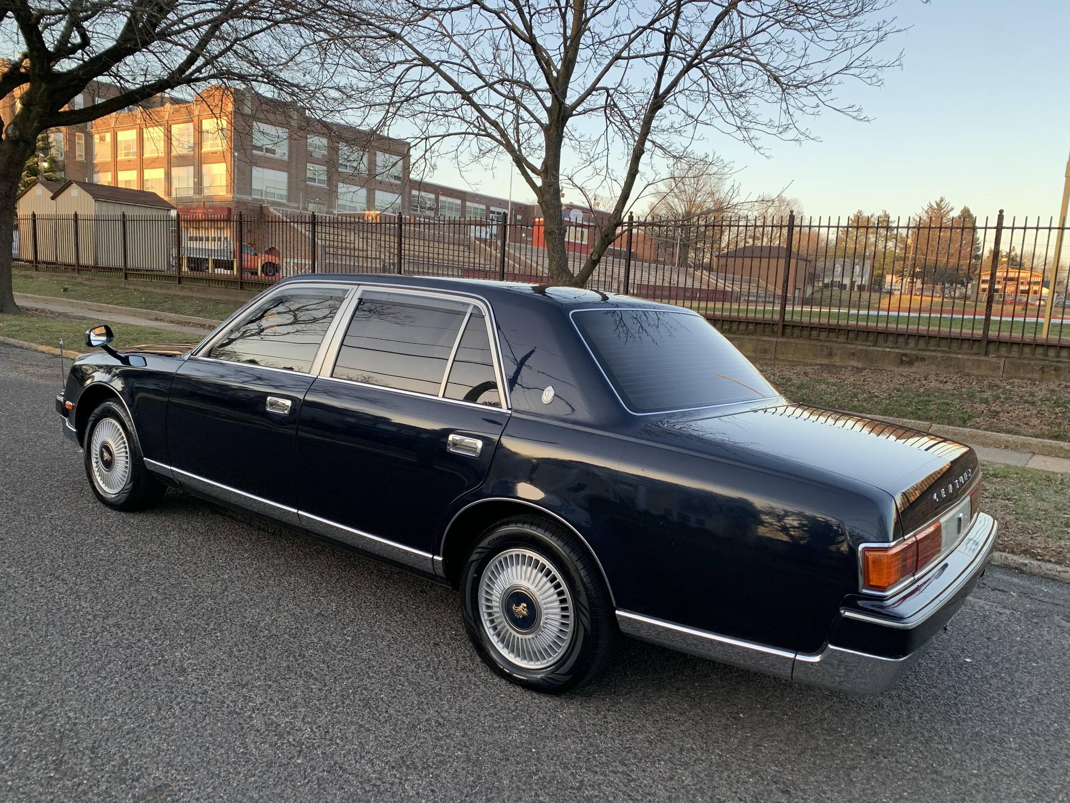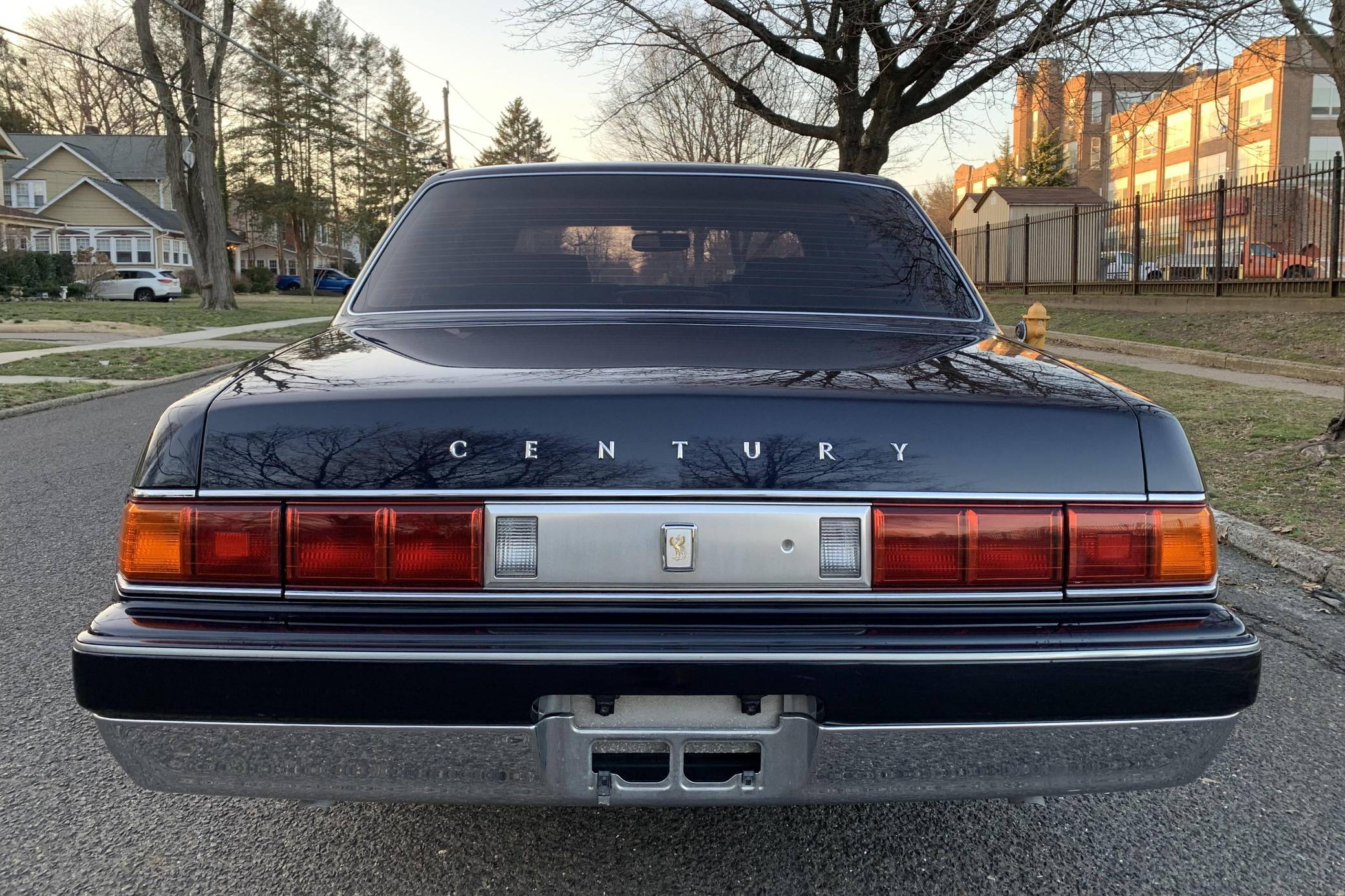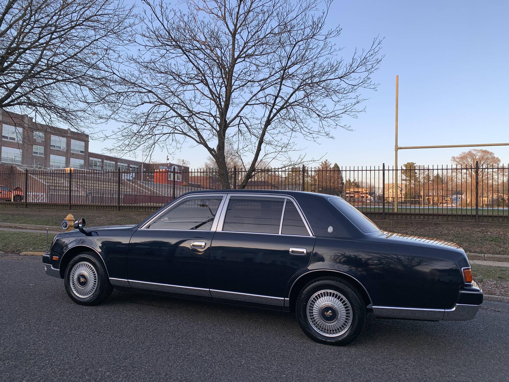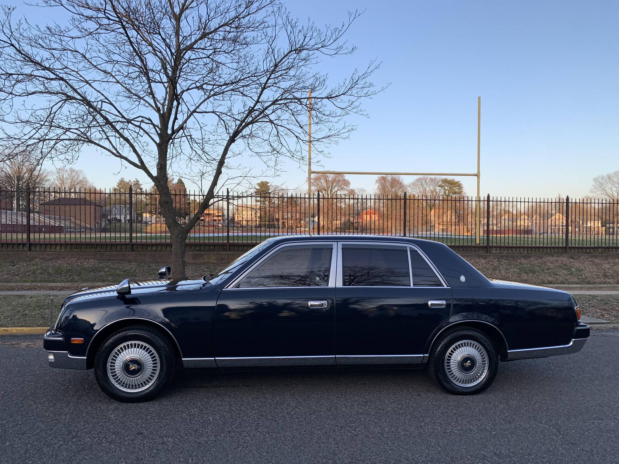 1997 Toyota Century, finished in Blue Mica with a gray interior. Said to be imported from Japan in September 2022, It's equipped with a metric instrument cluster, and the odometer shows about 236,600 kilometers, which represents approximately 147,100 miles. Factory equipment includes the Dual Electro Multi-Vision Package, 16-inch wheels, a TEMS suspension system, soft-close doors and trunk, wool cloth upholstery, heated front and rear seats, massaging and reclining rear seats, and more as detailed below. The only modification reported by the seller is a set of window rain guards. Toyota's home-market flagship sedan has been in production since 1967, and this "G50" variant represents the second-generation model that was sold from 1997 to 2017. Aimed at wealthy yet restrained Japanese business-types, these stout luxo-barges were equipped with every bit of comfort and tech wizardry at Toyota's disposal and are commonly acknowledged by the motoring press as one of the finest-built cars anywhere. Toyota never sold the Century in the United States. Power comes from a 5. 0-liter V12, rated at approximately 276 horsepower and 340 lb-ft of torque. Output is sent to the rear wheels through a 4-speed automatic transmission.