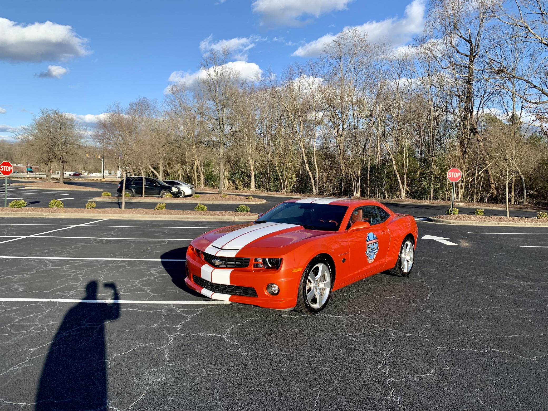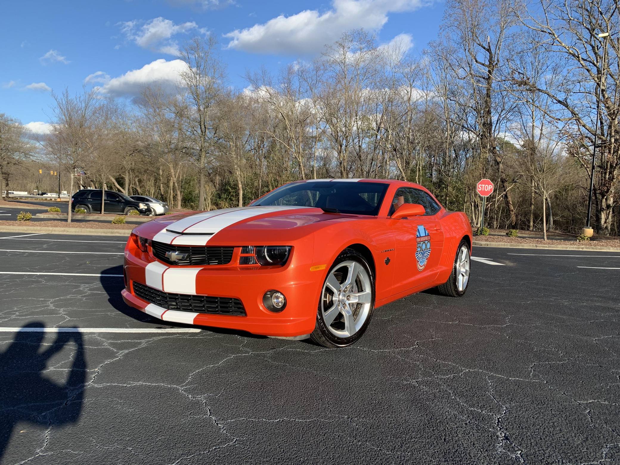 THIS. . . is a 2010 Chevrolet Camaro SS Coupe Indy 500 Pace Car Edition, finished in Inferno Orange Metallic with White Diamond stripes and an Inferno Orange interior. Factory equipment includes the RS Package, Brembo 4-piston brakes, White Diamond stripes, Indy 500 graphics, emblems, and seat embroidery, a rear spoiler, leather upholstery, heated front seats, auxiliary gauges, Bluetooth connectivity, and a Boston Acoustics 9-speaker audio system, among more detailed below. The seller reports no modifications. After a long hiatus, Chevrolet brought the Camaro nameplate back to its range for the 2010 model year — taking on old rivals like the Ford Mustang along with contemporaries like the Nissan 370Z. A Camaro convertible was used as the pace car in the 2010 Indianapolis 500. As a result, Chevrolet produced 294 "Z4Z" replica models to commemorate the event — all V8-powered coupe models in 2SS trim with the RS Package. Power comes from an "L99" 6. 2-liter V8 engine, rated at 400 horsepower and 410 lb-ft of torque. Output is sent to the rear wheels via a 6-speed automatic transmission.