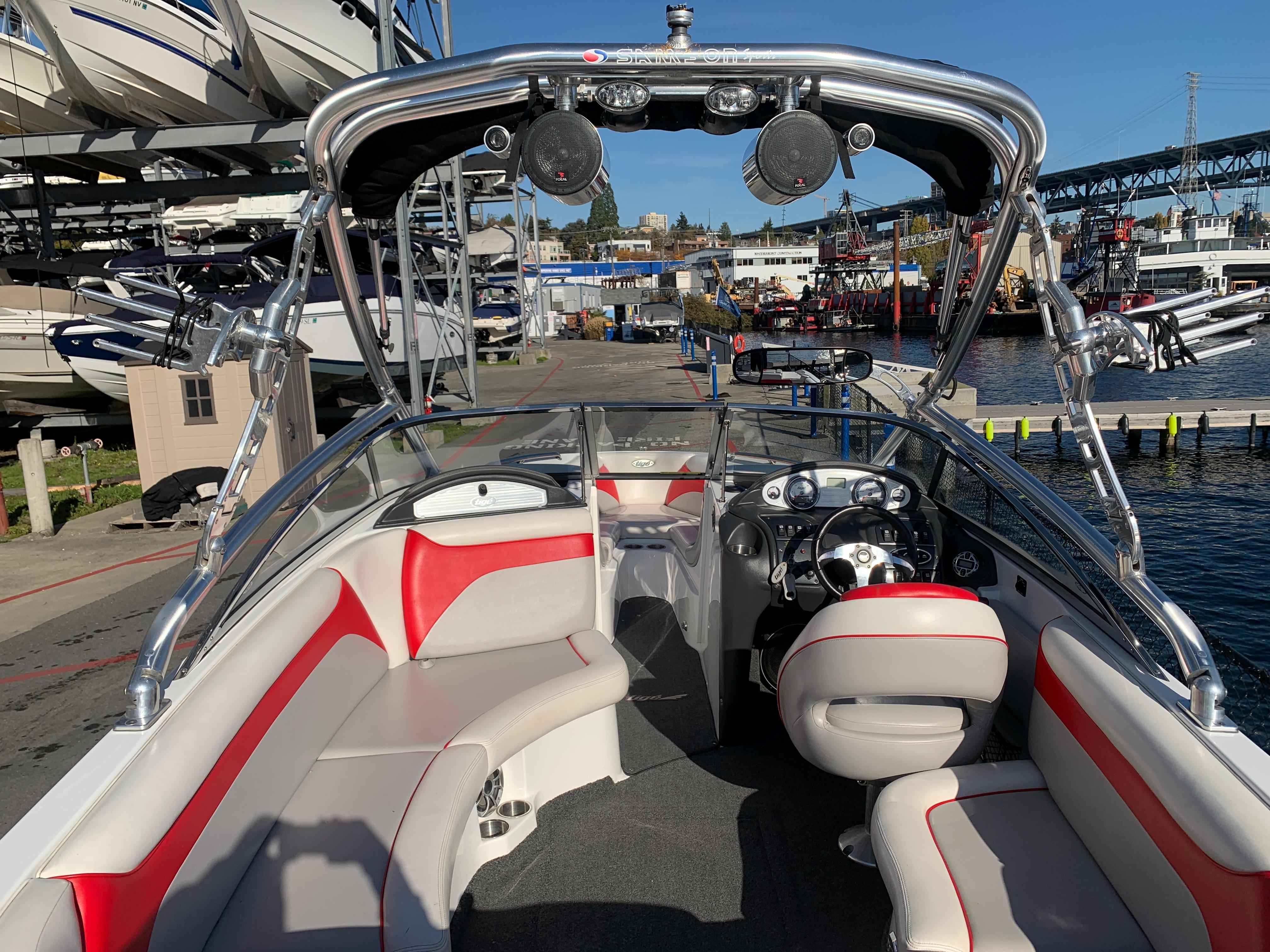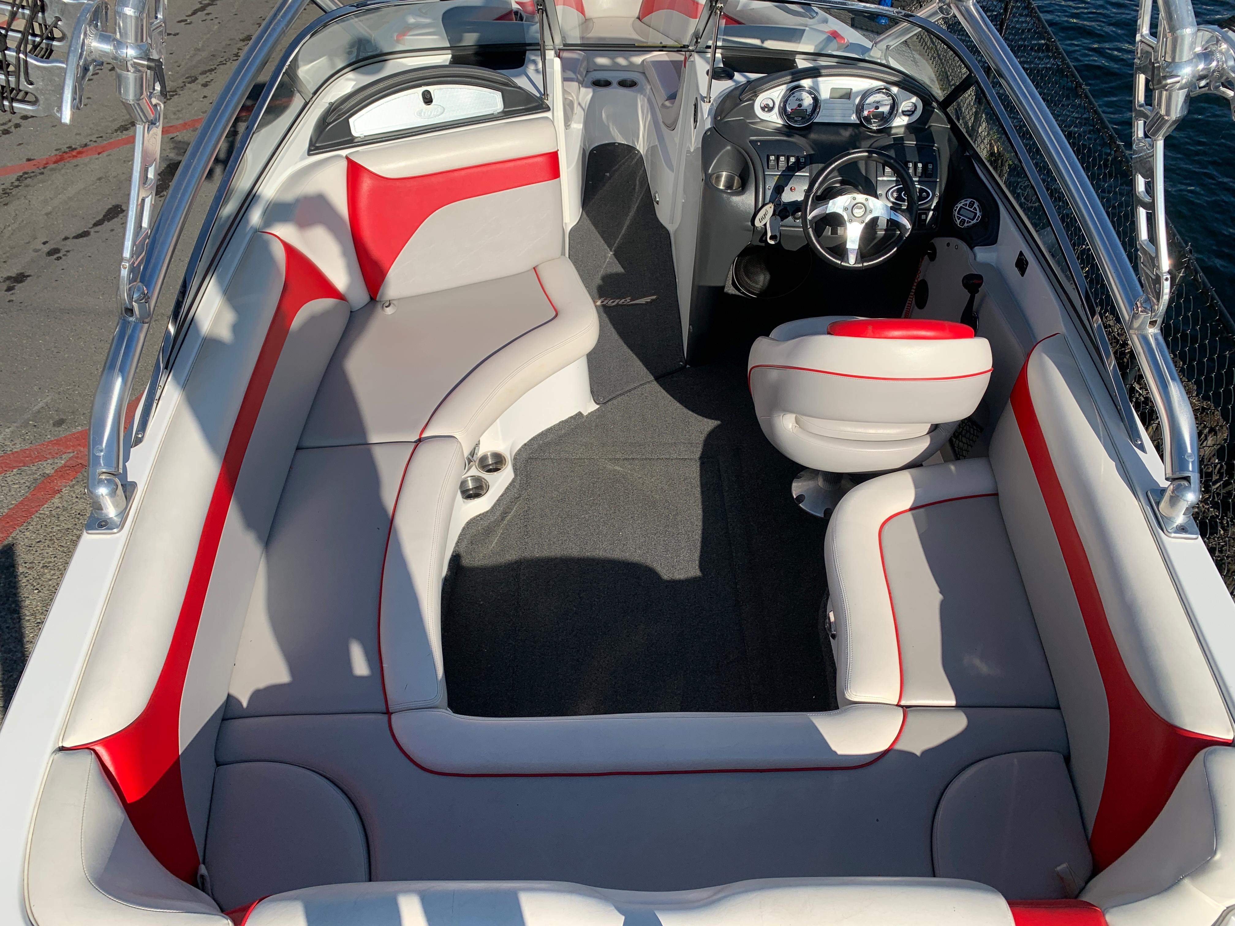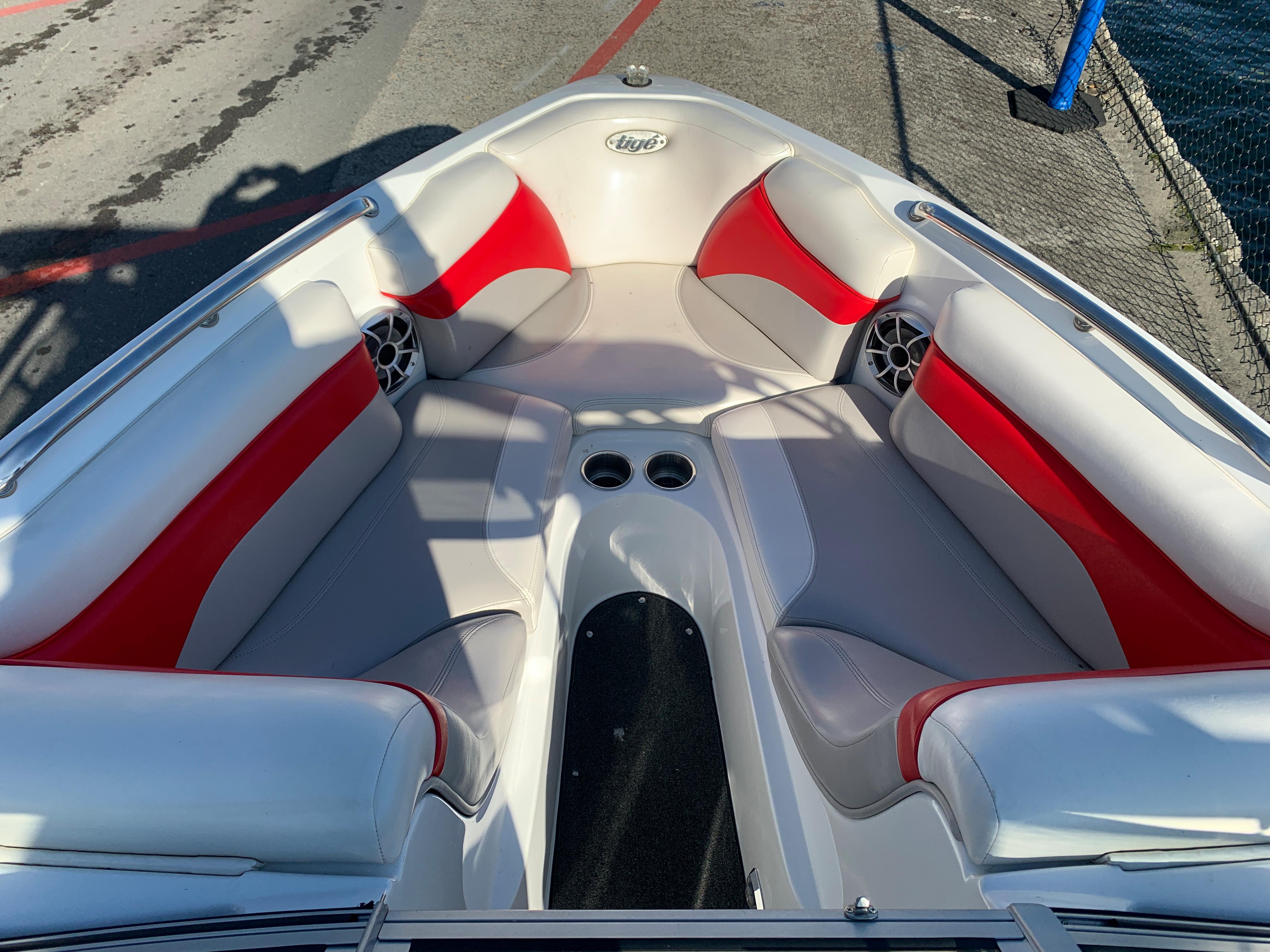 2008 Tige 22VE! (White/Red with Grey Interior). Freshwater, and Mint! Powered by a Marine Power 340 hp V-Drive! Too Many Options to List! Watersports Tower, Tower Speakers, Tower Lights, Wakeboard/Surfboard Racks, Watersports Mirror, Premium Sound System with Subwoofer, Ballast System, Wakeplate, and More! Trailer included!