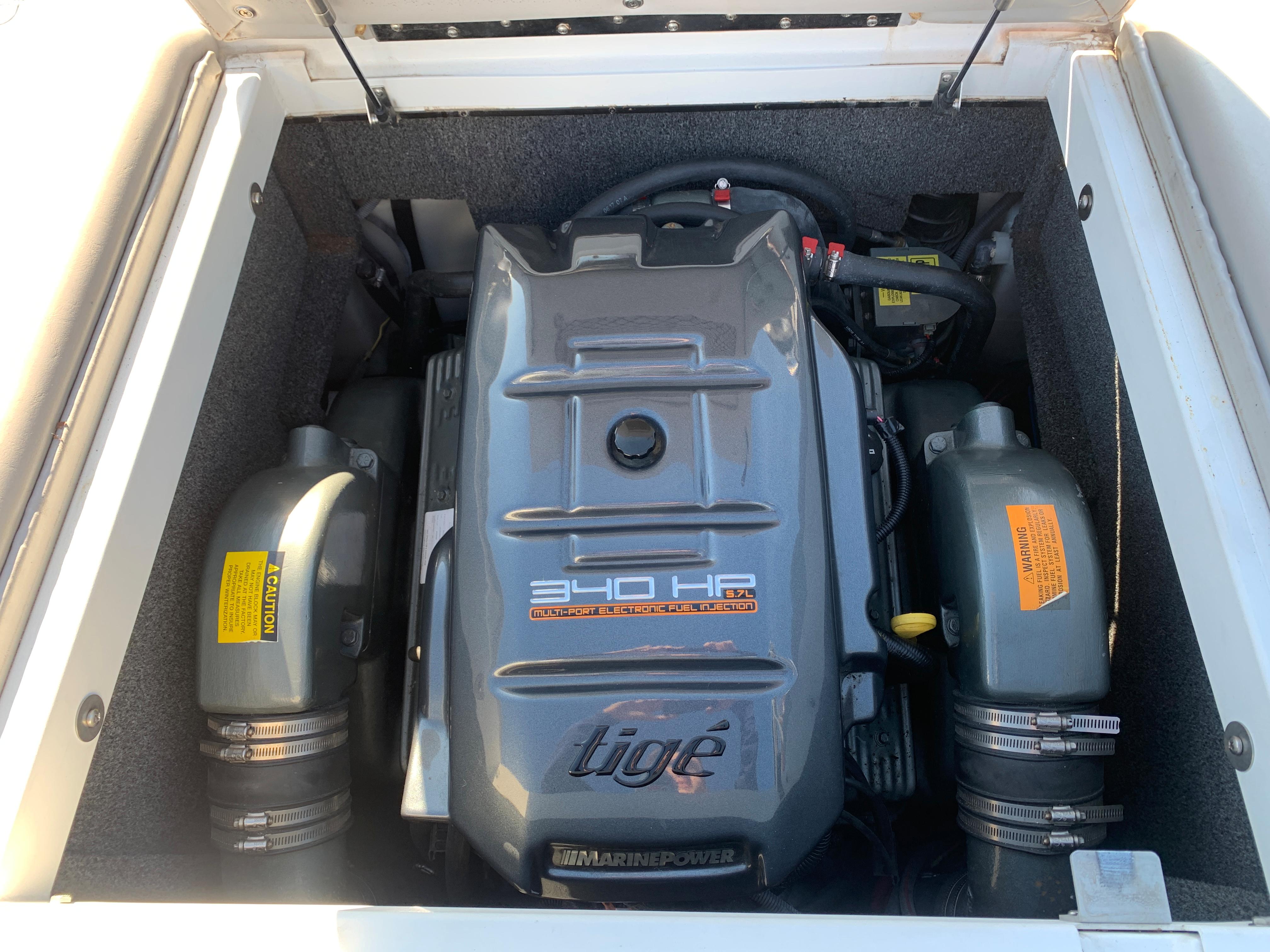 OPTIONS ARE ANODIZED TIGE FACTORY TOWER W/SWIVEL BOARD RACKS, TOWER-MOUNTED BIMINI TOP, FULL TOWER OF POWER STEREO SYSTEM 2 SETS OF P80 WETSOUNDS PLUS 10" SUBWOOFER AND 6 INTERIOR WETSOUNDS 6.5 SPEAKERS AND 2 AMPS, FULL MOORING COVER W/POLE KIT, TIGE SPEED SET CRUISE CONTROL, SWIM PLATFORM, LED UNDERWATER TRANSOM LIGHT, ALL STD FACTORY OPTIONS, TRAILER WITH SPARE TIRE KIT.