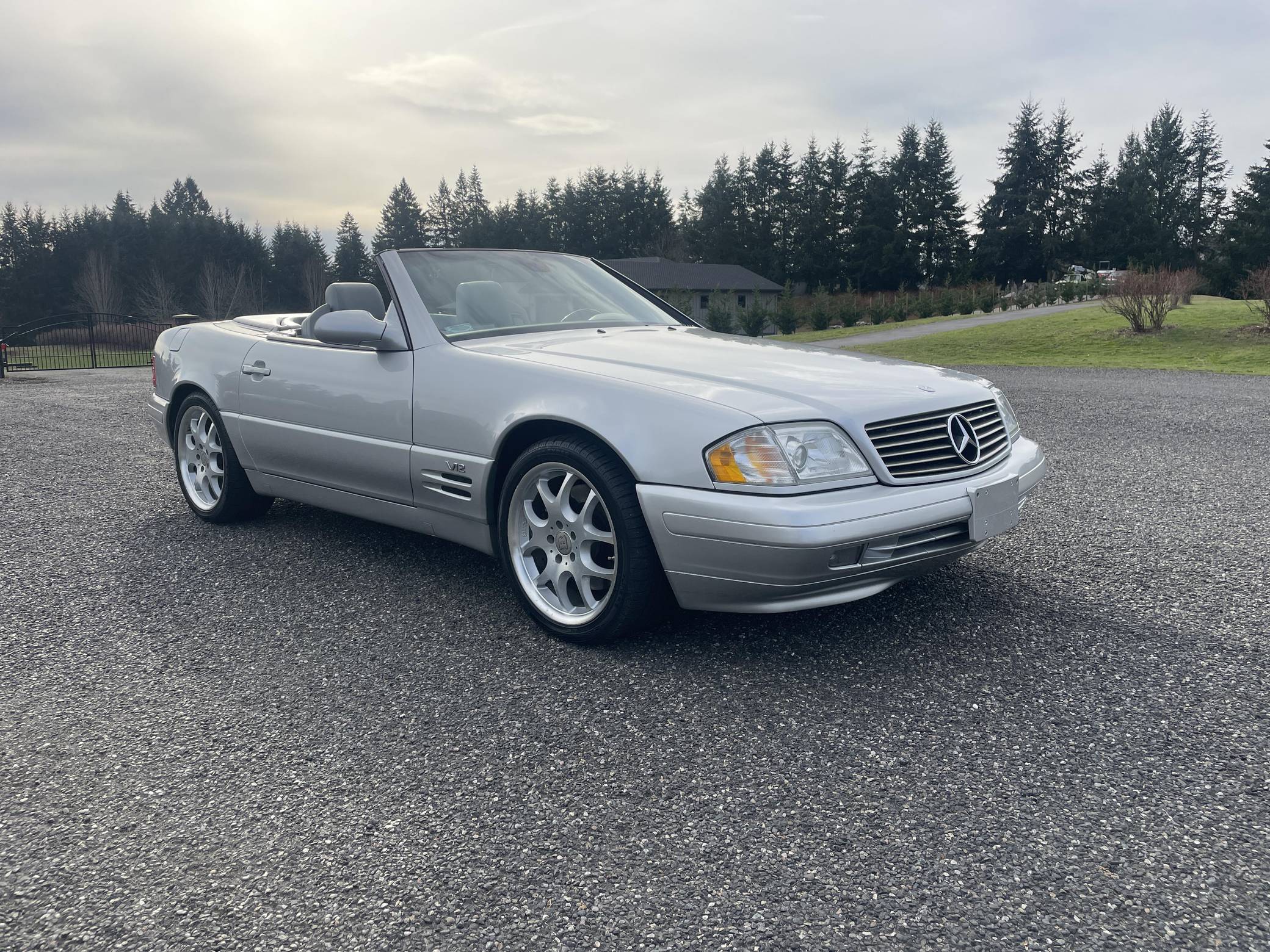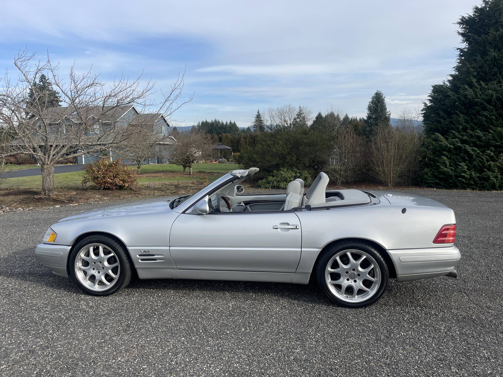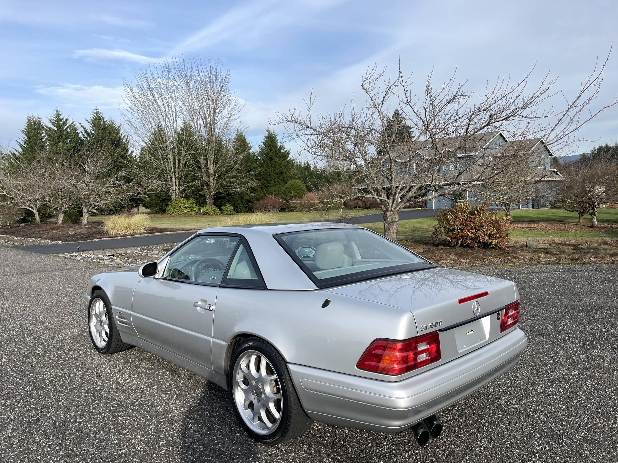 THIS… is a 2000 Mercedes-Benz SL600, finished in Brilliant Silver Metallic with a black soft top, a body-colored hardtop, and a gray interior. It also lists registrations in Oregon from new. Factory equipment includes self-leveling suspension with Adaptive Damping System (ADS), xenon headlights, leather upholstery, wood interior trim, heated and power-adjustable seats, automatic climate control, and a Bose sound system. Modifications reported by the seller are limited to a set of 18-inch Brabus wheels, a Brabus muffler, and a Kenwood head unit. Offered from 1990 to 2002, the "R129" SL-Class has developed a reputation as a luxury-focused but well-performing convertible with timeless Mercedes-Benz styling and quality. At a cost of roughly $120,000 in its time, the V12-powered SL600 sat at the top of the range and came standard with cutting-edge features such as an adaptive suspension system. Power comes from an "M120" 6. 0-liter V12, rated at 389 horsepower and 420 lb-ft of torque. Output is set to the rear wheels via a 5-speed automatic transmission.