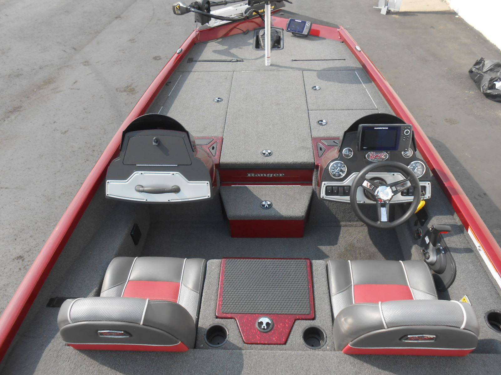 2017 Ranger RT 198P dual console bass boat equipped with Mercury 150 hp 4 stroke outboard motor and Minn Kota Fortrex 24V trolling motor with 80 lbs thrust. Boat includes custom cover, Hummingbird Helix 7si depth finder @ bow, Helix 7si depth finder @ console, Minn Kota MK 330D battery charger, SeaStar hydraulic steering, ratchet tie-downs and single axle trailer with swing tongue, LED lights, brakes, and a spare tire with cover. 4 person capacity.