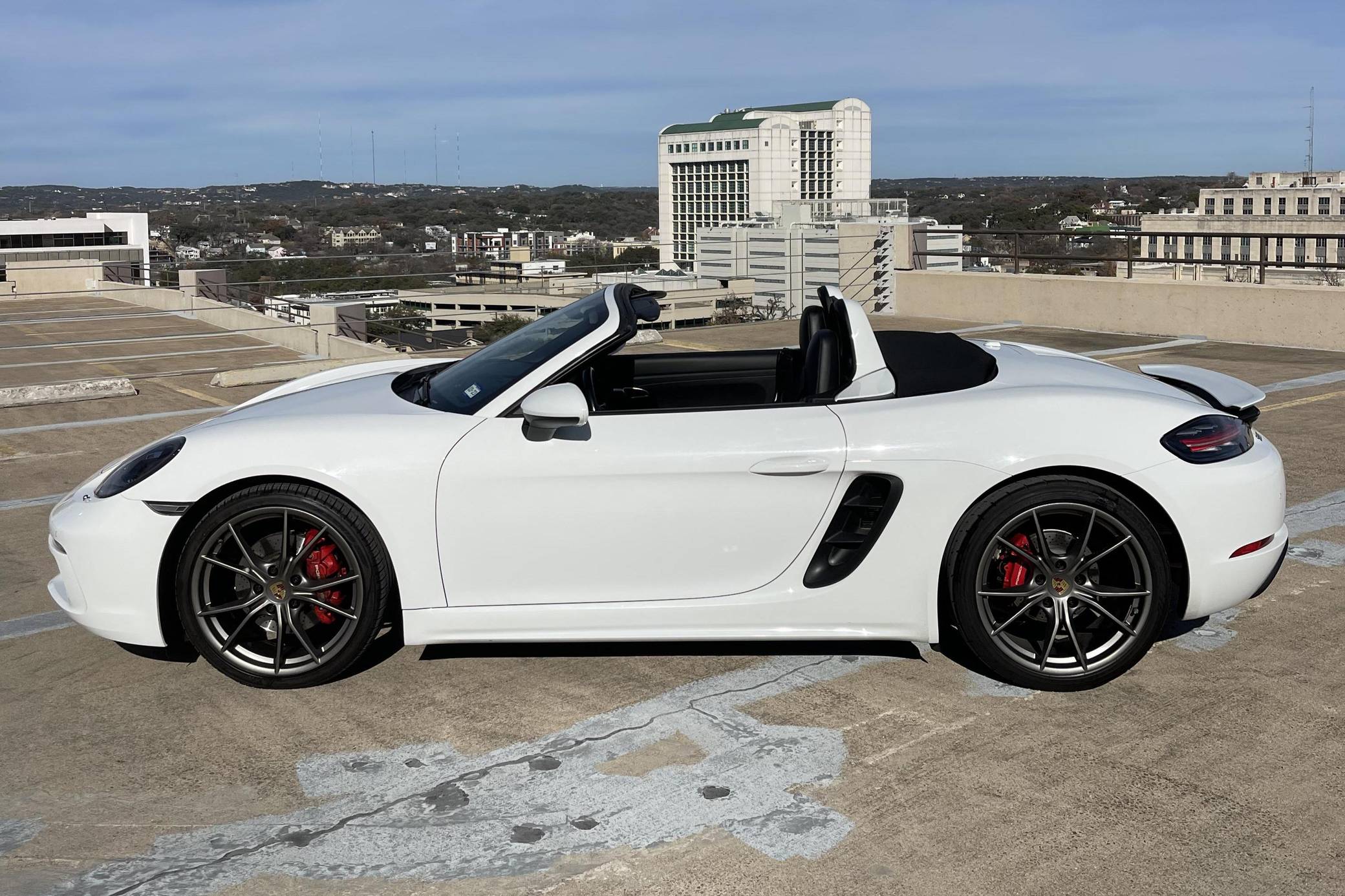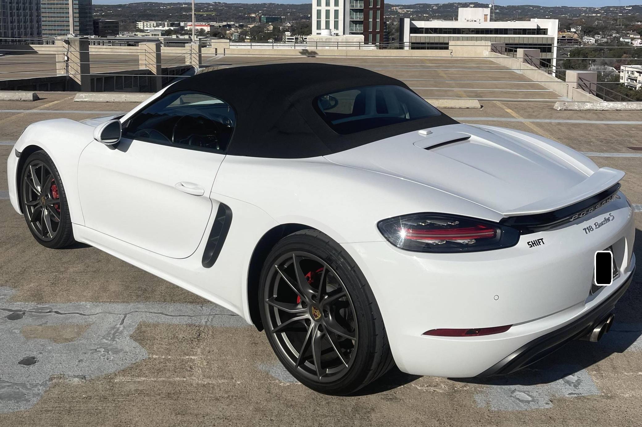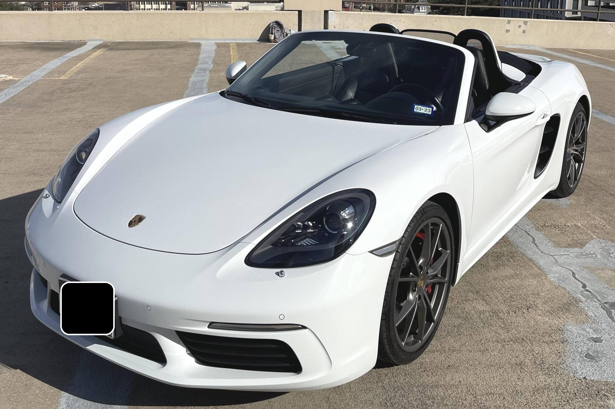 THIS… is a 2017 Porsche 718 Boxster S, finished in white with a black interior. A build sheet is provided in the photo gallery, and a partial list of notable equipment includes the Premium Package Plus, 20-inch Platinum Satin-painted Carrera S wheels, a power-operated soft top, leather upholstery, a Bose surround sound system, a navigation system, and more as detailed below. Modifications are limited to clear side marker lights. The "982" generation 718 Boxster/Cayman debuted for the 2017 model year as an evolution of Porsche's entry-level sports cars, with the "718" designation paying homage to Porsche's 718 race cars from the 1950s. The model's powerplant was updated with a turbocharged 4-cylinder engine, and the result was a more powerful and more efficient car than its predecessor. Power comes from a 2. 5-liter turbocharged flat-4, rated at 350 horsepower and 309 lb-ft of torque. Output is sent to the rear wheels via a 7-speed Porsche Doppelkupplung (PDK) automatic transmission.
